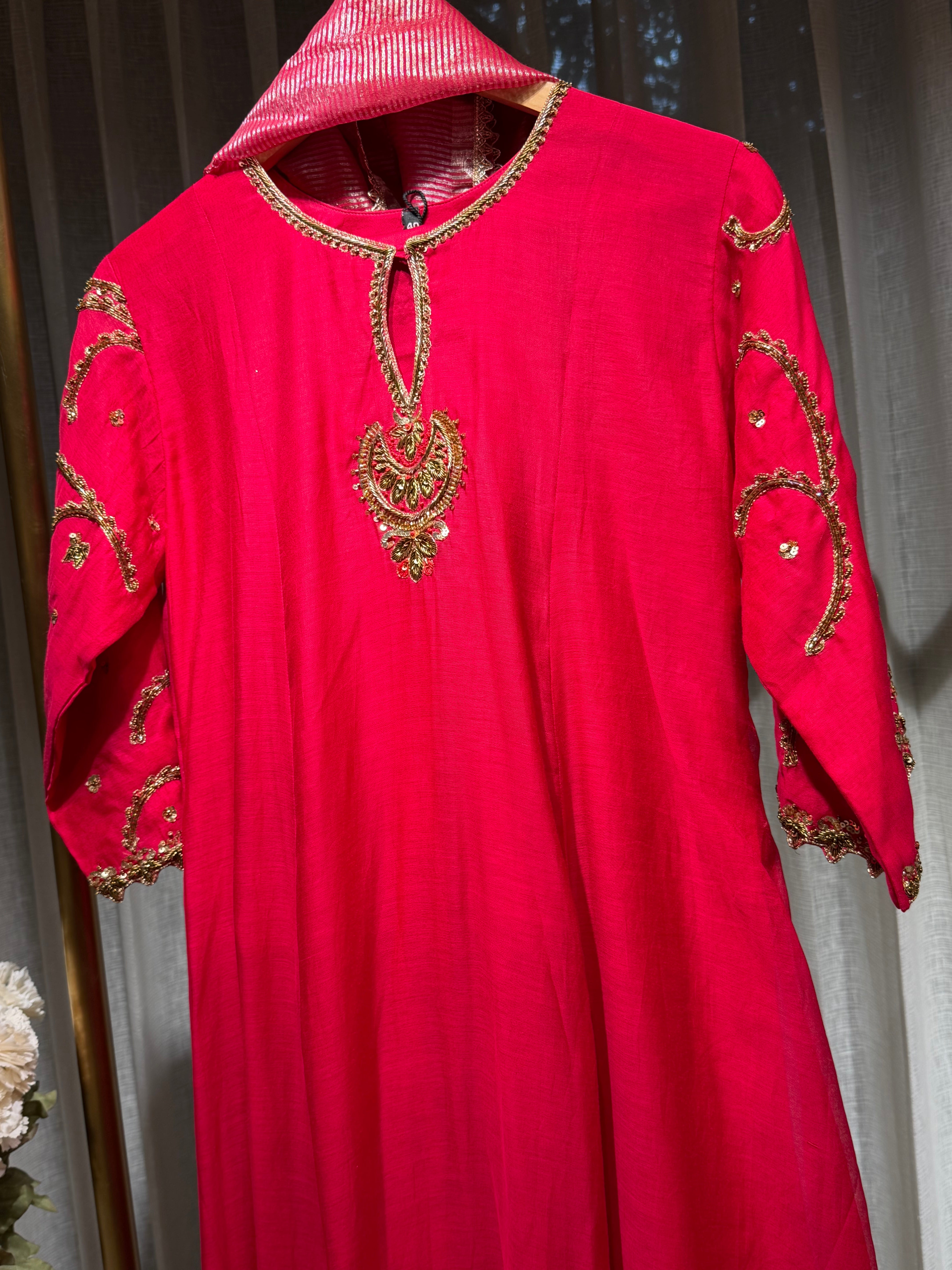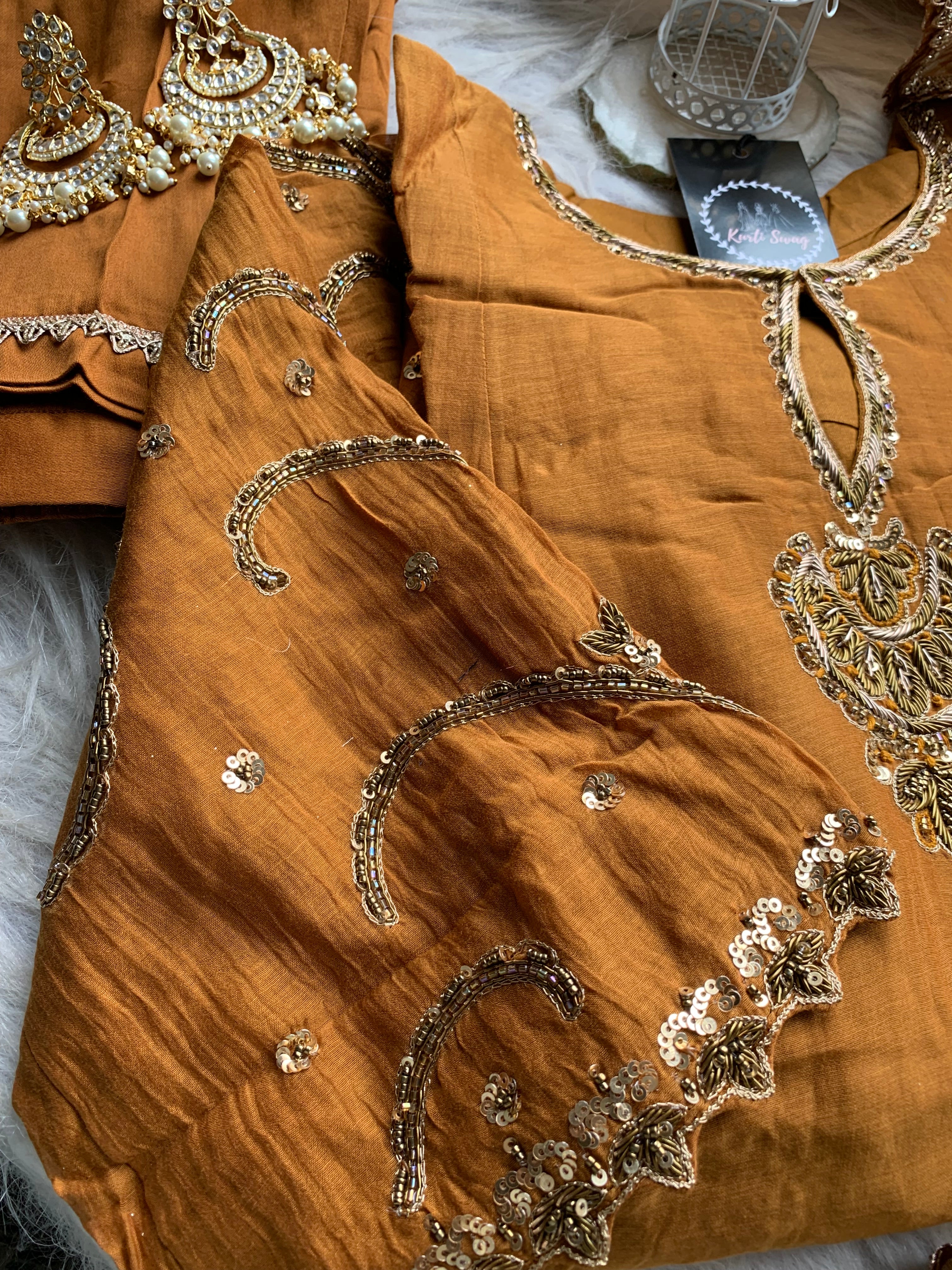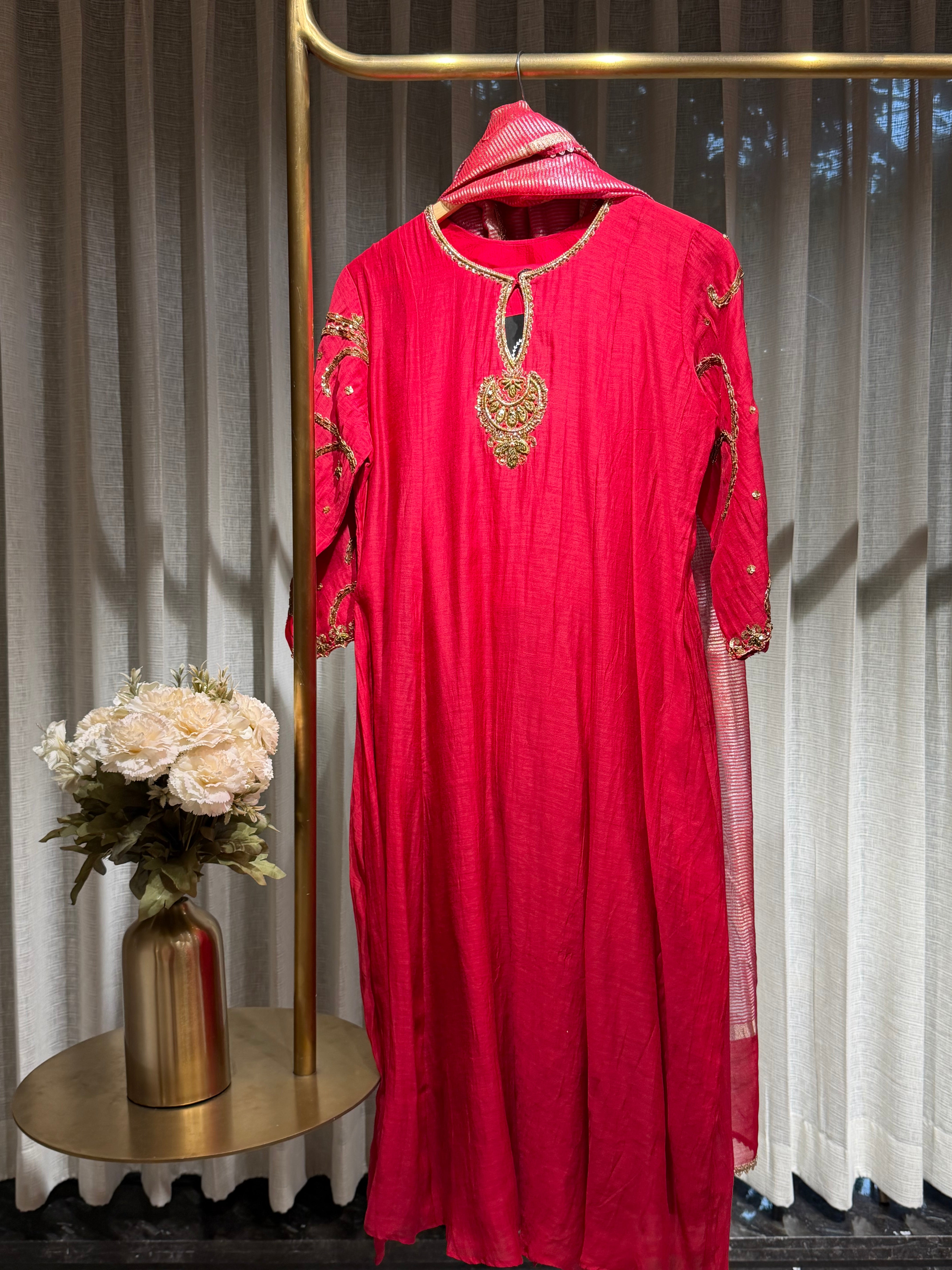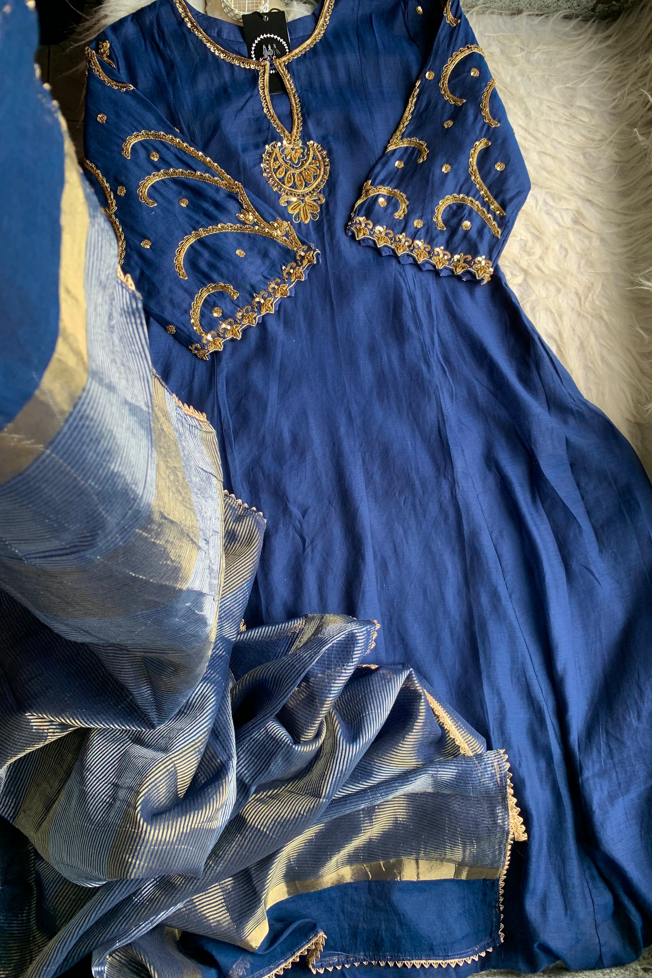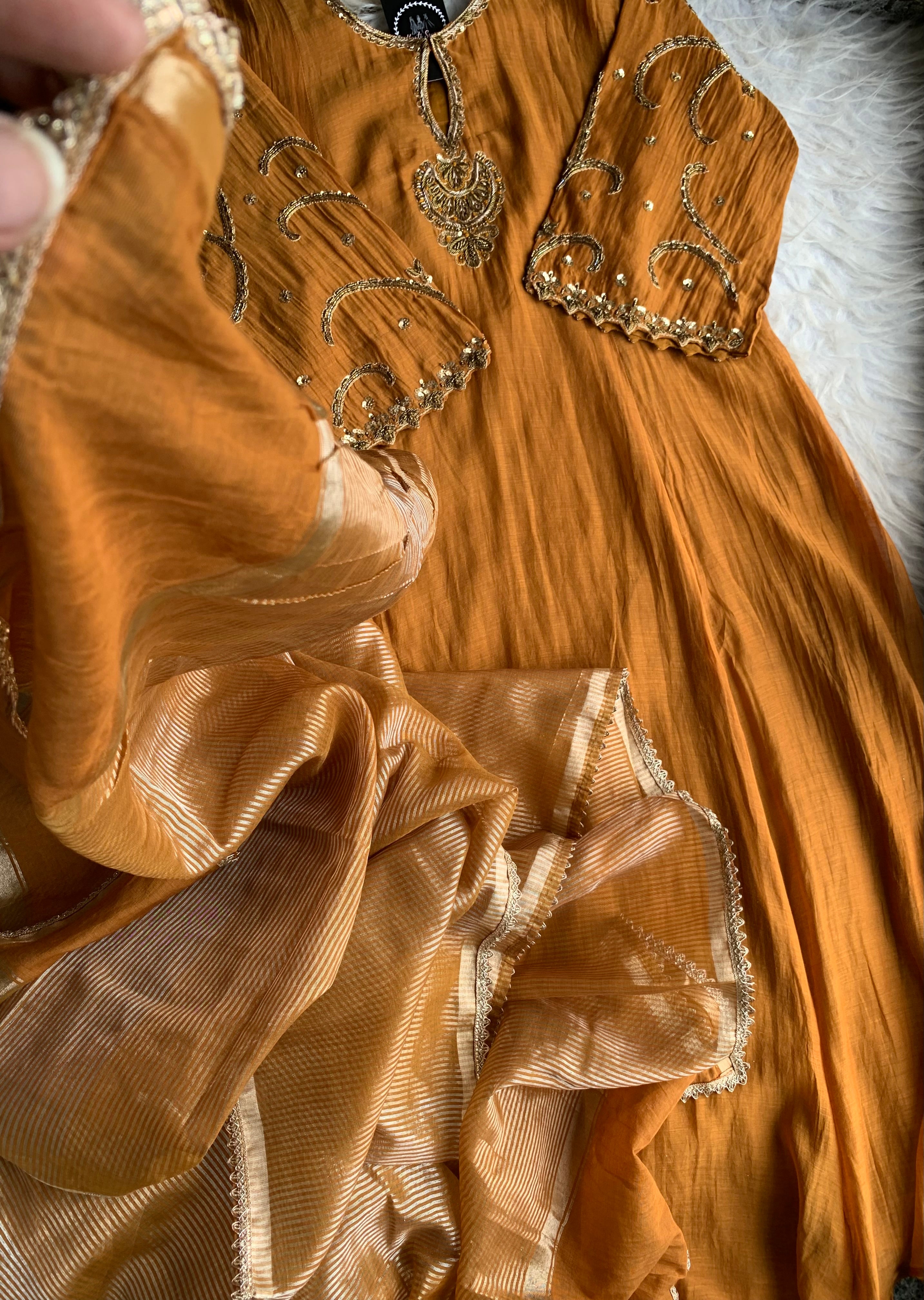 ✅ Premium Mul Chanderi Kurti With Zardosi, Dabka Amd Sequins HandWork On The Neckline Of The Kurti