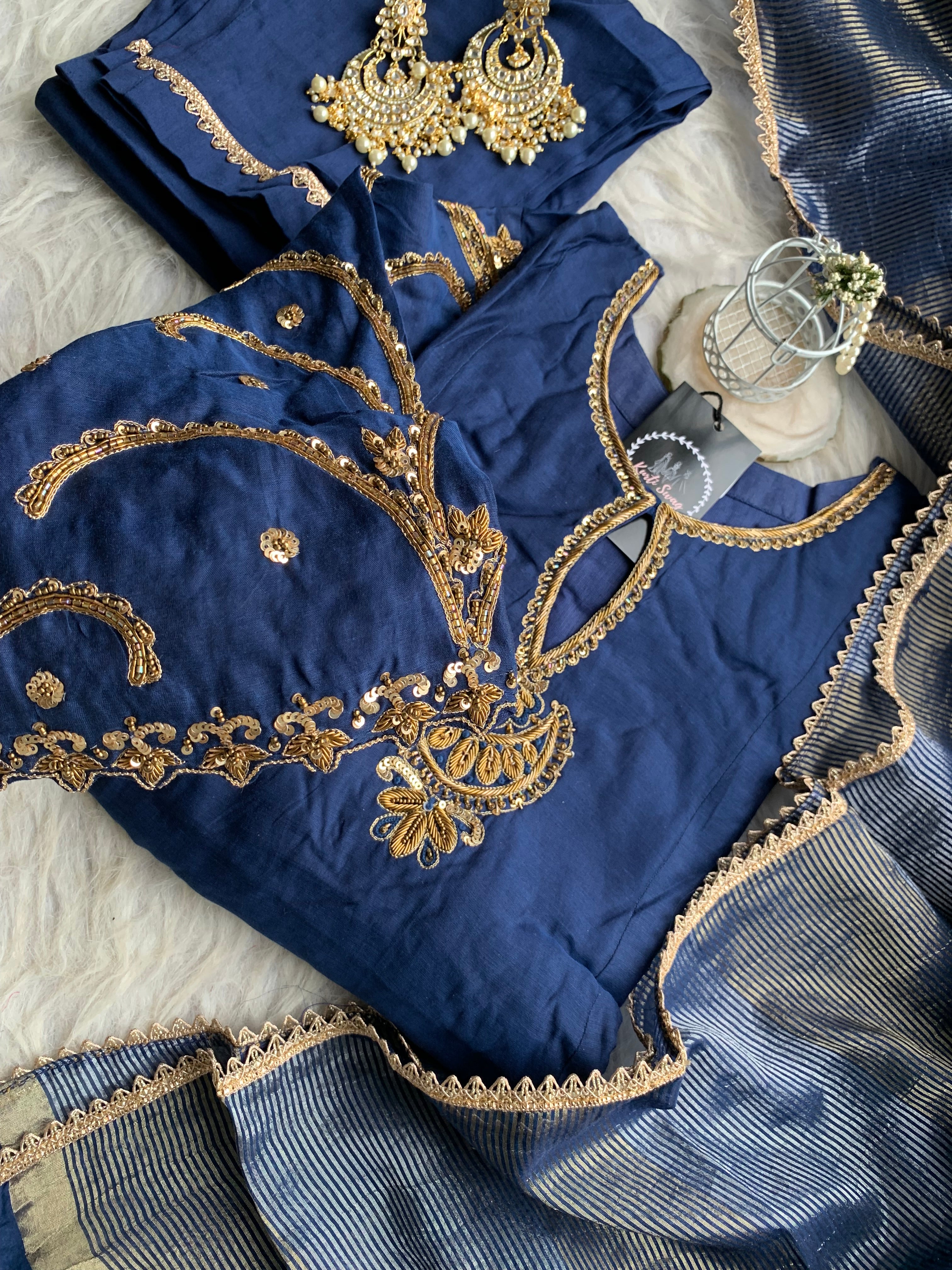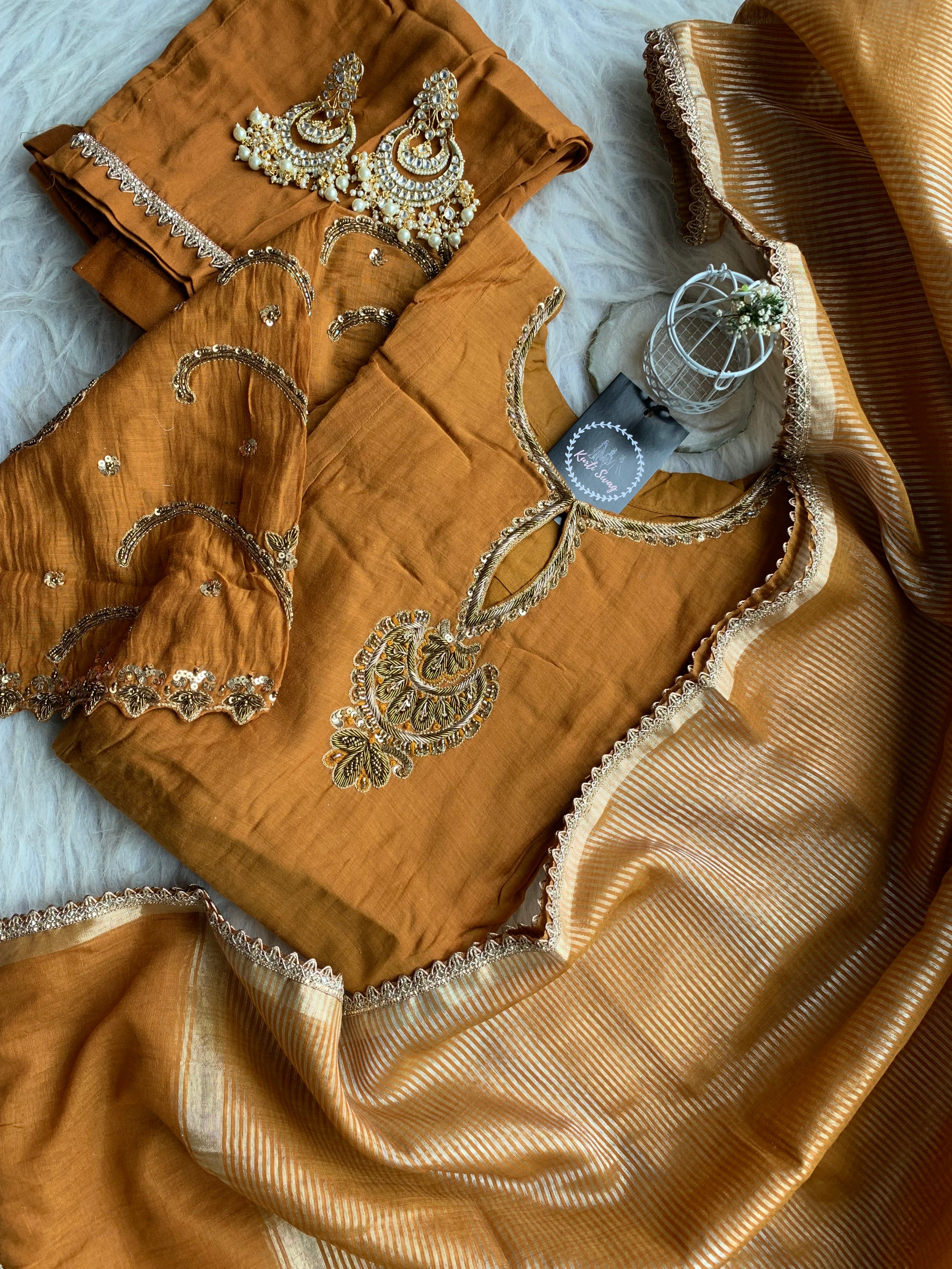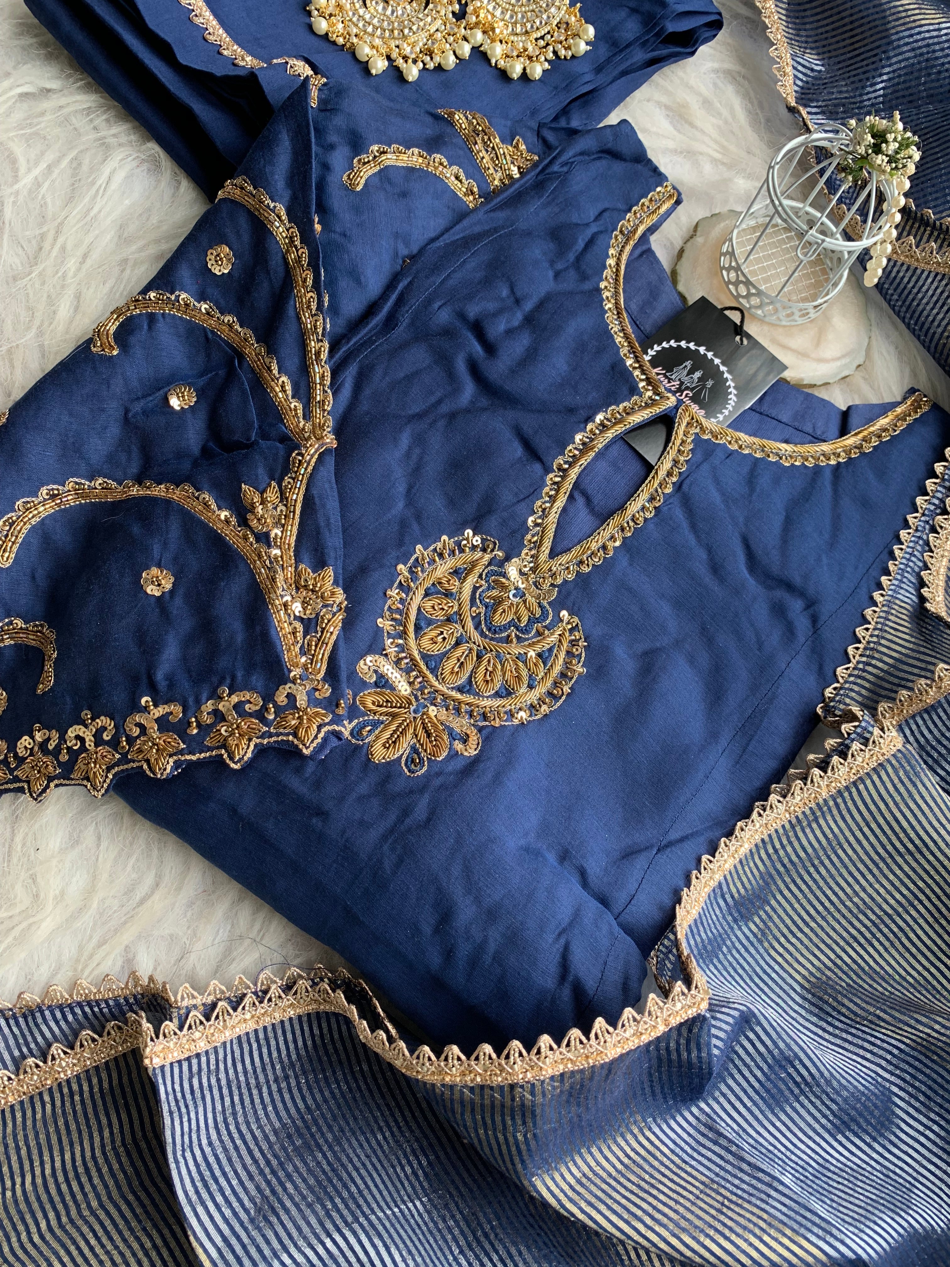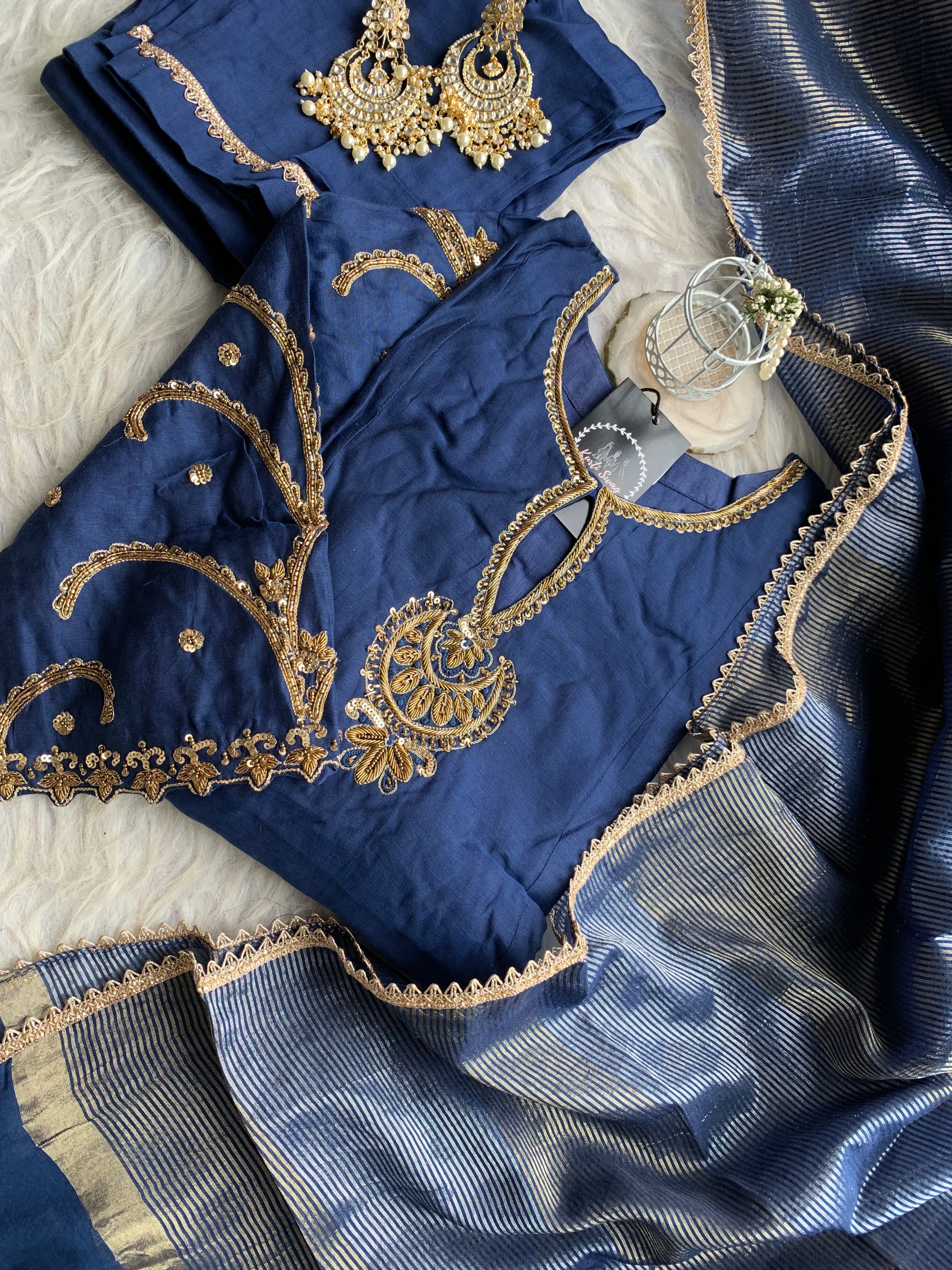 “KADAMBARI” Mul Chanderi Zardosi Work Suit Set ✨