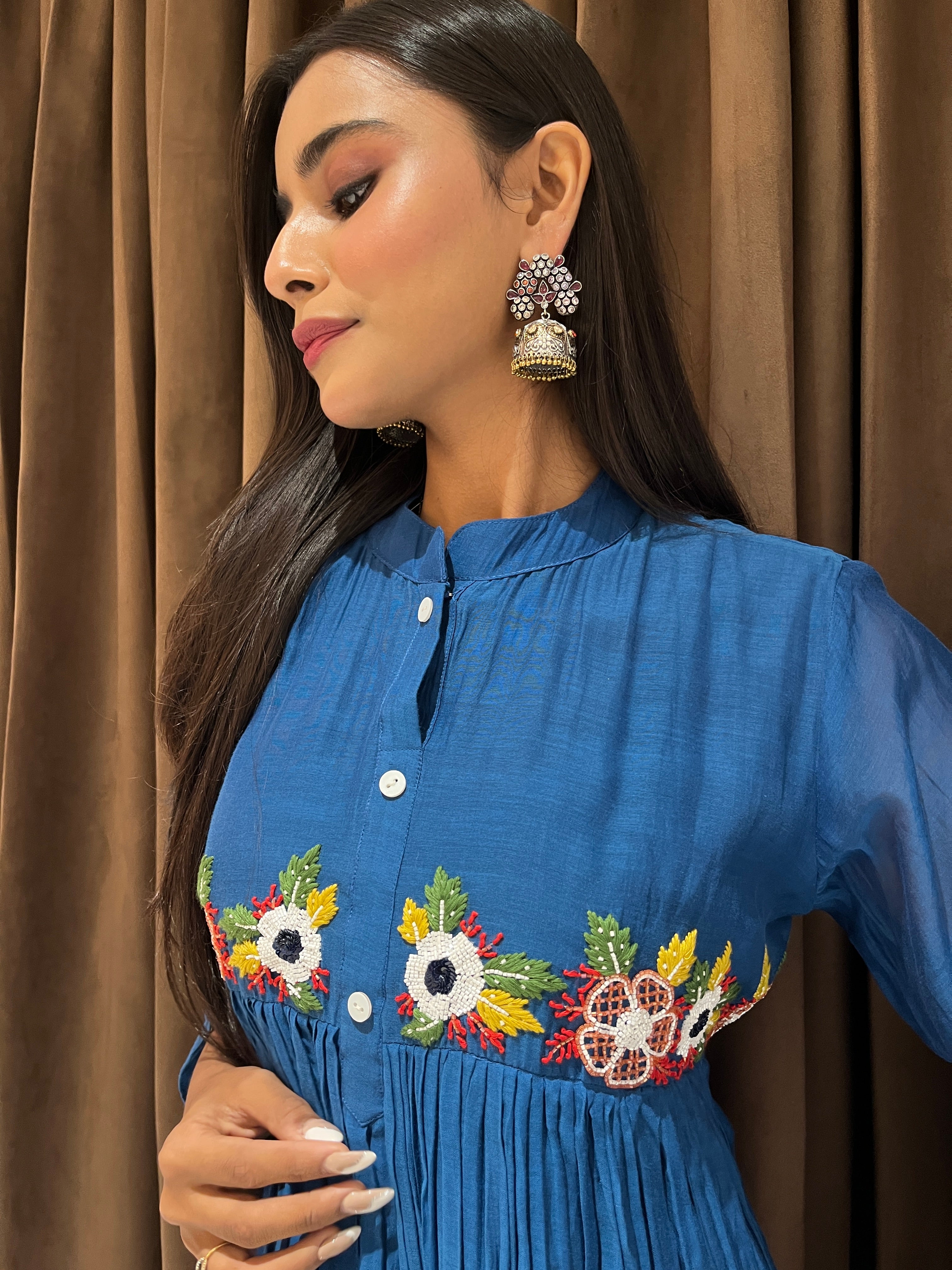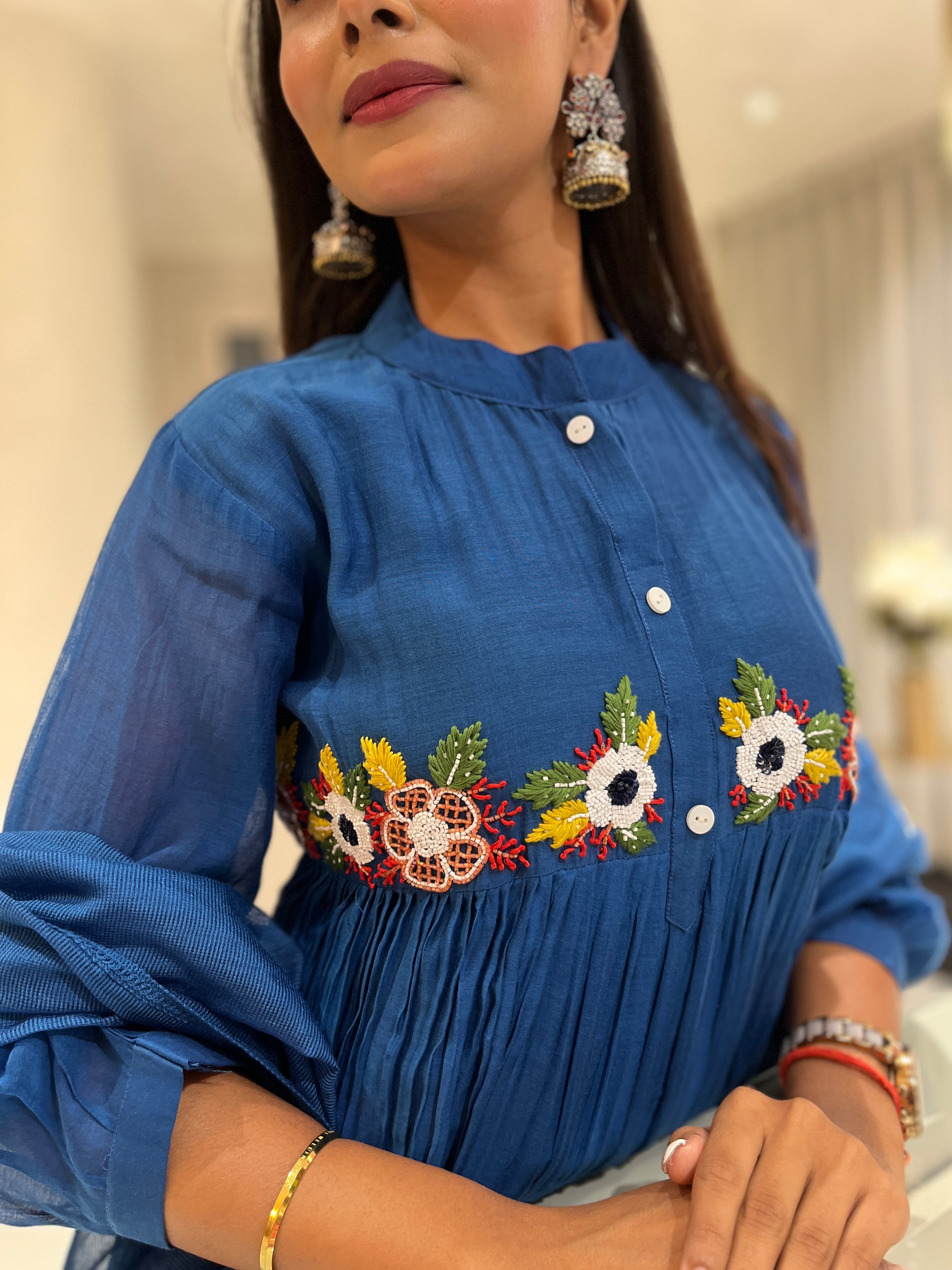 ✅ Premium Mul Chanderi Kurti Pearl & Thread HandWork On The Kurti