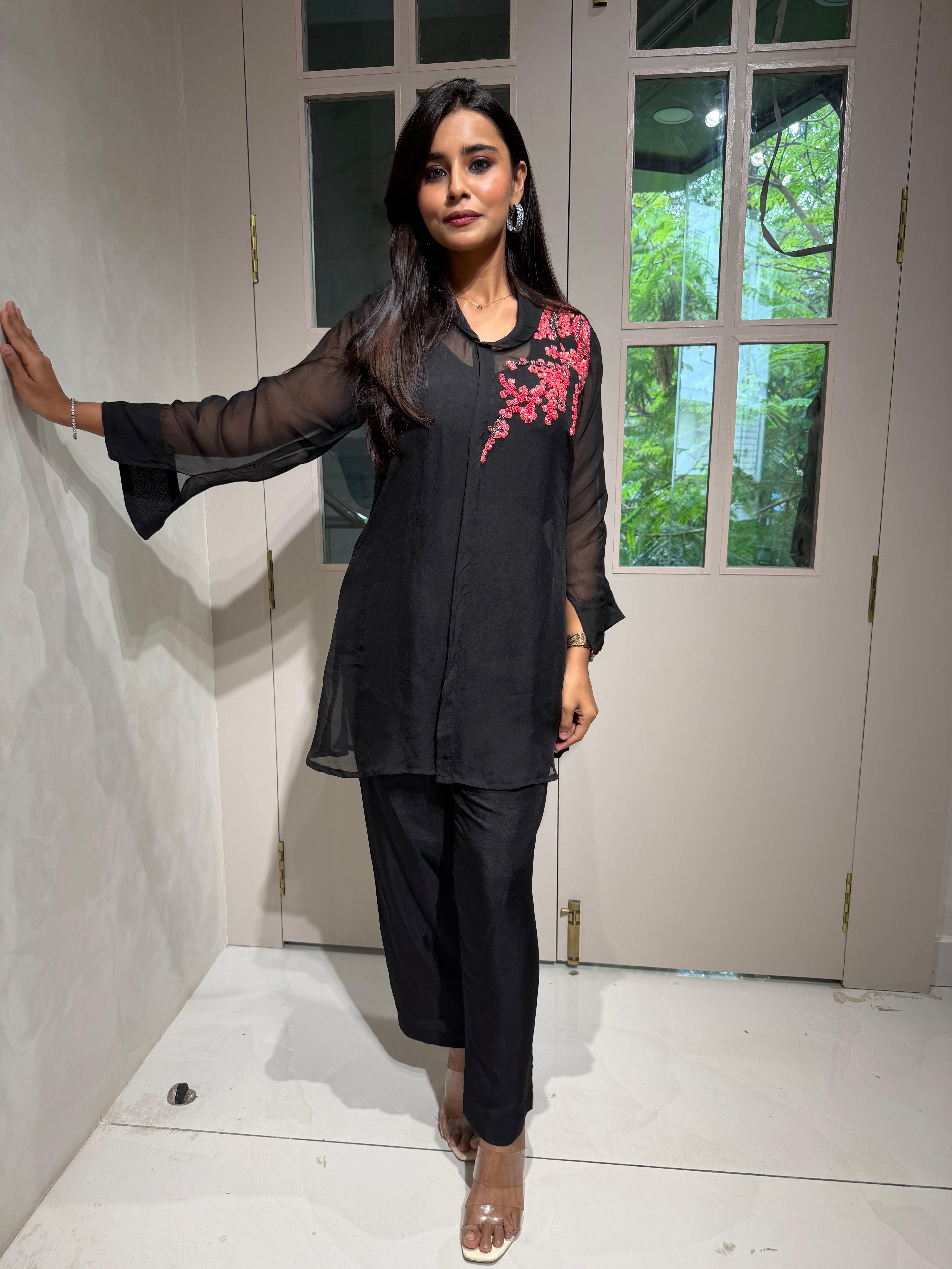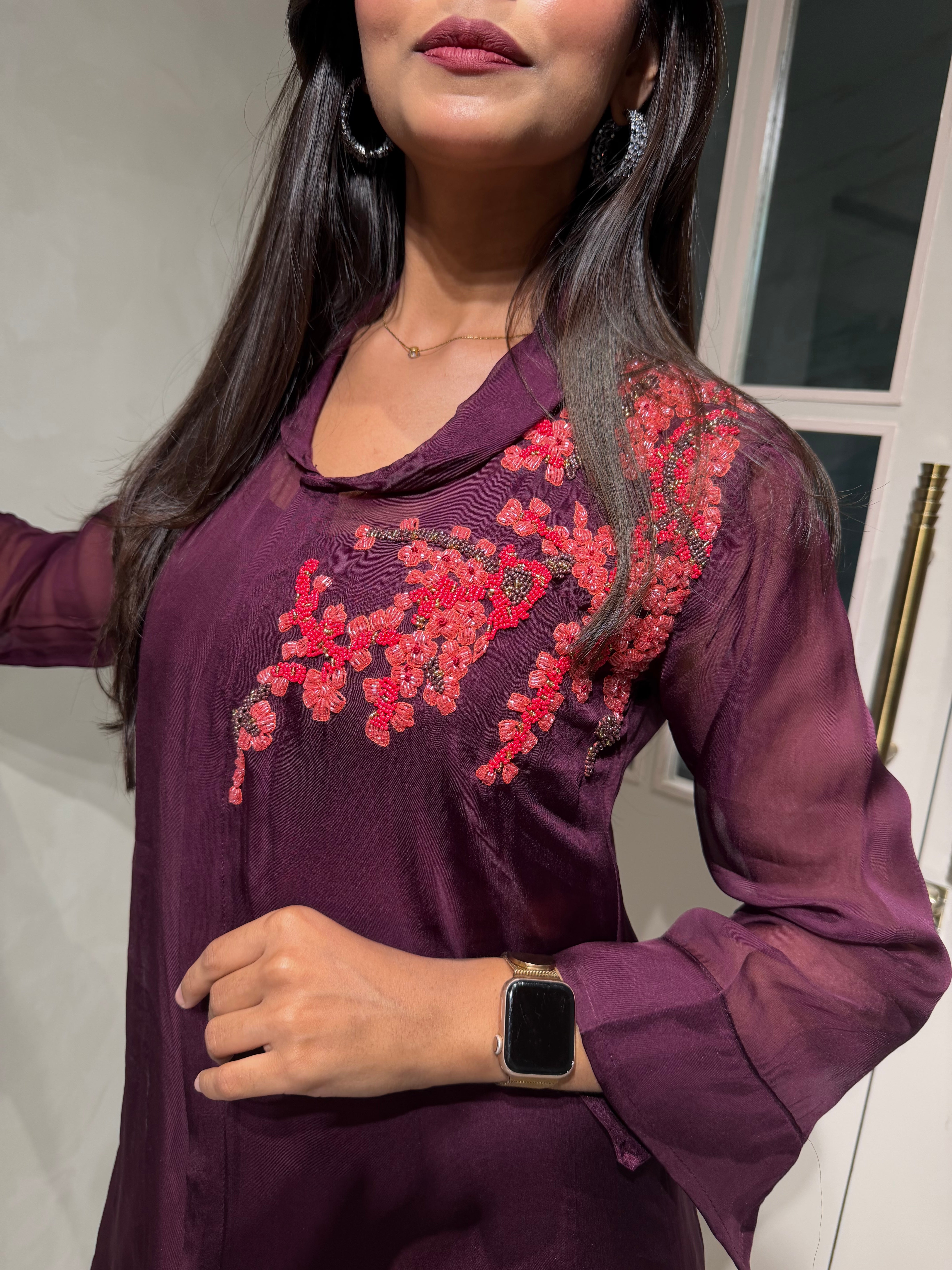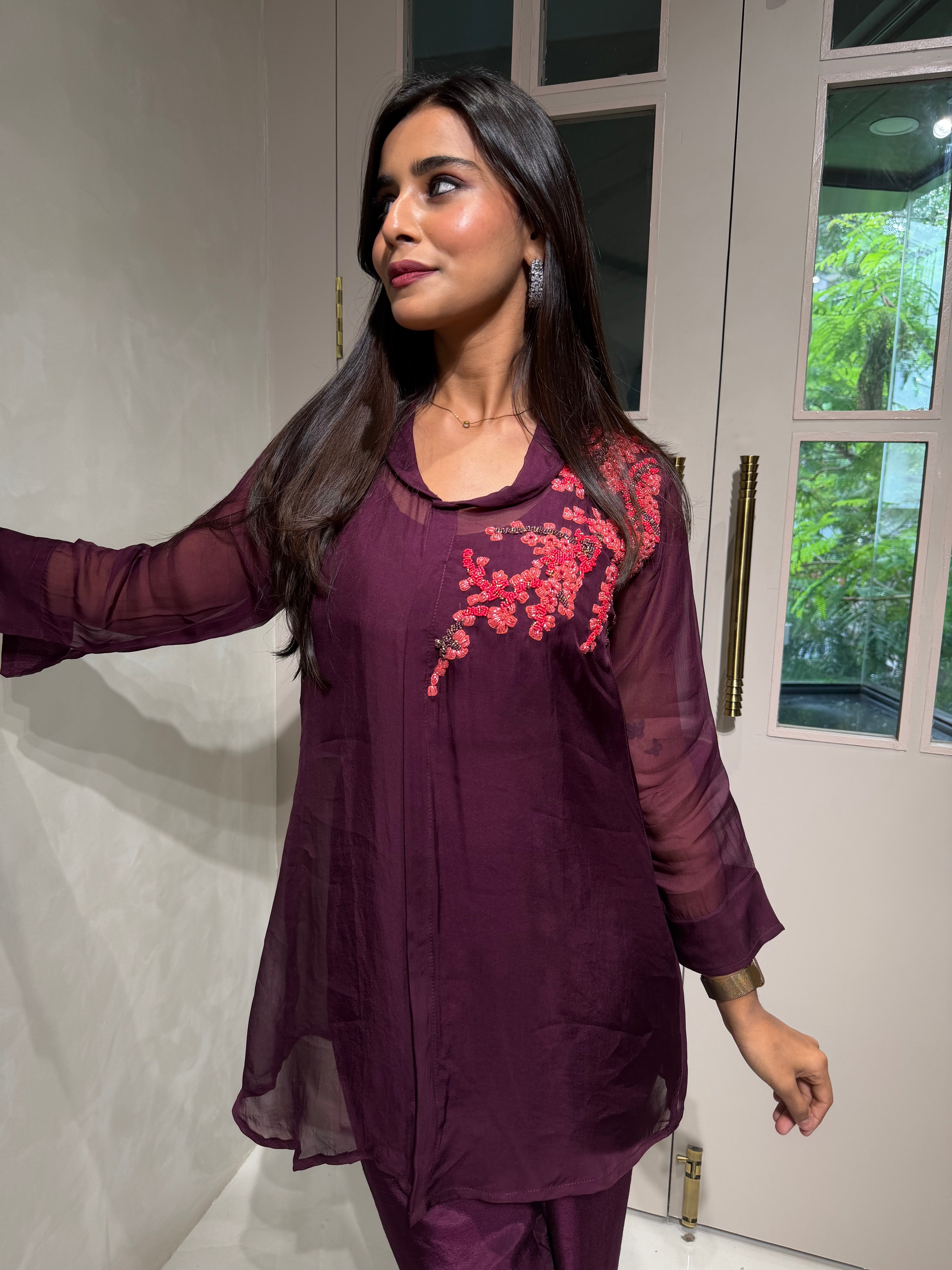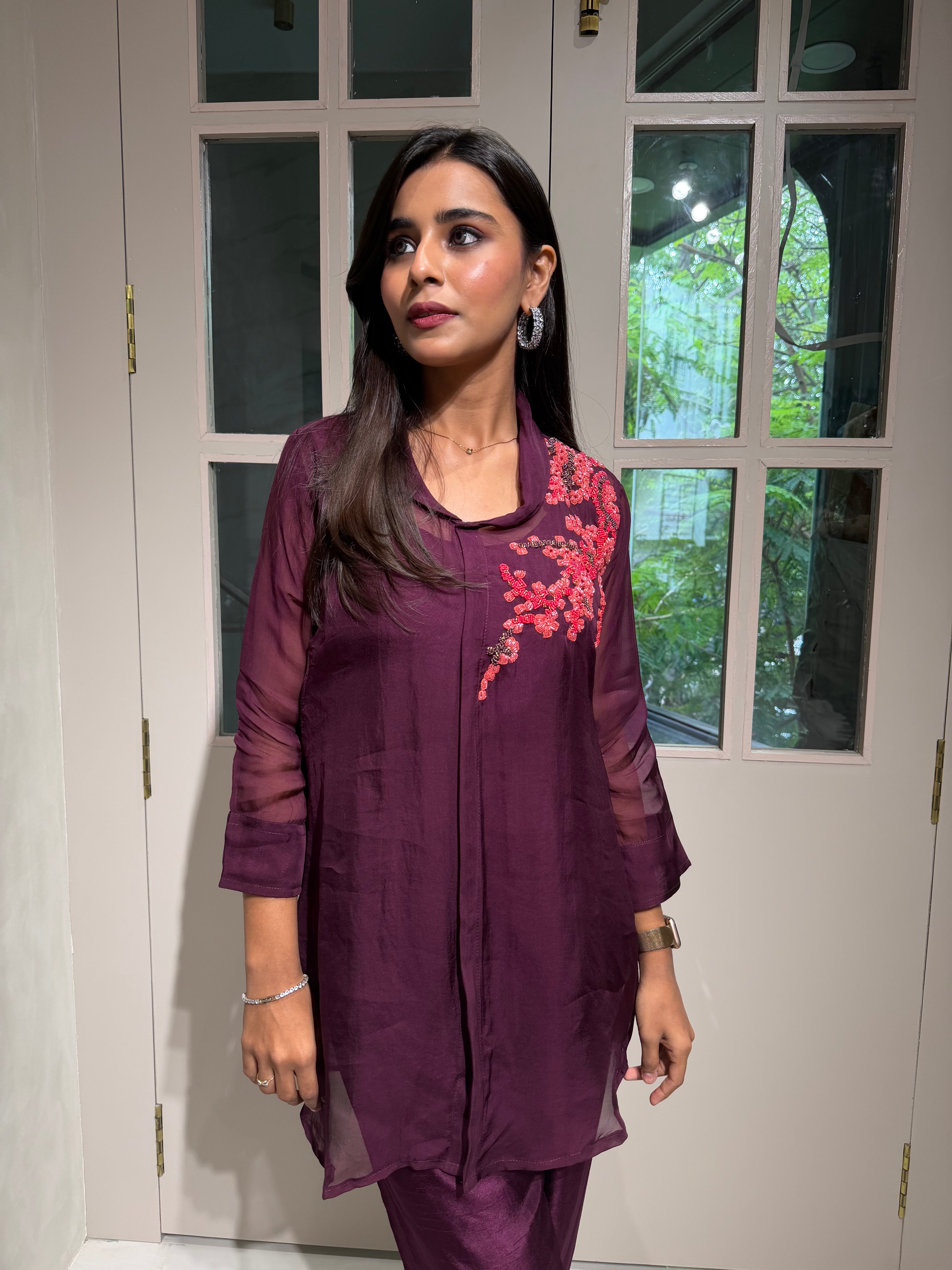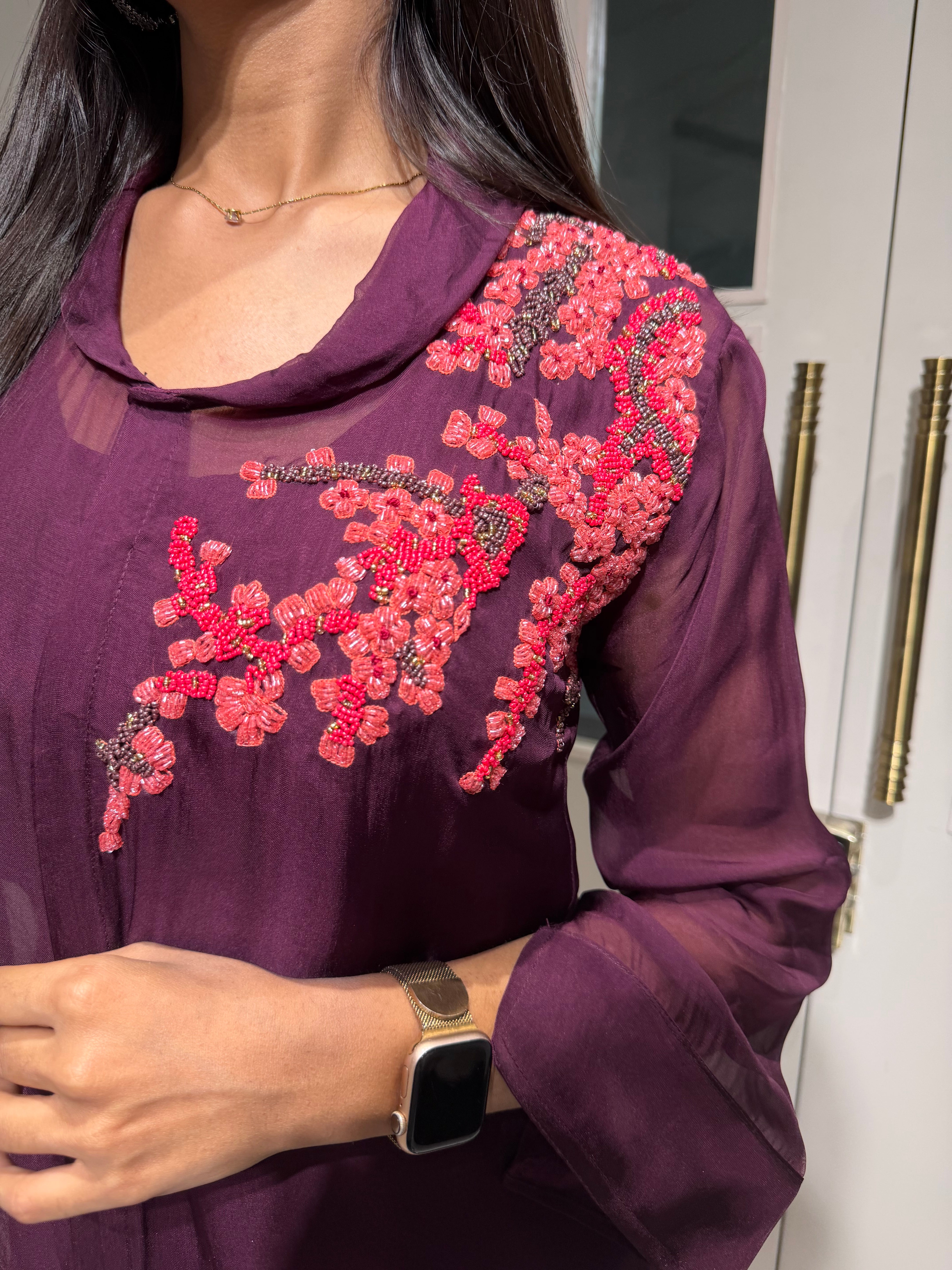 ✅ Premium Organza Coord Set with Pearl And Cutdaana Handwork On It