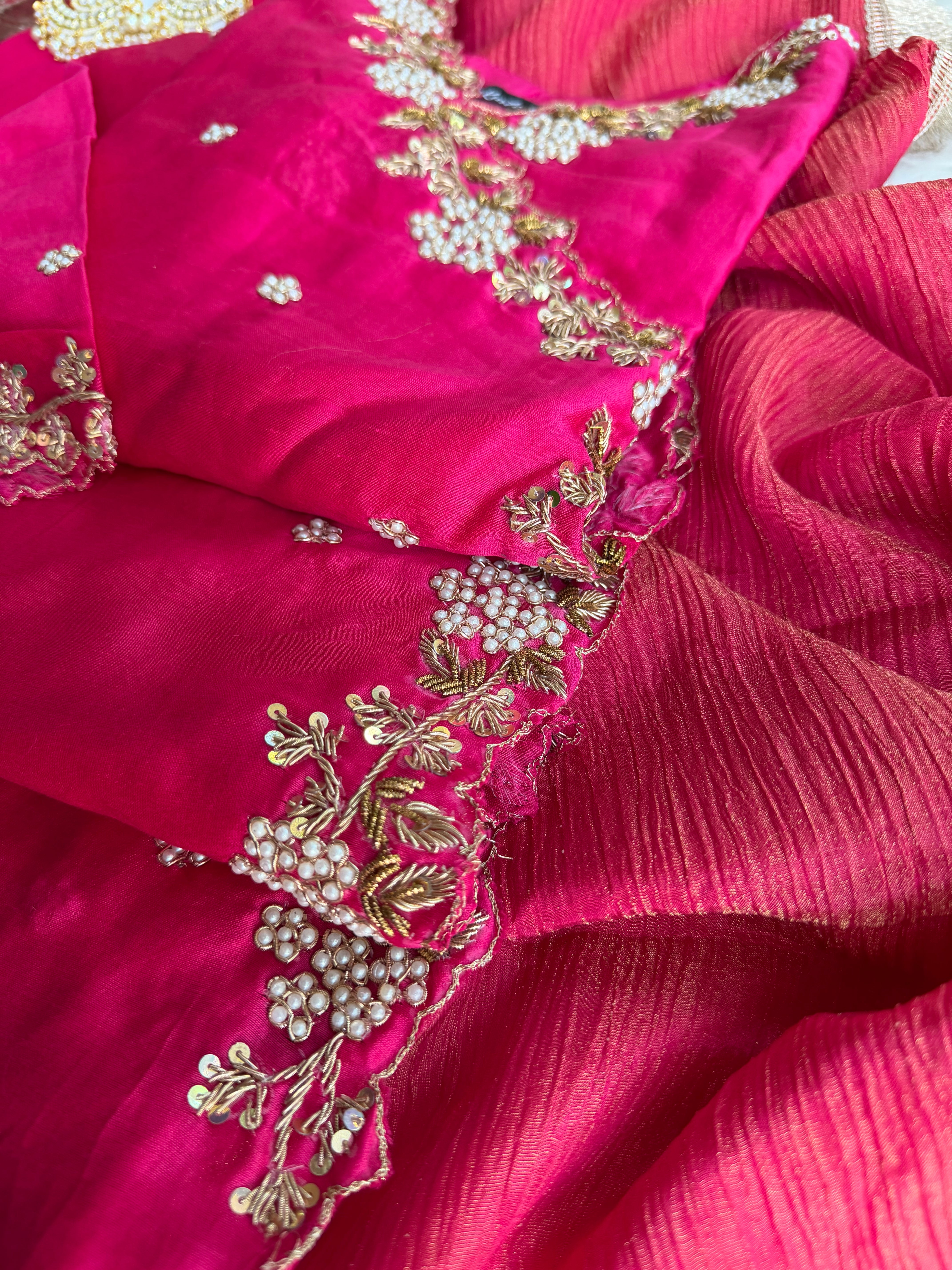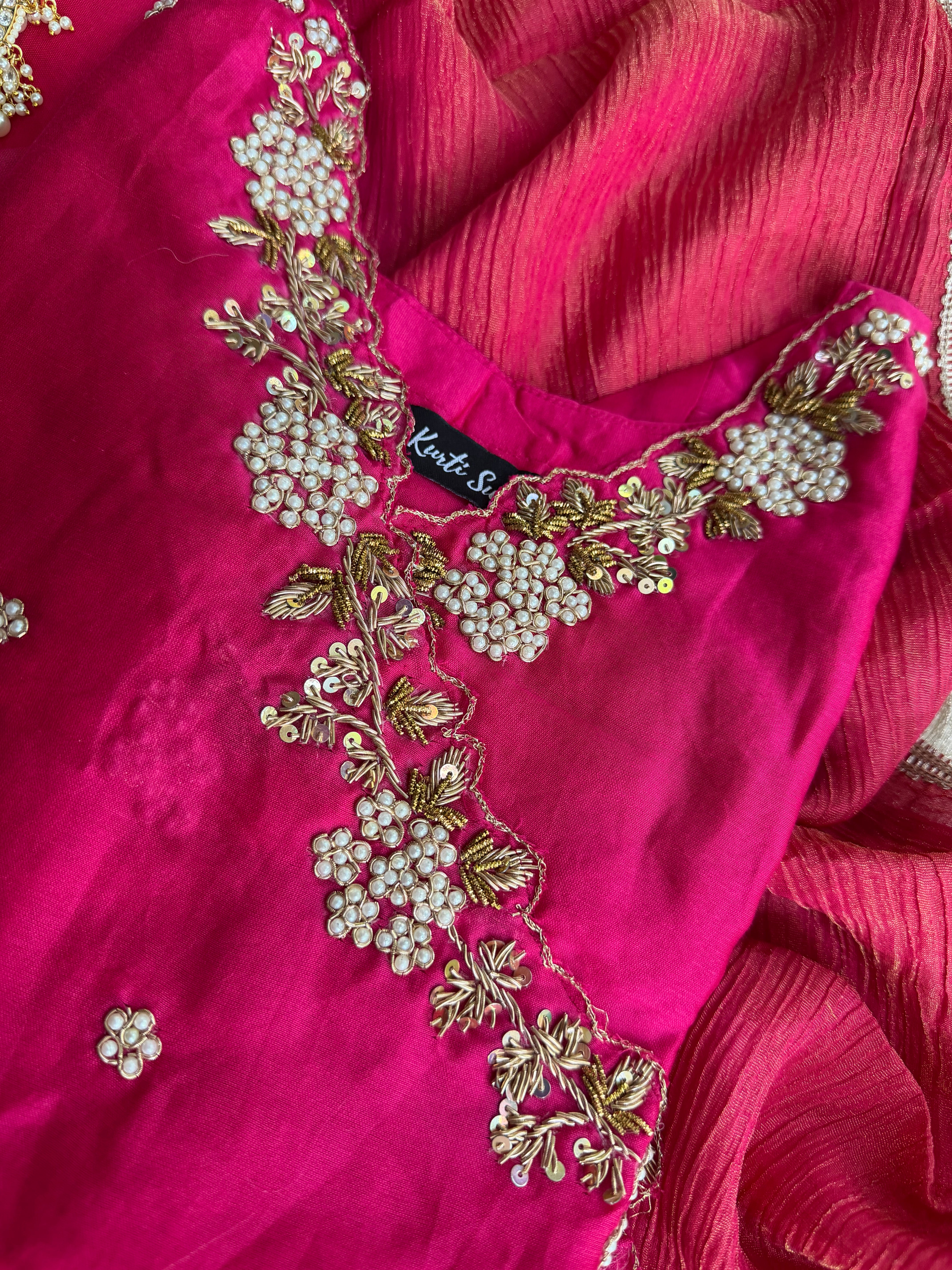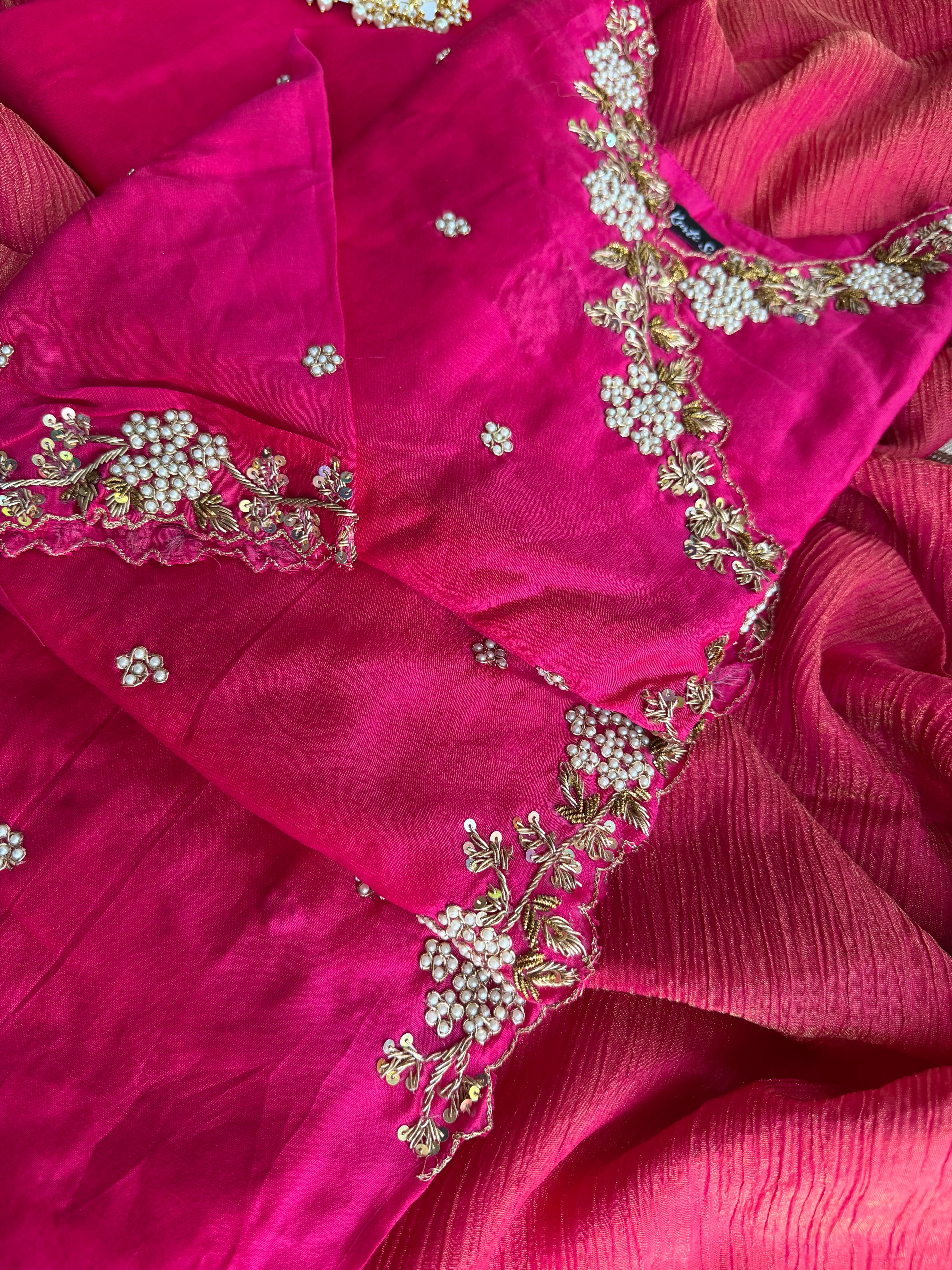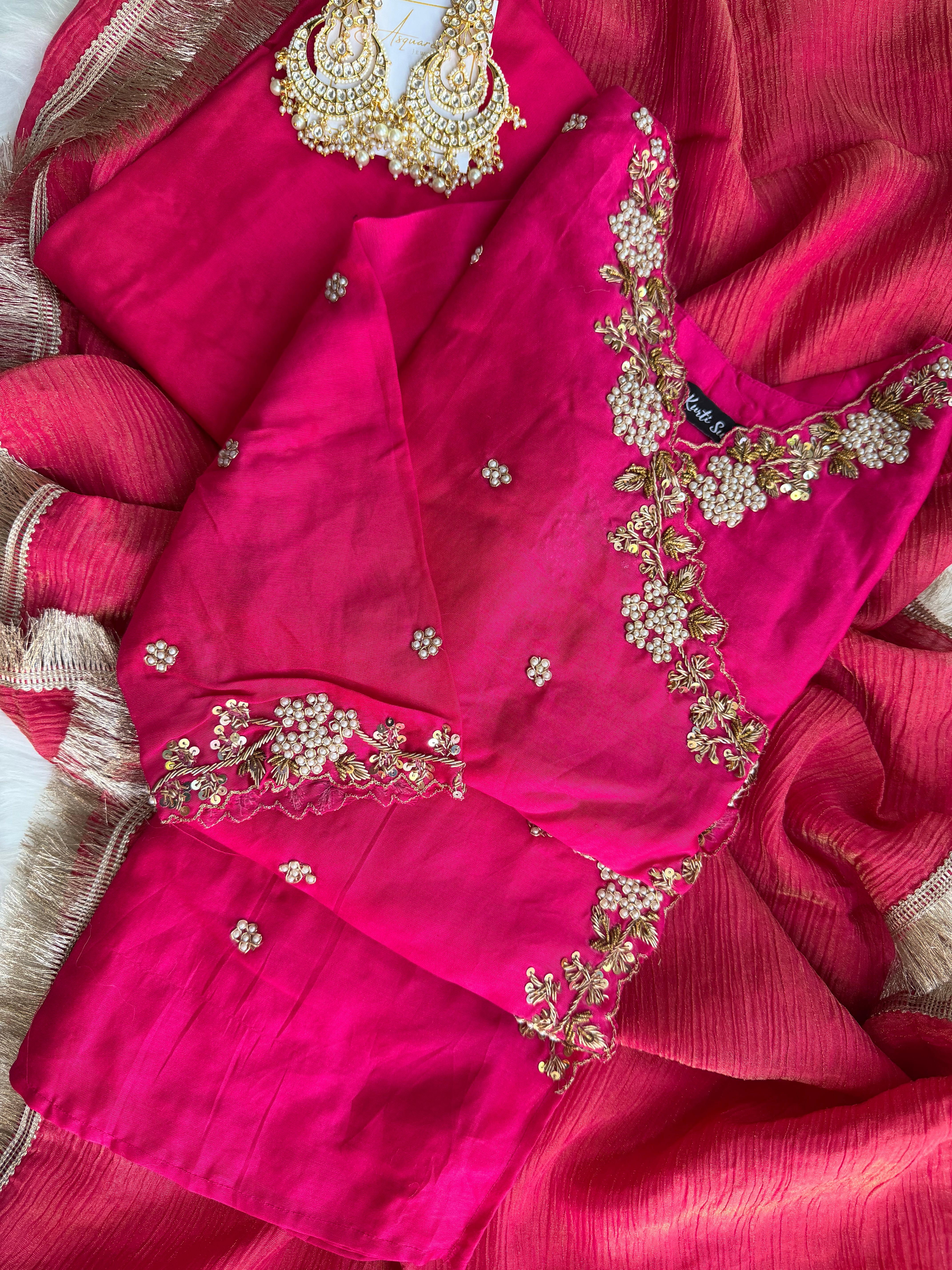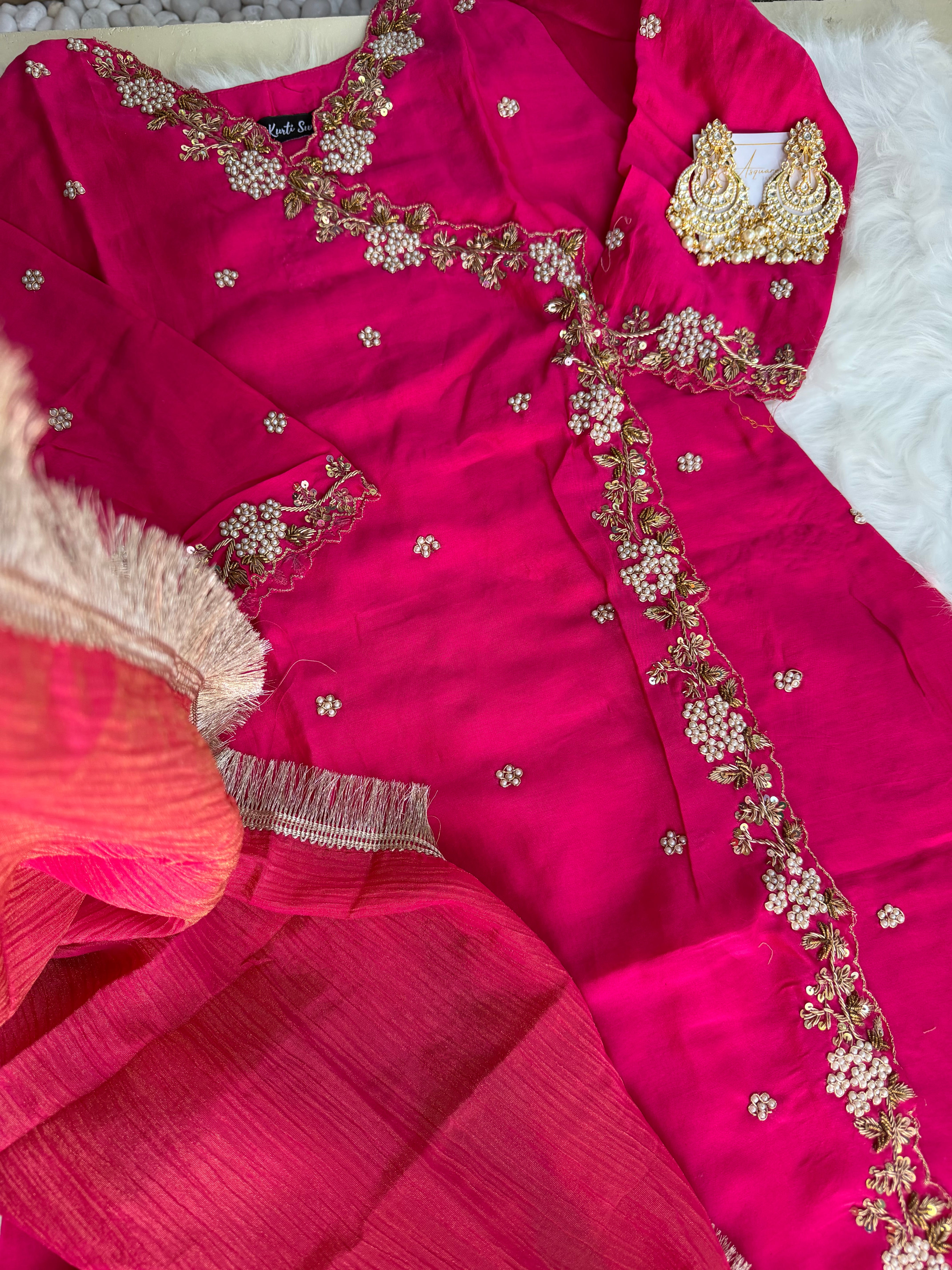 ✅ Premium Pure Chanderi Angrakha Paytern Kurti With Zardosi, Dabka, Pearl Heavy Handwork On The Yoke