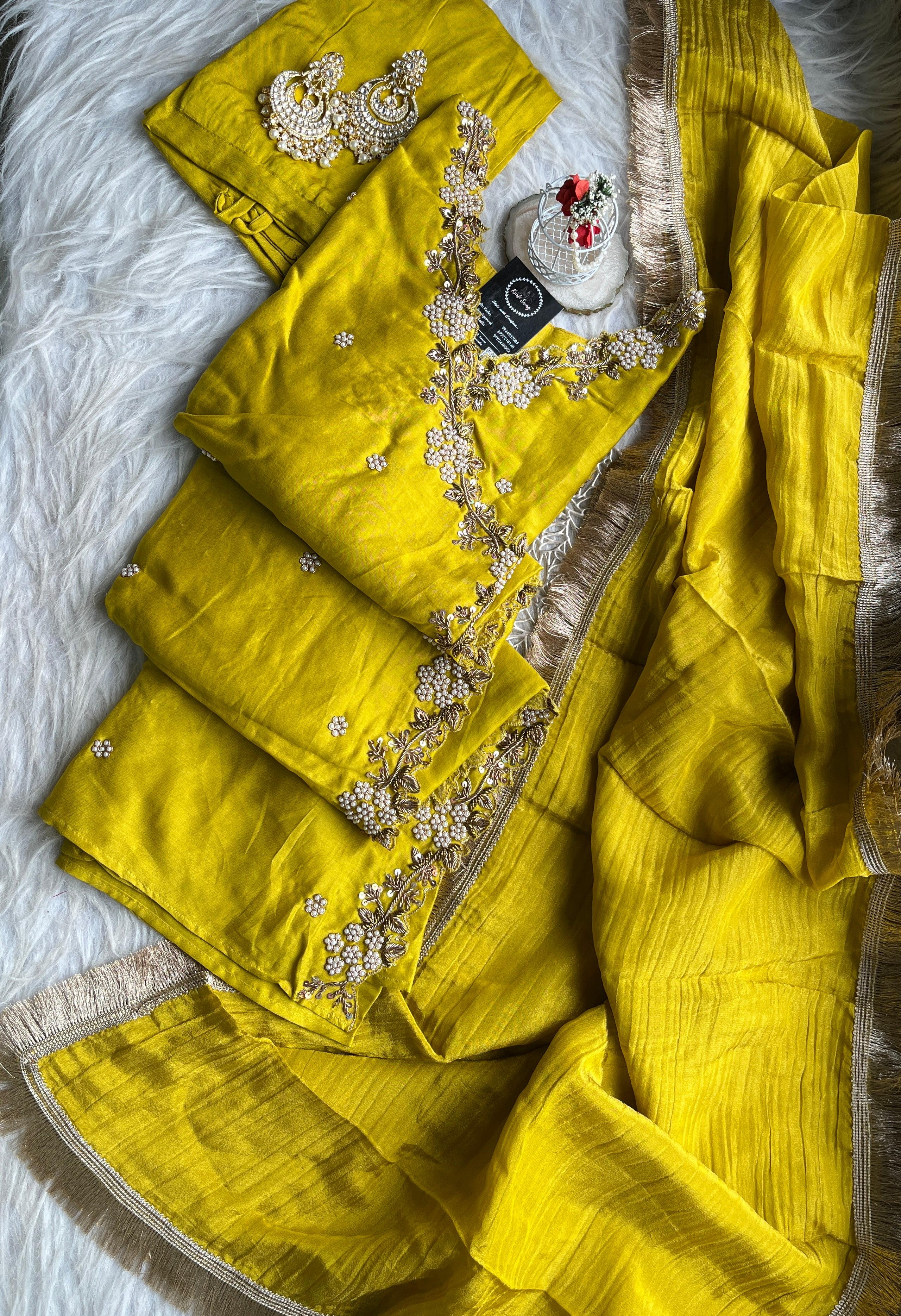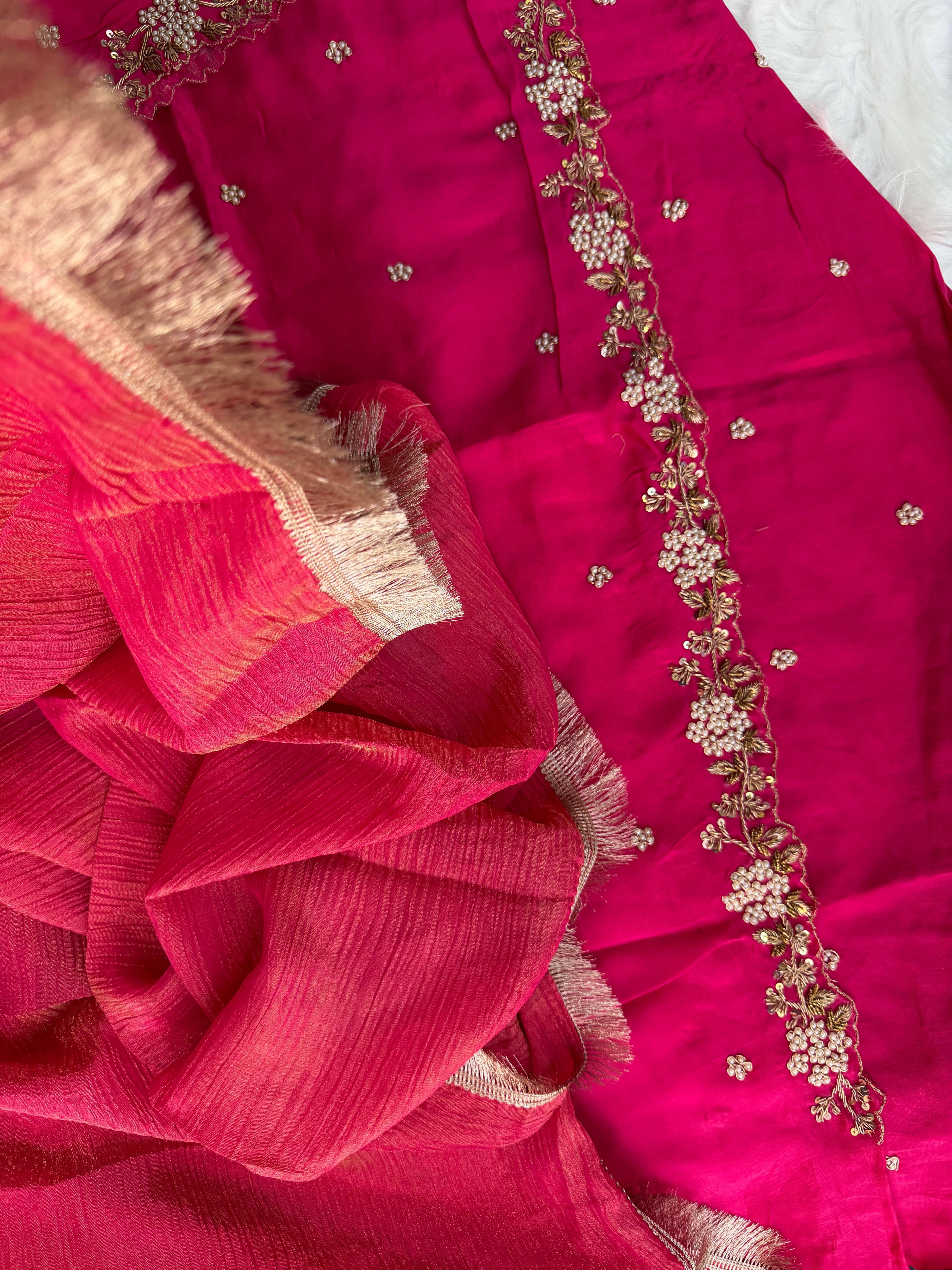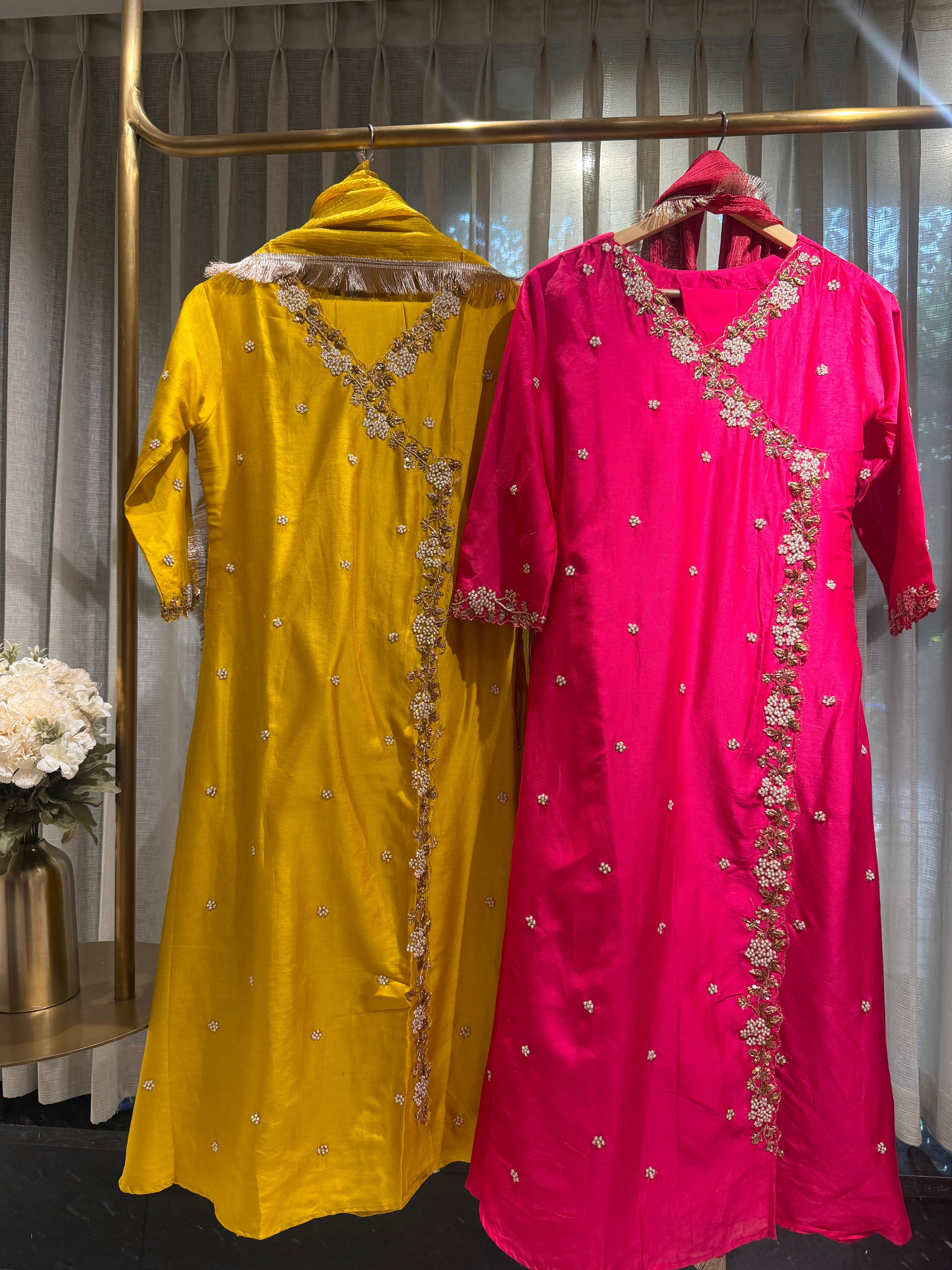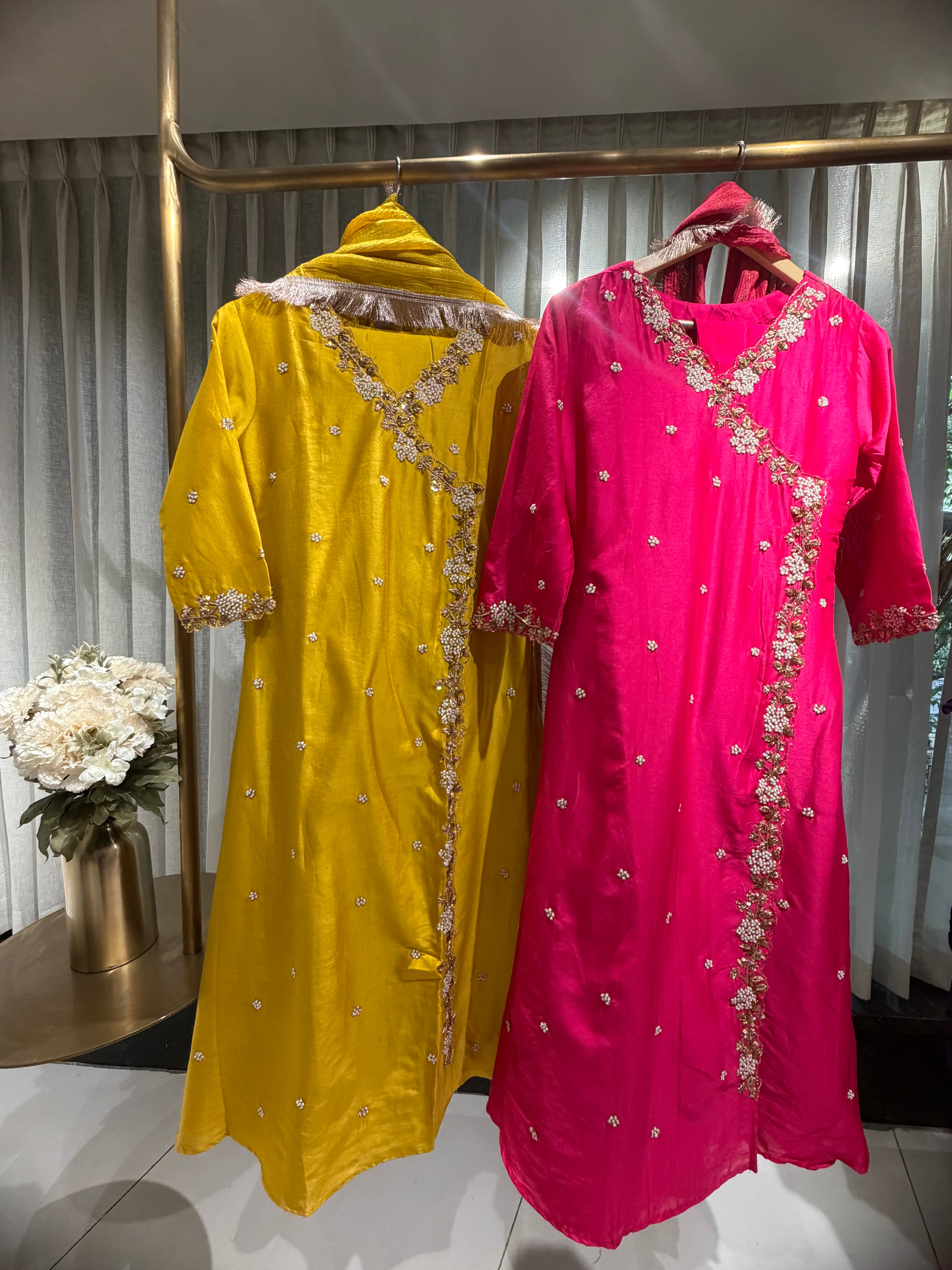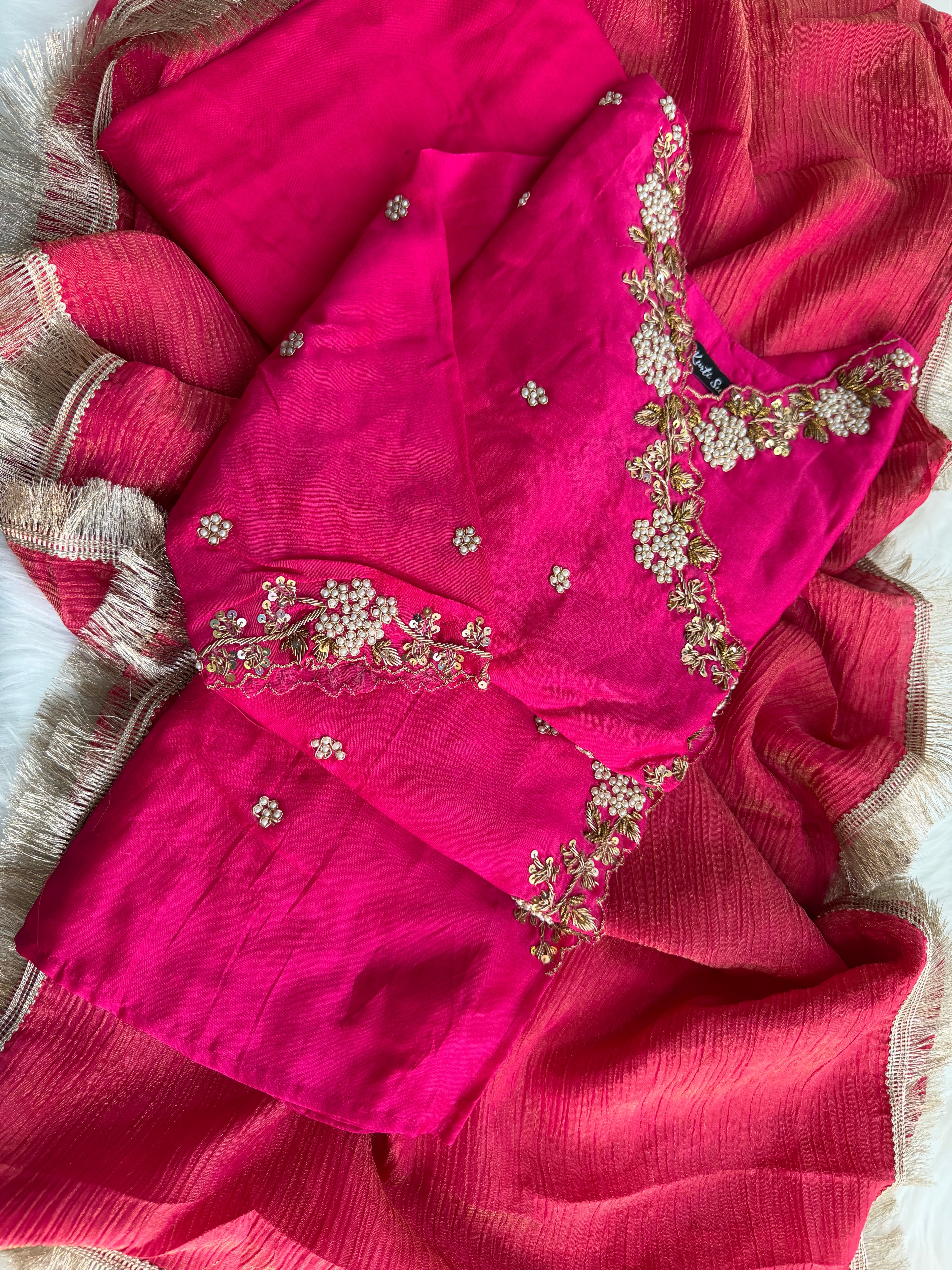 ✅ Premium Pure Chanderi Angrakha Paytern Kurti With Zardosi, Dabka, Pearl Heavy Handwork On The Yoke