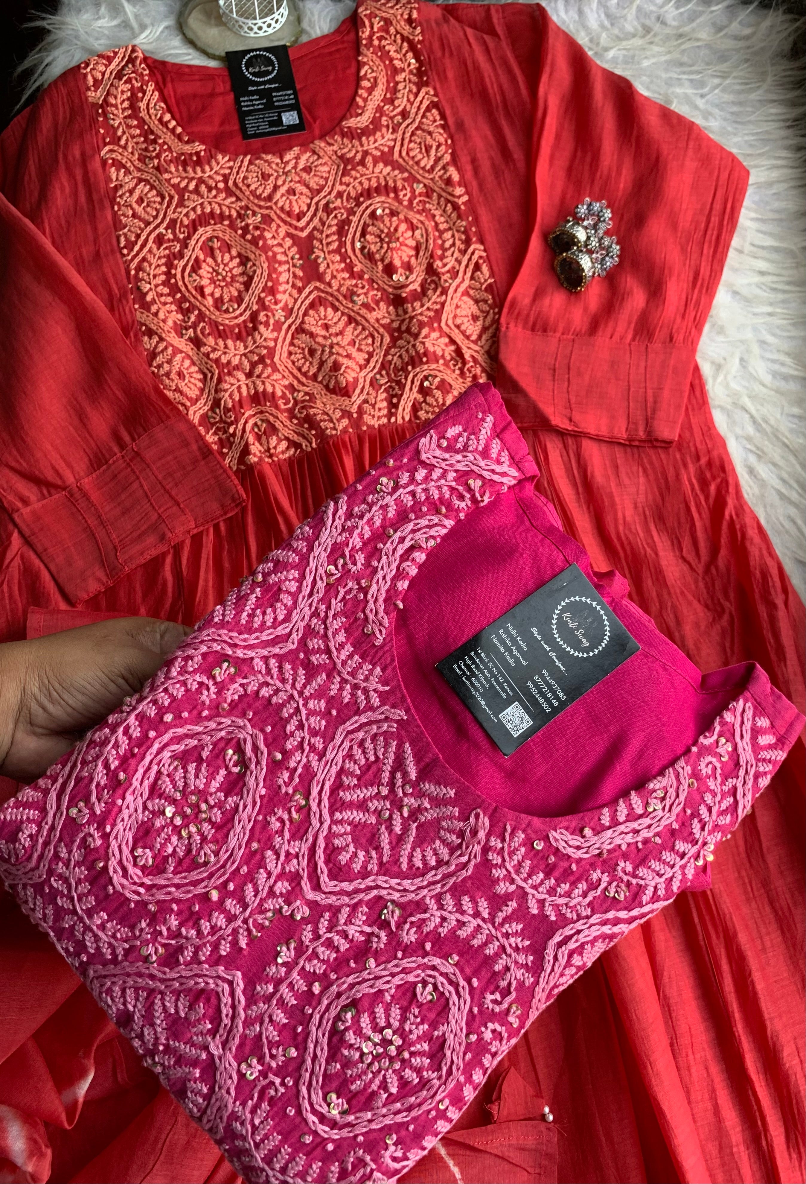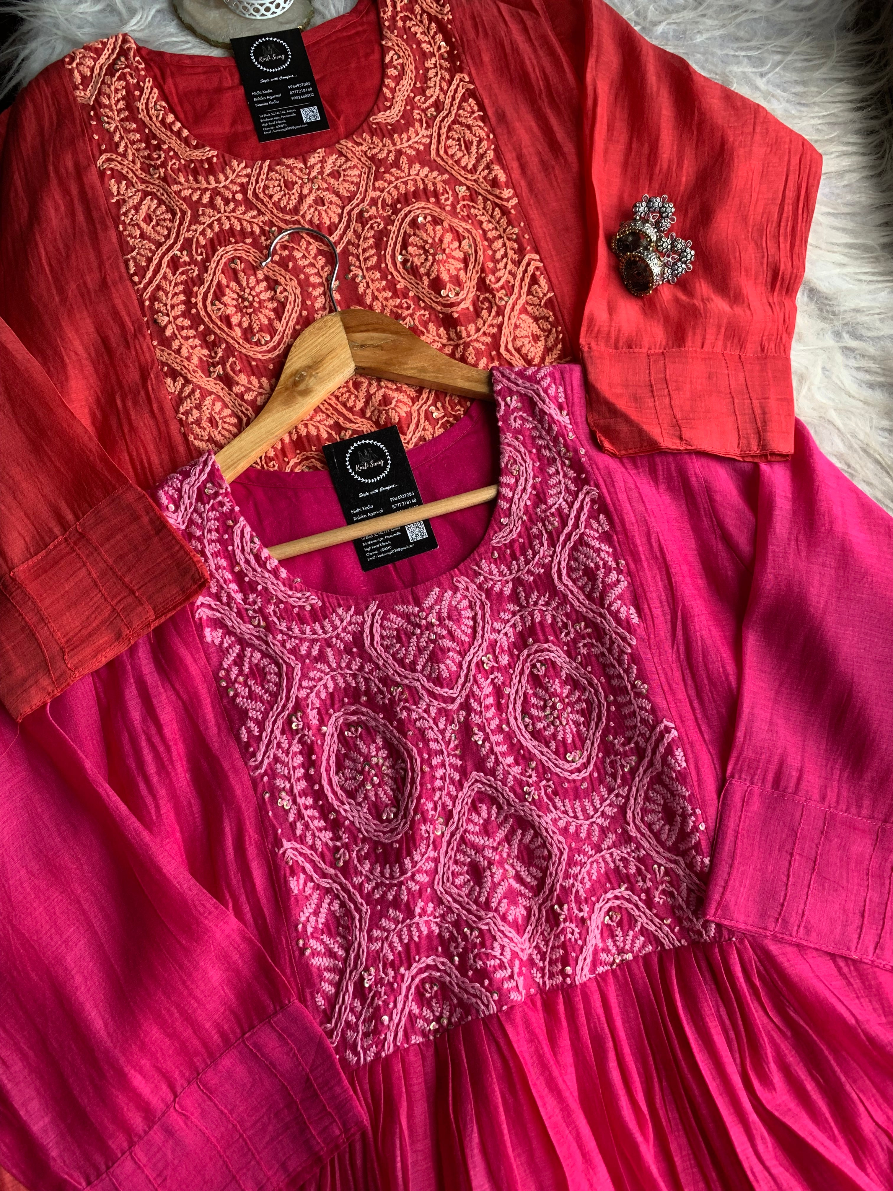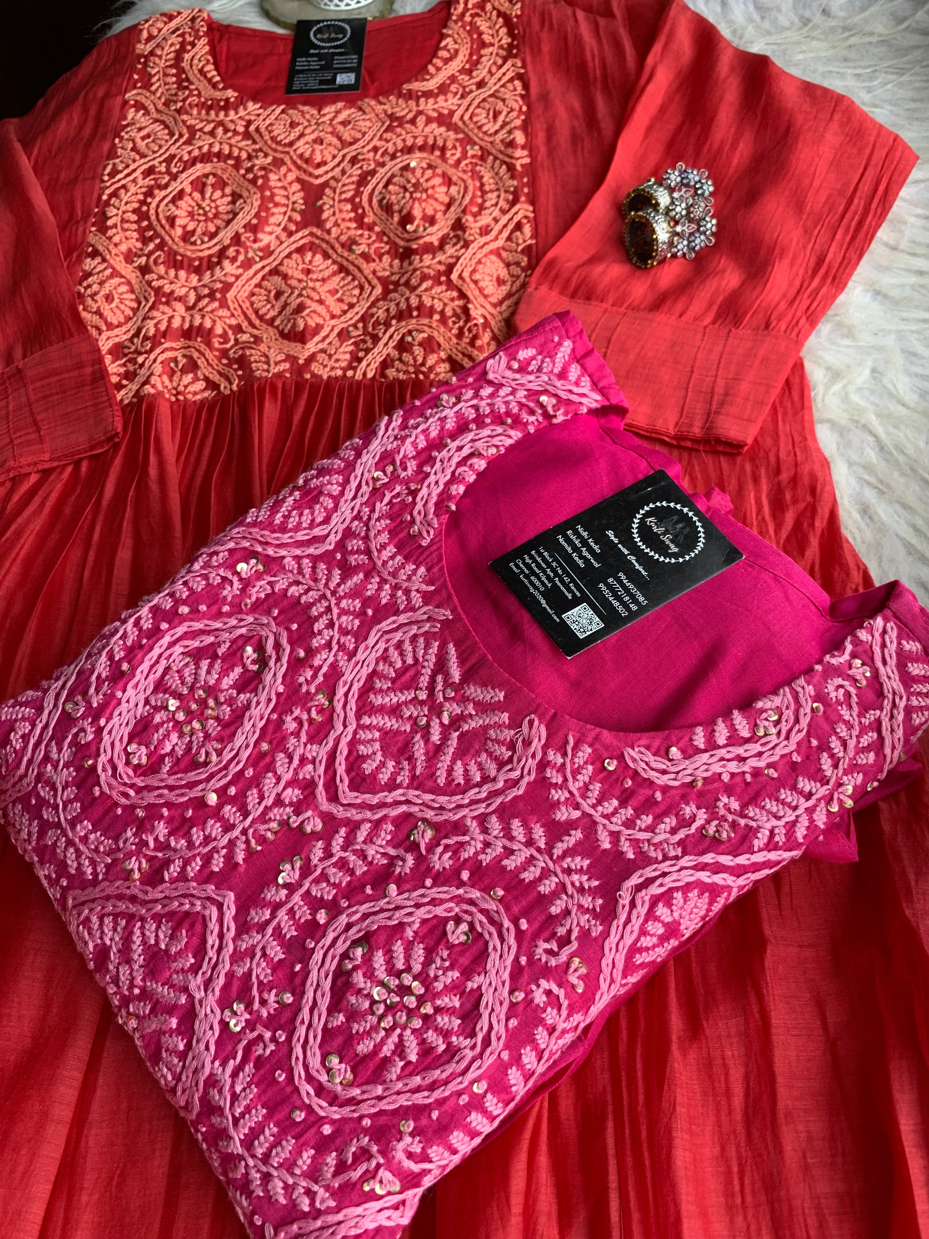 ✅ Premium Mul Chanderi Kurti With Thread Work On The Yoke Of The Kurti