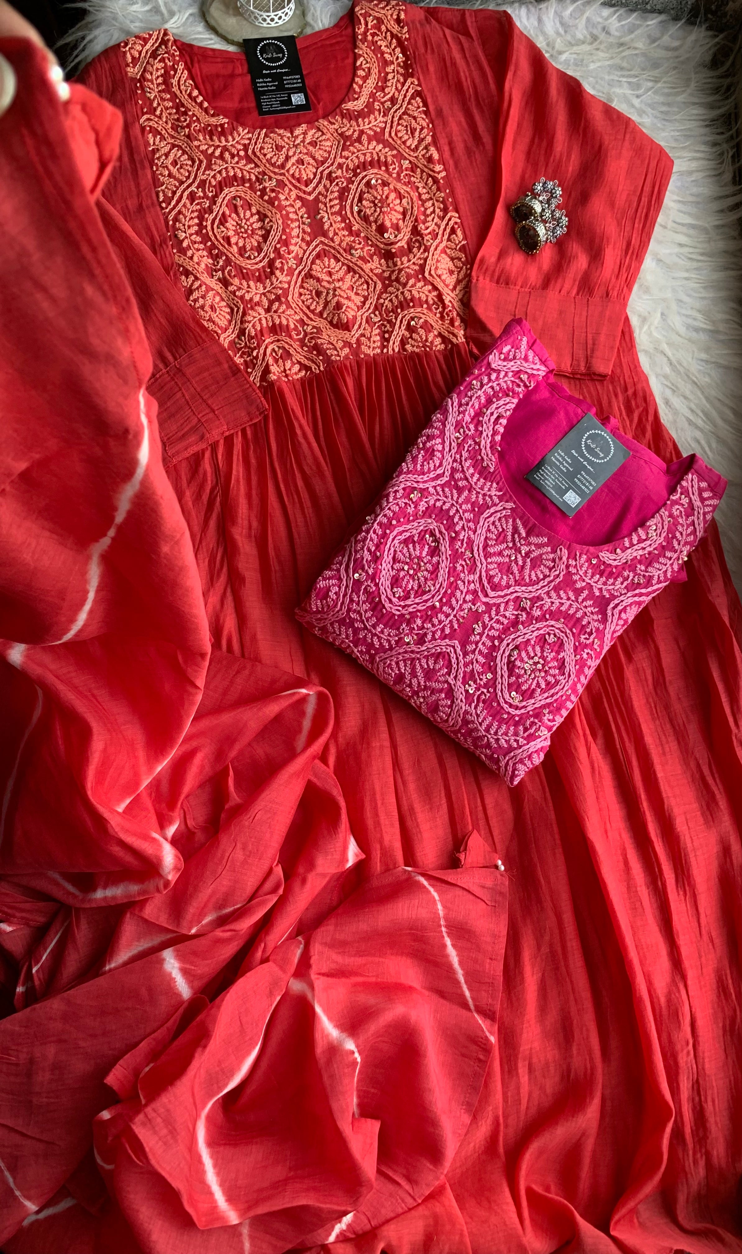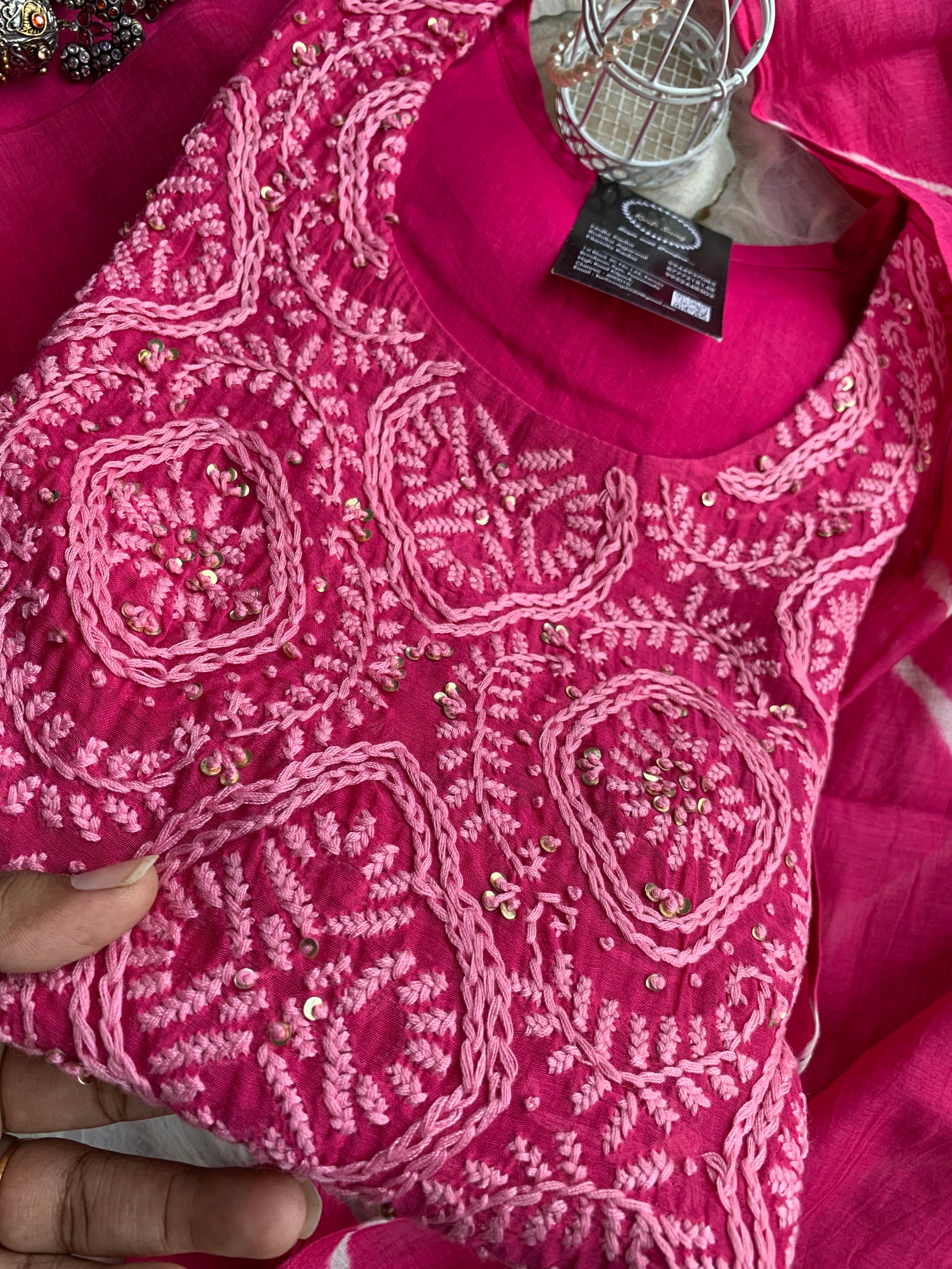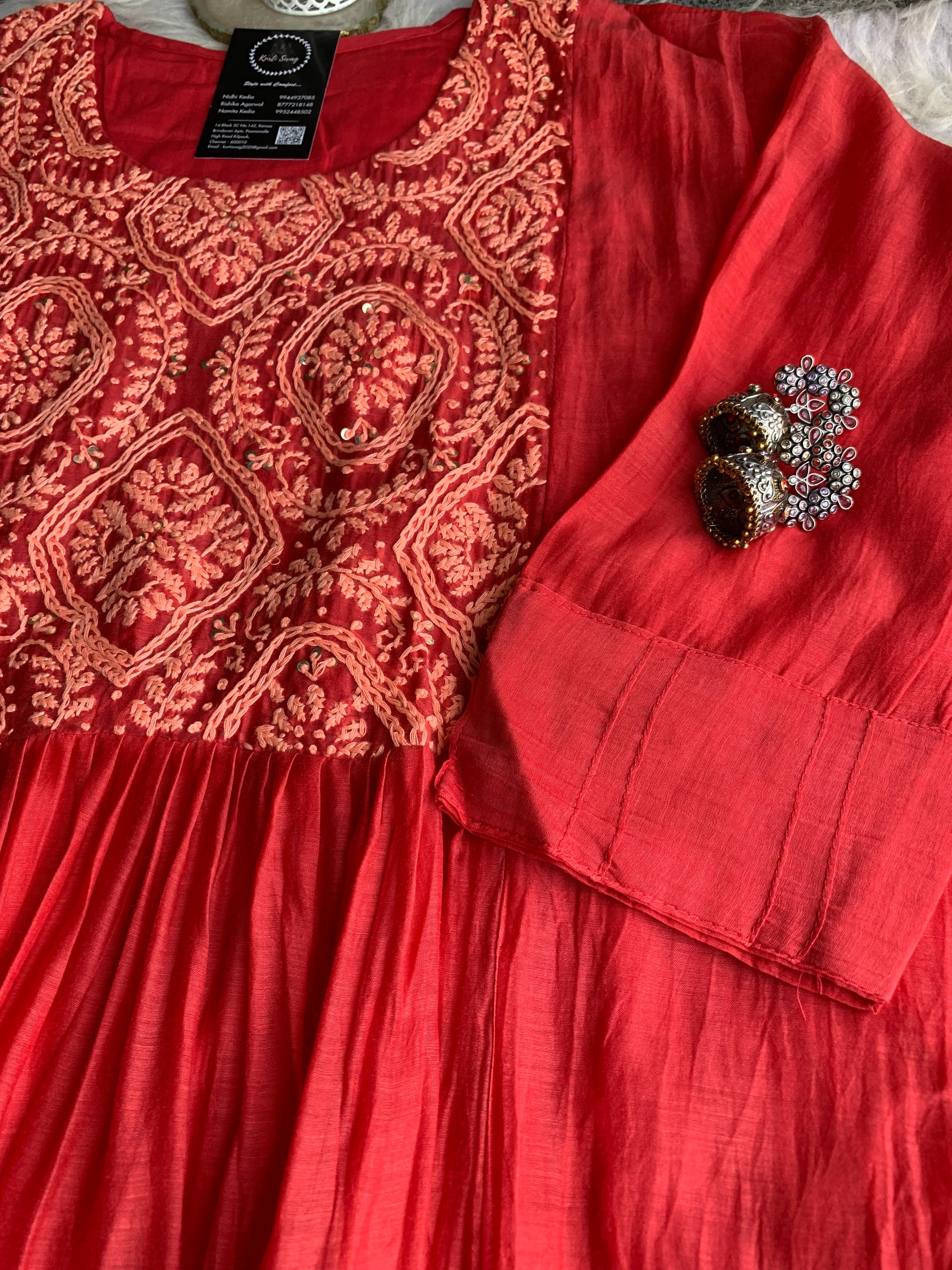 ✅ Premium Mul Chanderi Kurti With Thread Work On The Yoke Of The Kurti