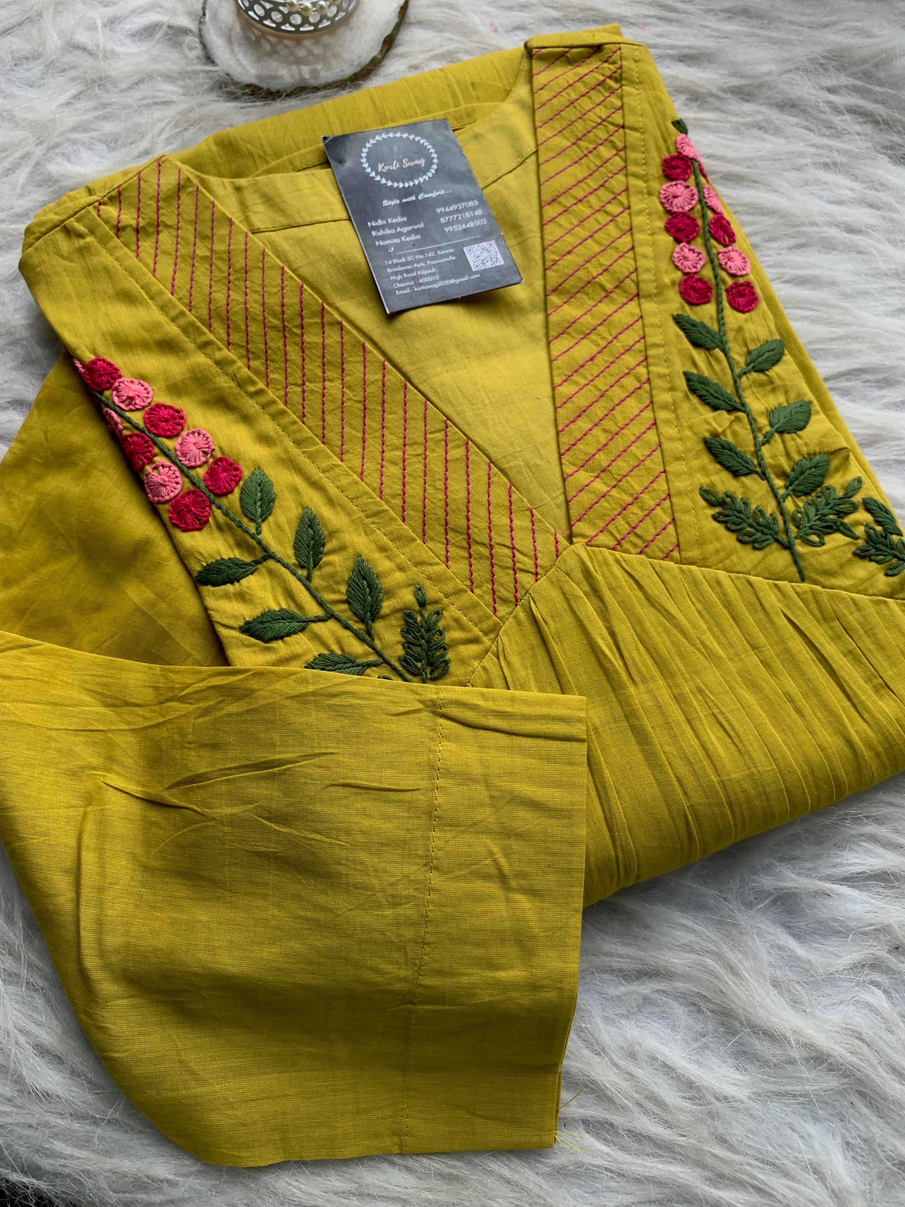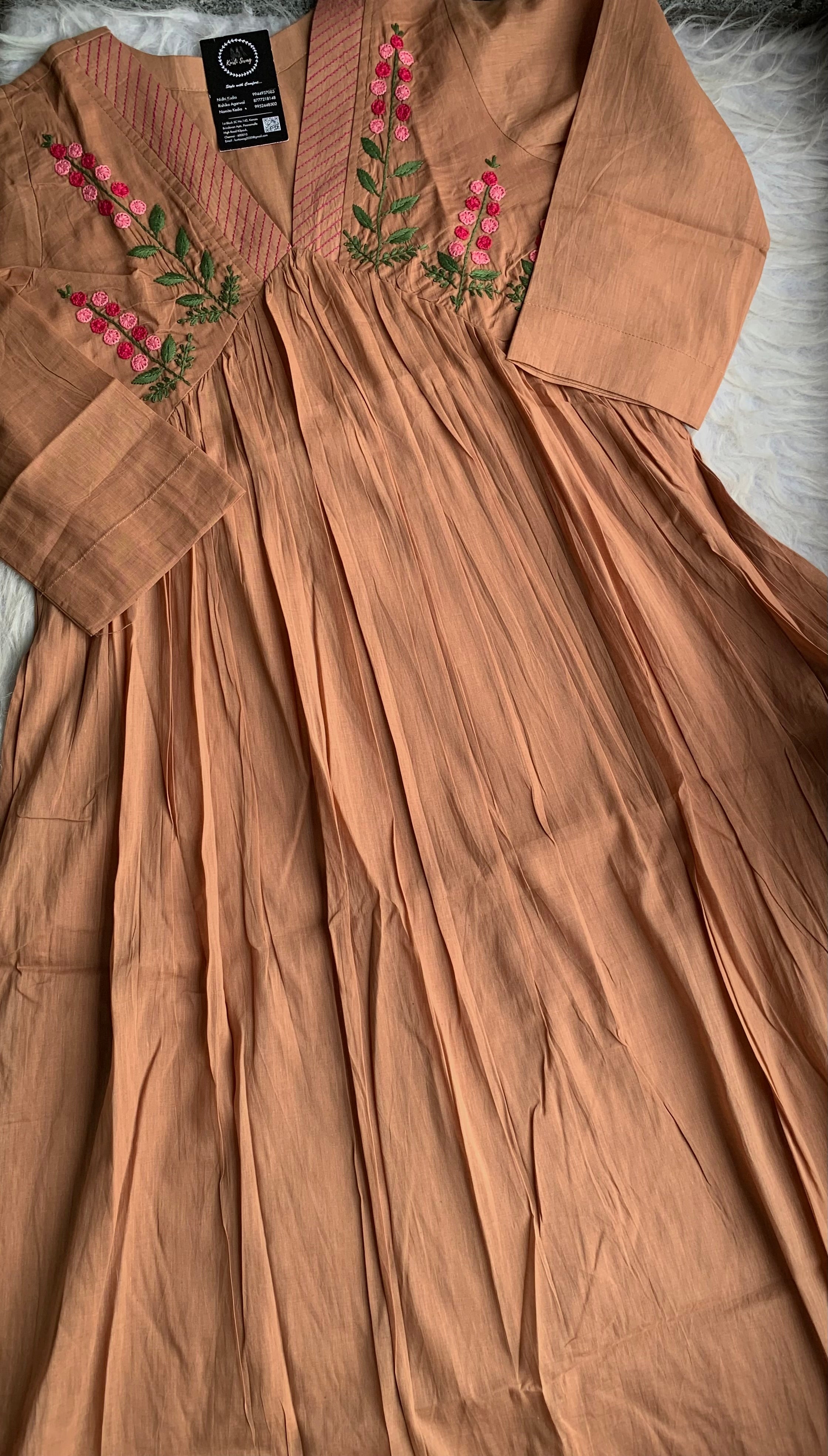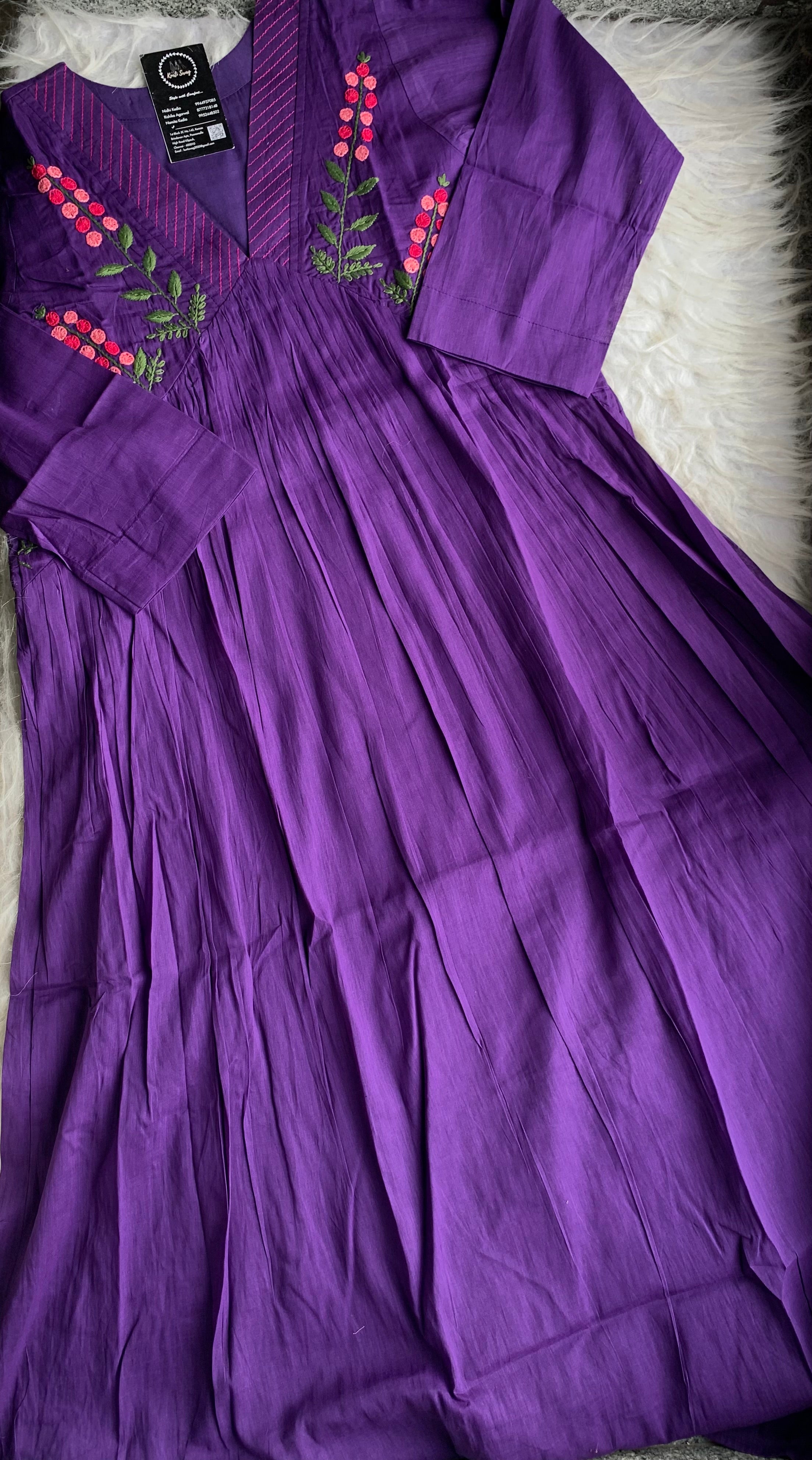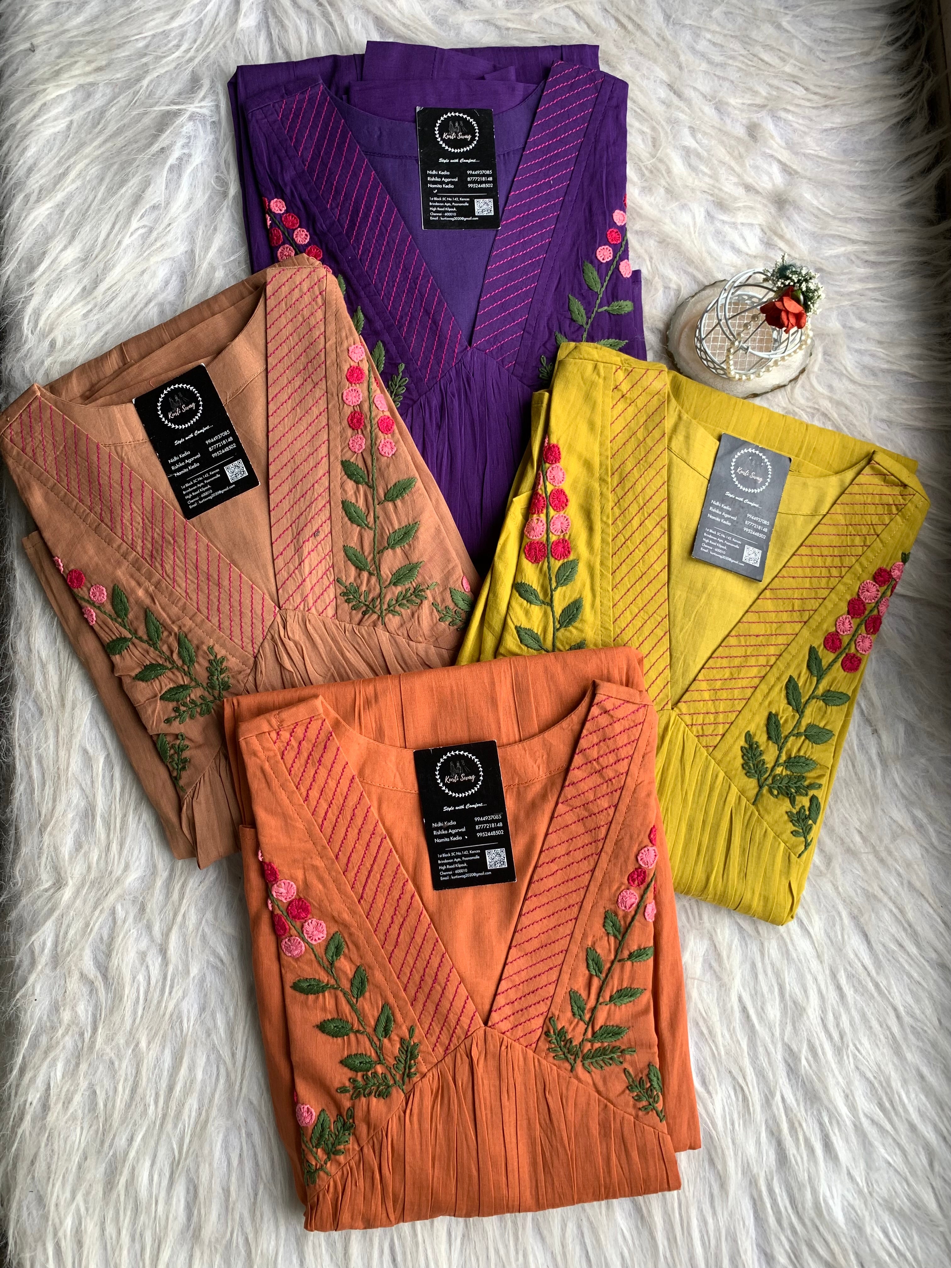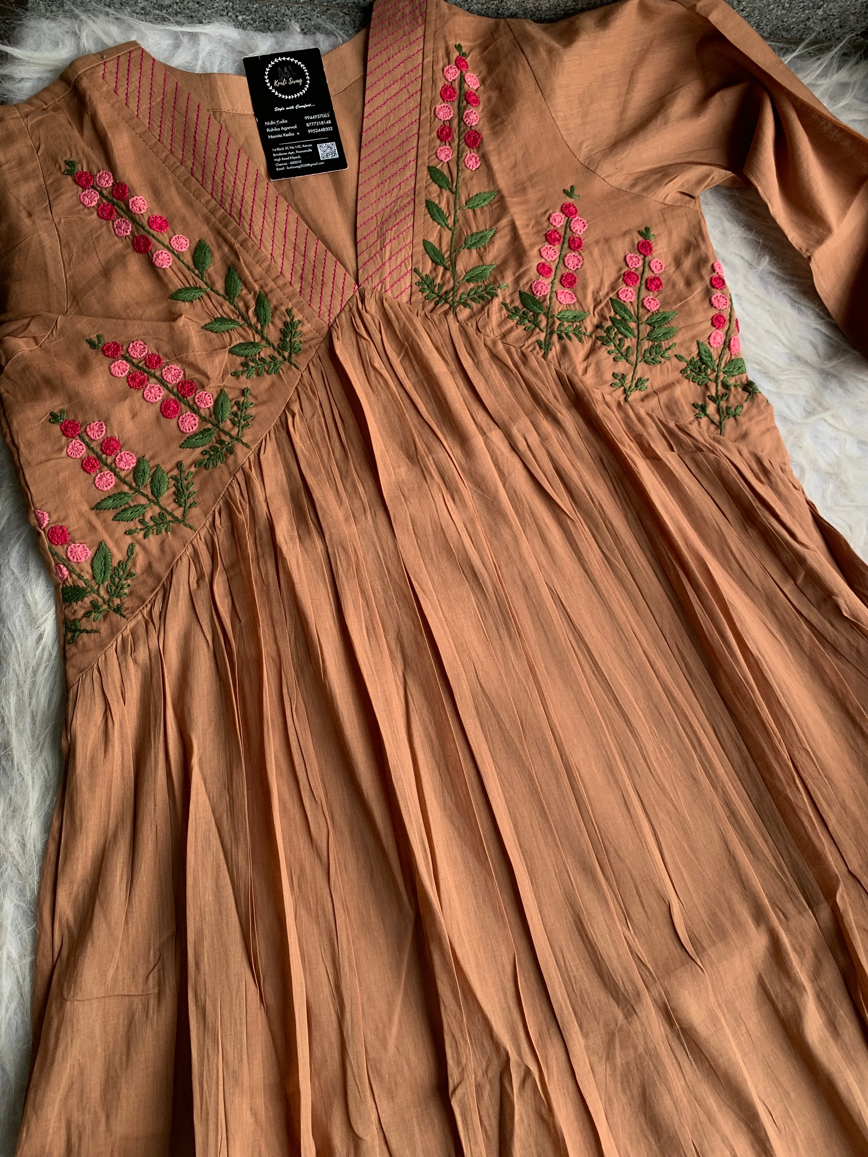 ✅ Organic cotton Kurti with thread and hand embroidery on the Kurti (46 inches kurta length)