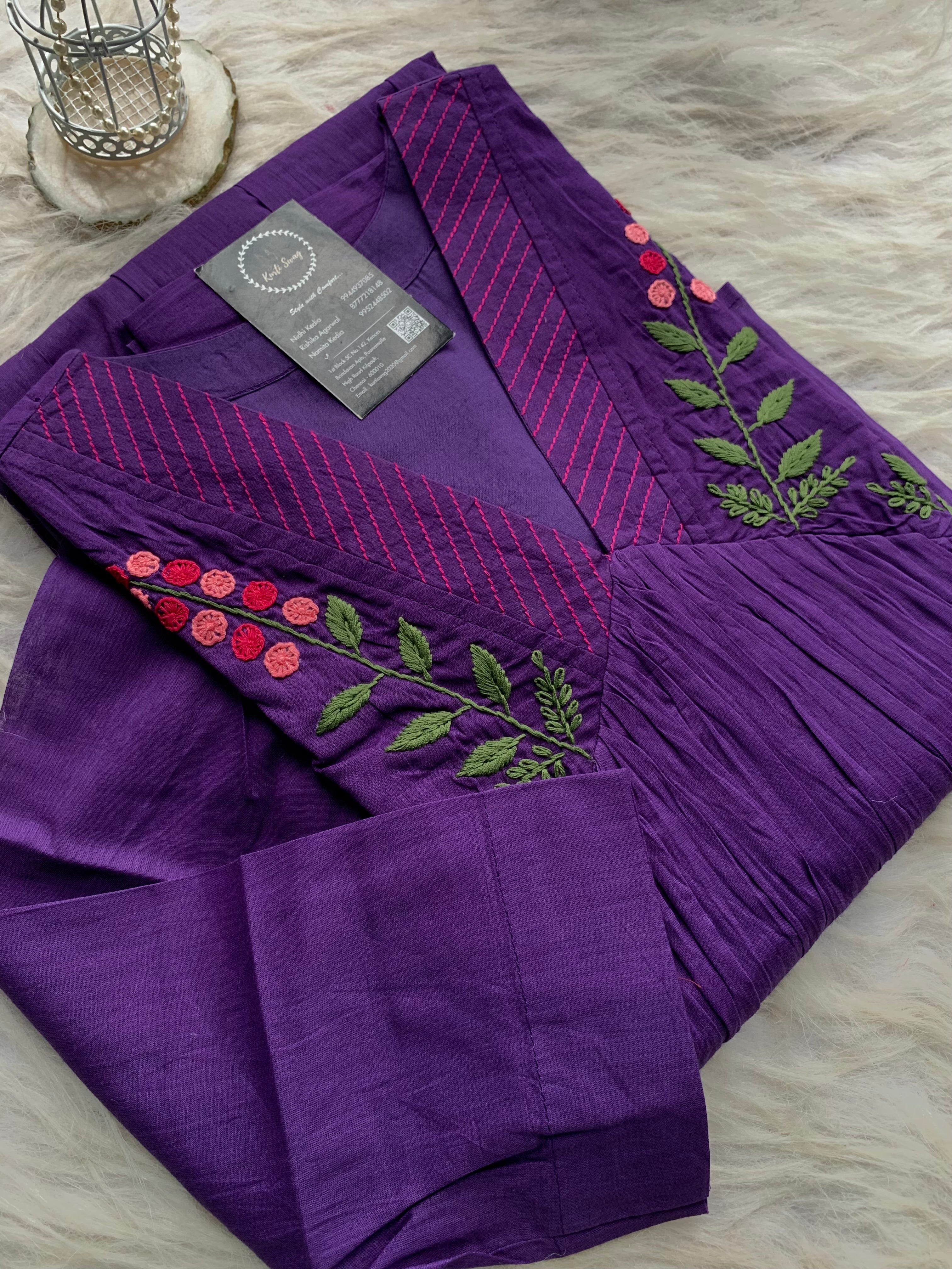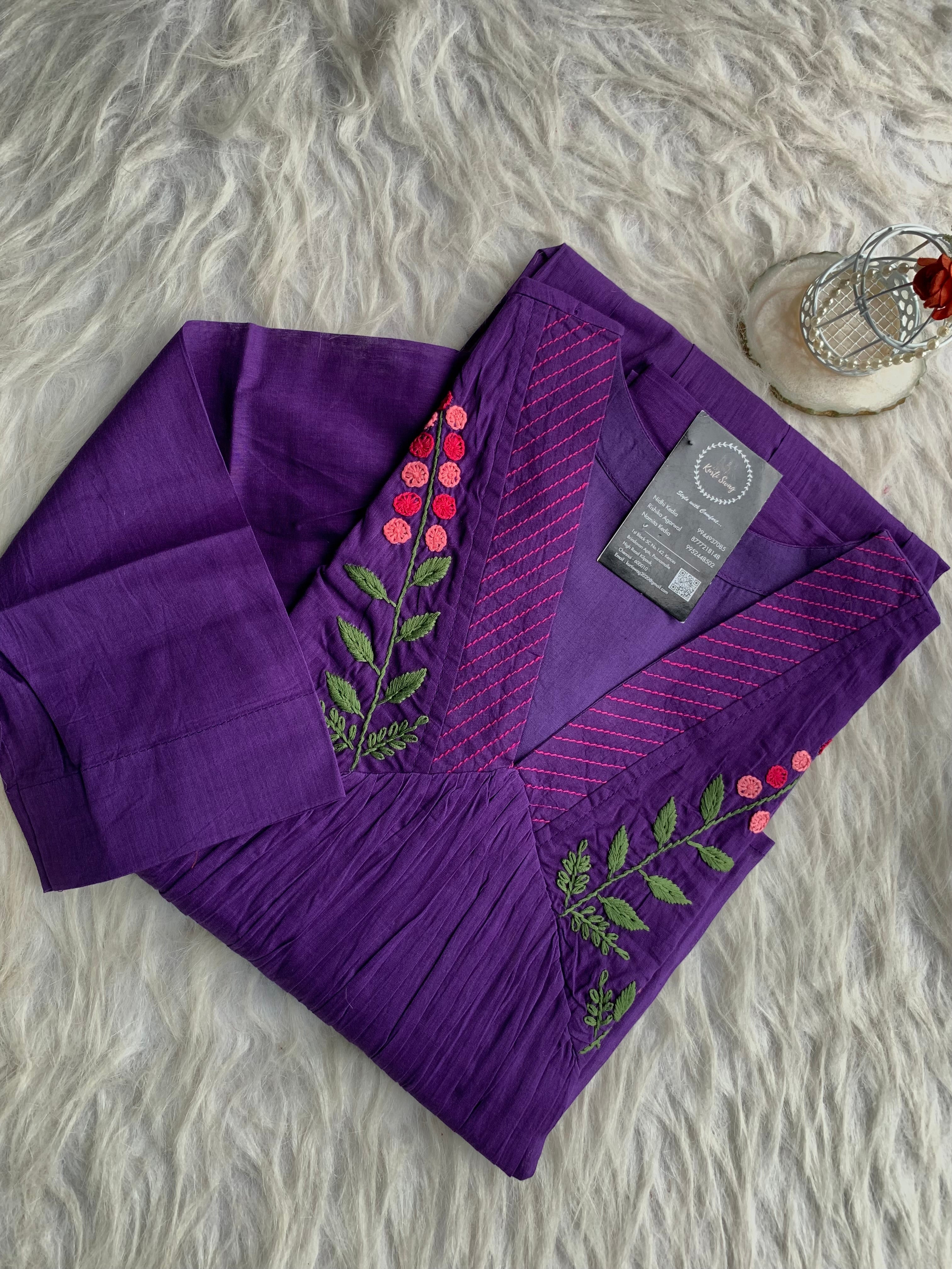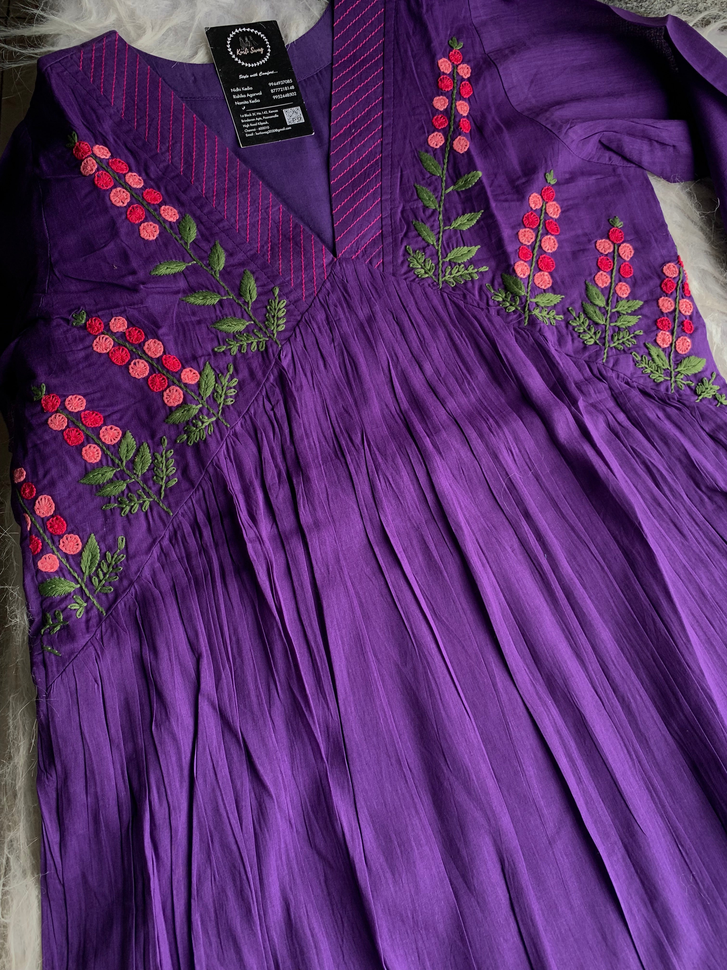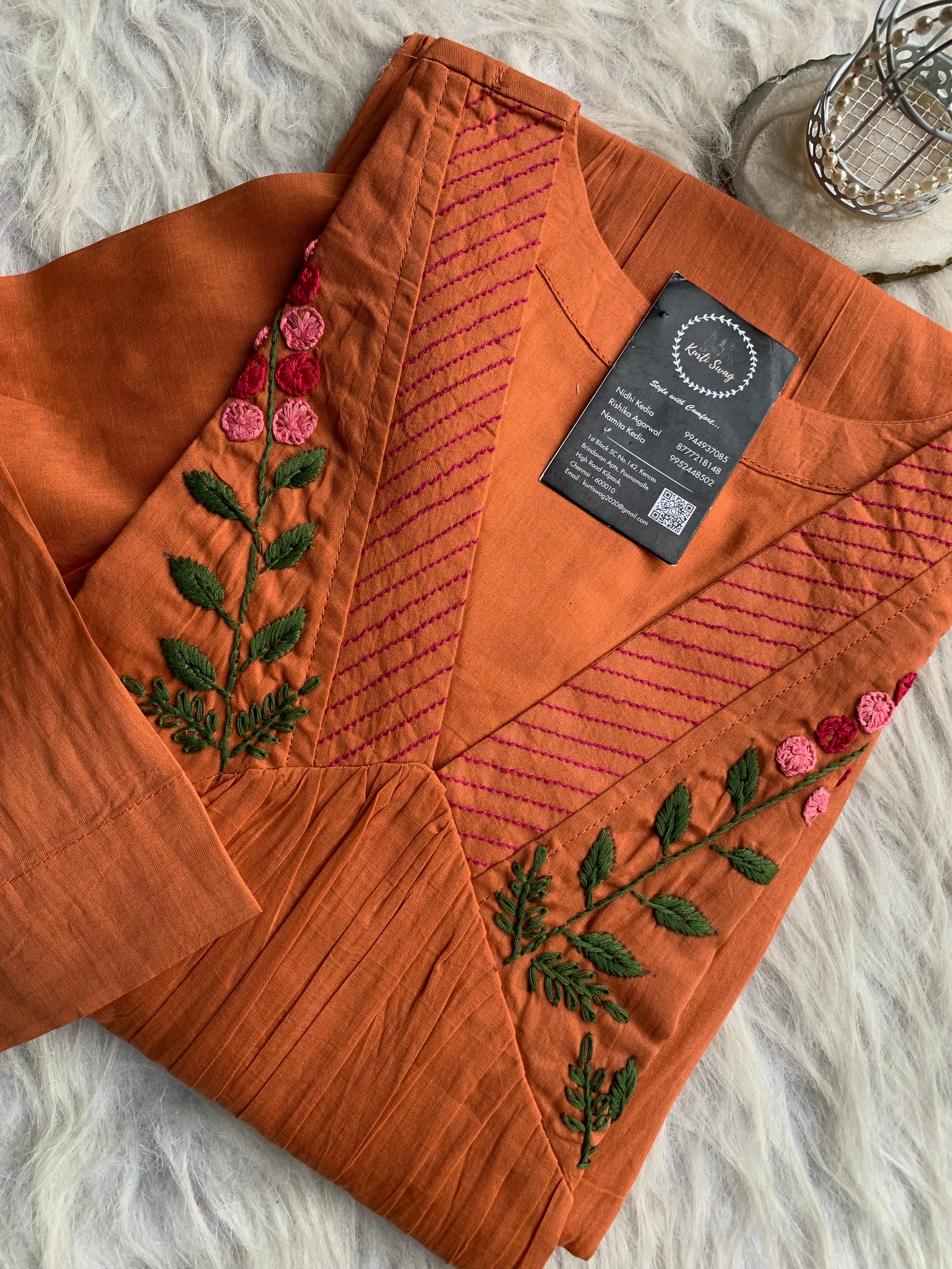 ✅ Organic cotton Kurti with thread and hand embroidery on the Kurti (46 inches kurta length)
