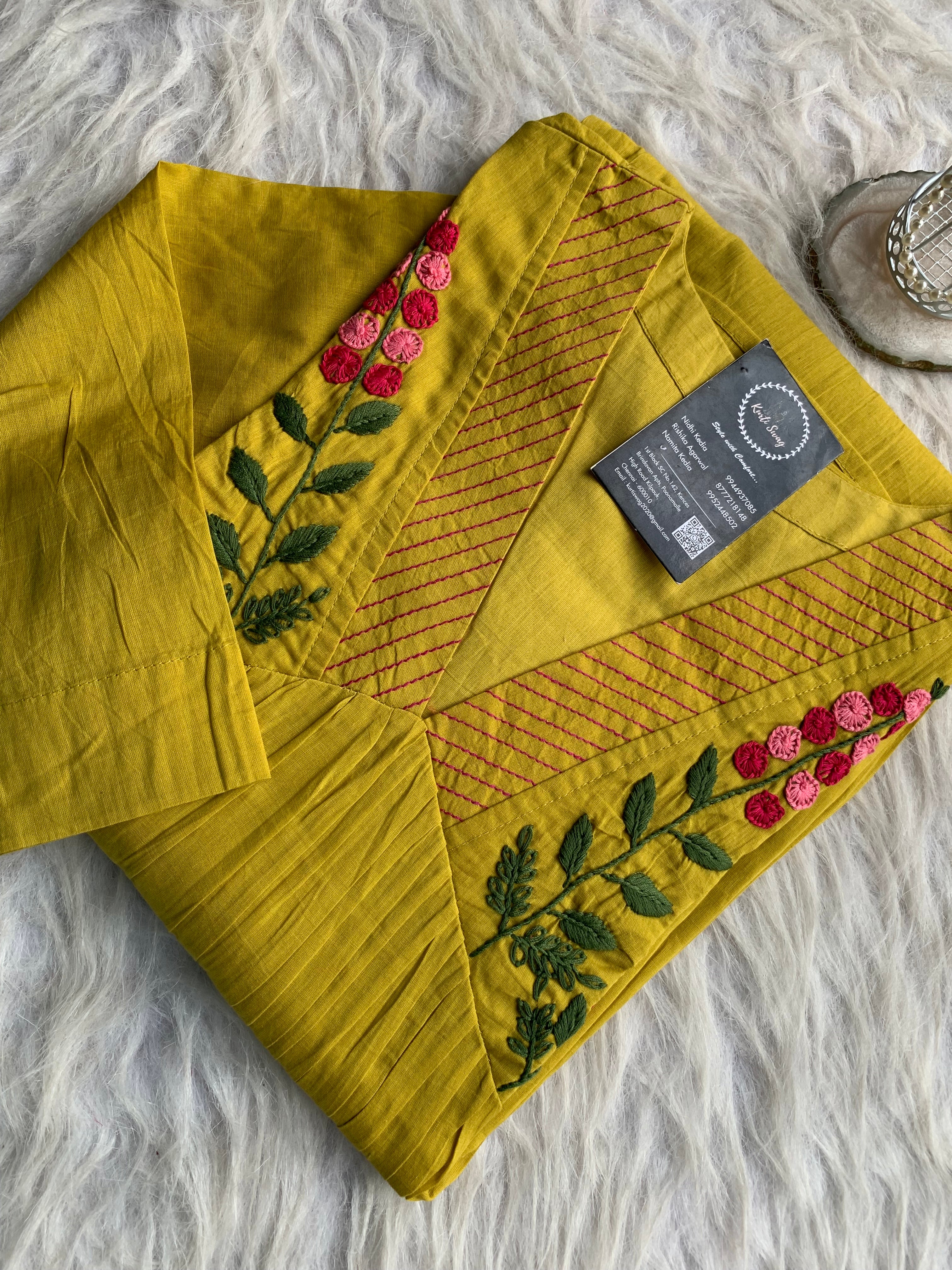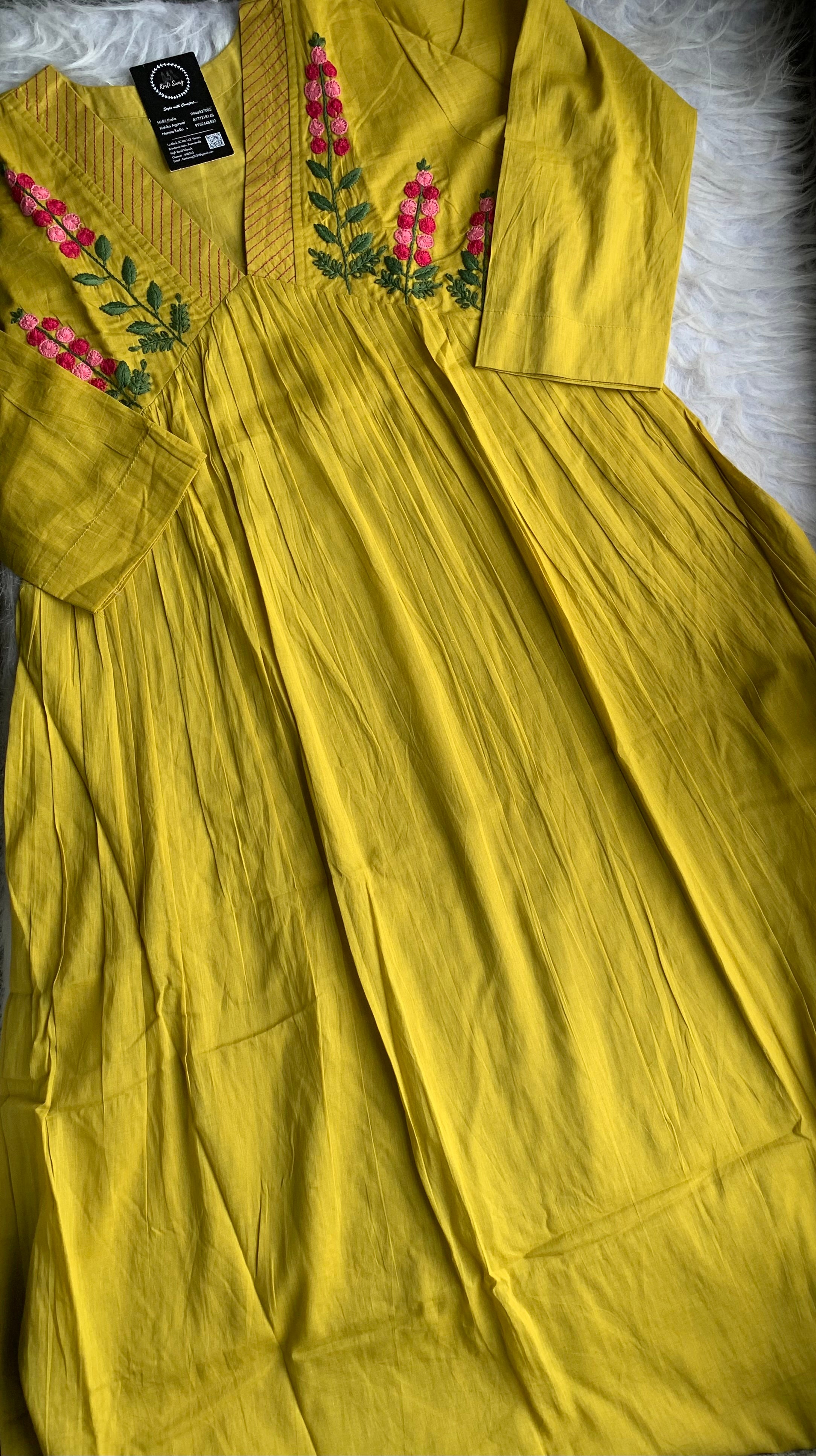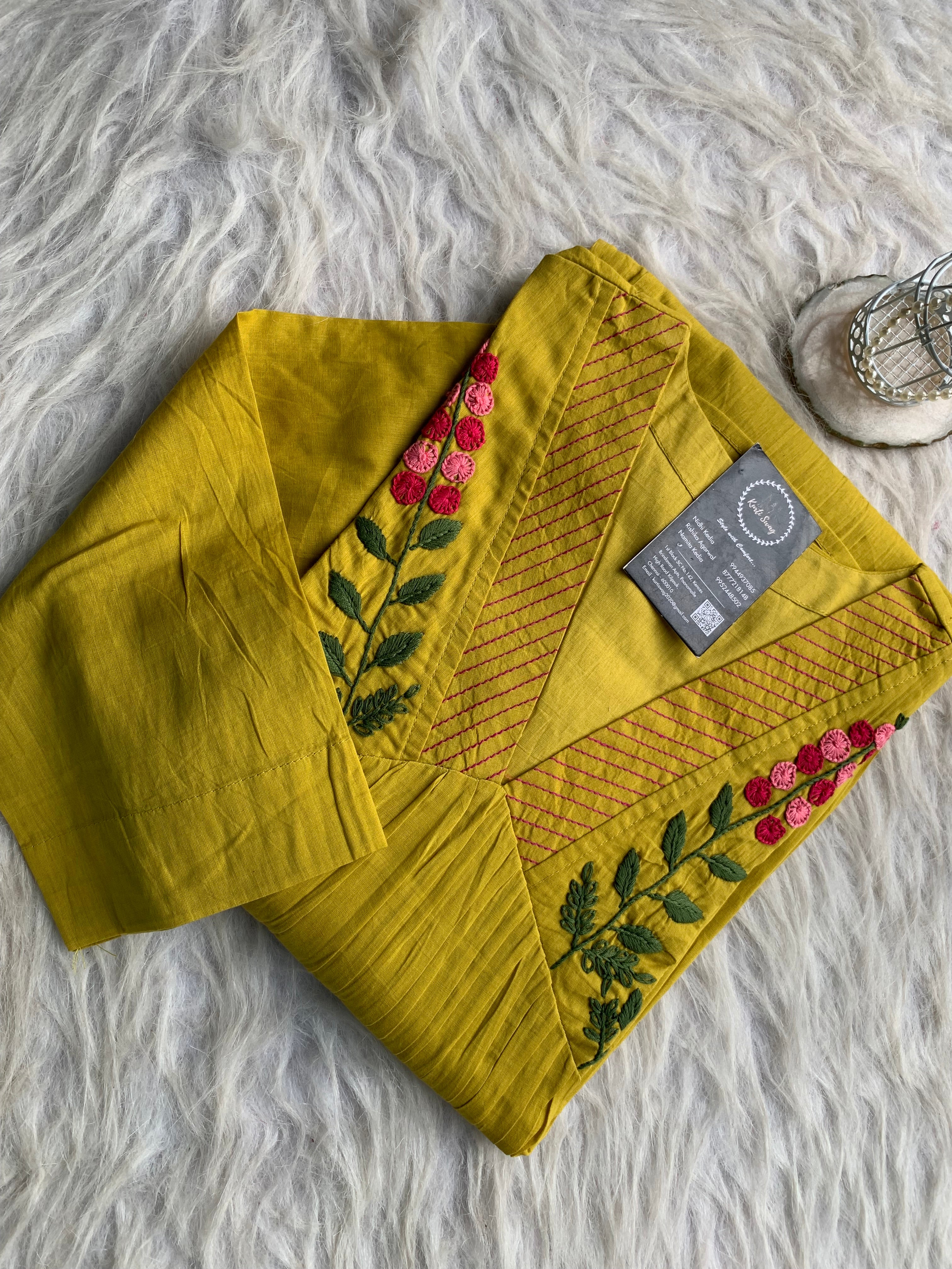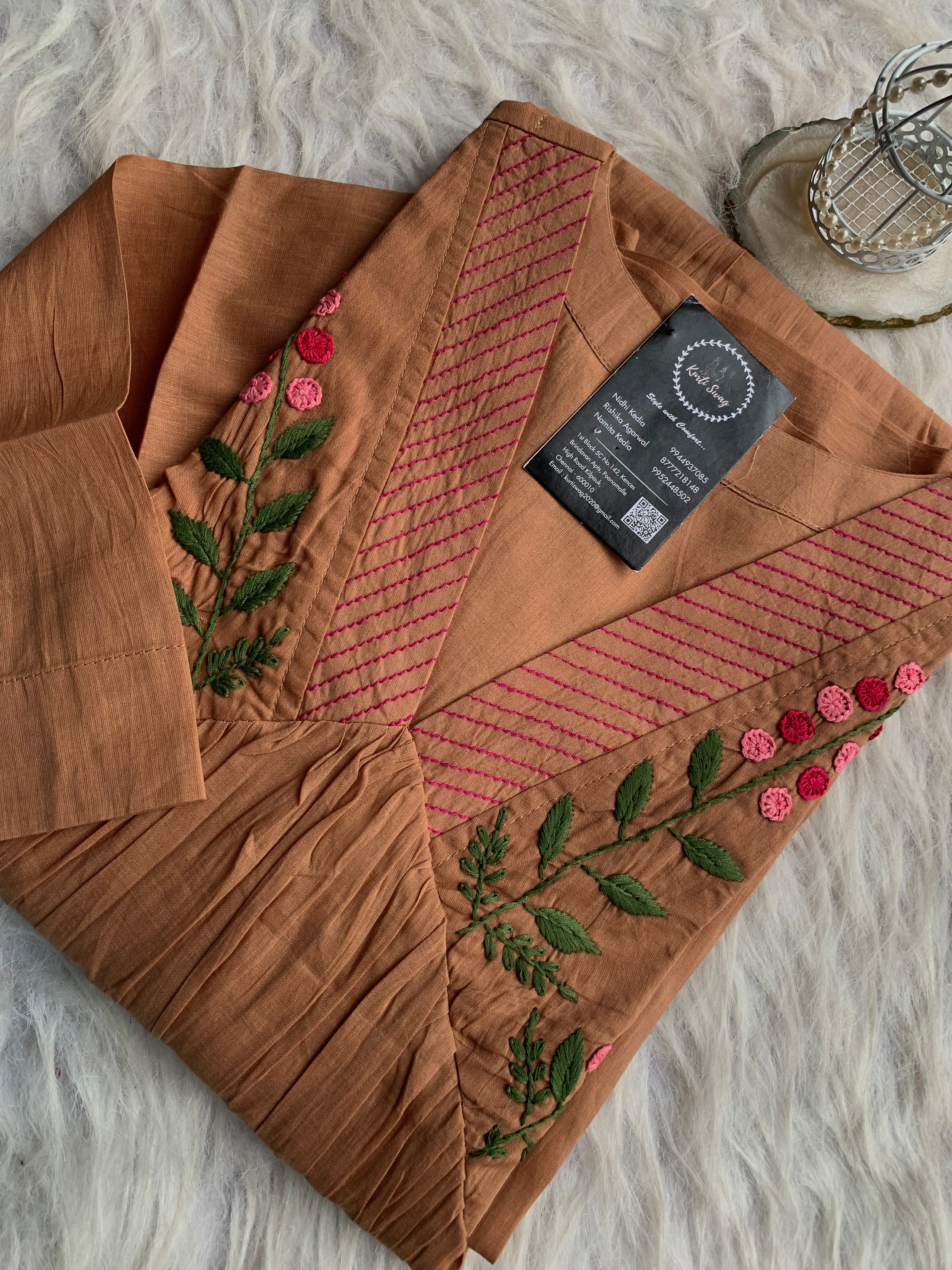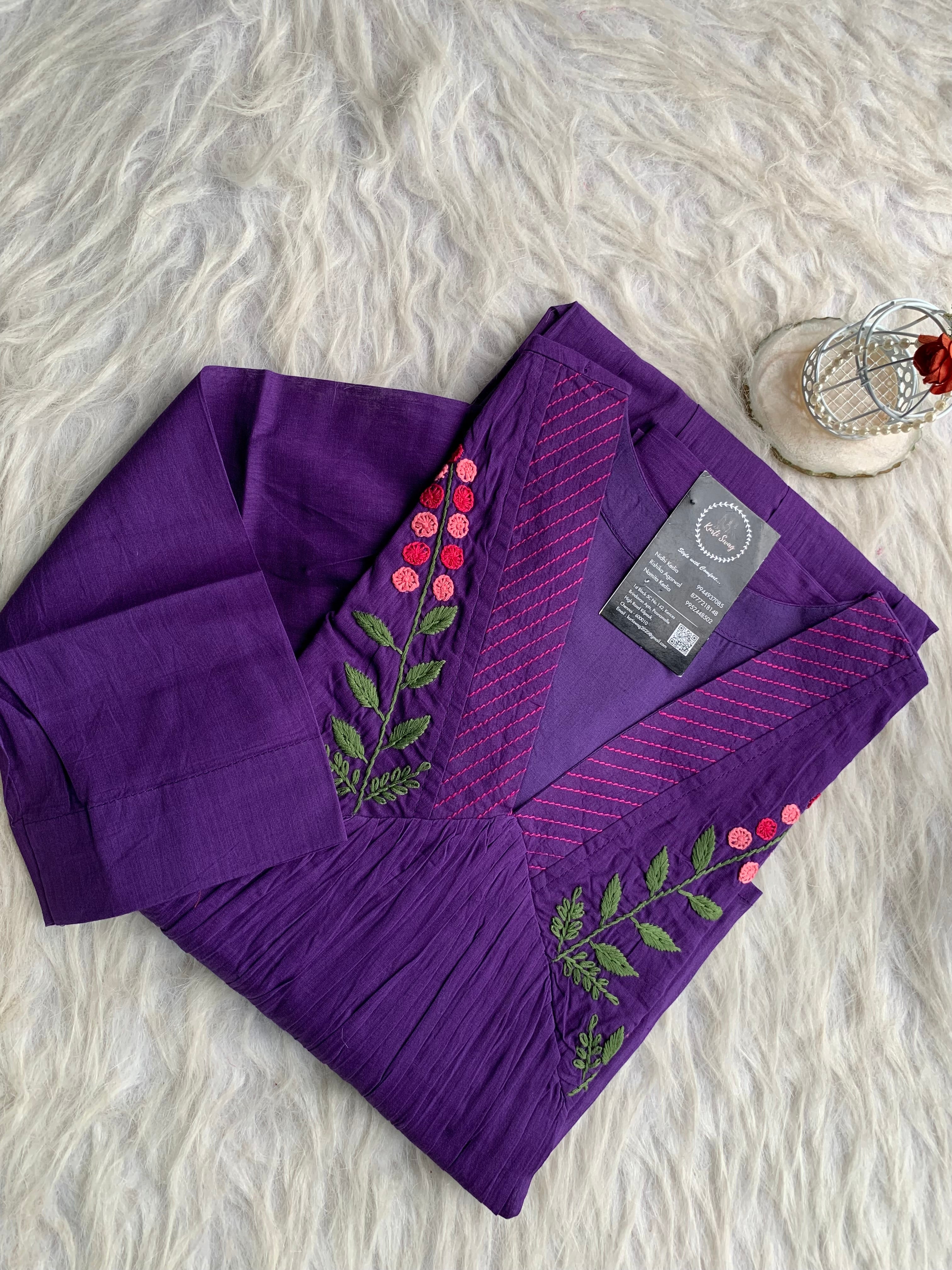 ✅ Organic cotton Kurti with thread and hand embroidery on the Kurti (46 inches kurta length)