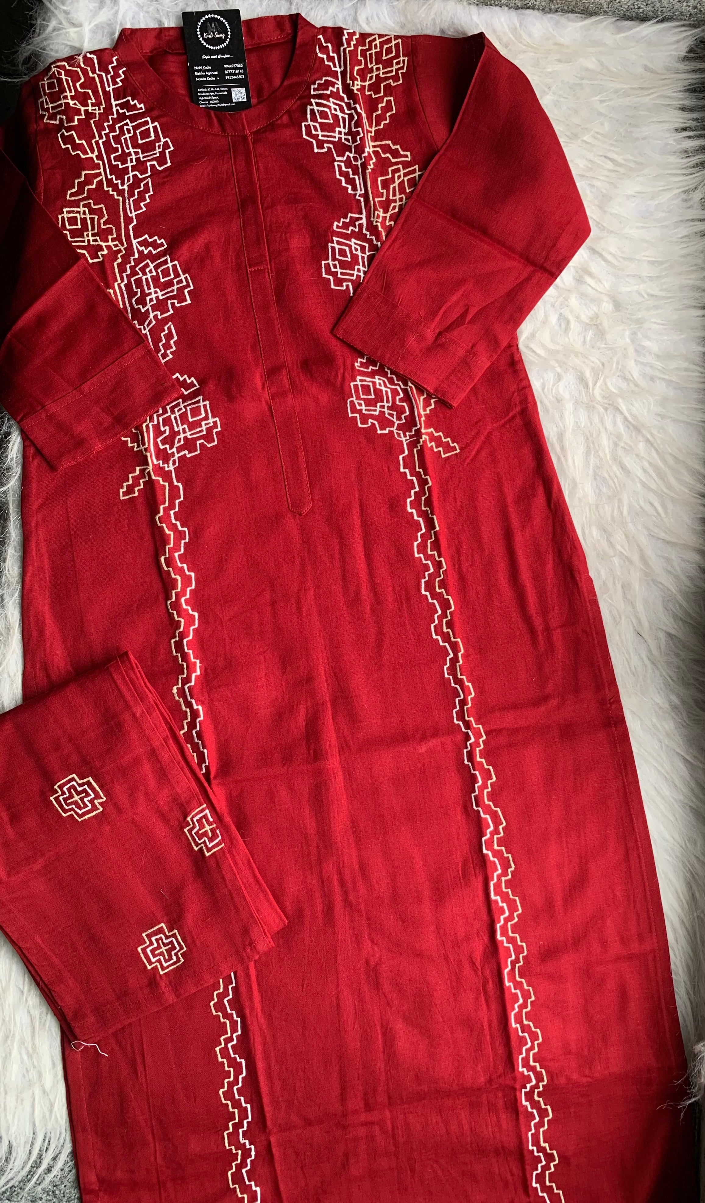 ✅ Kurta with Collar Neck and Side Slit And Thread Embroidery Work All Over The Kurta. (length 44 inches )