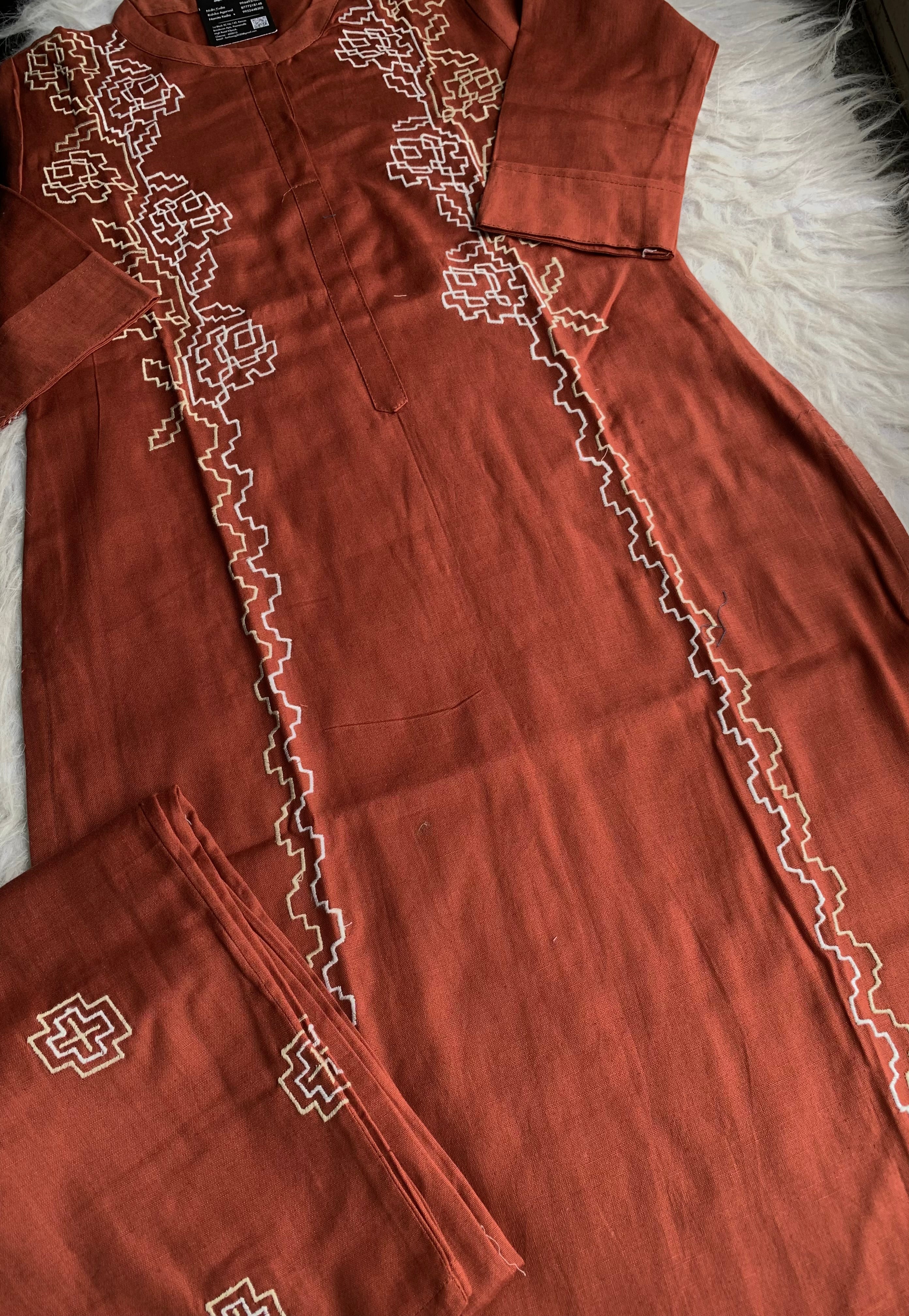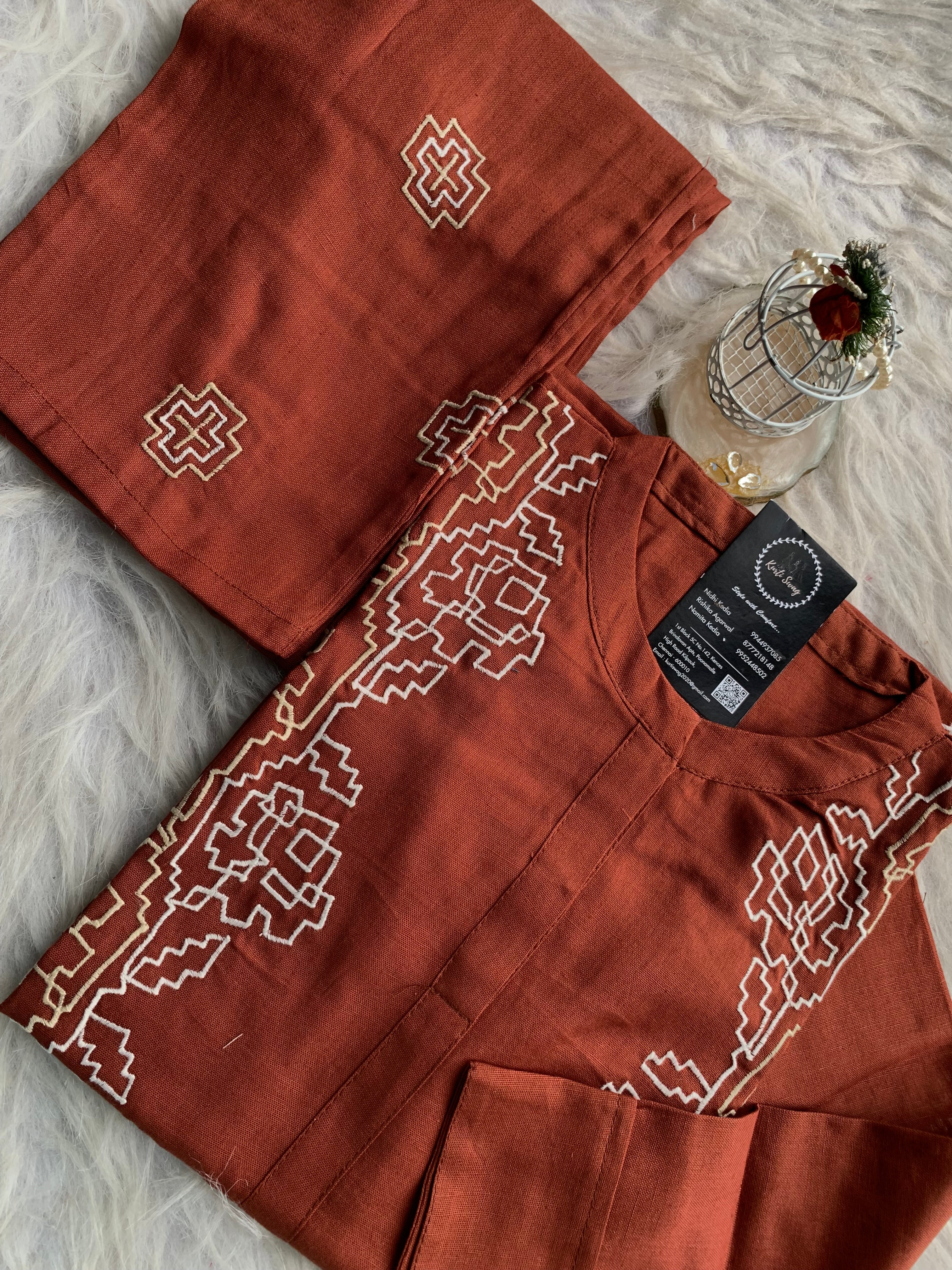 "PAYAL" Cotton Embroidered Kurta & Pant Set🤎