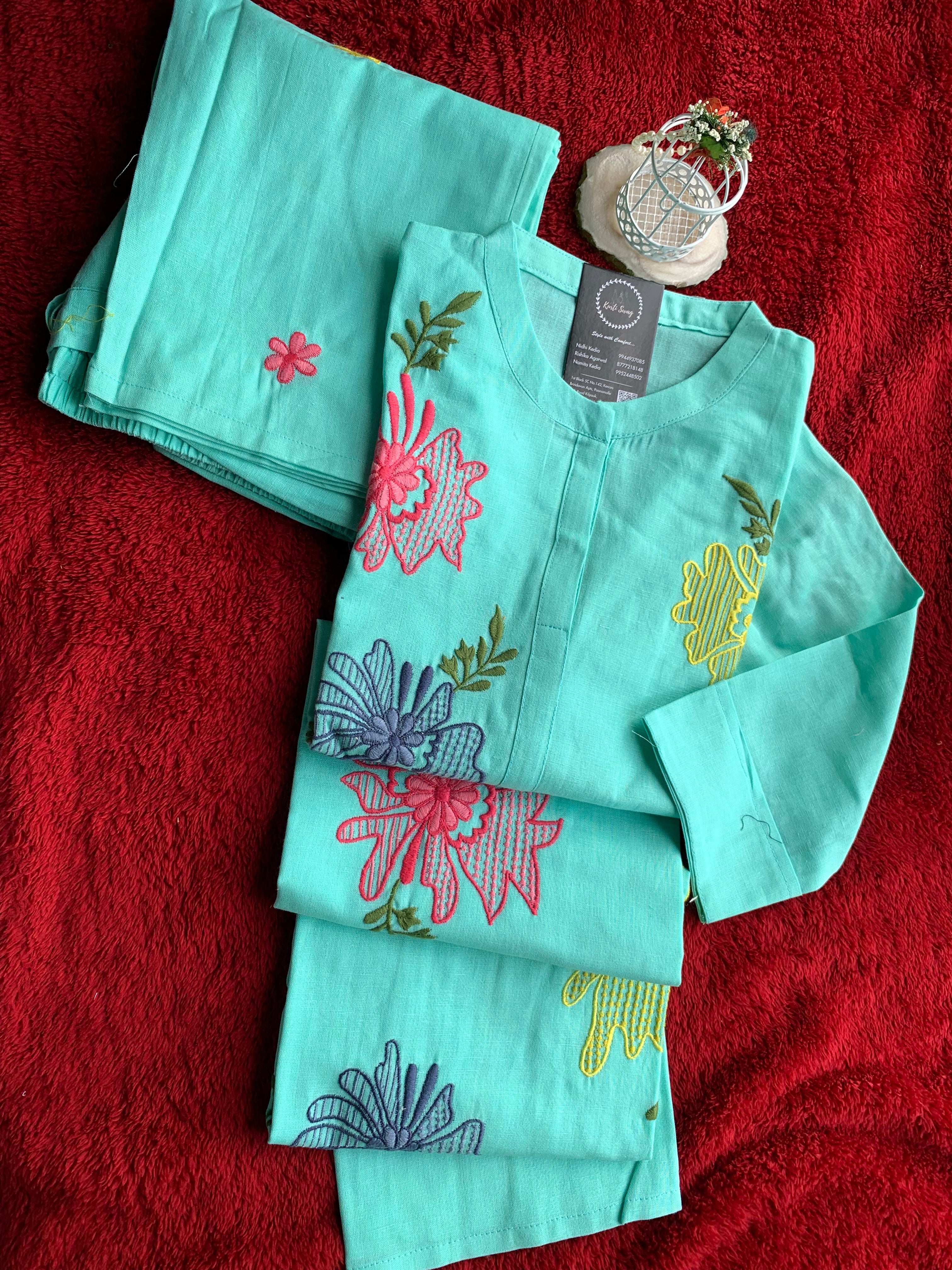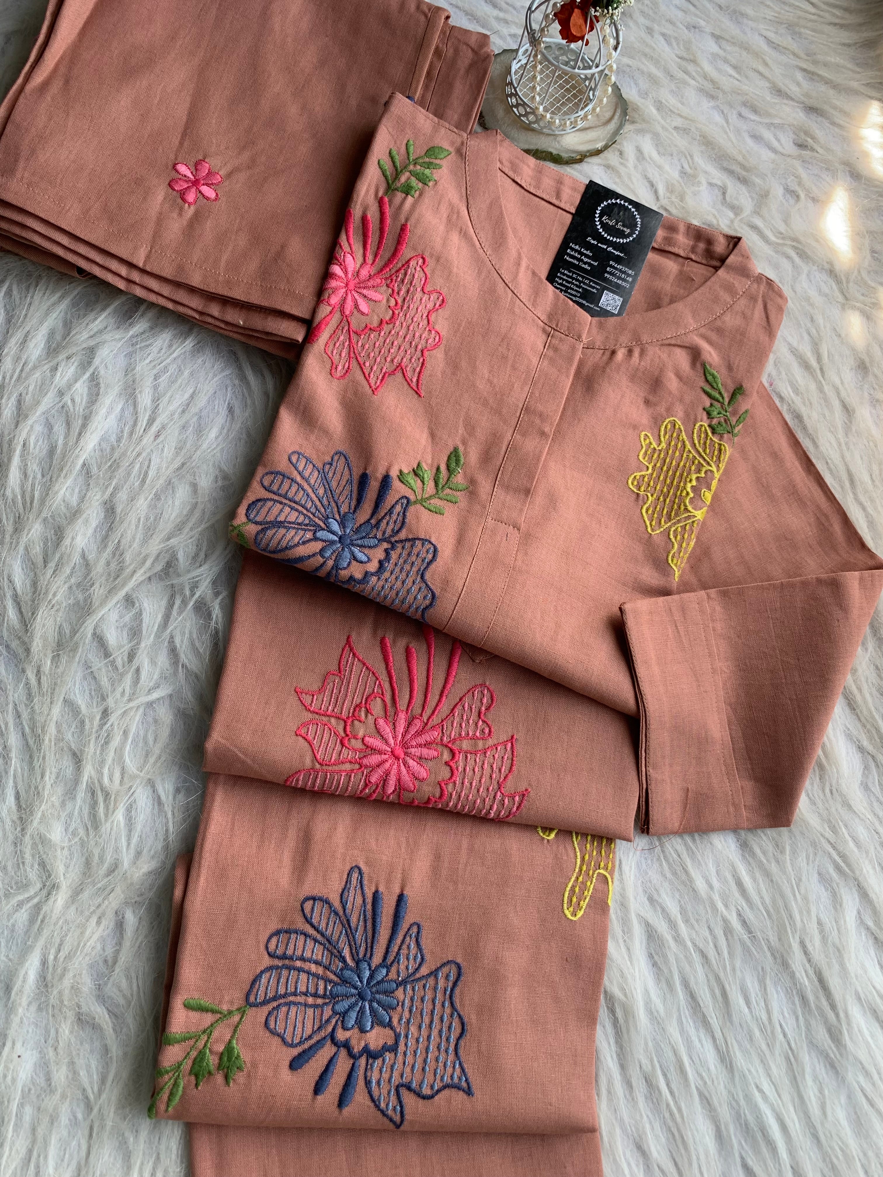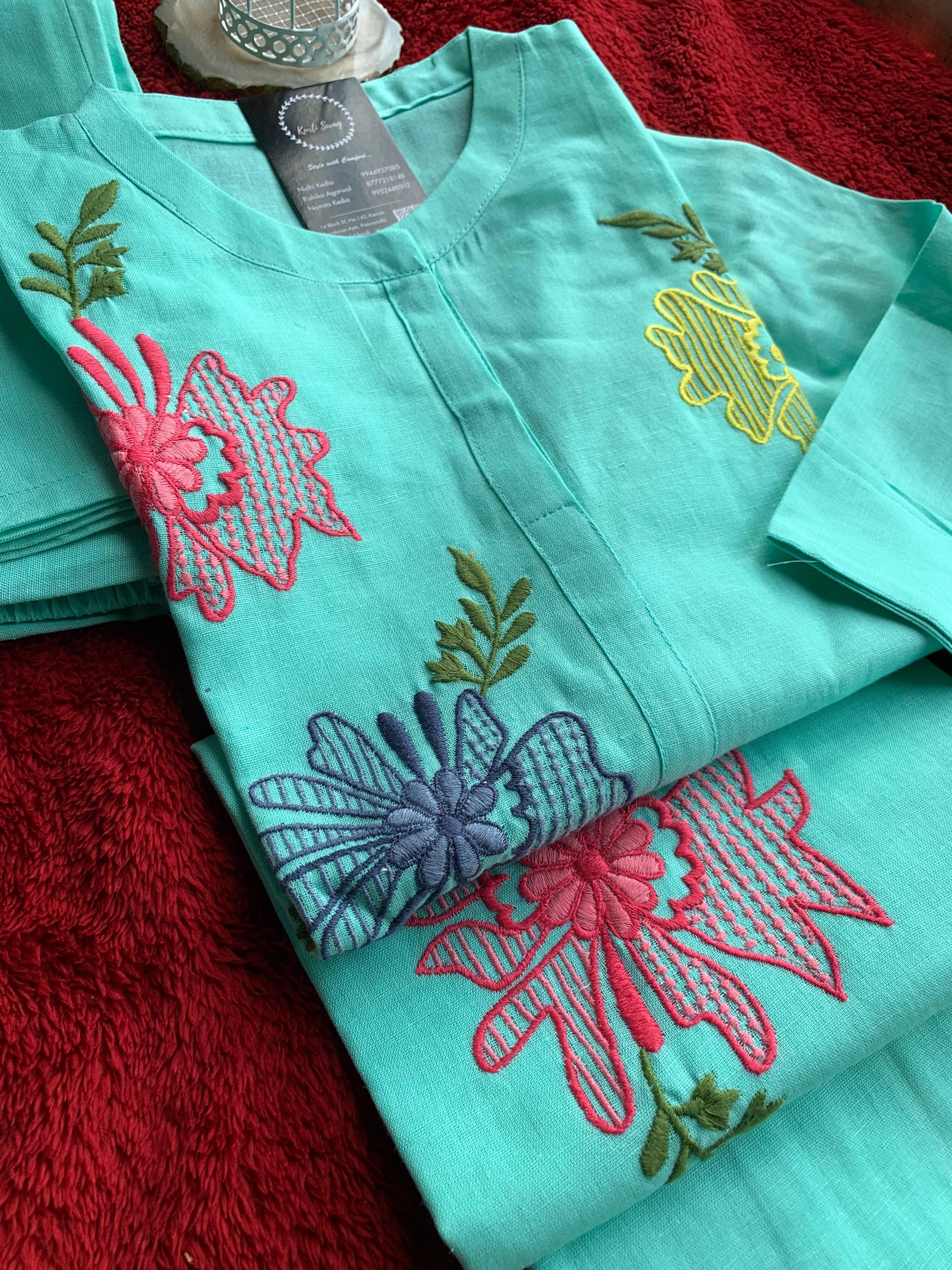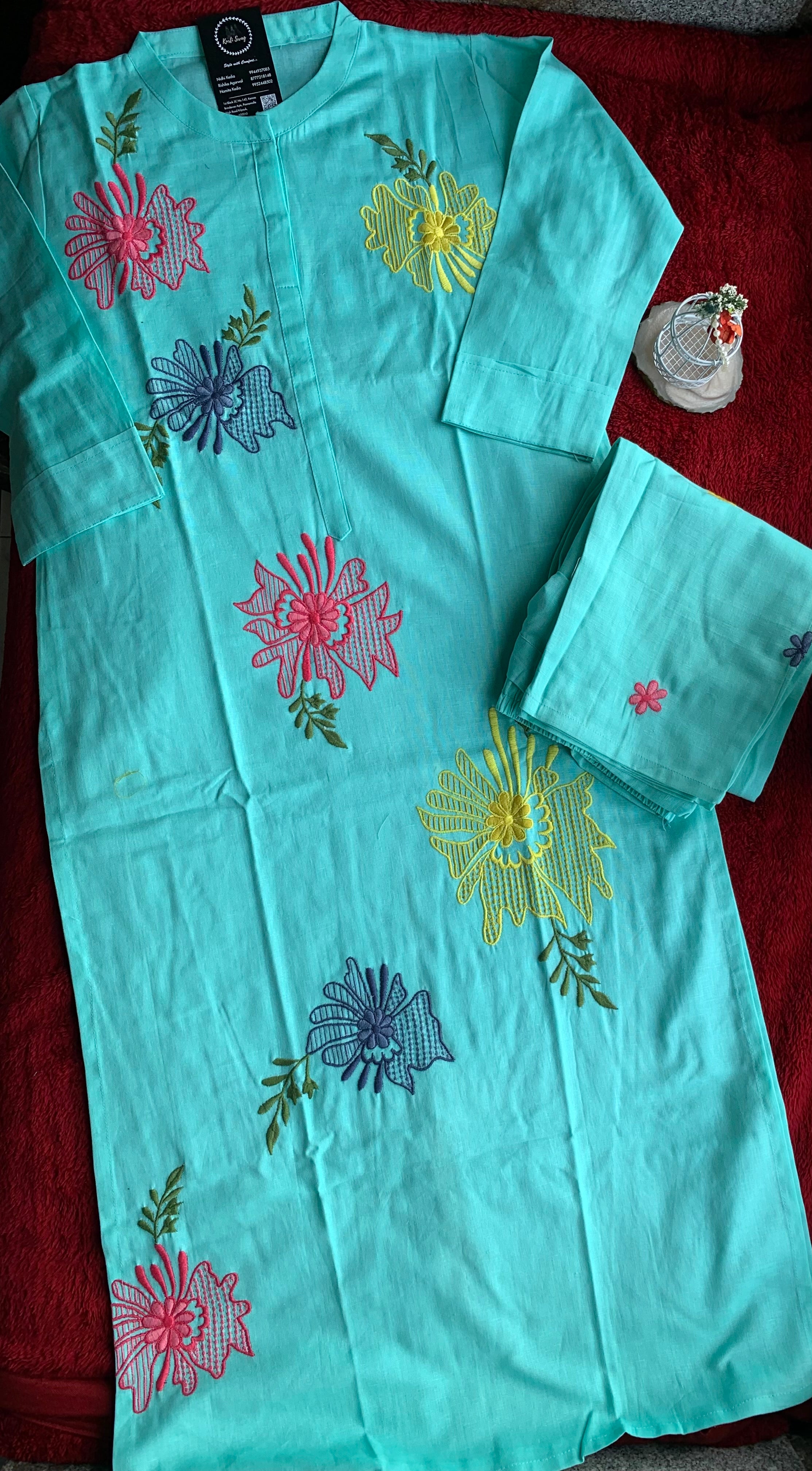 "FATHIMA" Cotton Hand Work Kurta And Pant Set π