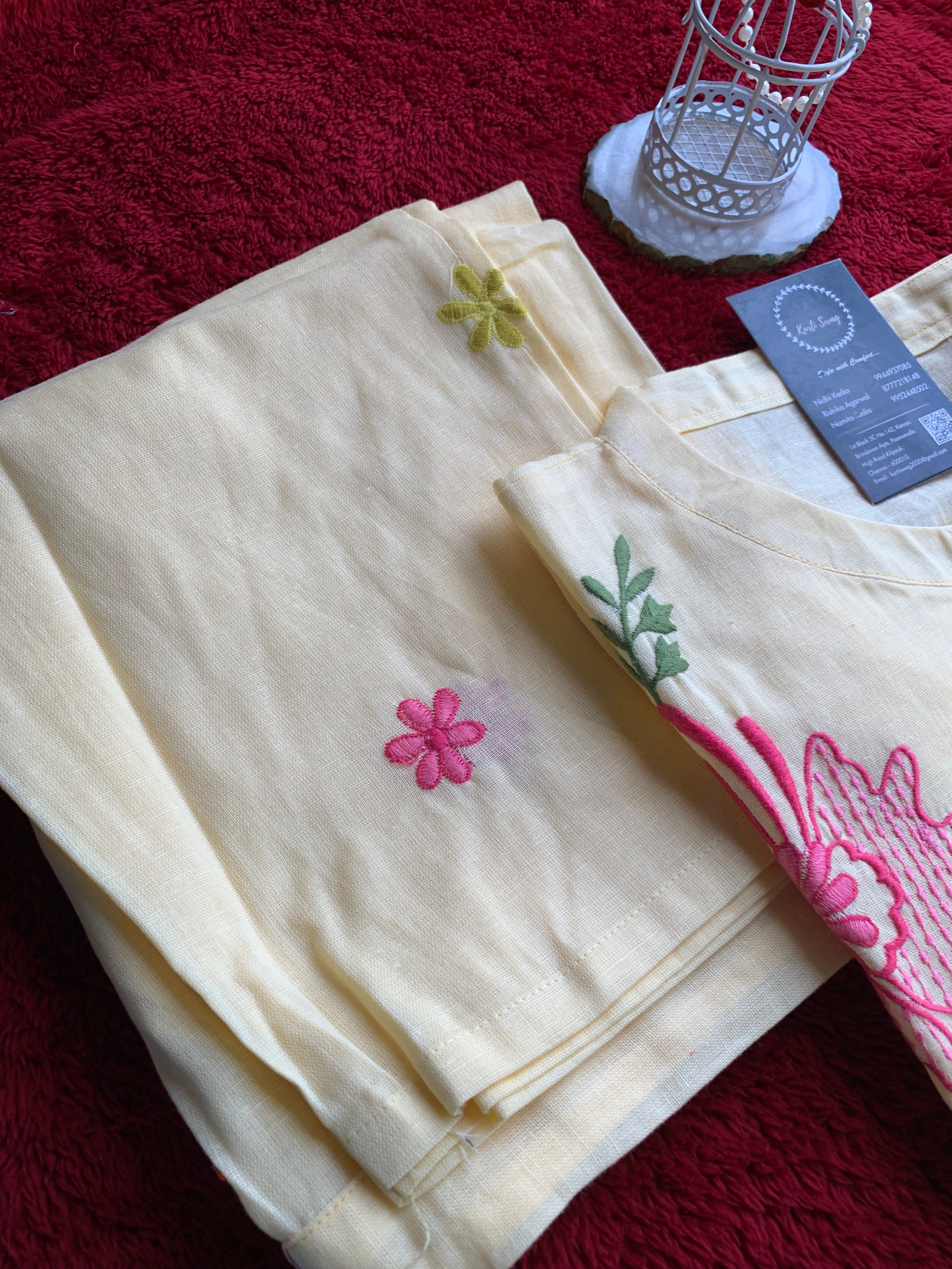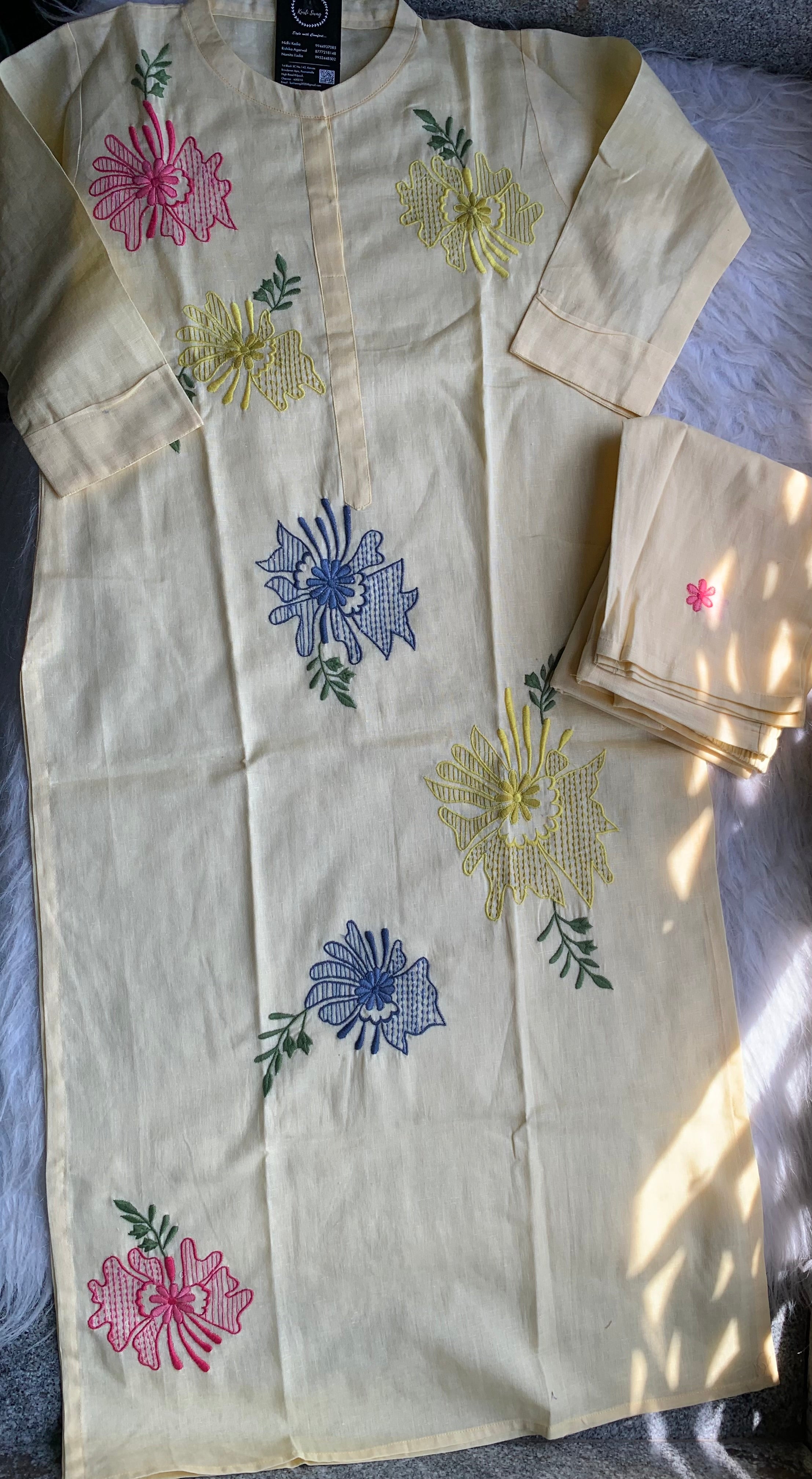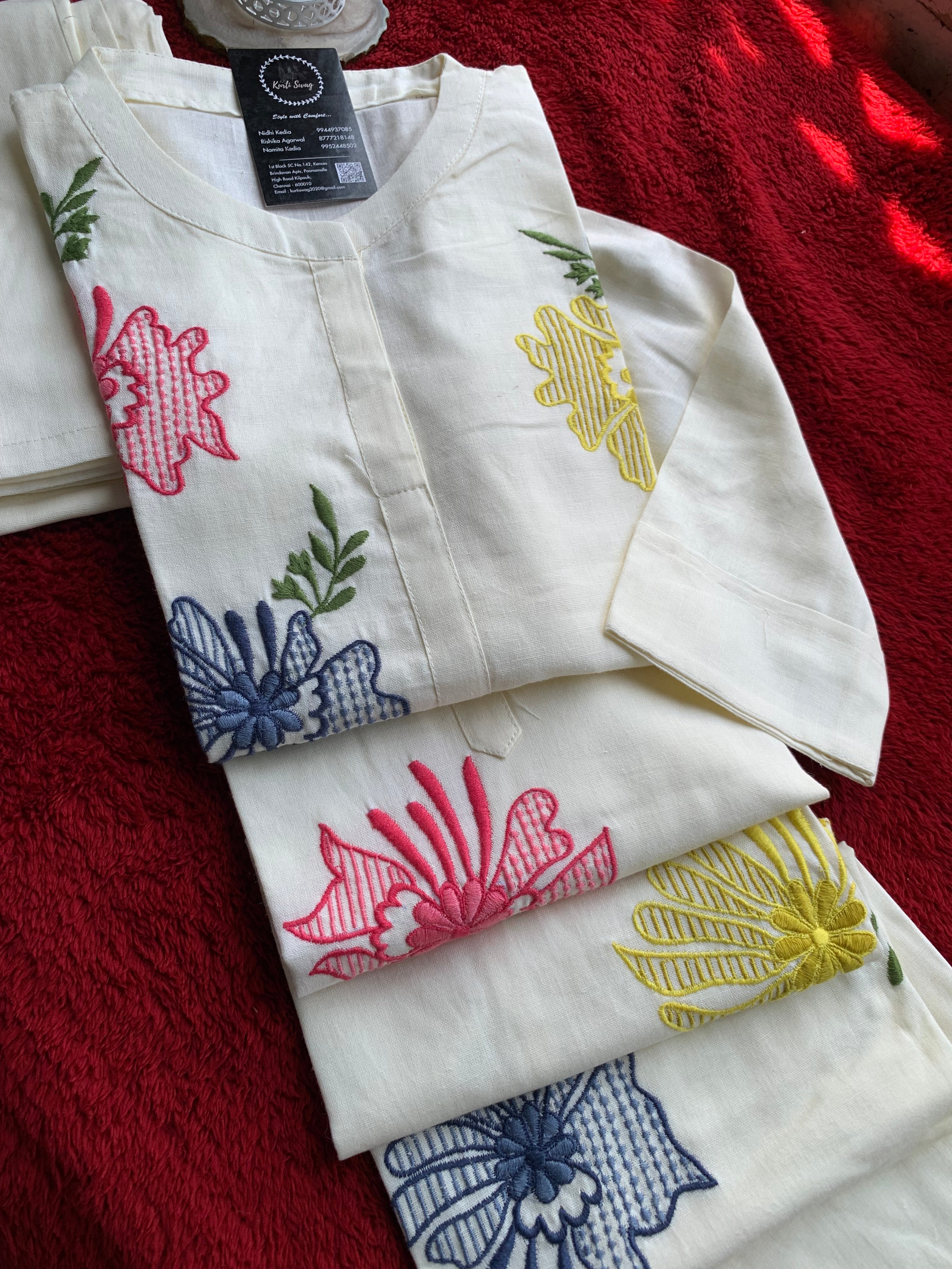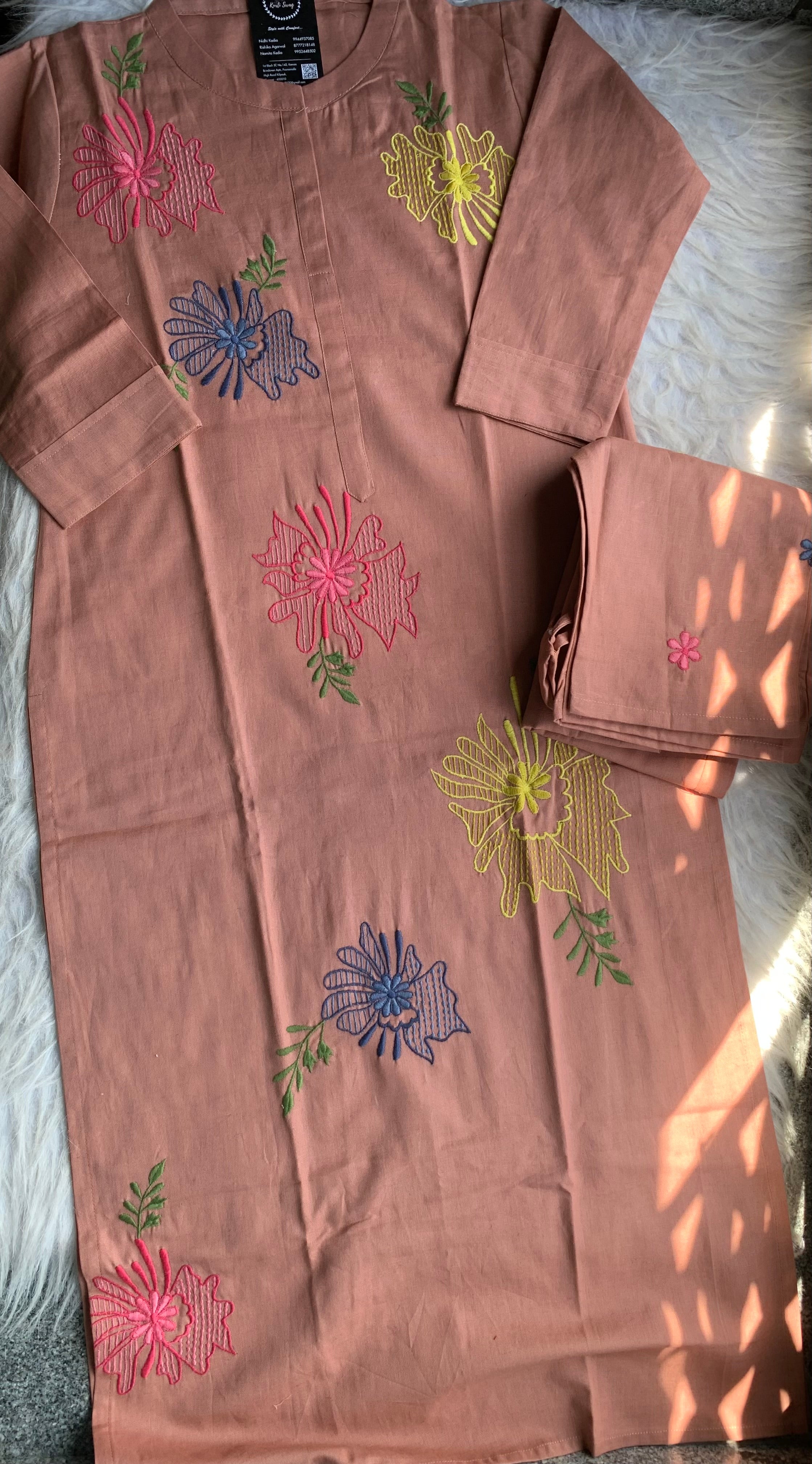 "FATHIMA" Cotton Hand Work Kurta And Pant Set π
