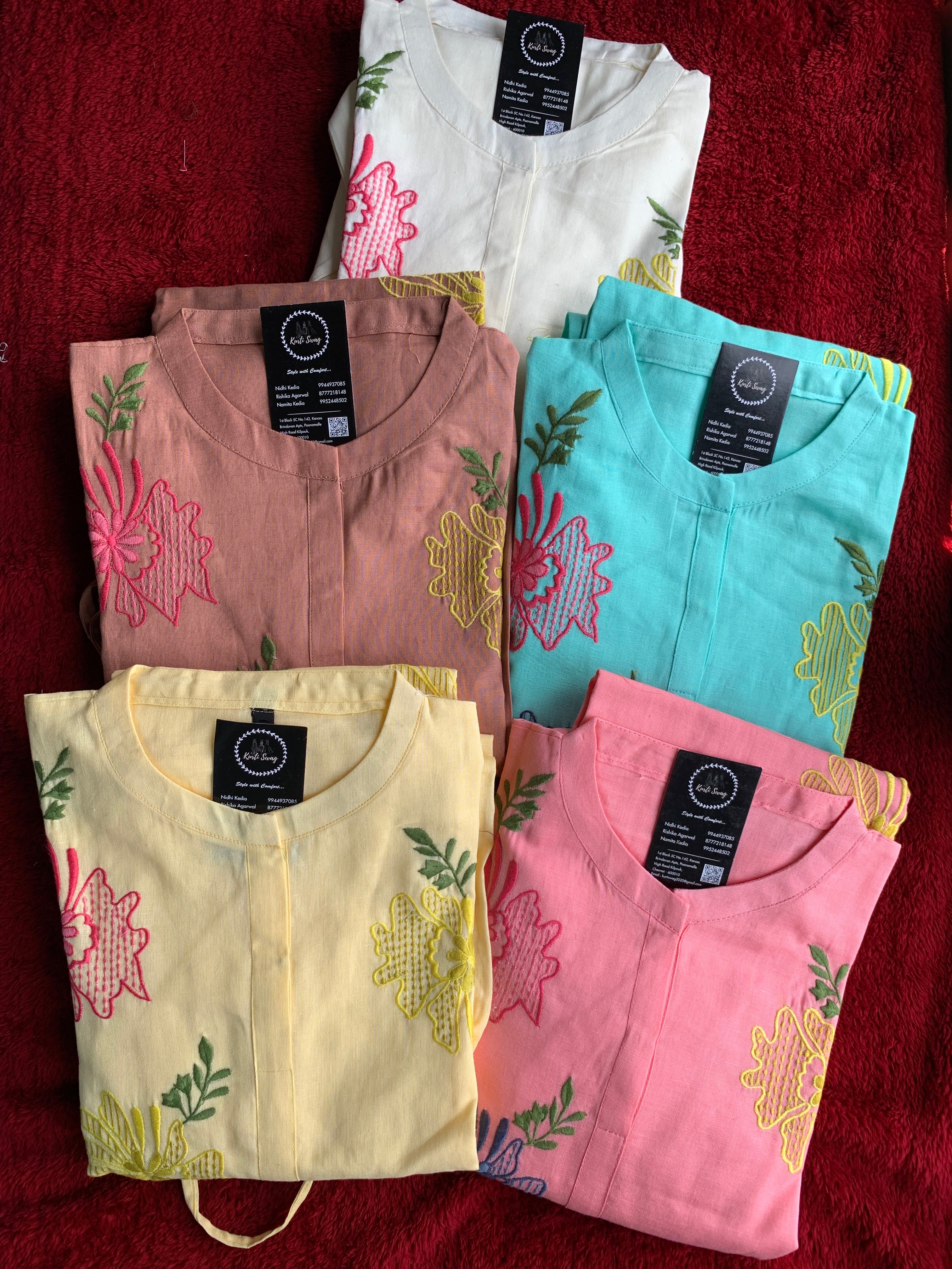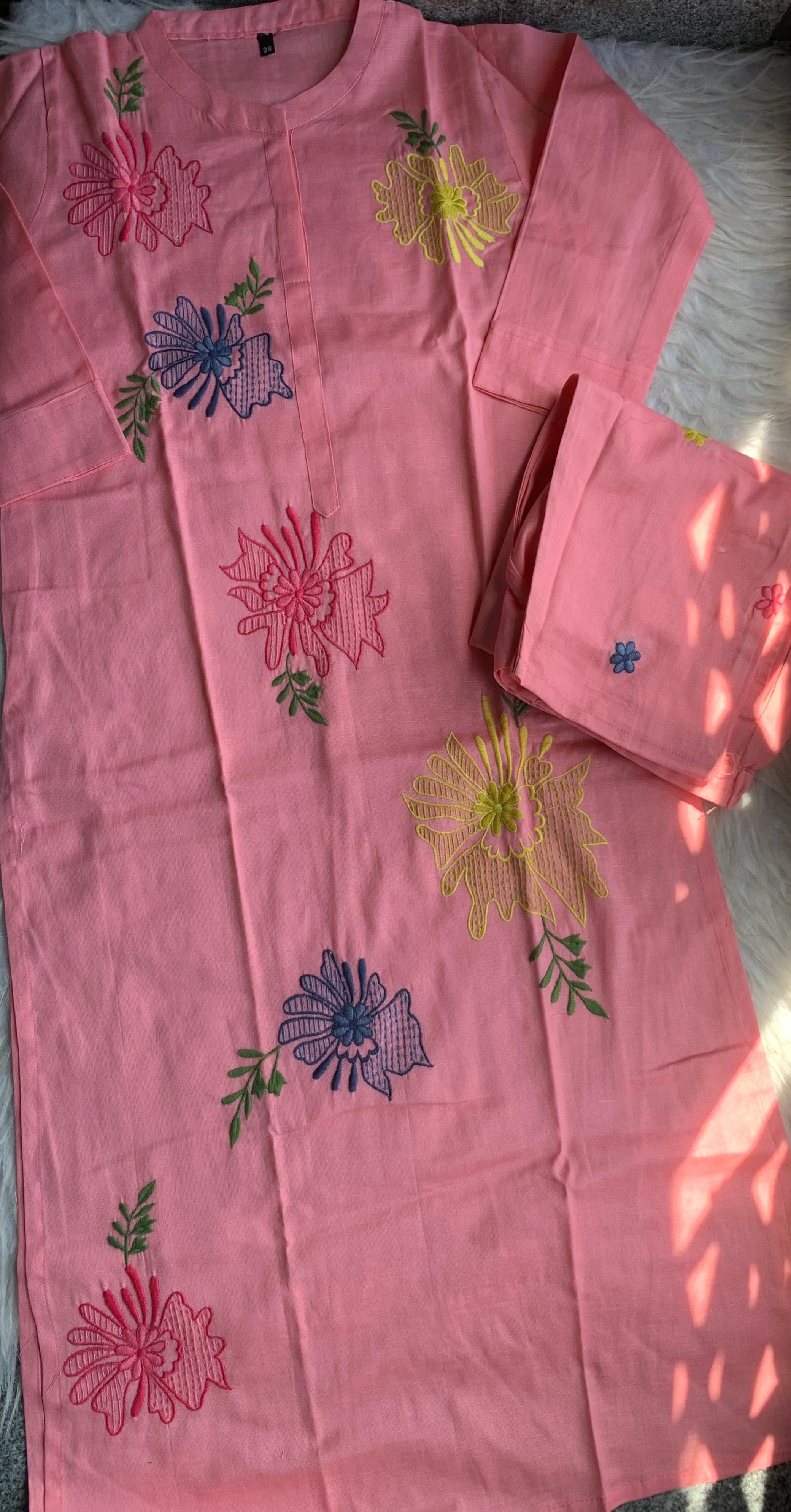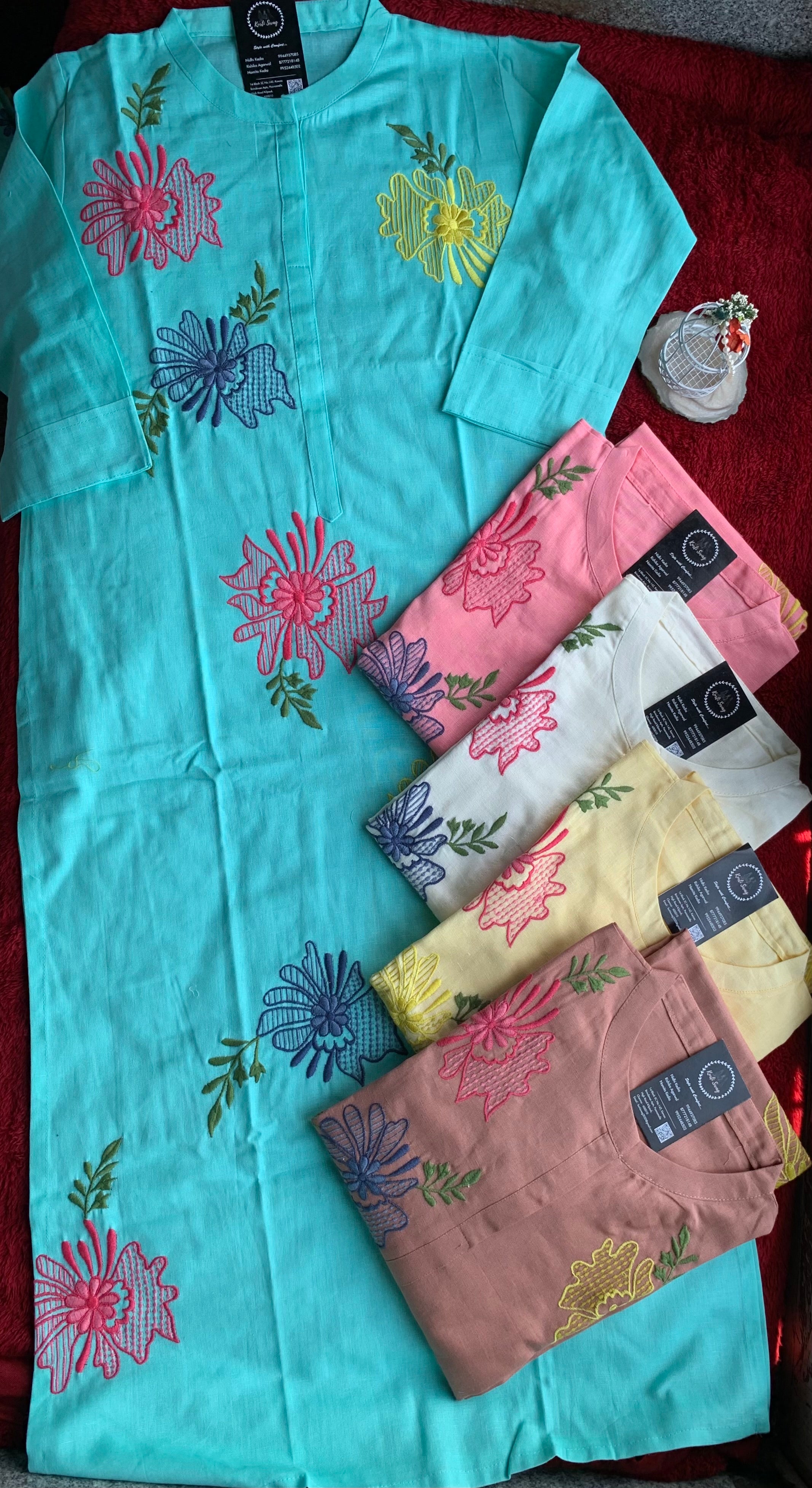 β Organic Cotton Kurti With Thread Hand Embroidery On OverAll The KurtiΒ