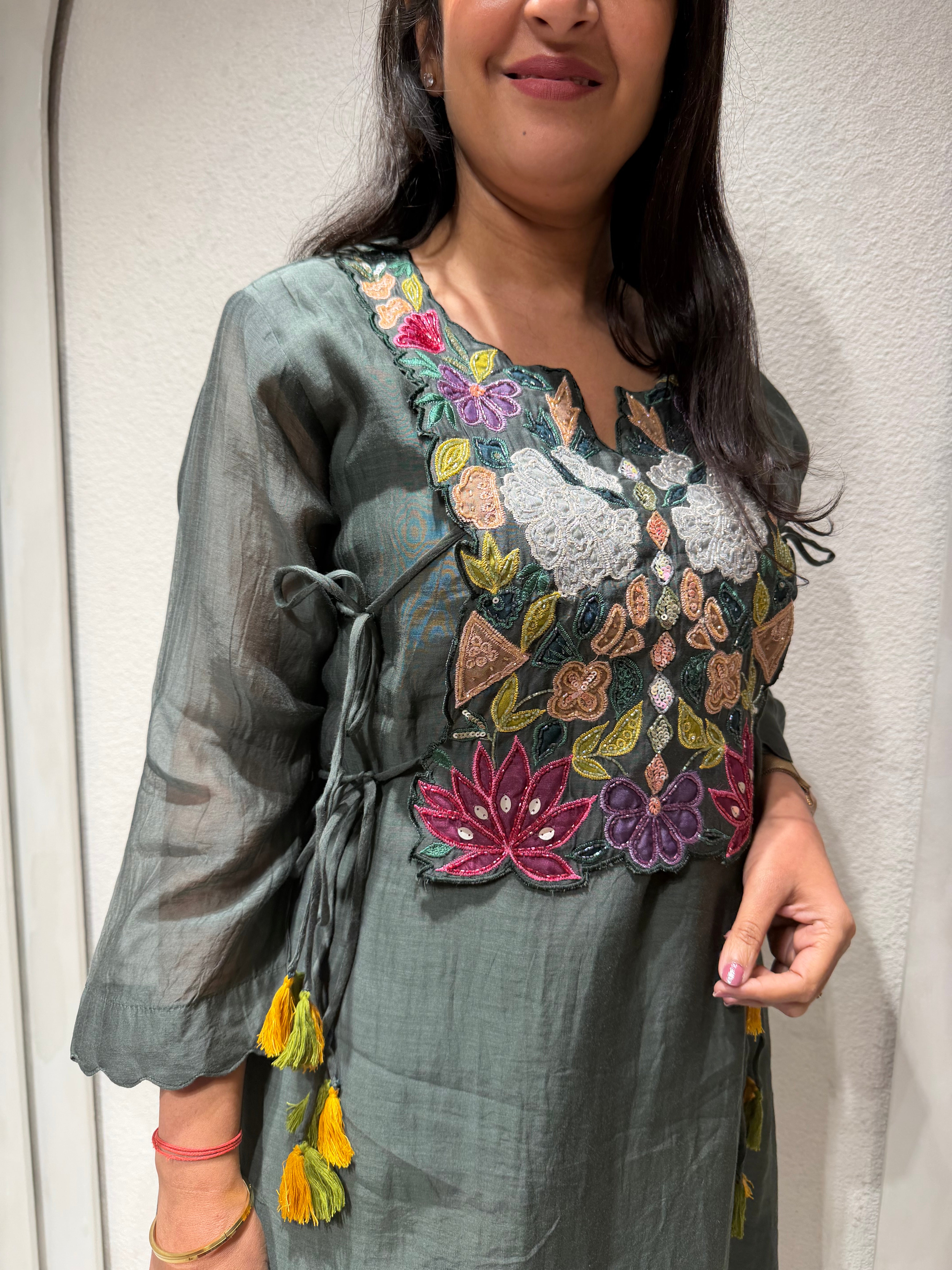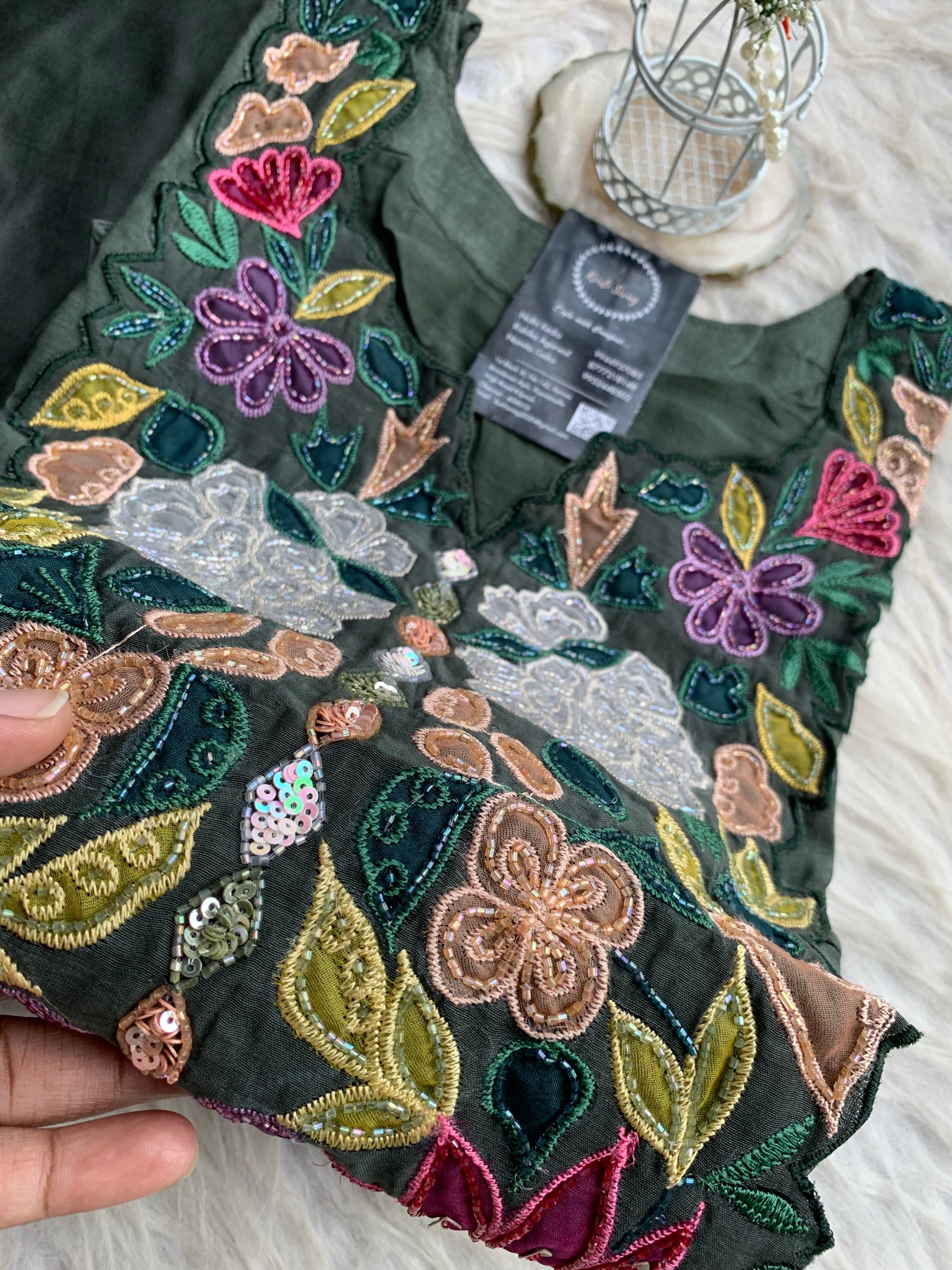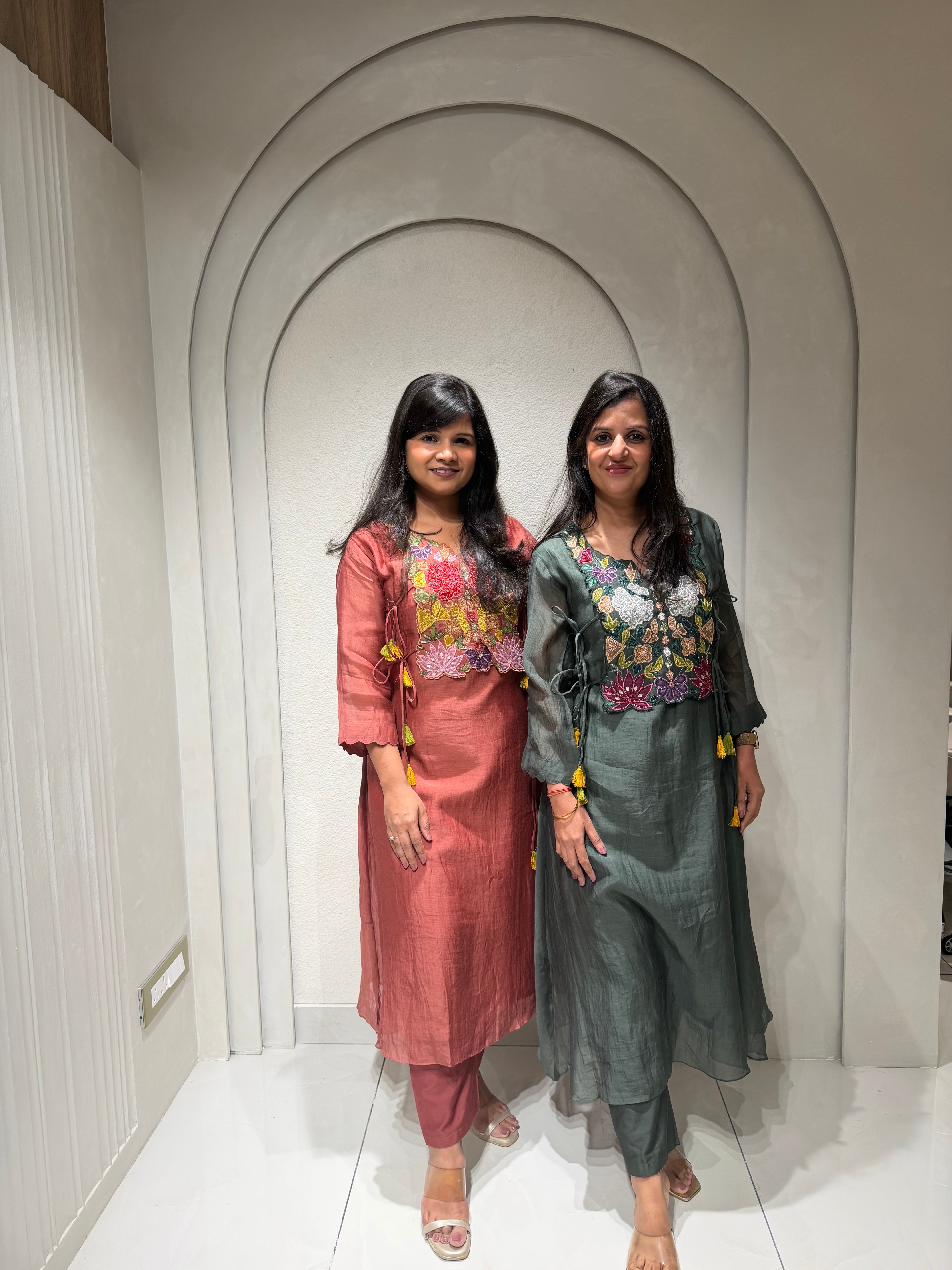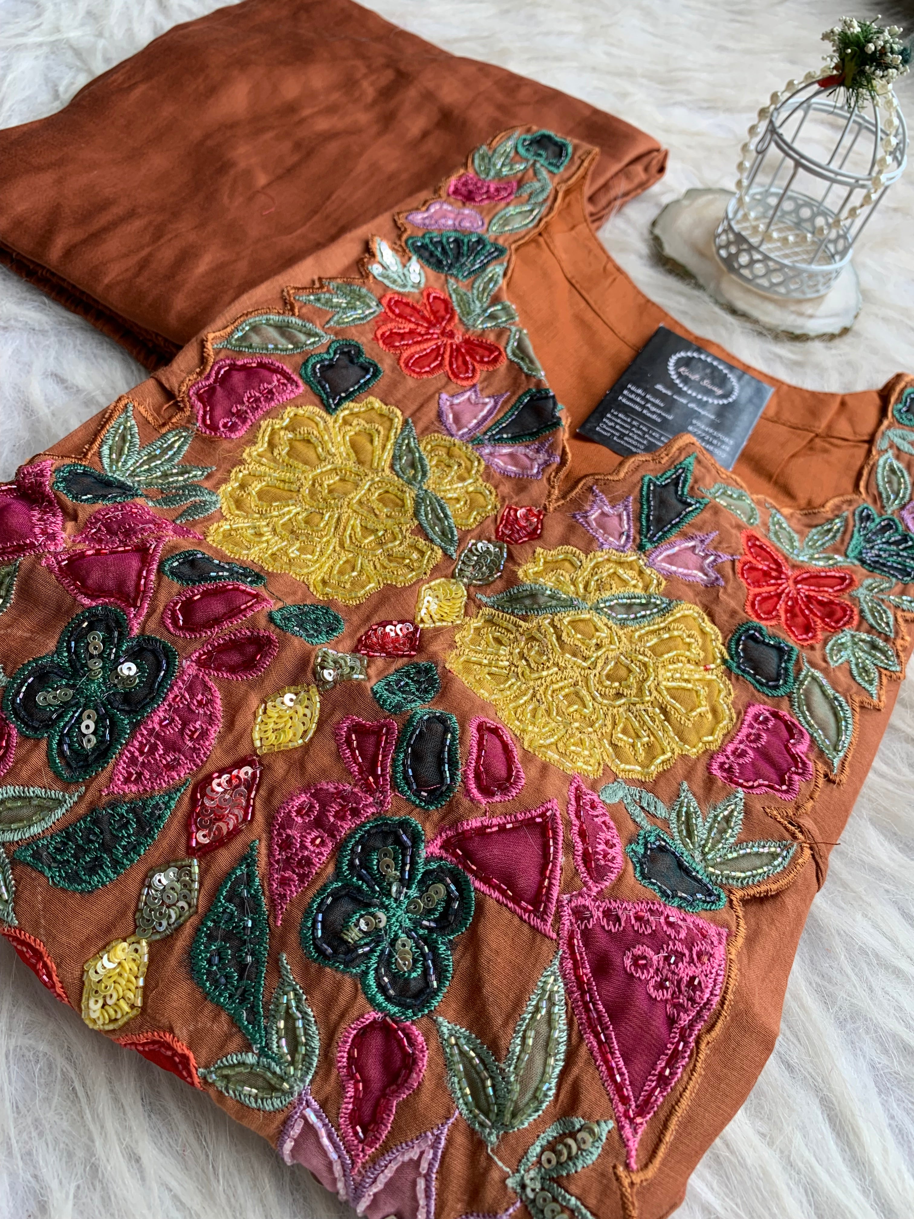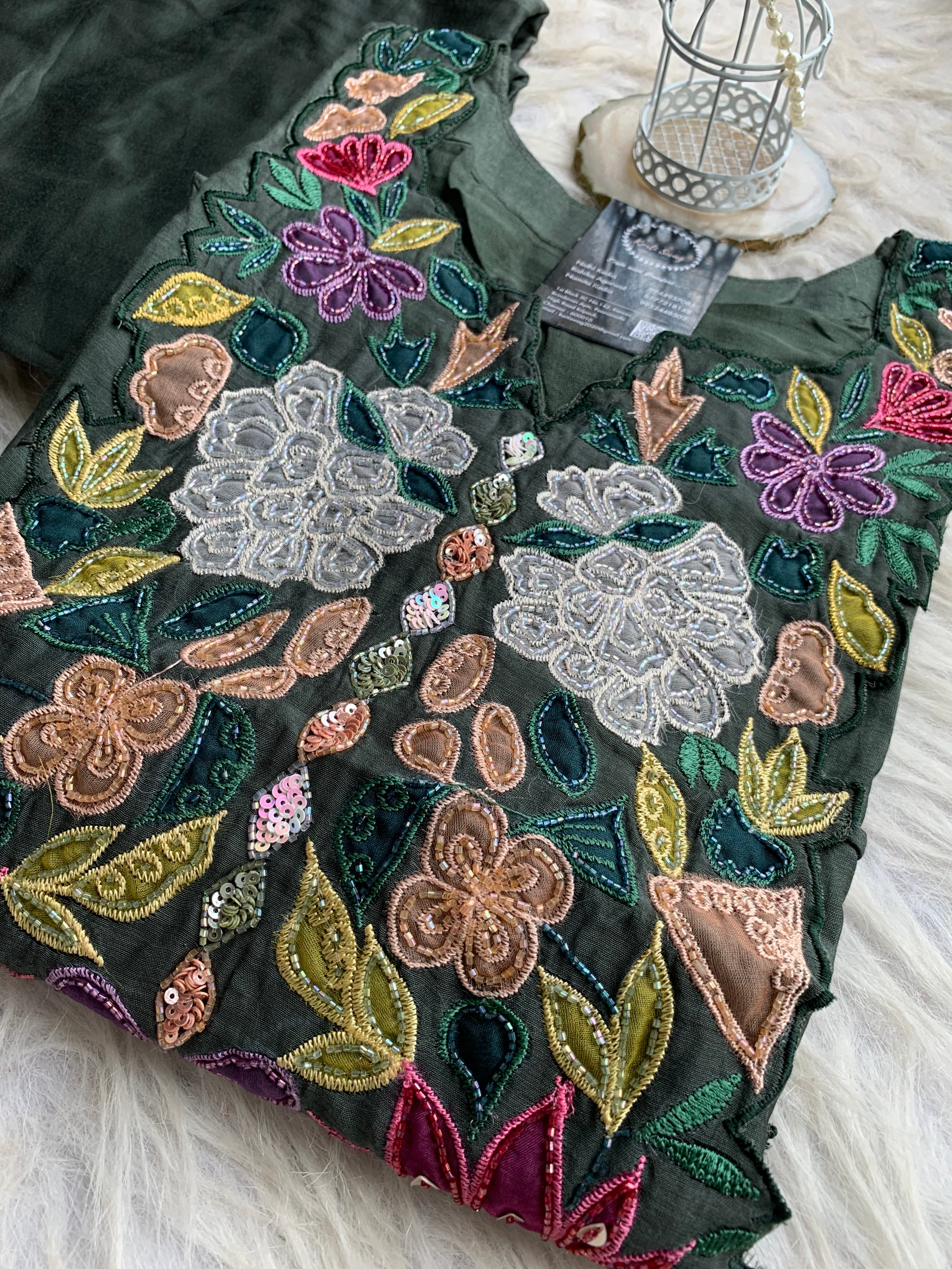 ✅ Premium Mul Chanderi Kurti With thread, Applique And Cutdaana Handwork On The Yoke Of The Kurta