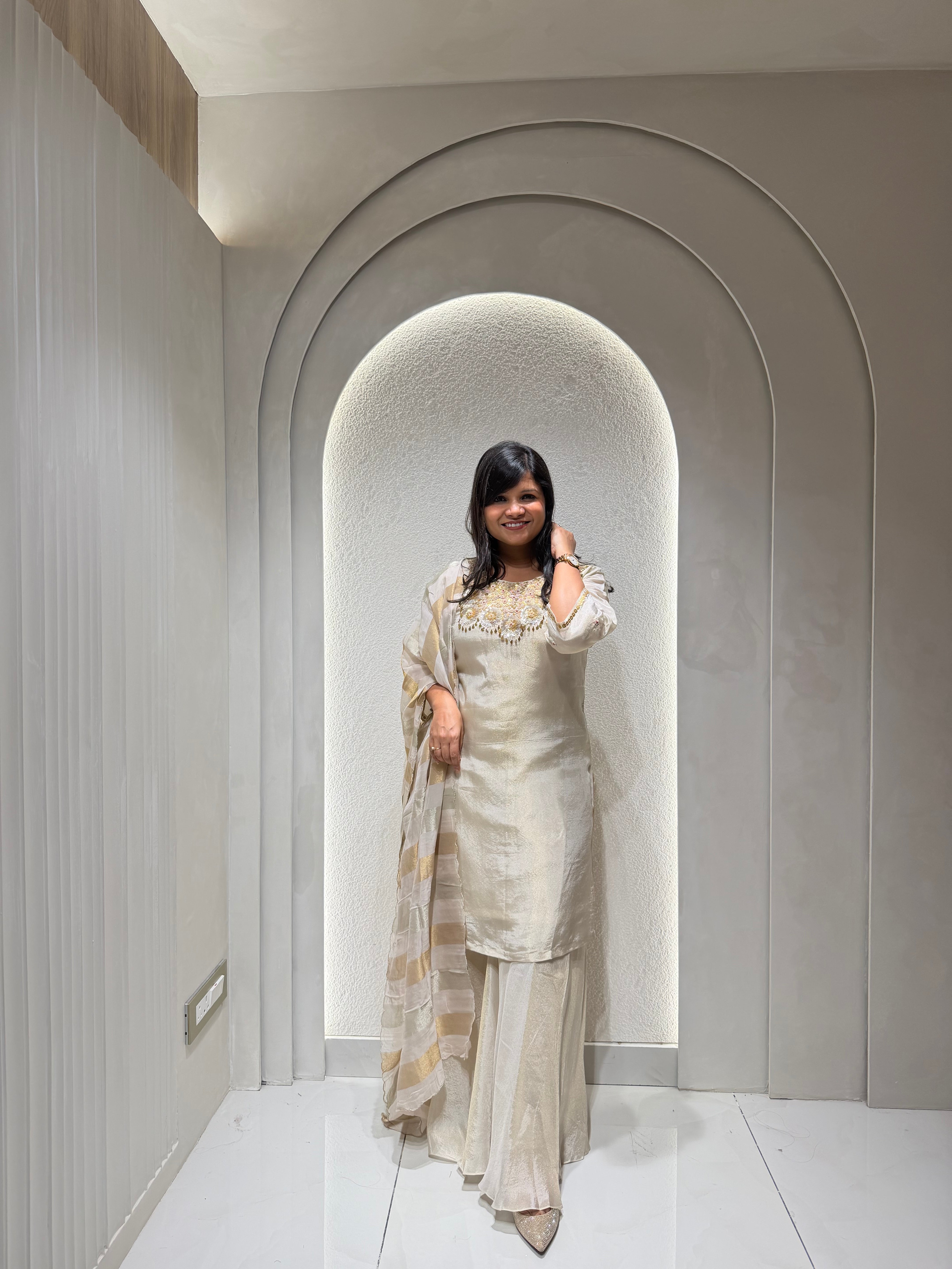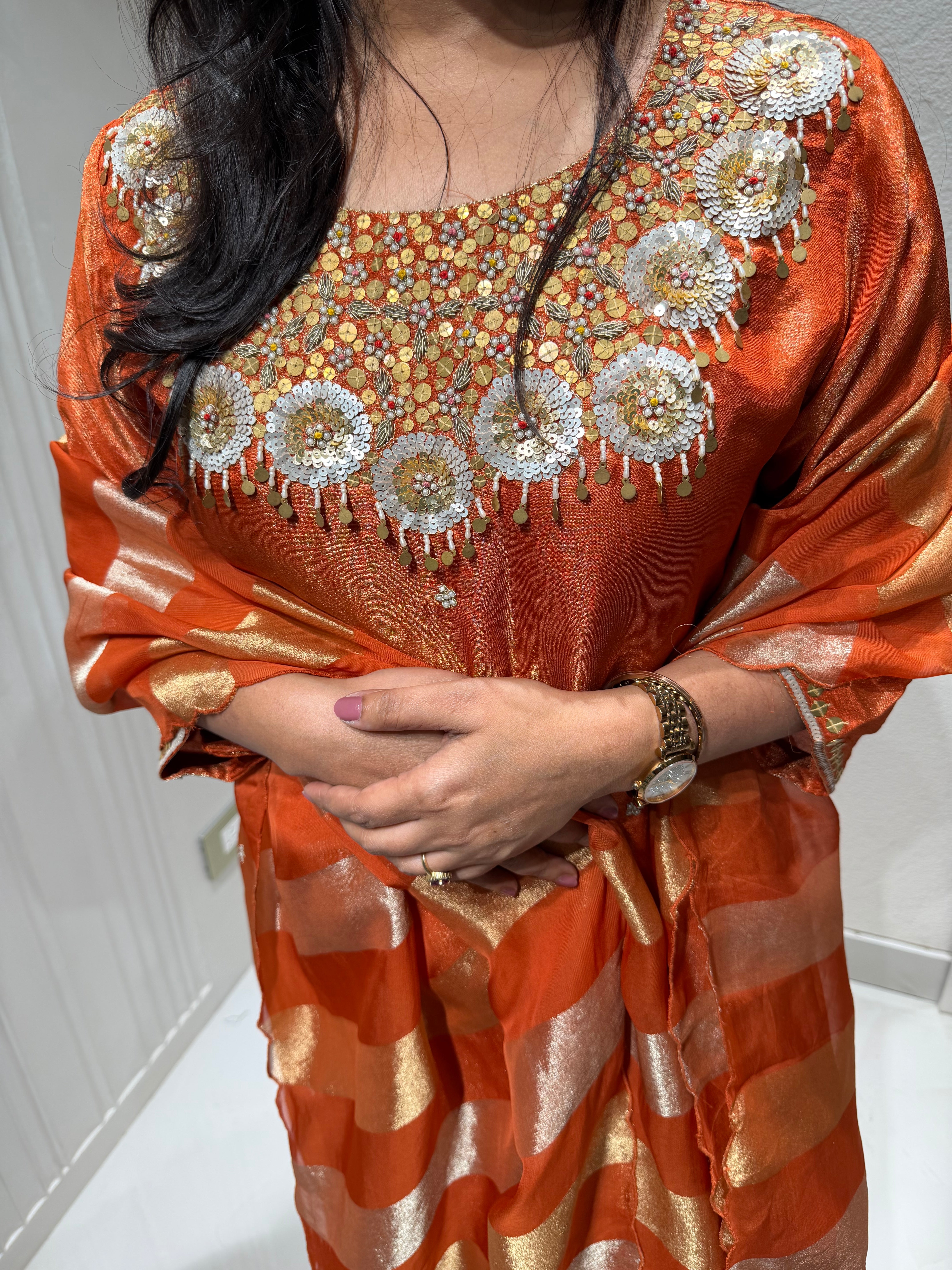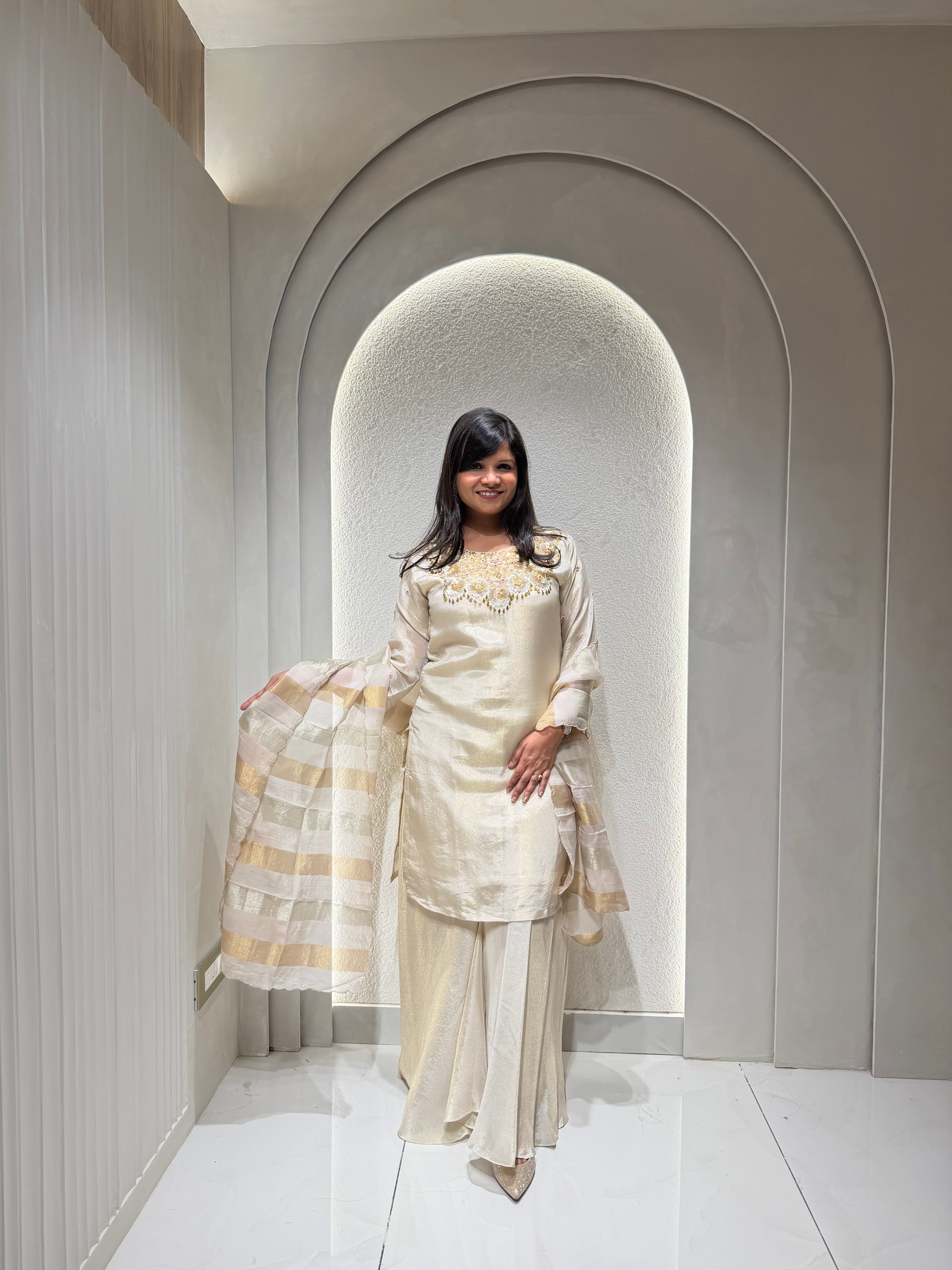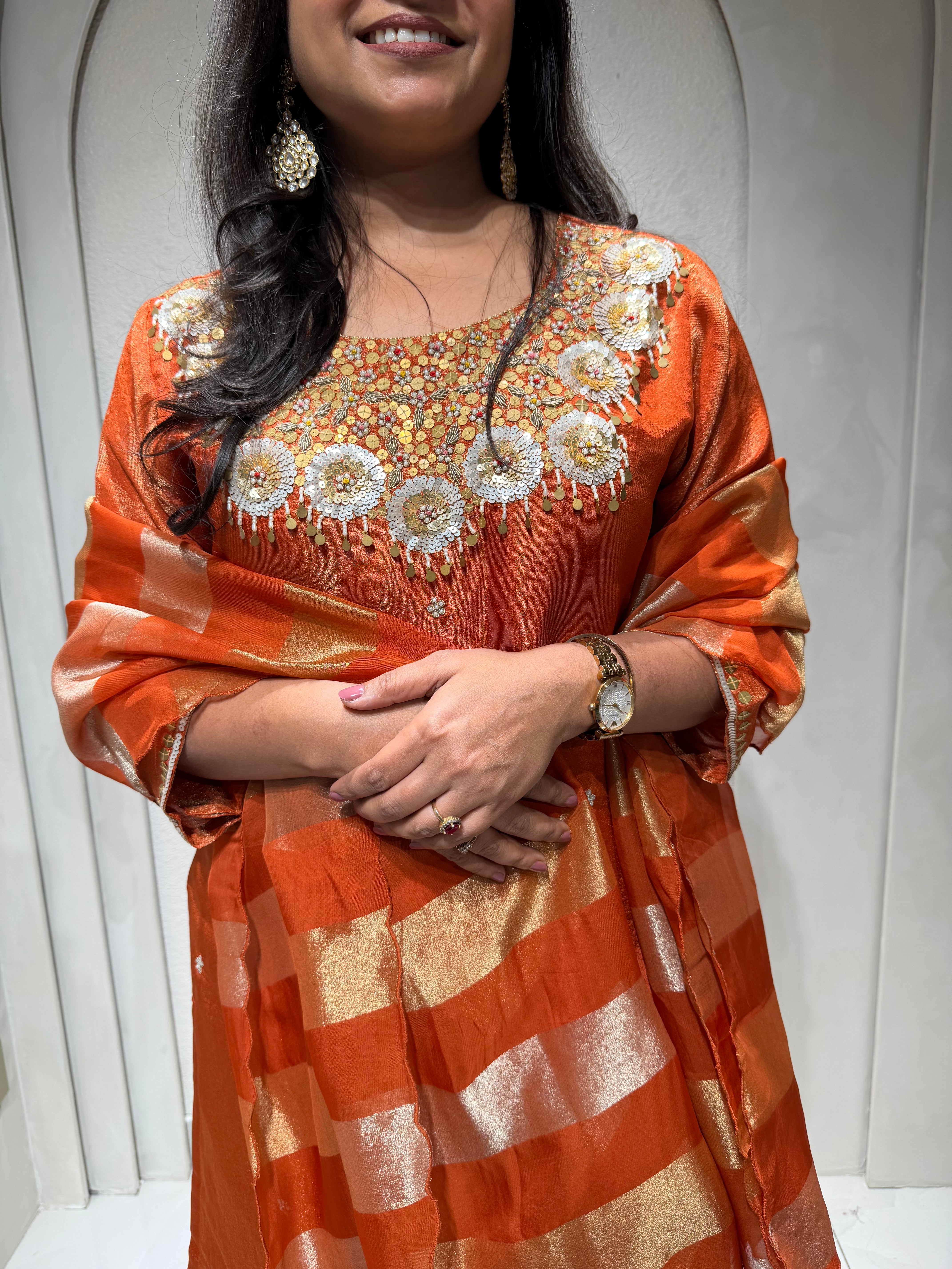 ✅ Premium Tissue Silk Kurti With Exclusive Zardosi , Sequence And dabka Work On The Yoke Of The Kurta