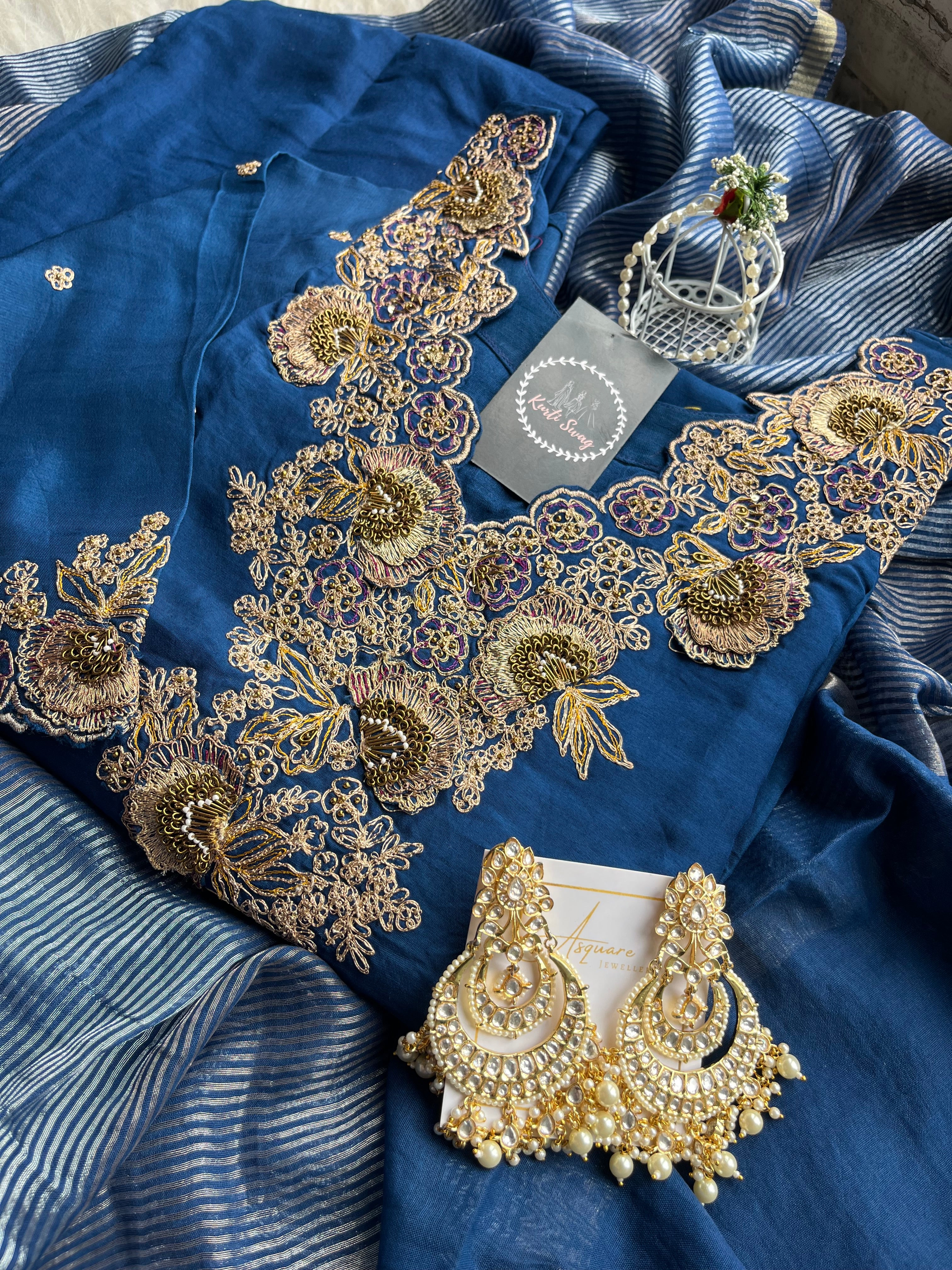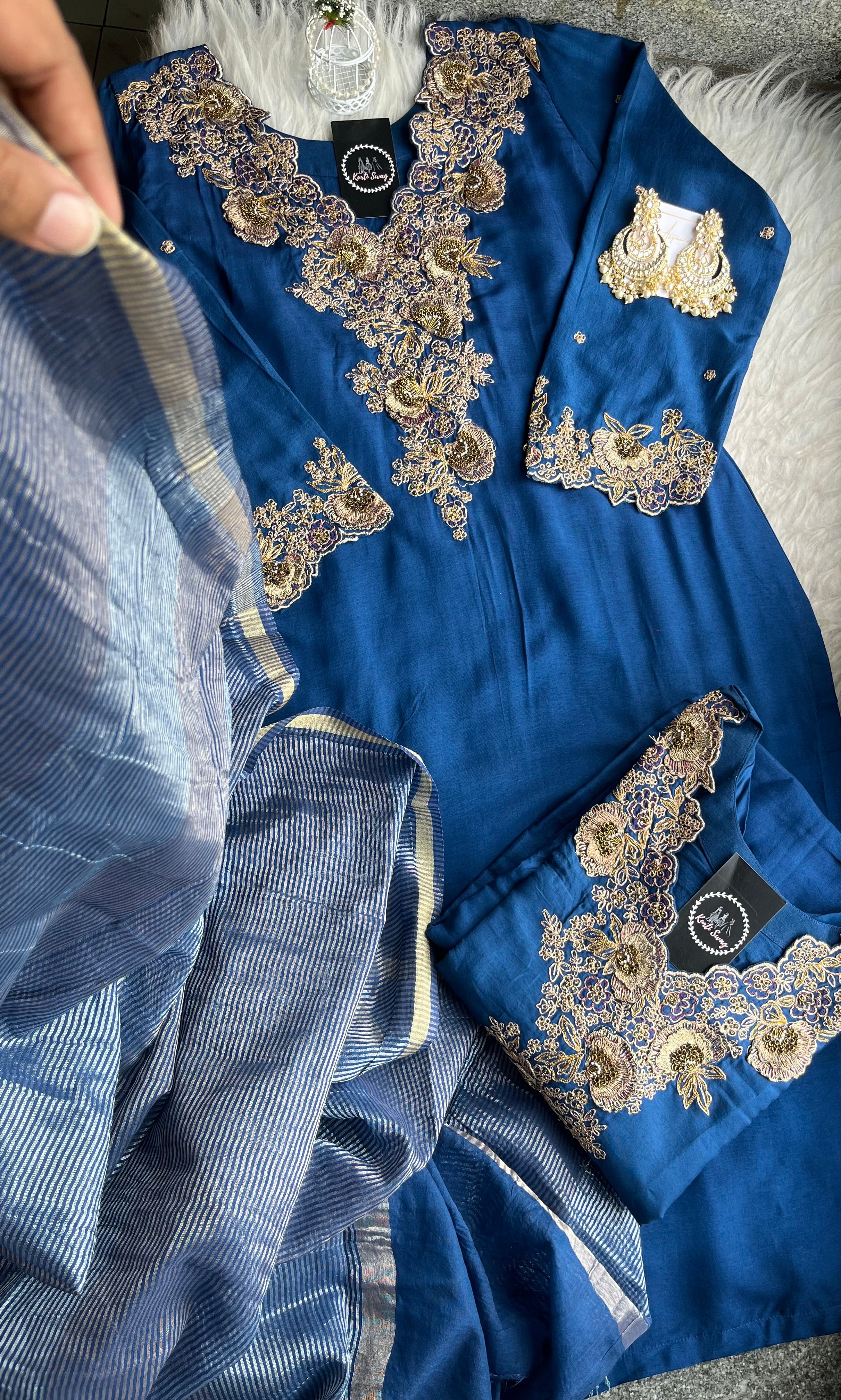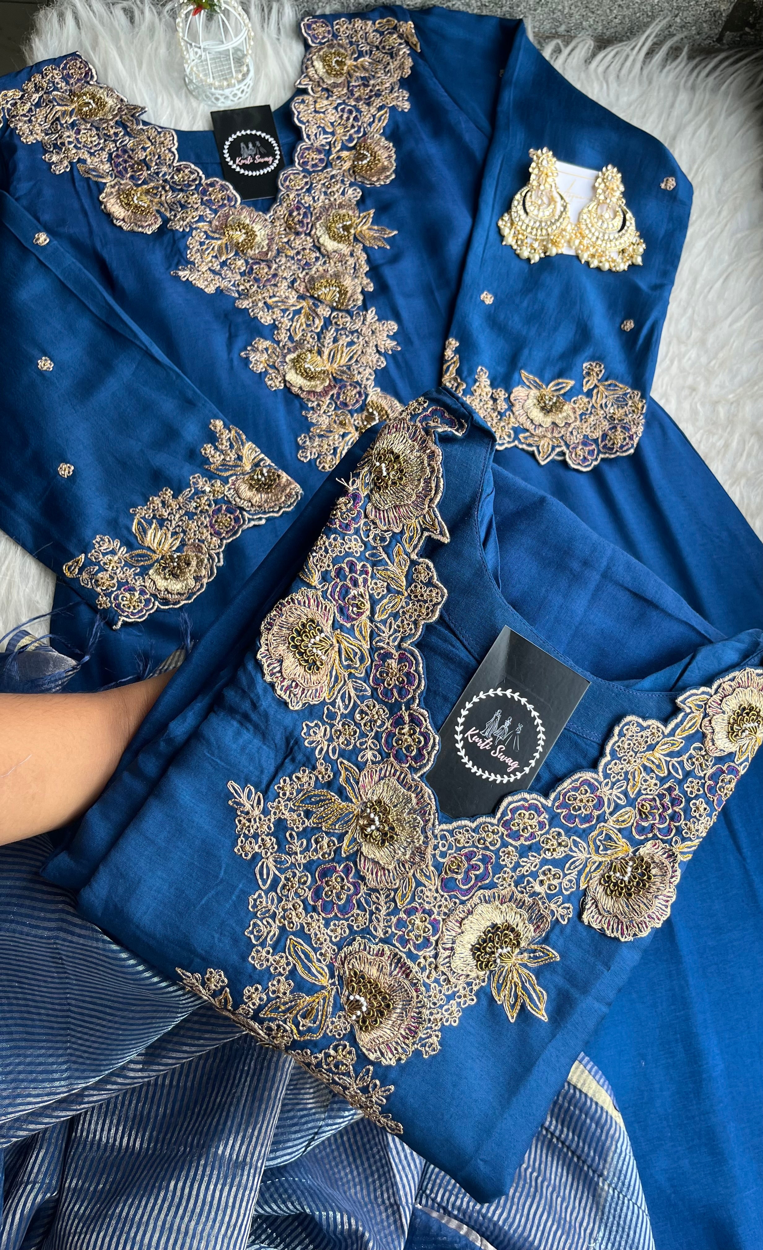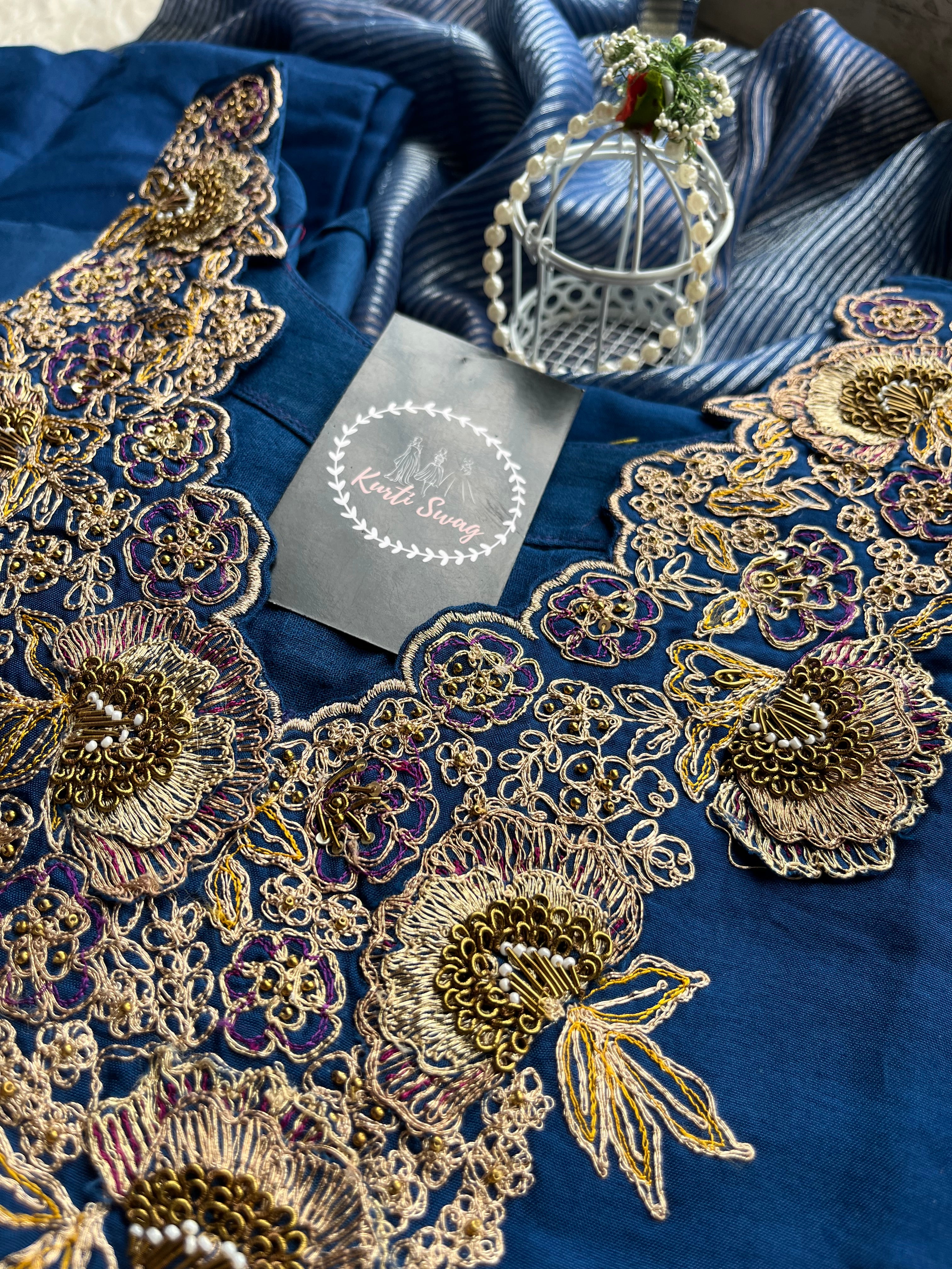 ✅ Premium Dola Silk Kurti With Zari Handwork On The Neckline  Of The Kurti .