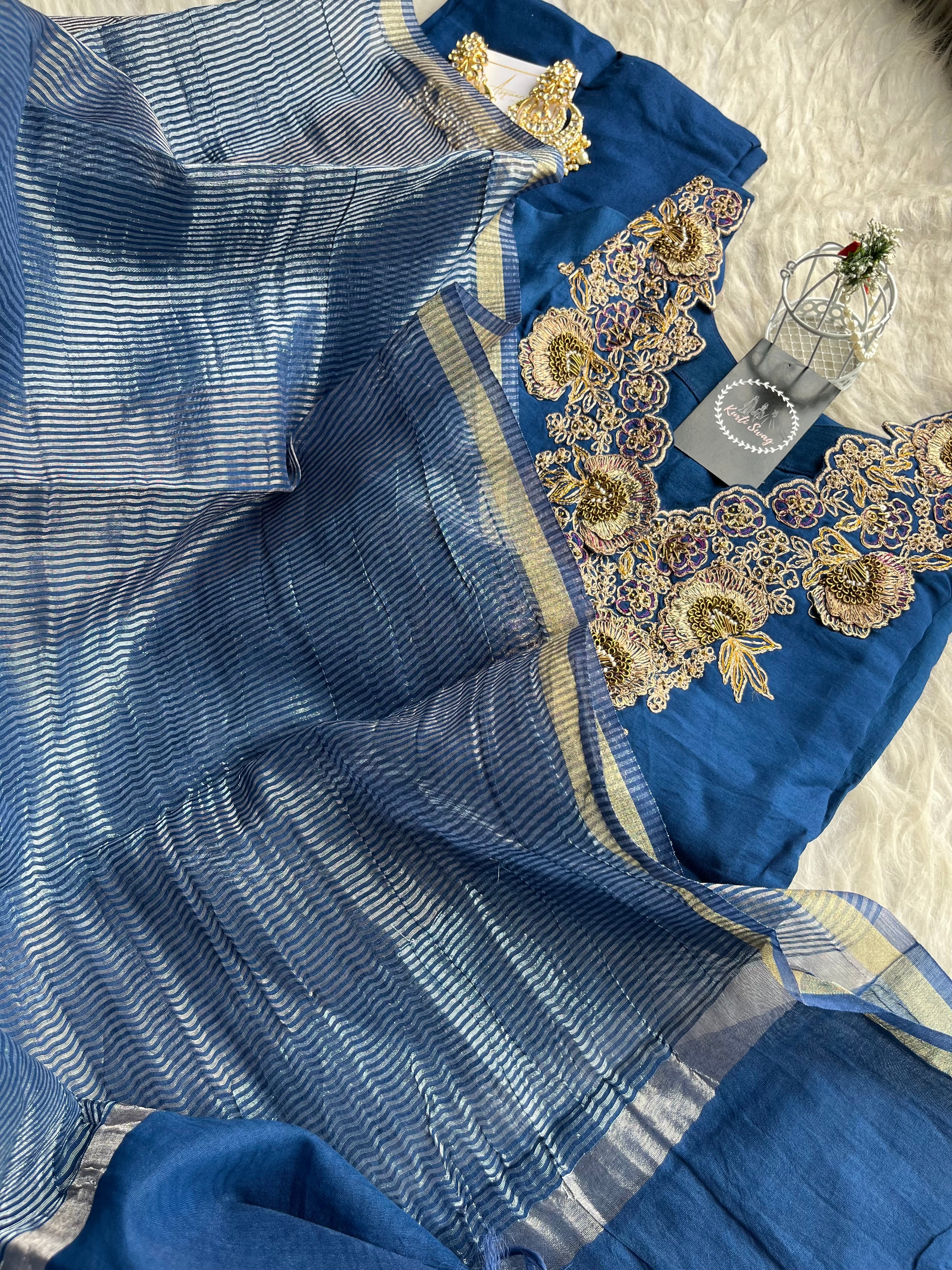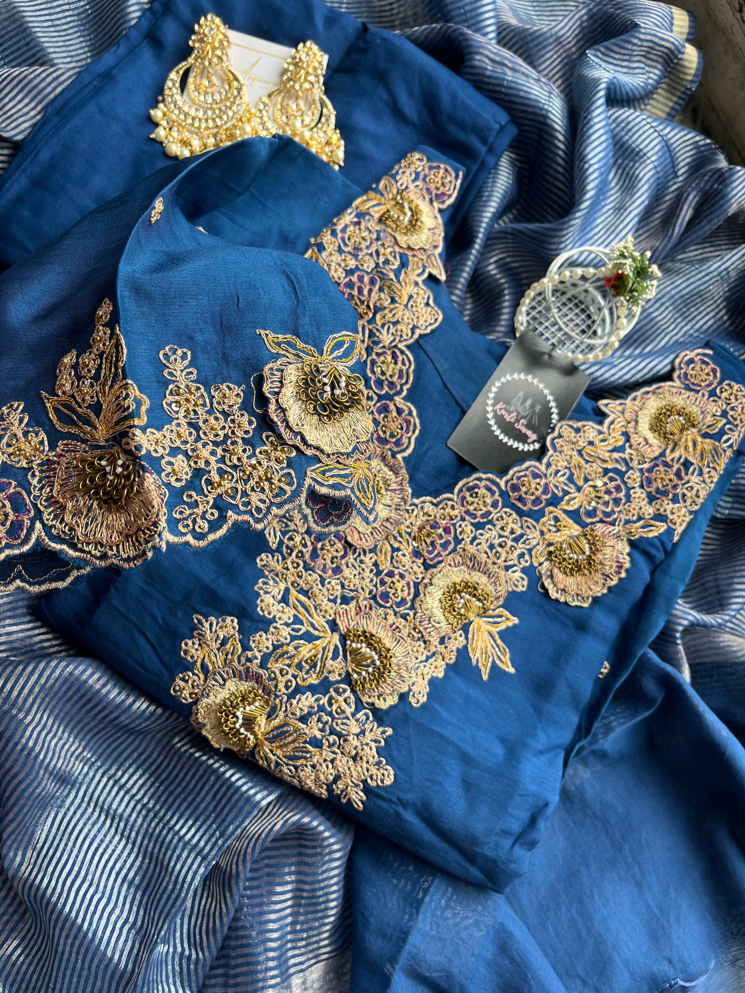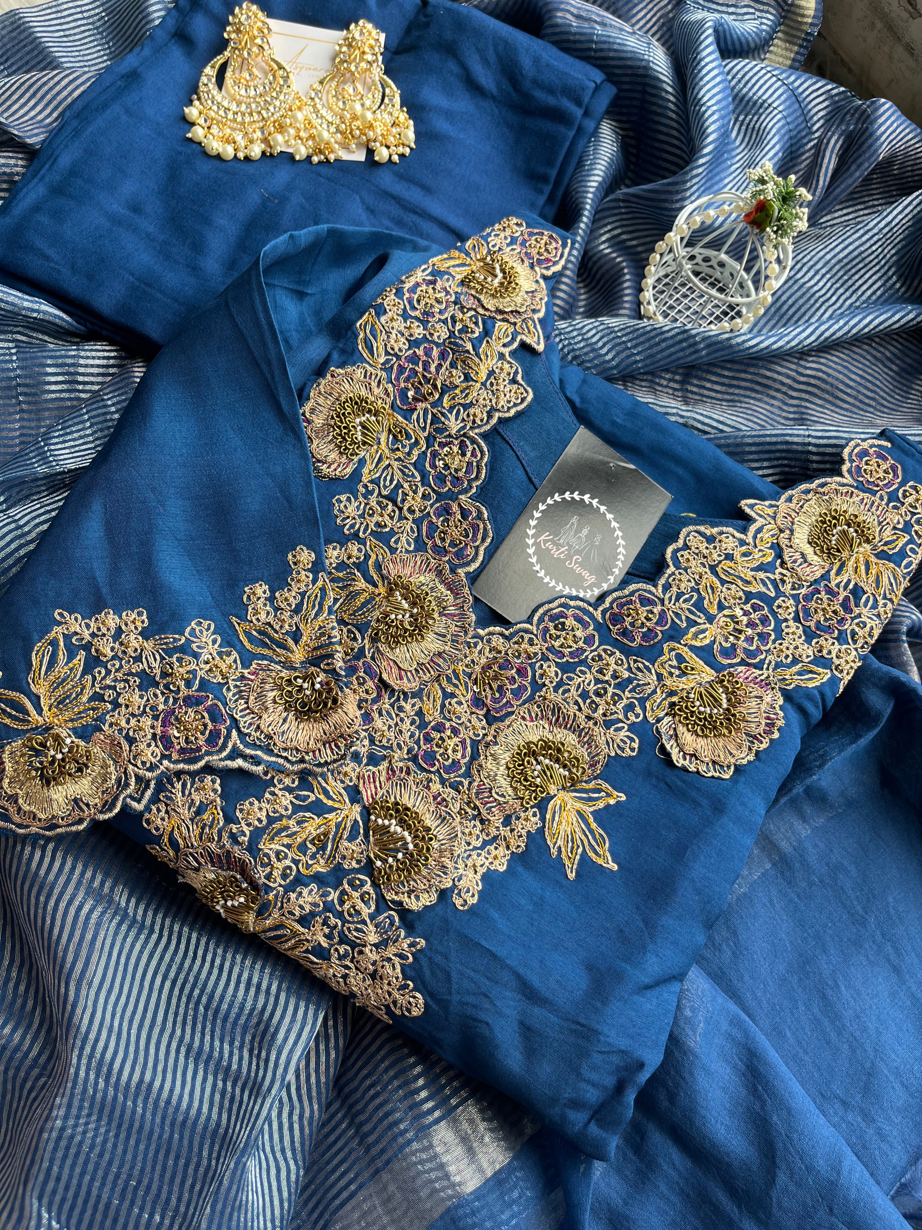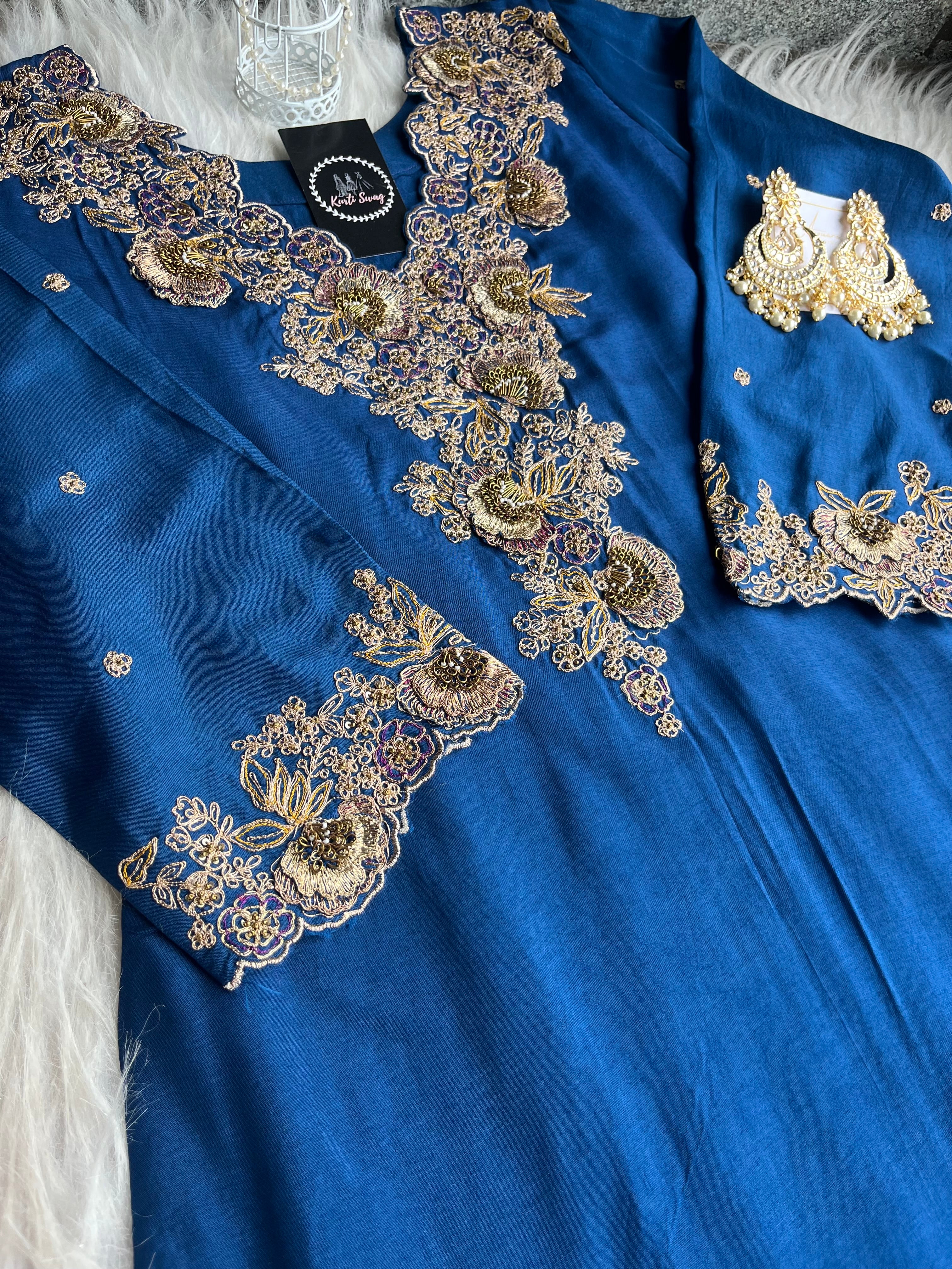 ✅ Premium Dola Silk Kurti With Zari Handwork On The Neckline  Of The Kurti .