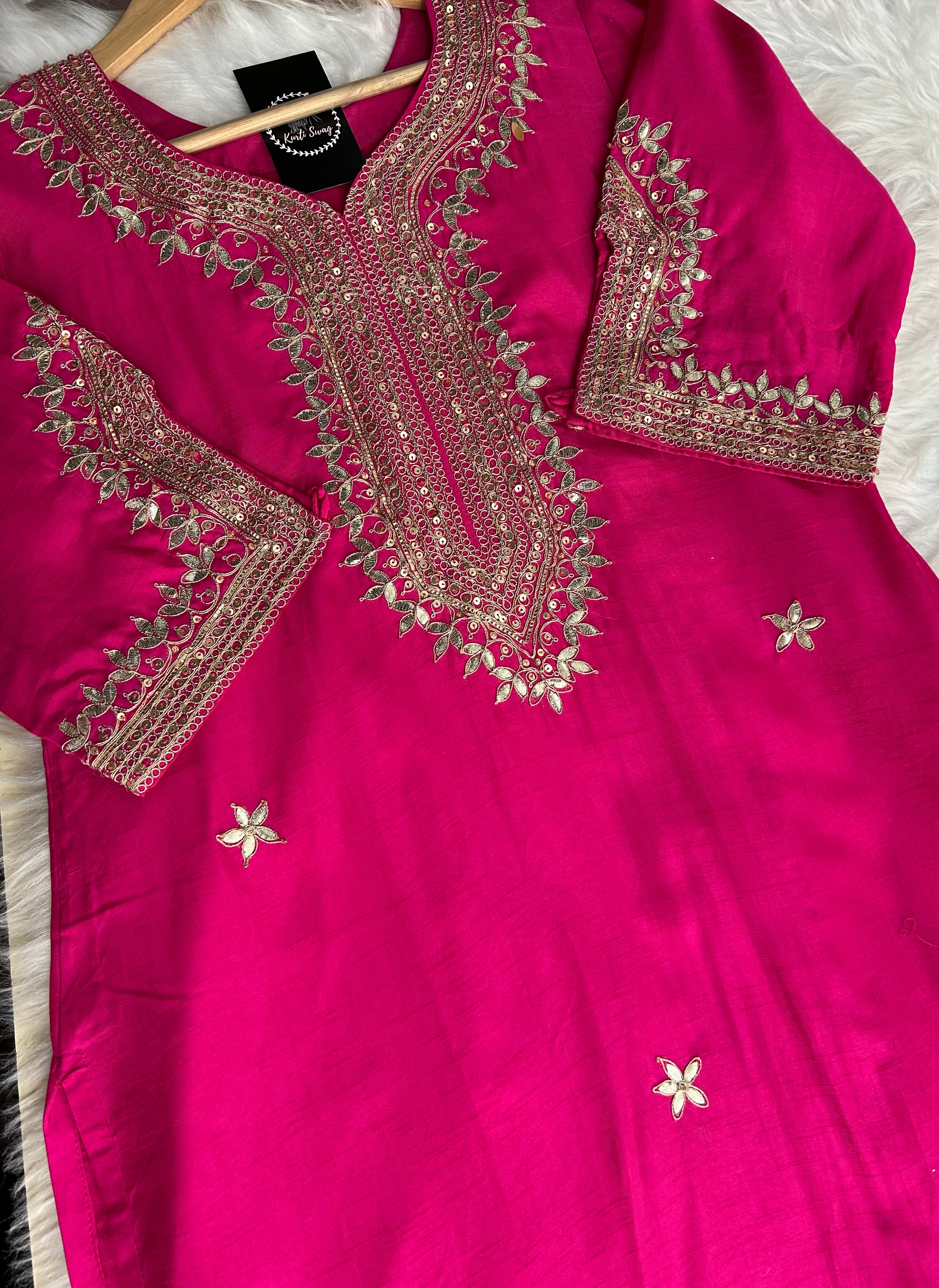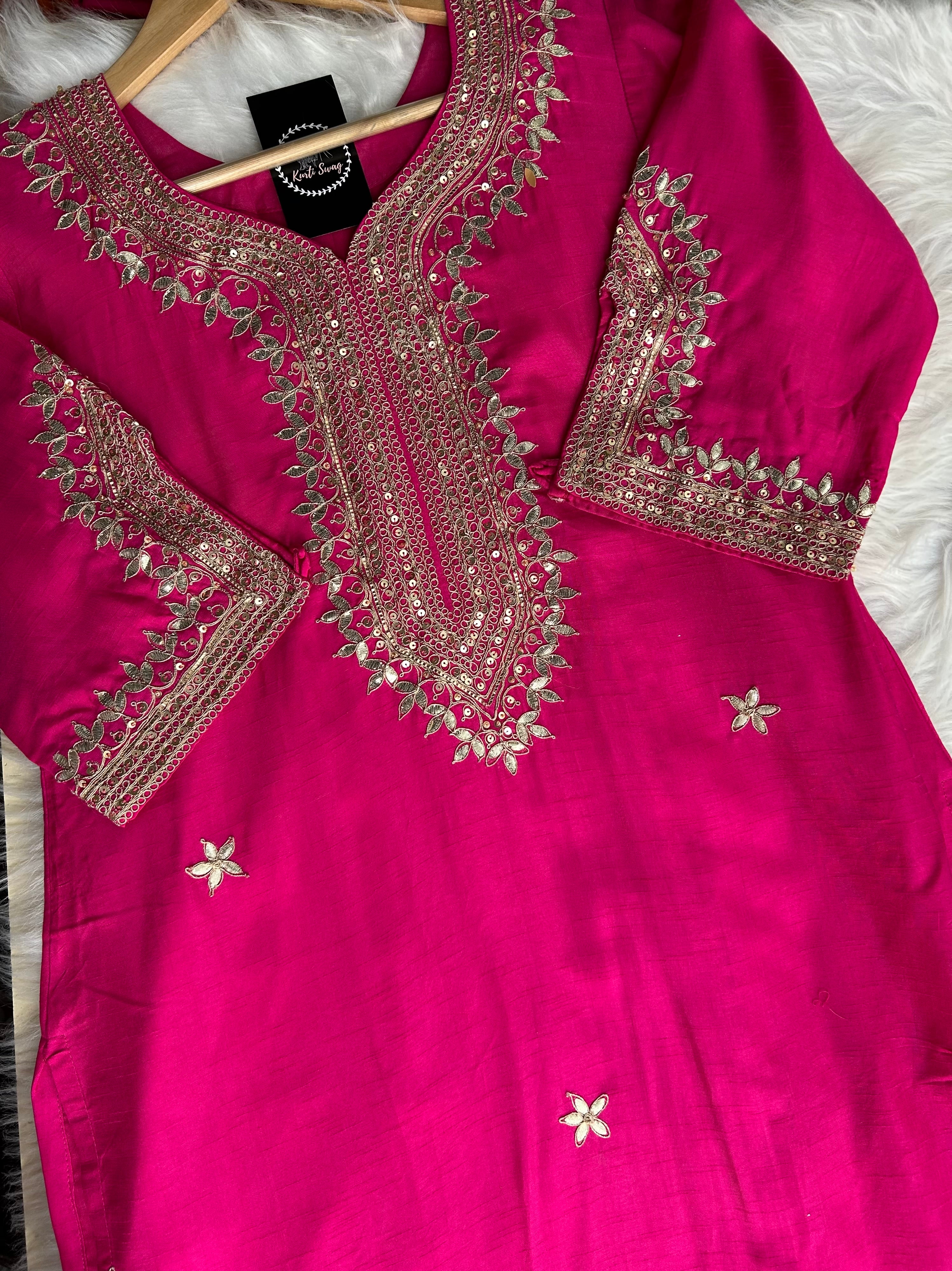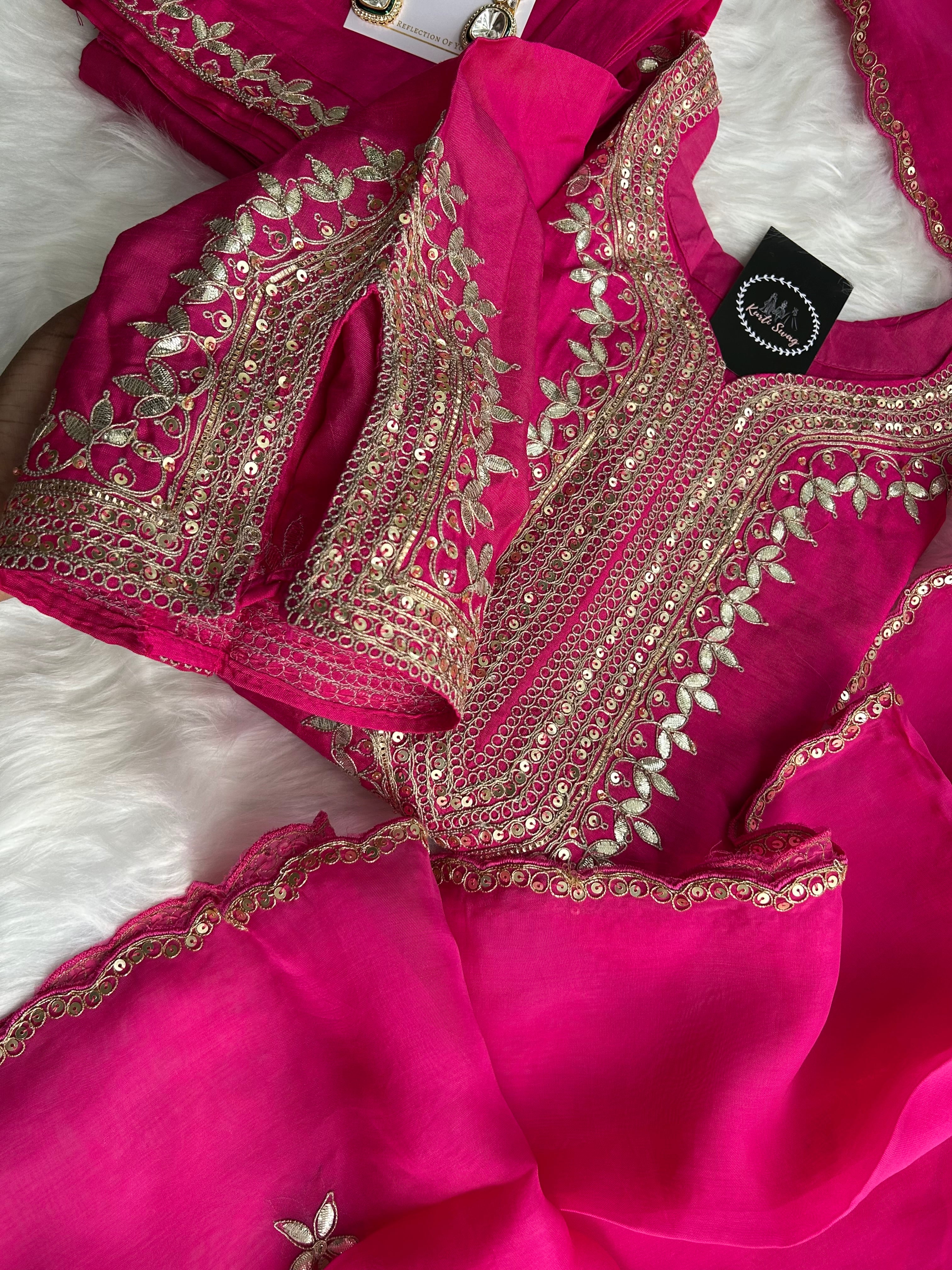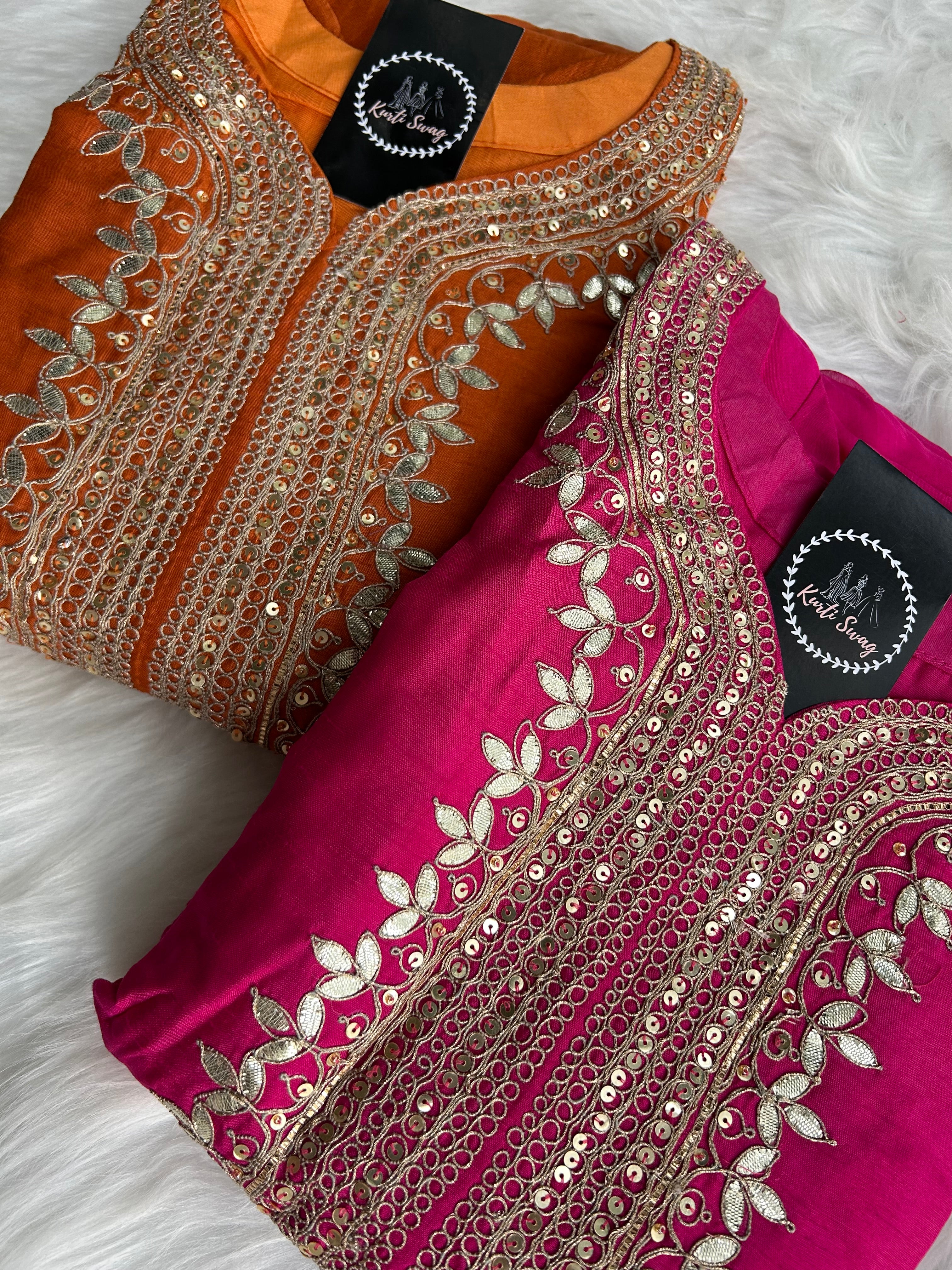 ✅ Premium Dola Kurti With Zardosi & Gota Handwork On The Kurti