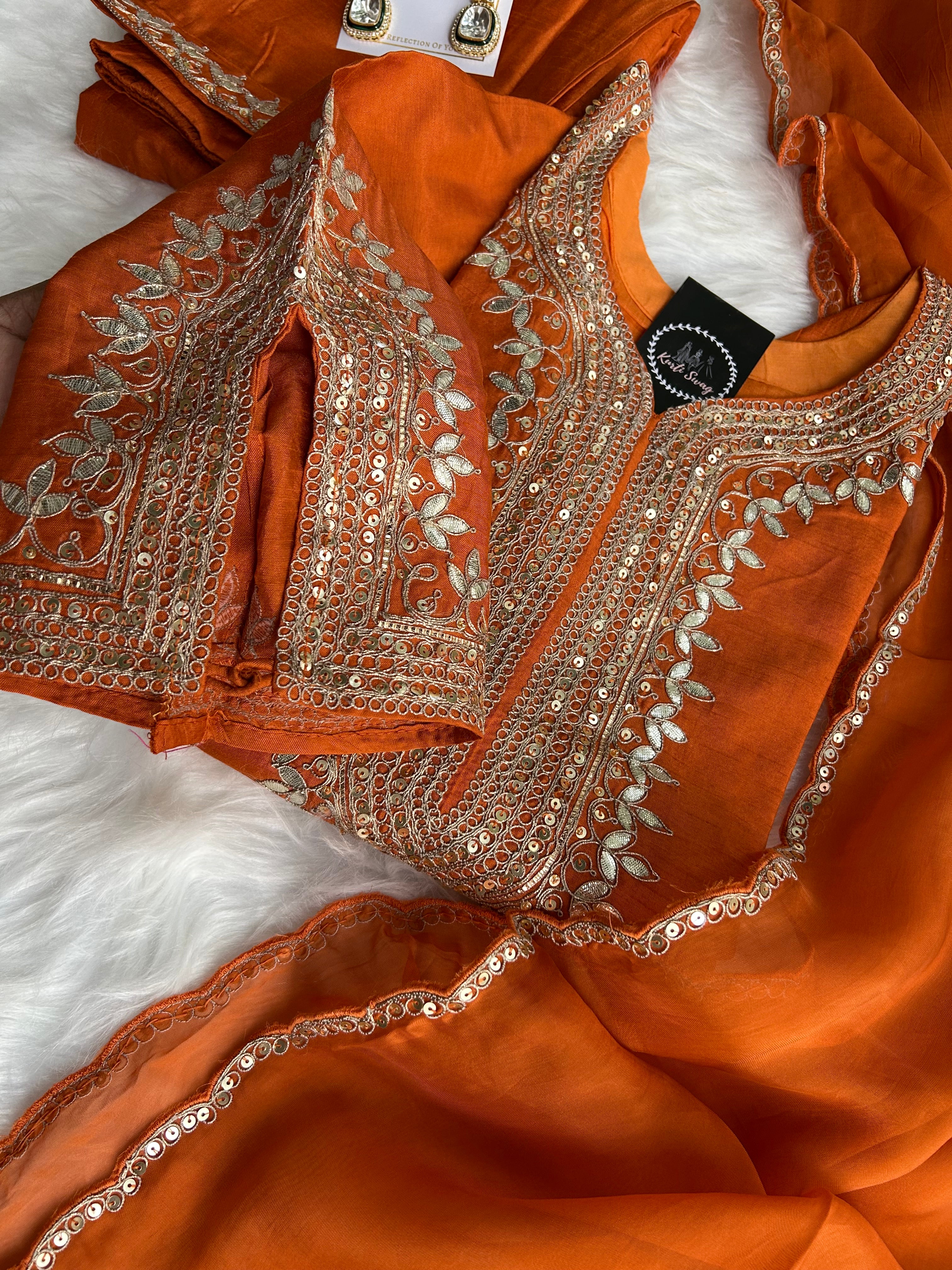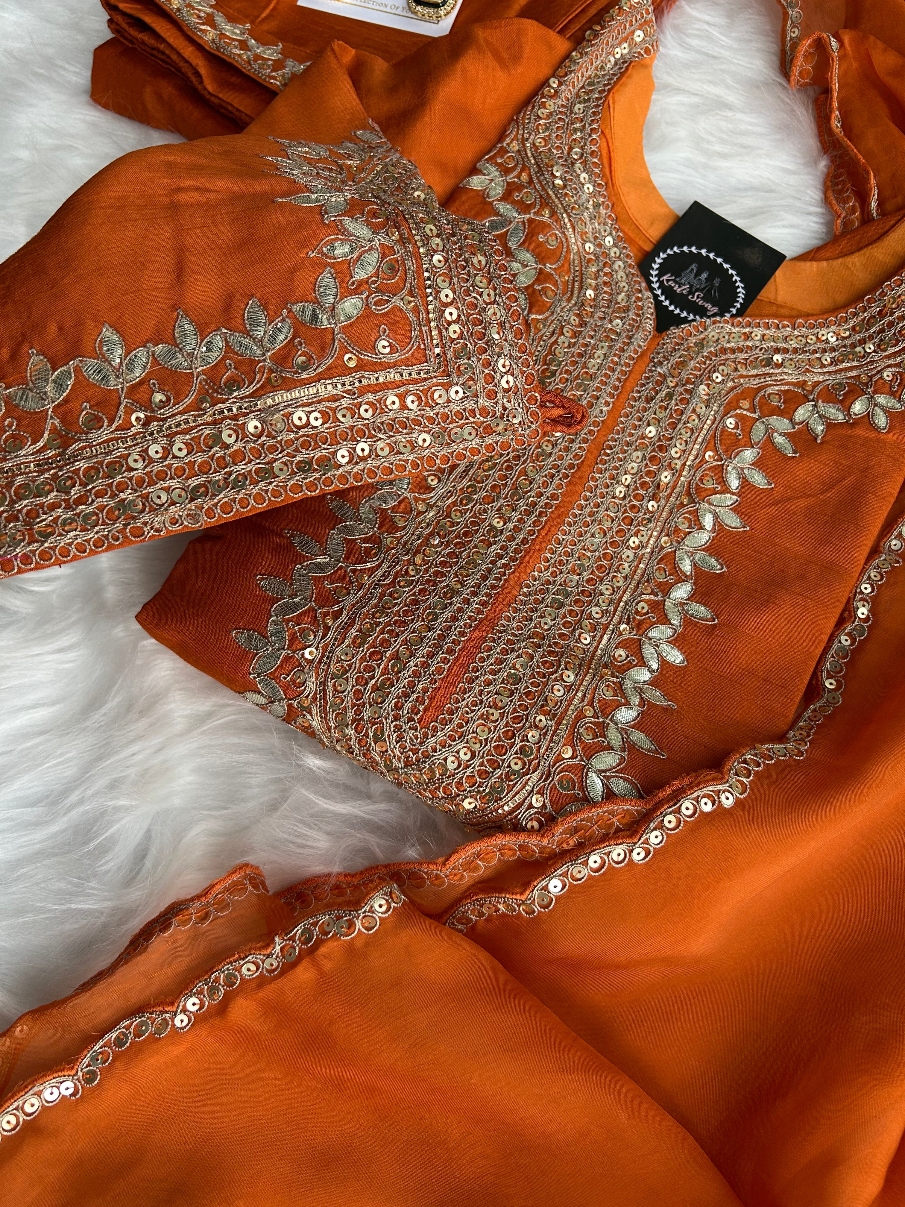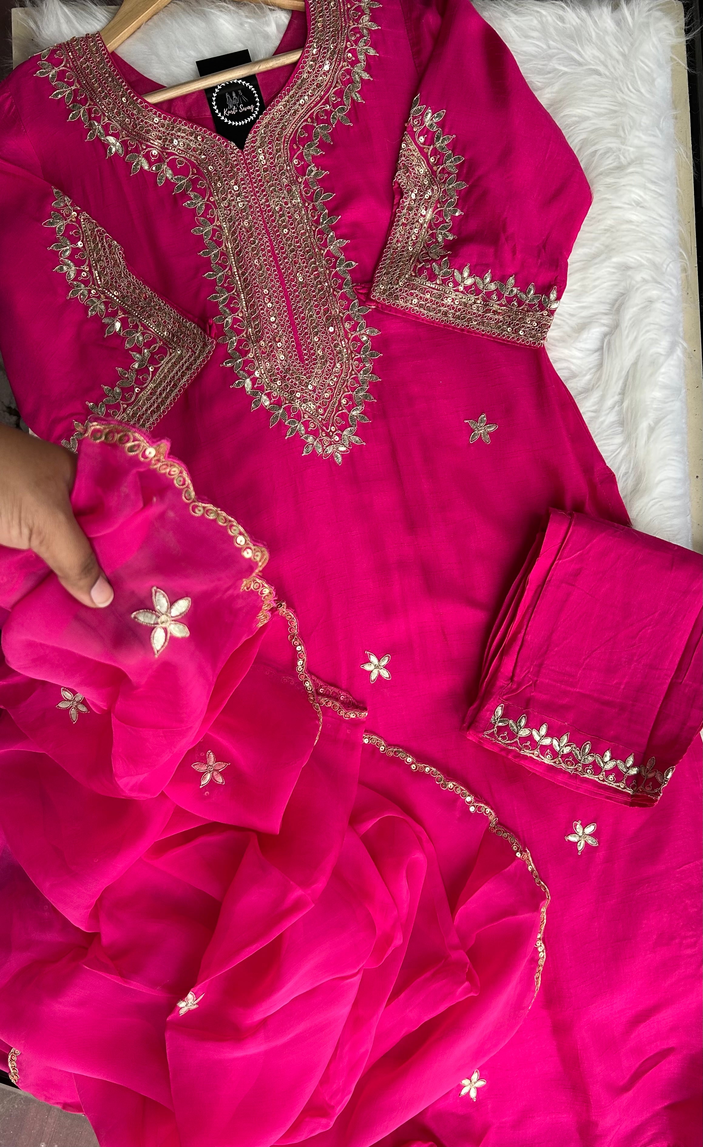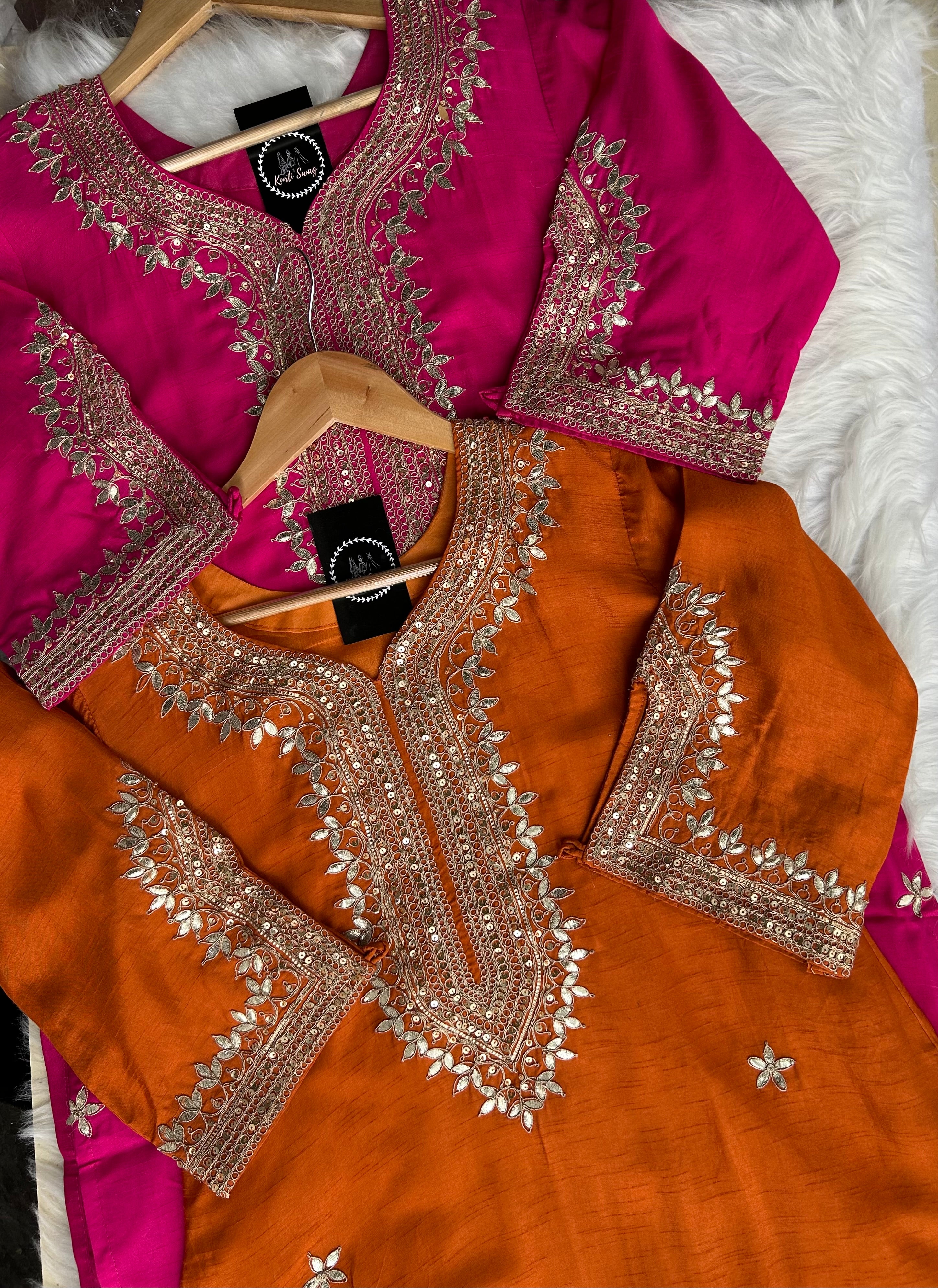 ✅ Premium Dola Kurti With Zardosi & Gota Handwork On The Kurti
