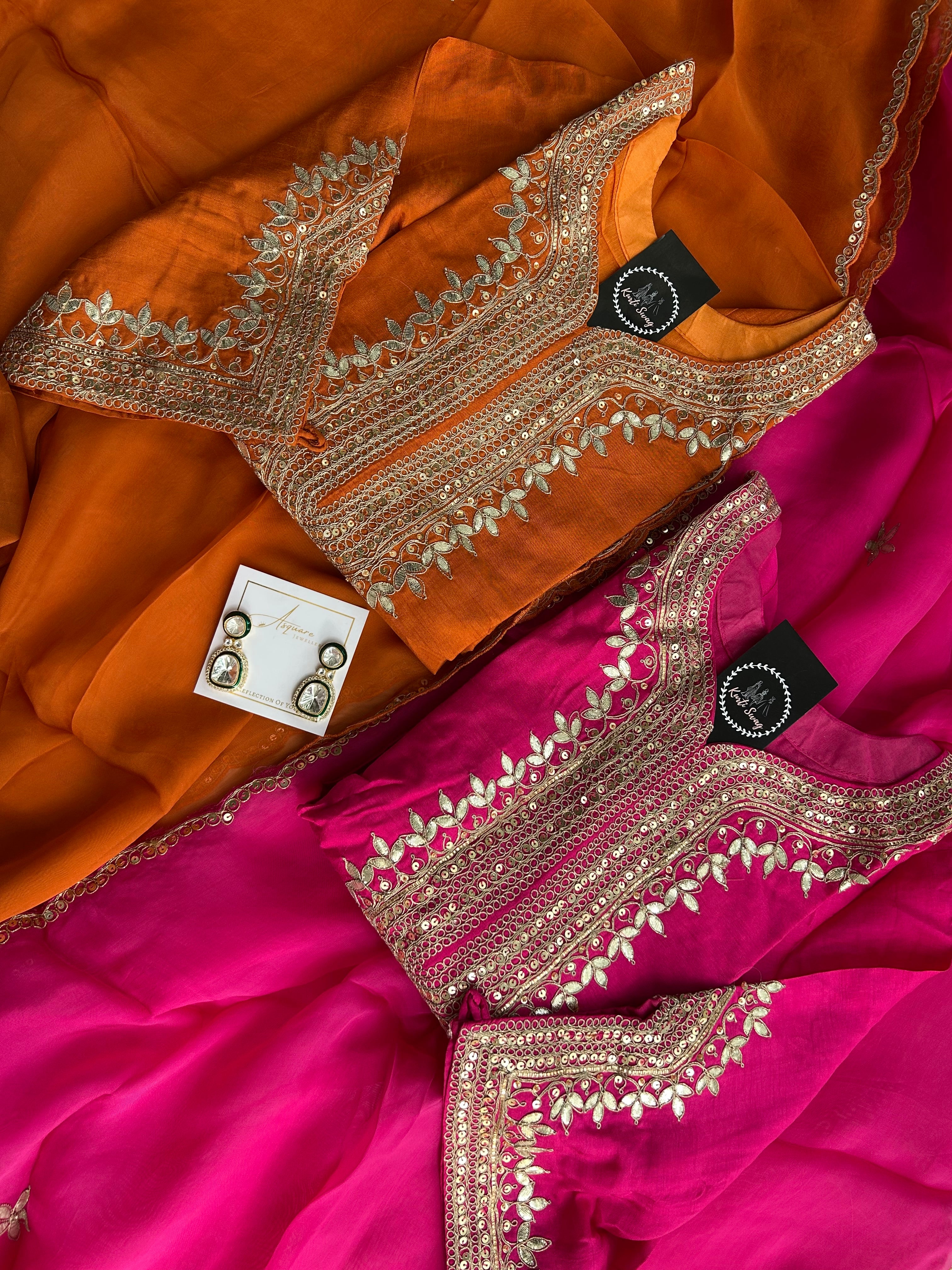 ✅ 3/4 Sleeves With Zari & Gota Handwork