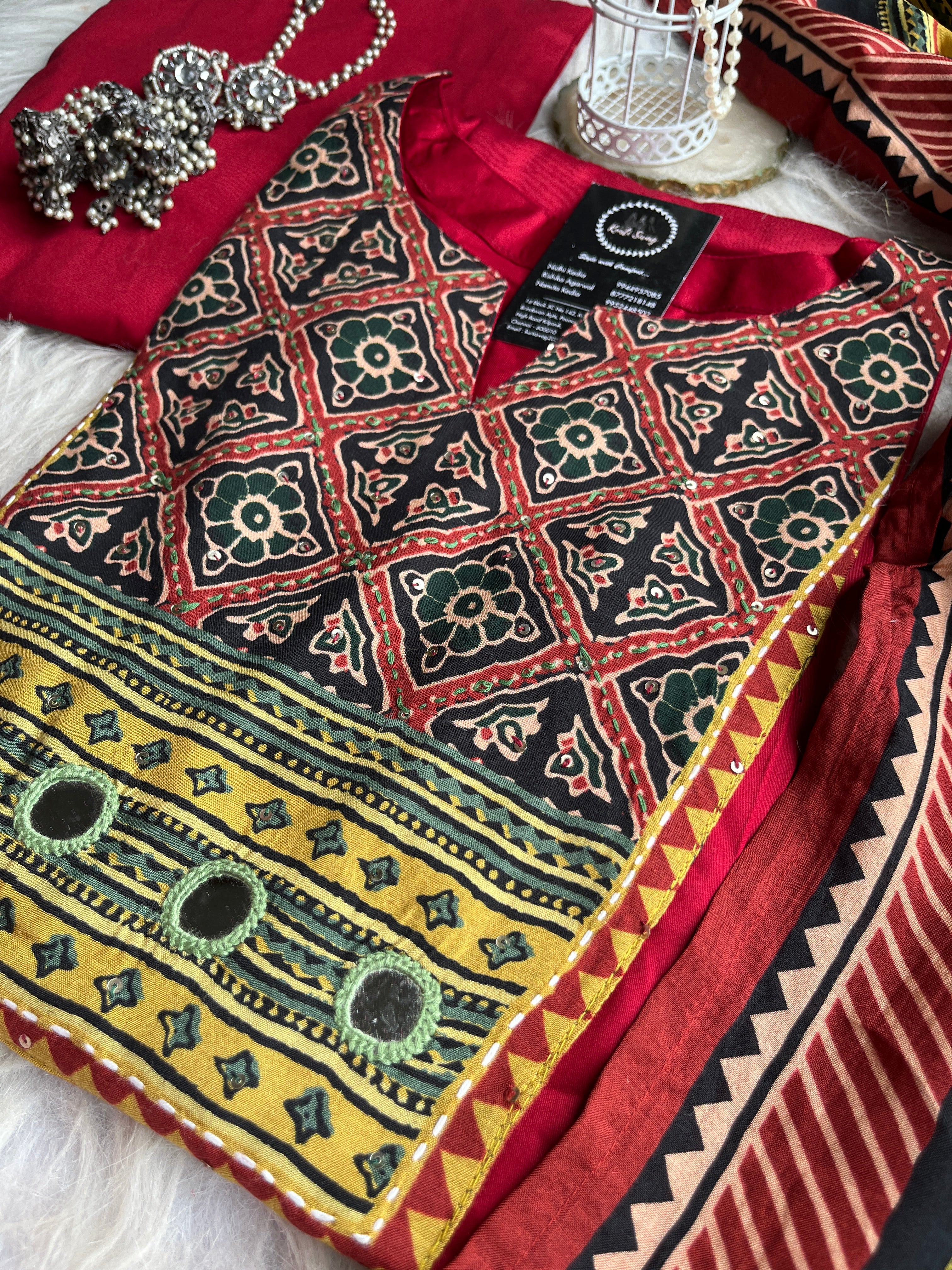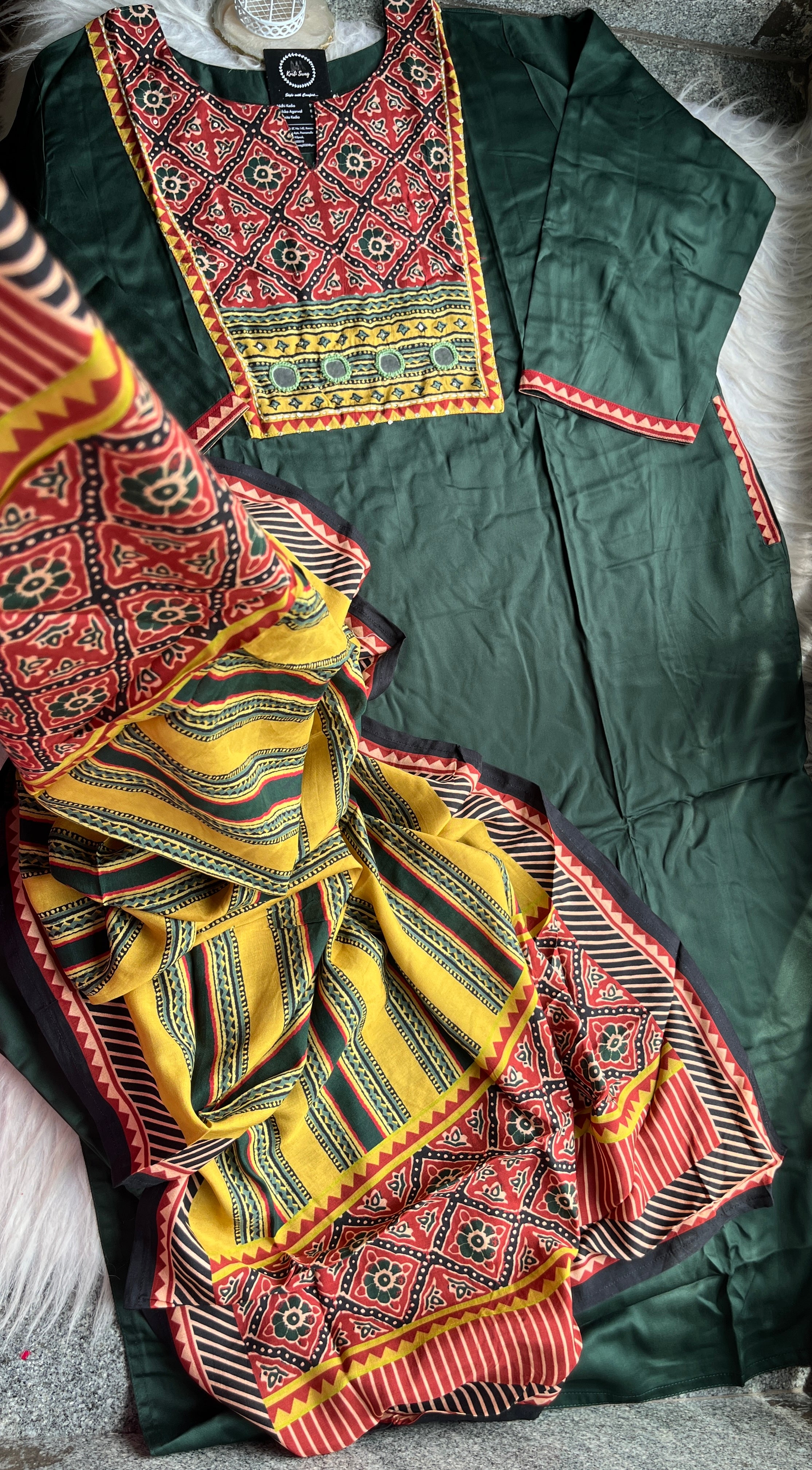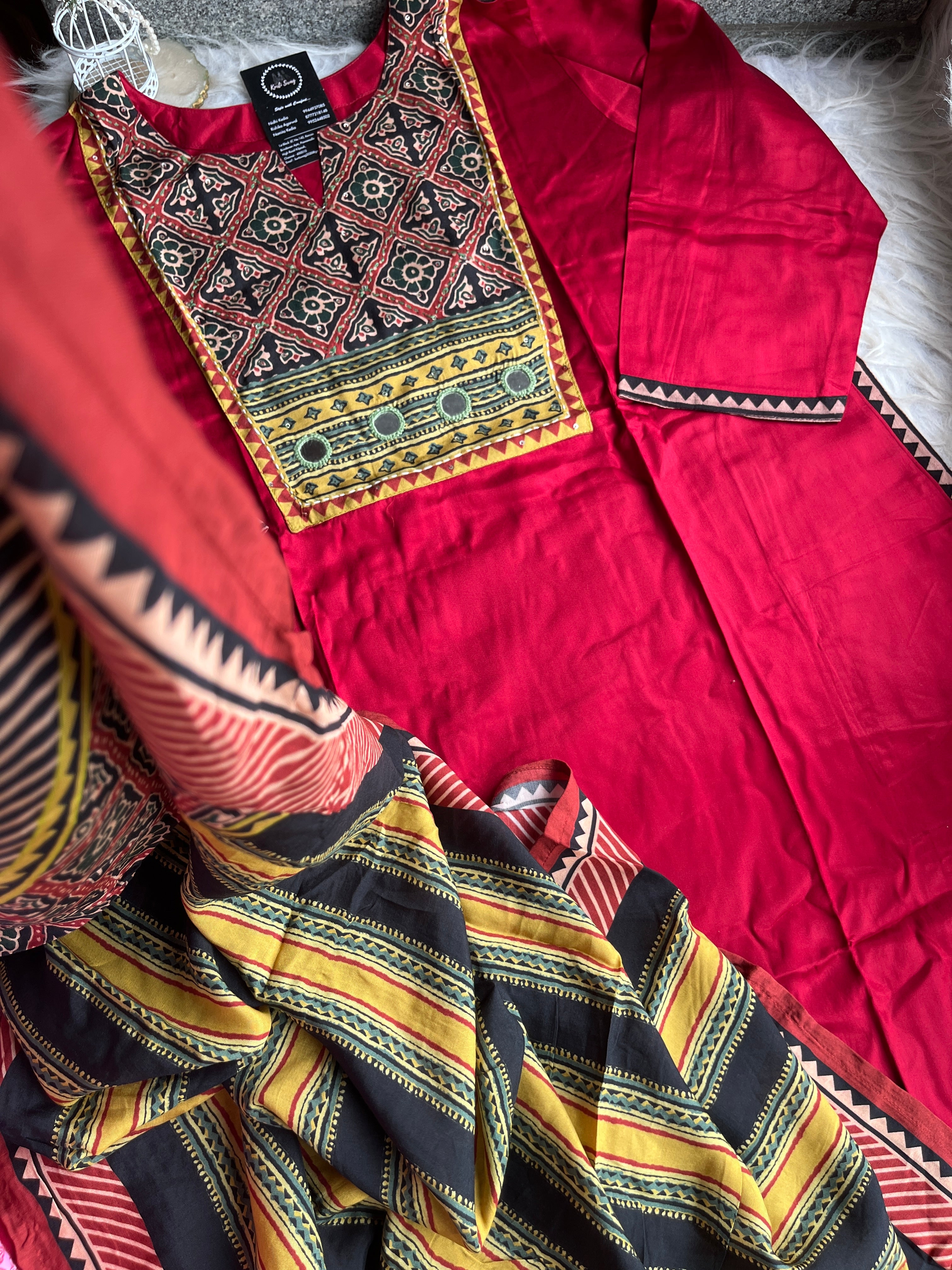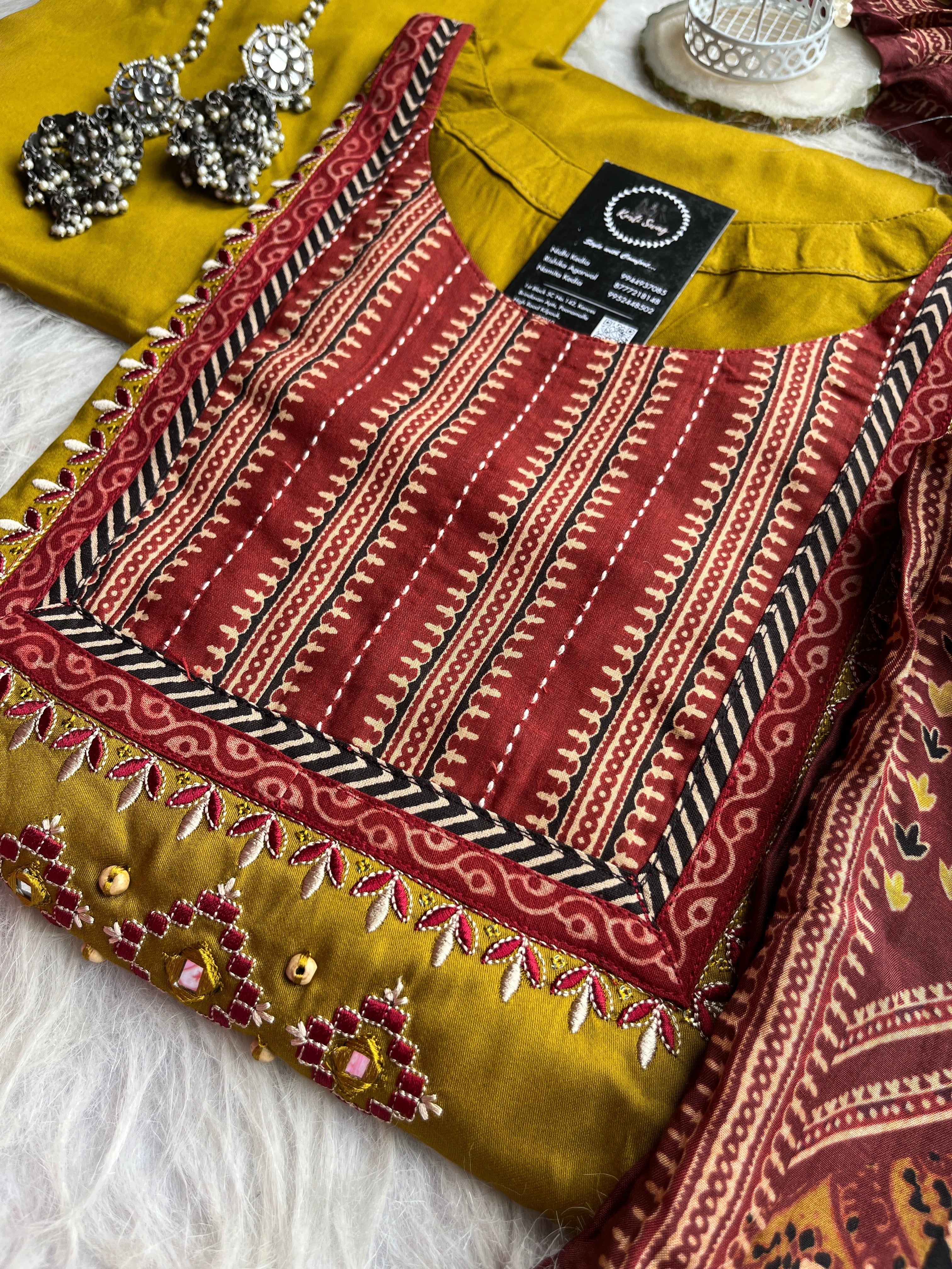 ✅ Gajji Russian Silk Kurti With Mirror & Kantha Handwork On The Yoke.
