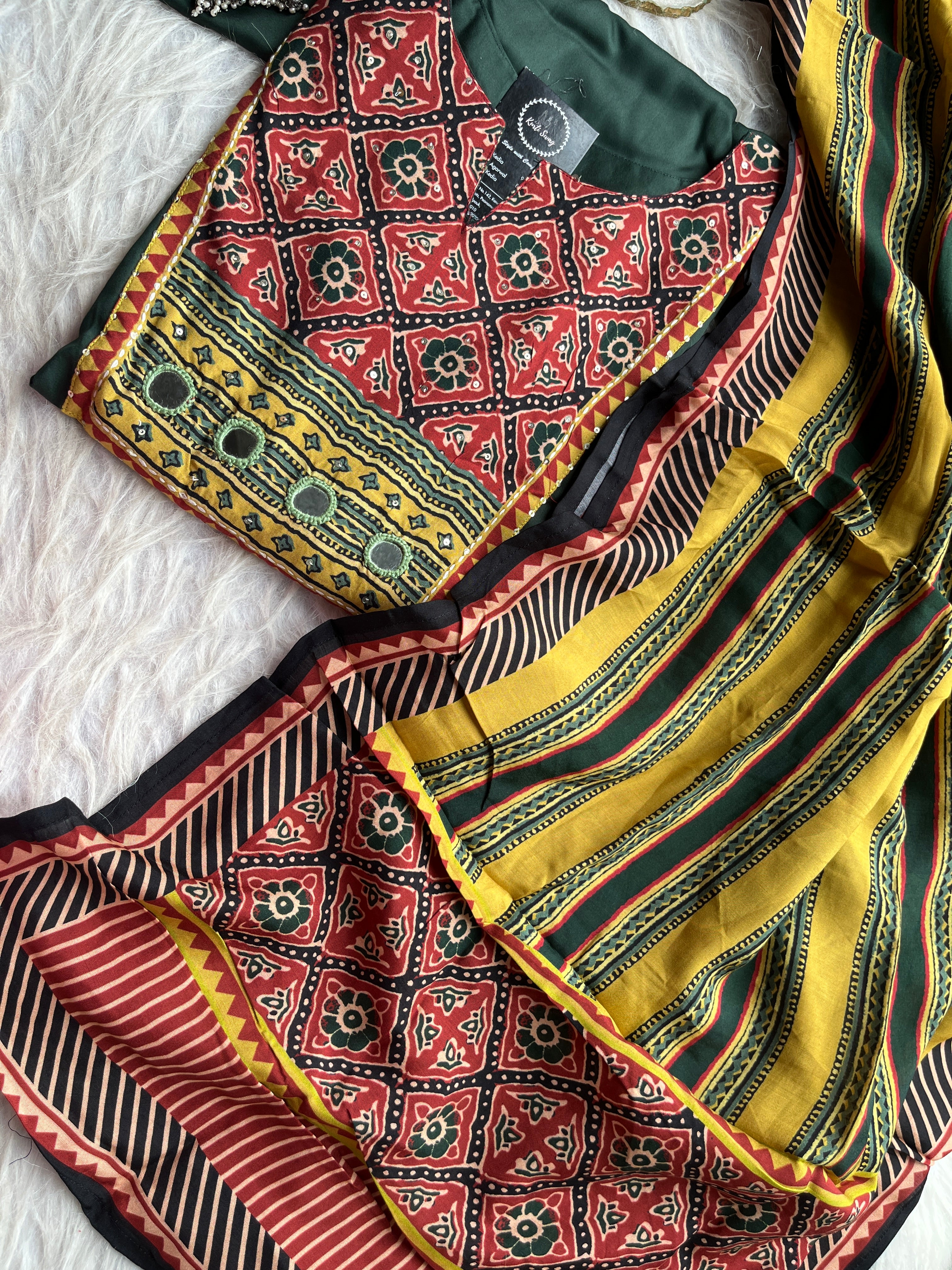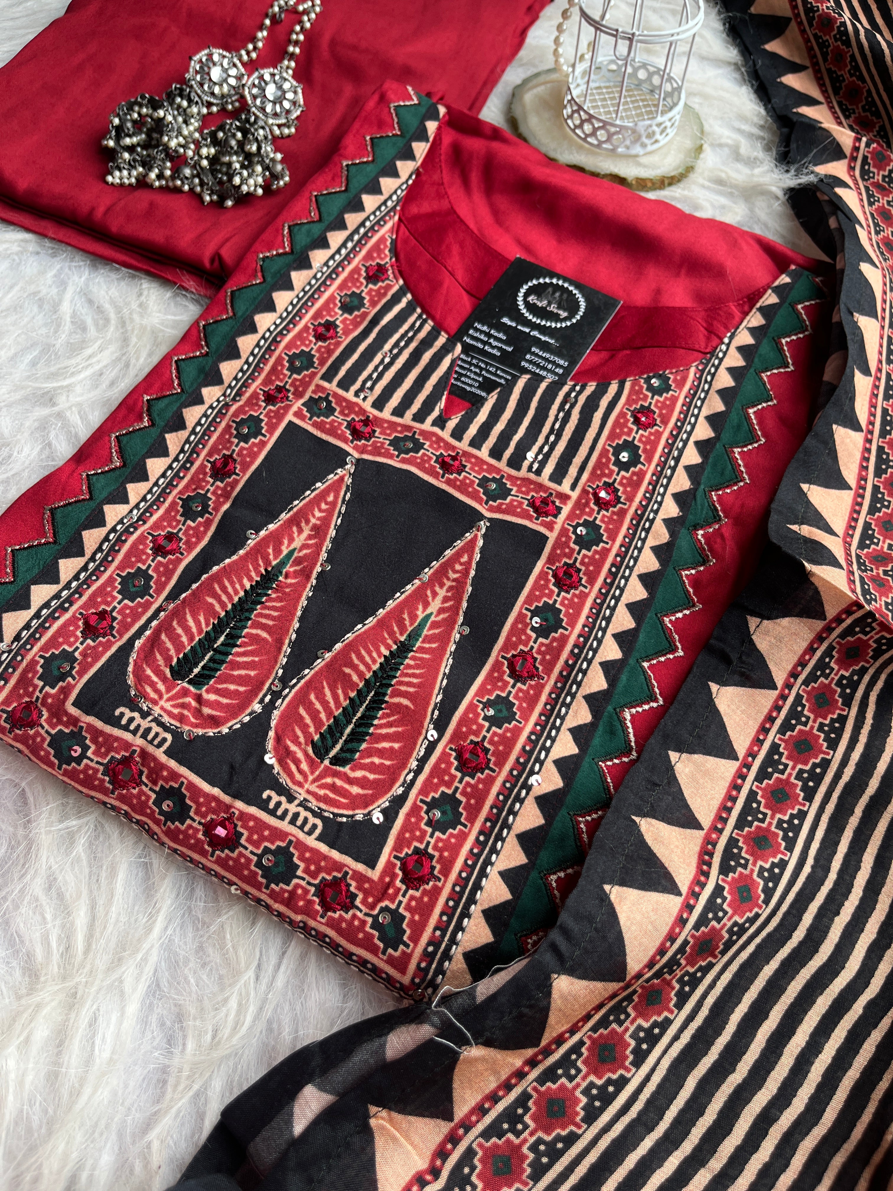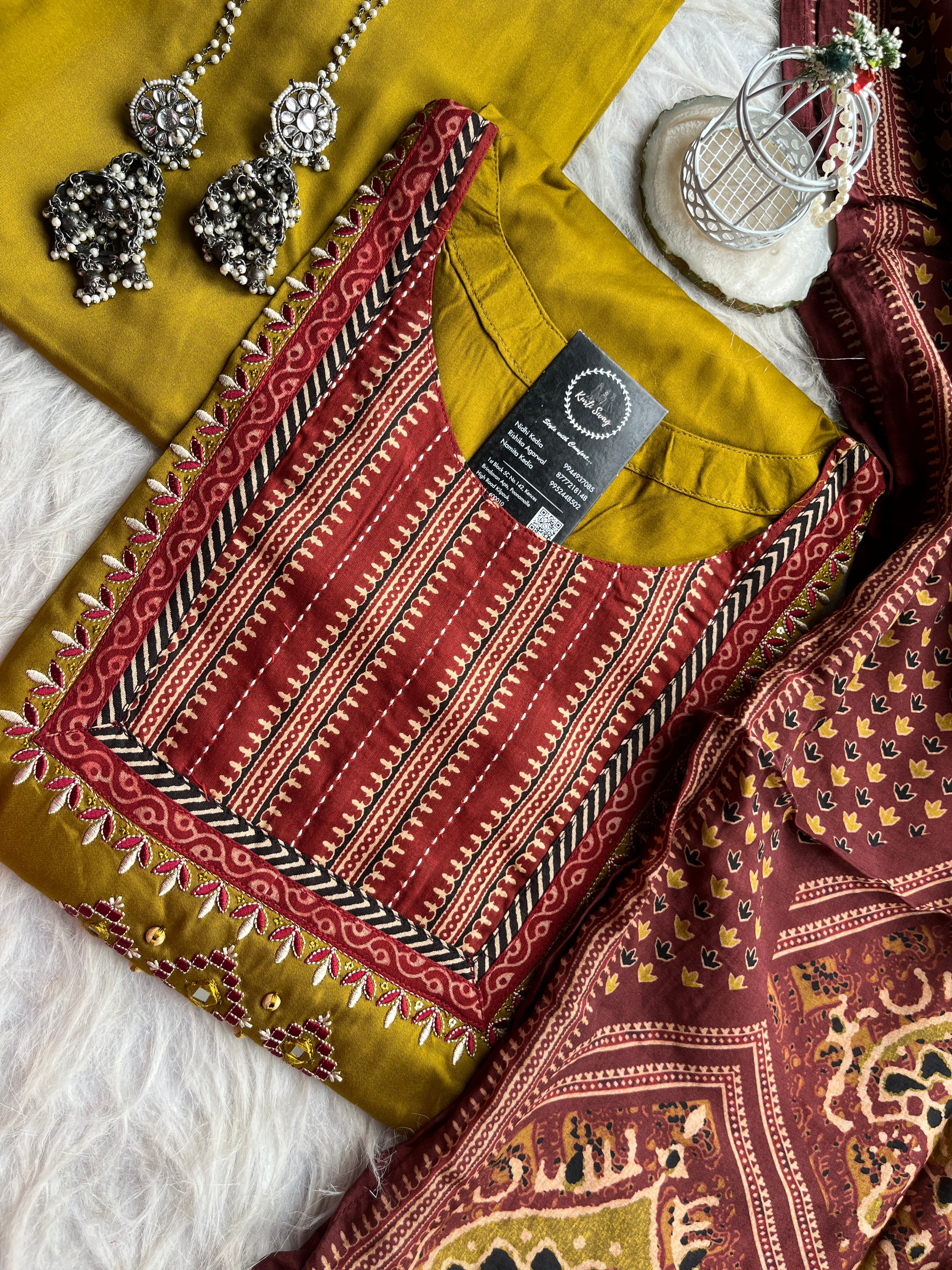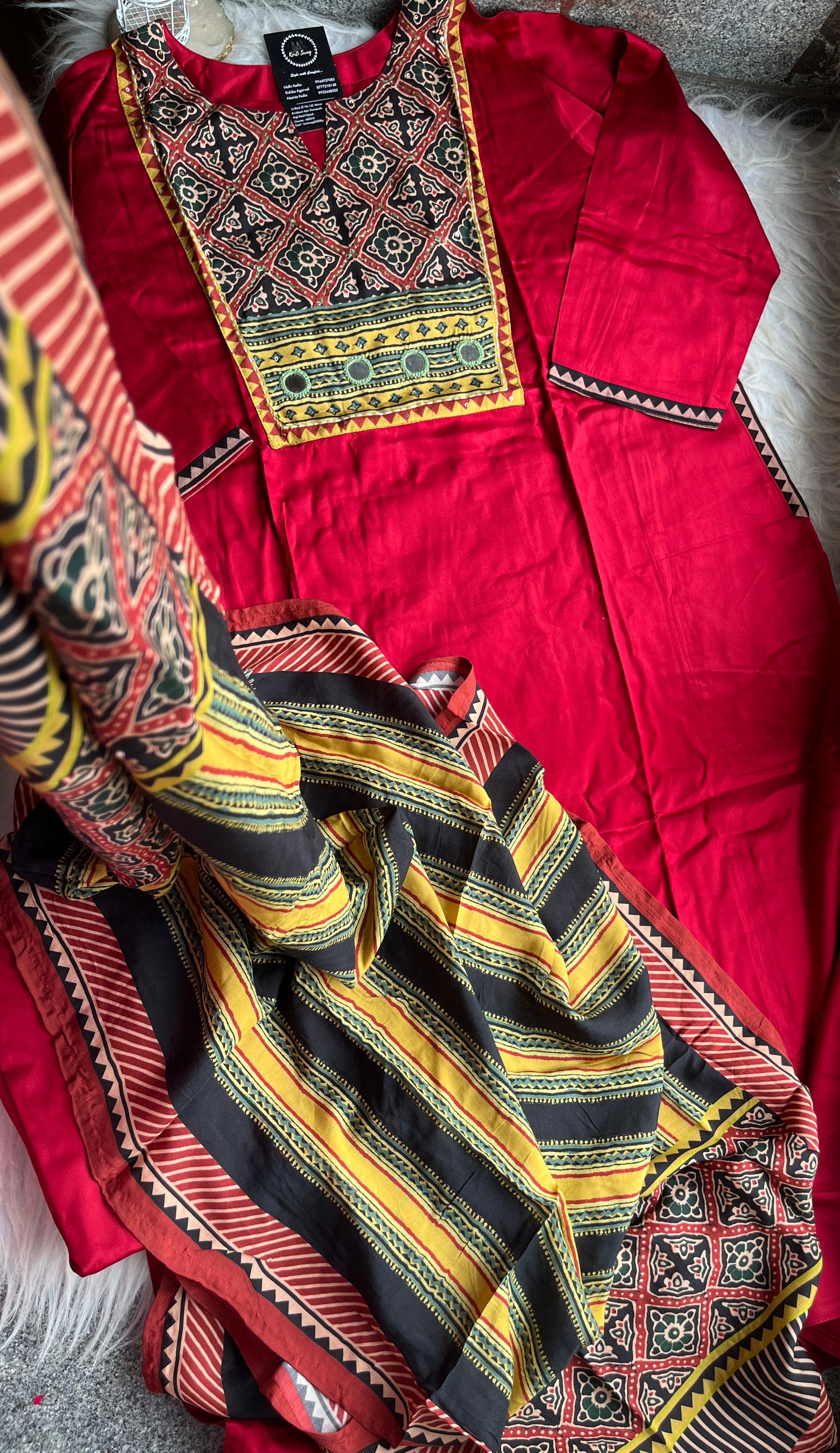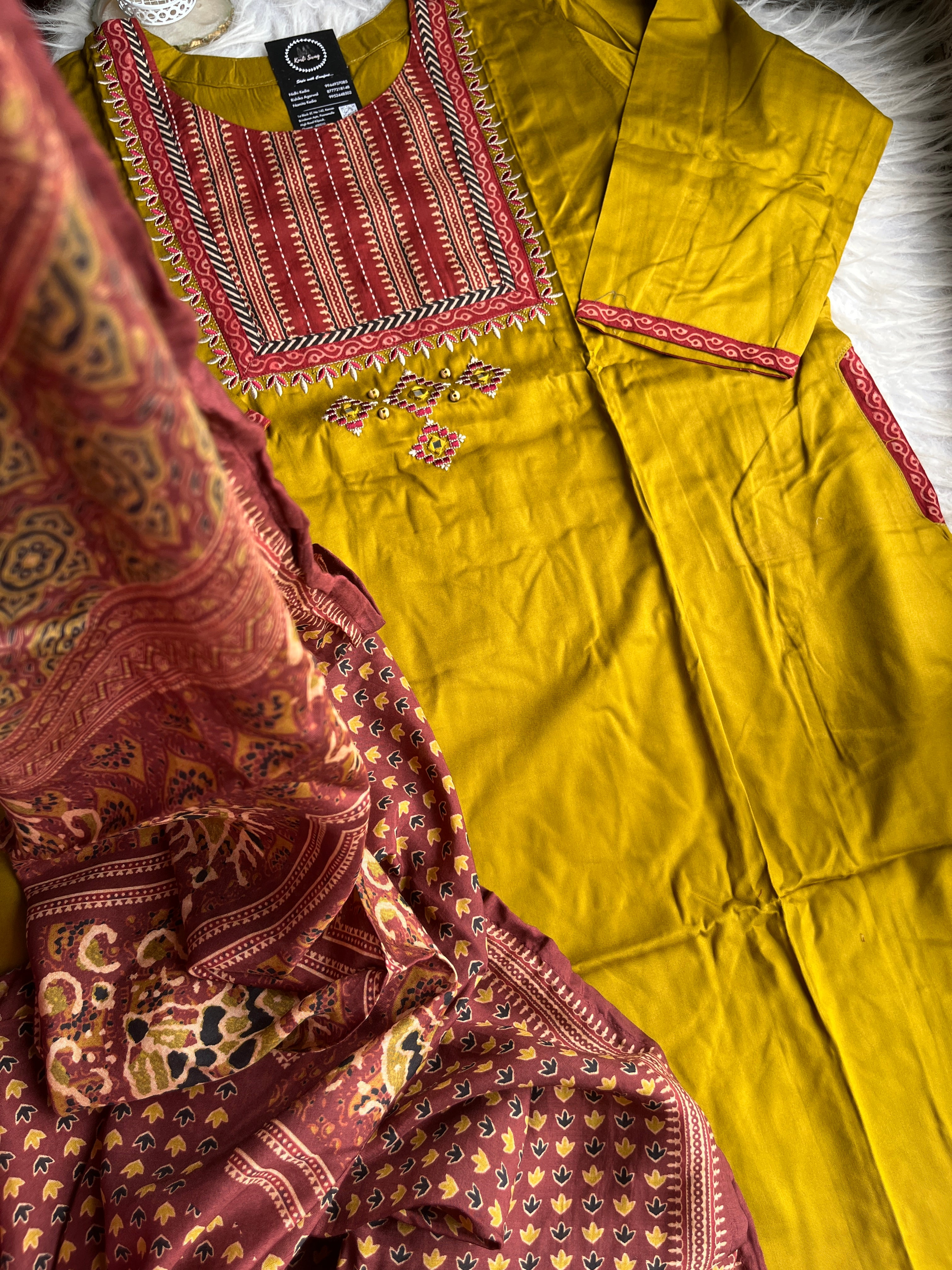 ✅ Gajji Russian Silk Kurti With Mirror & Kantha Handwork On The Yoke.