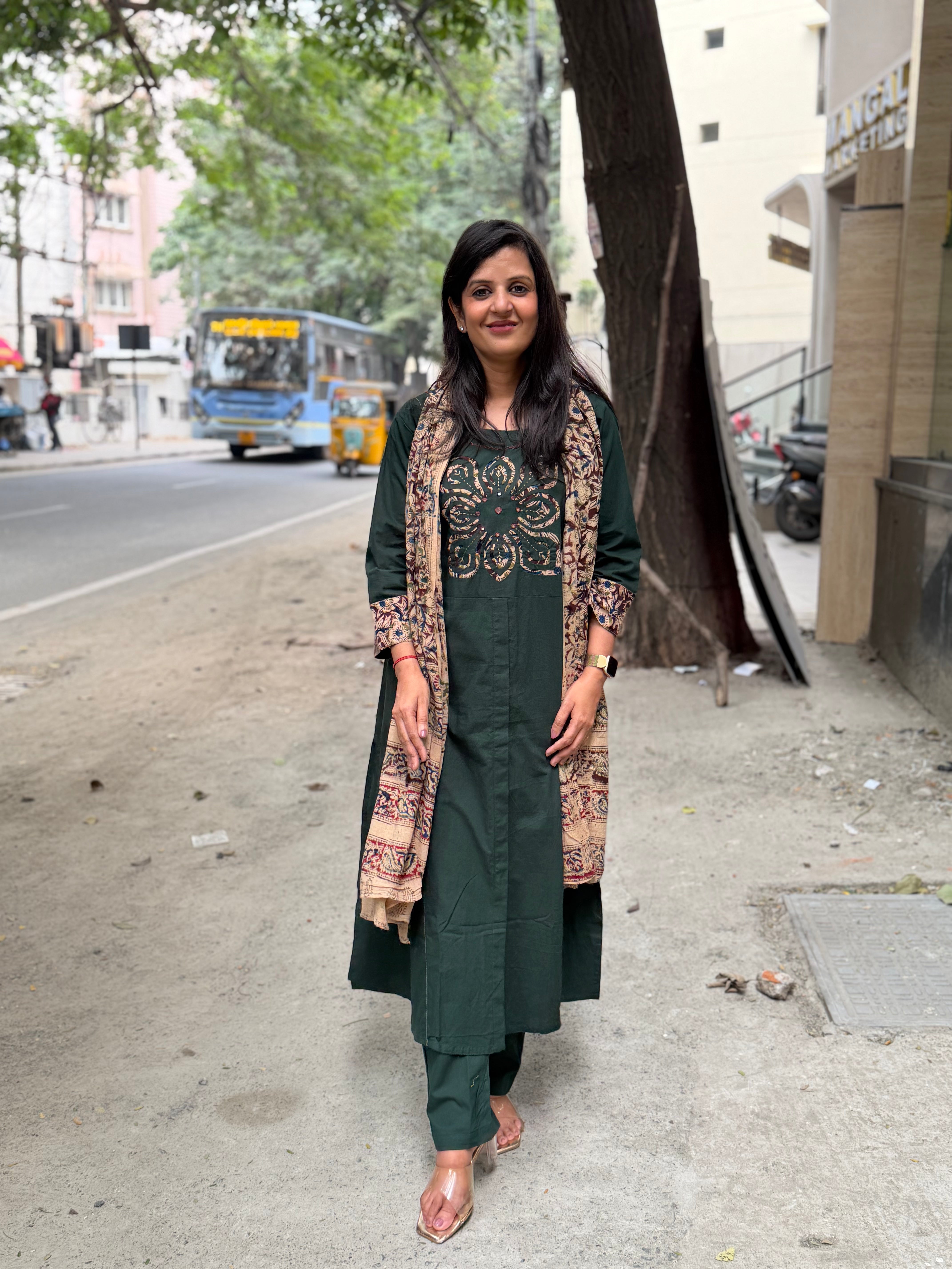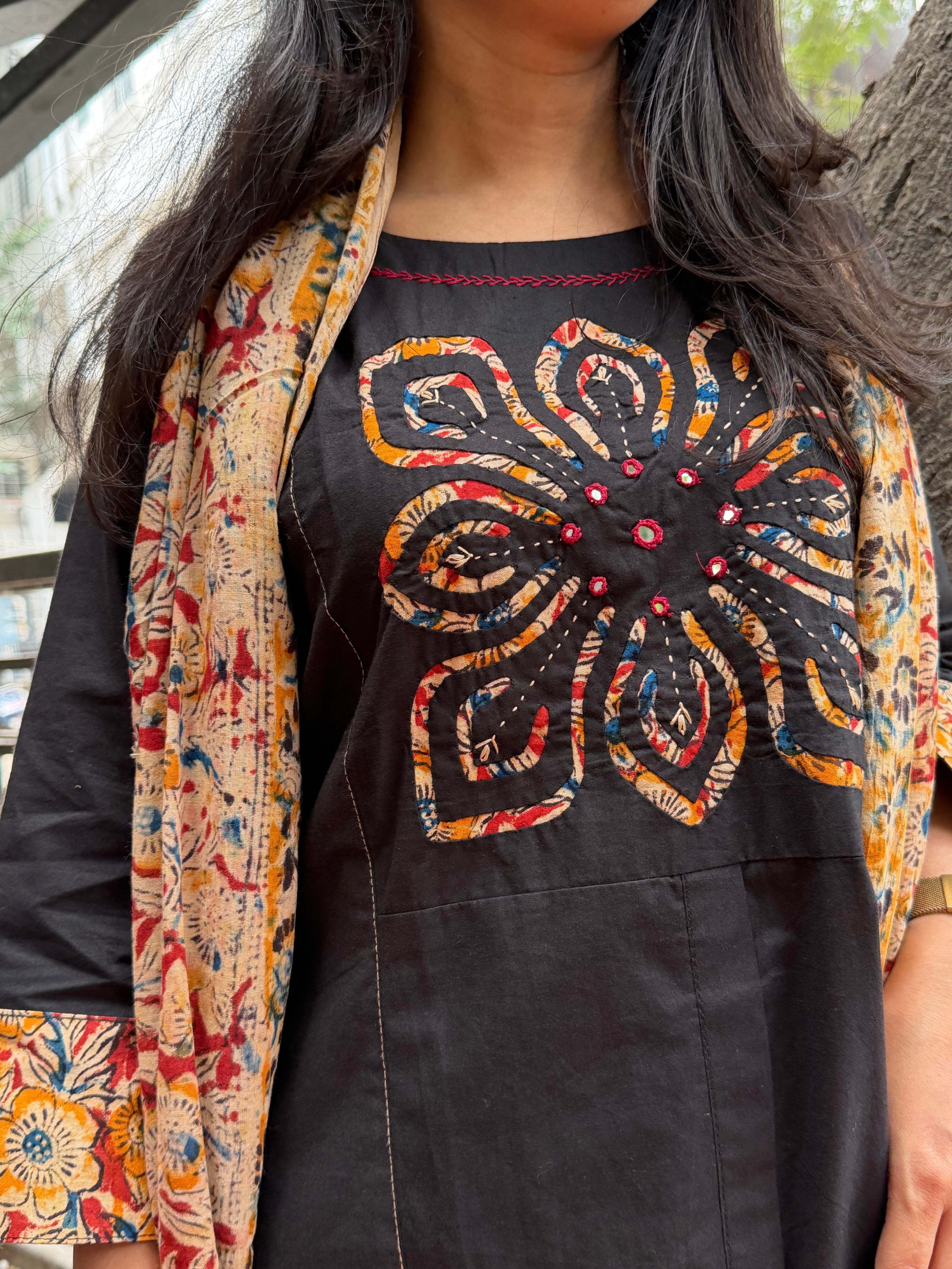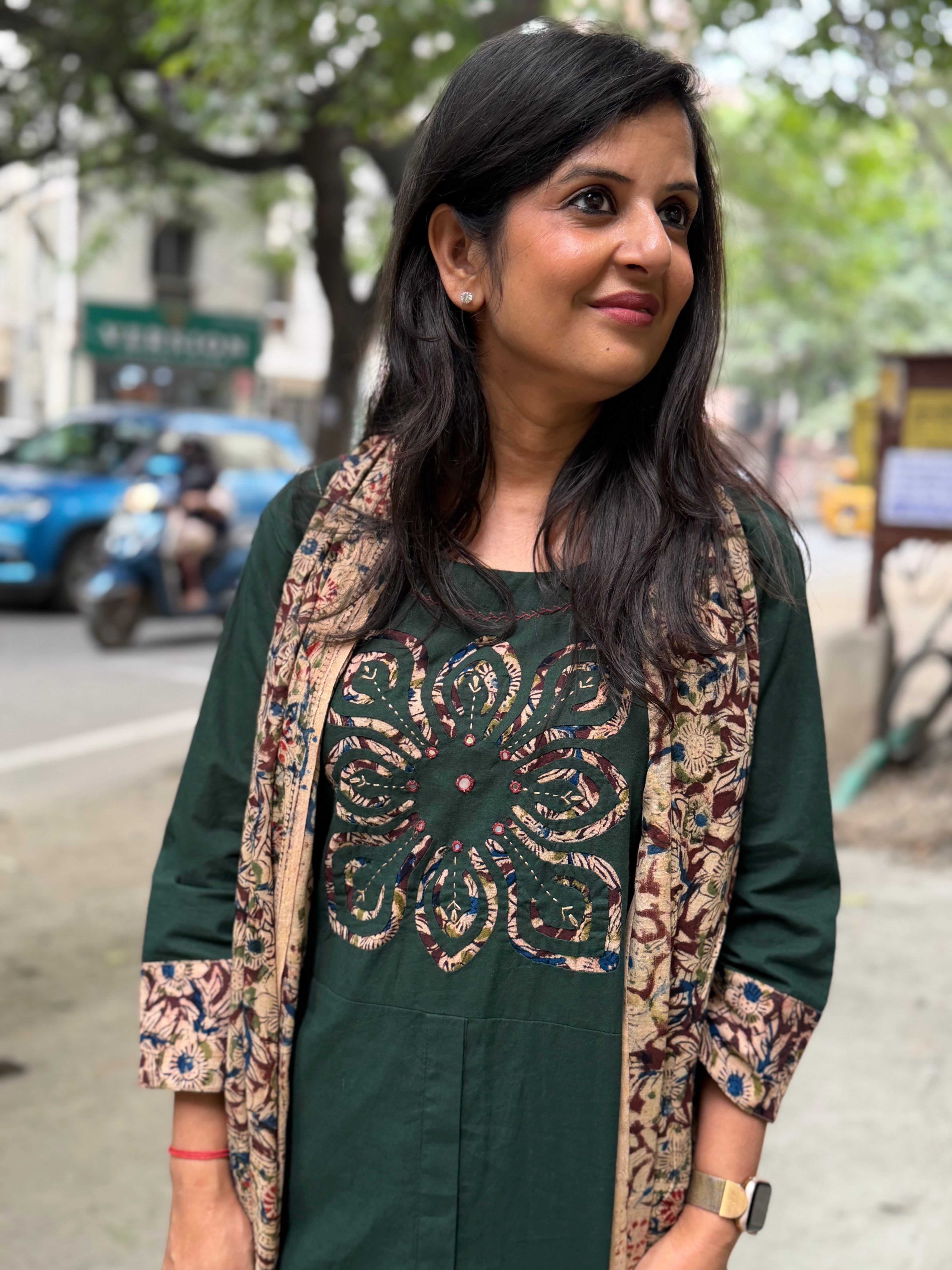 ✅ Sleeves 3/4 th With Kalamkari Highlights