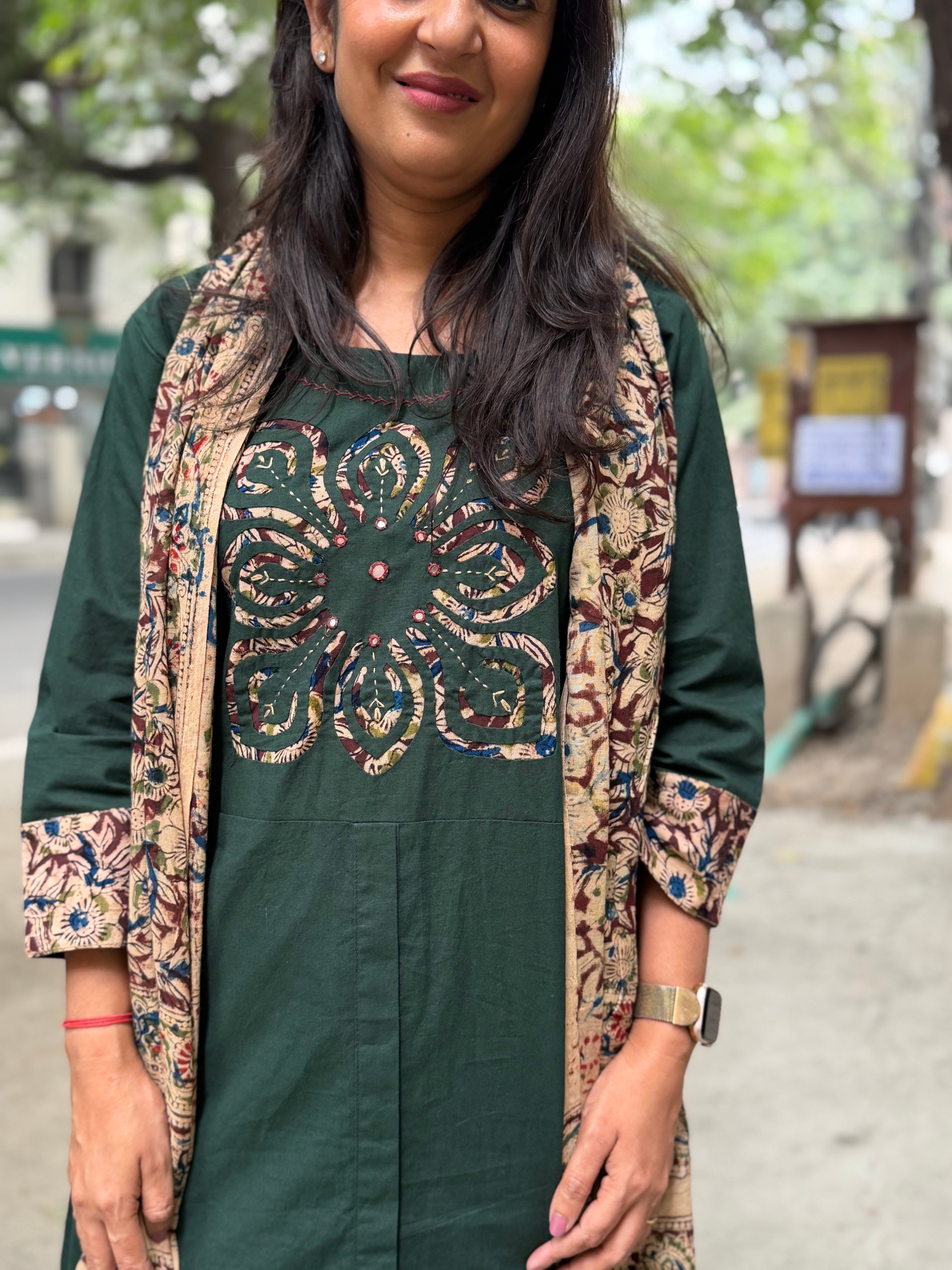 ✅ Premium Cotton Print Kurti With Kalamkari Cutwork On The Yoke Of The Kurti