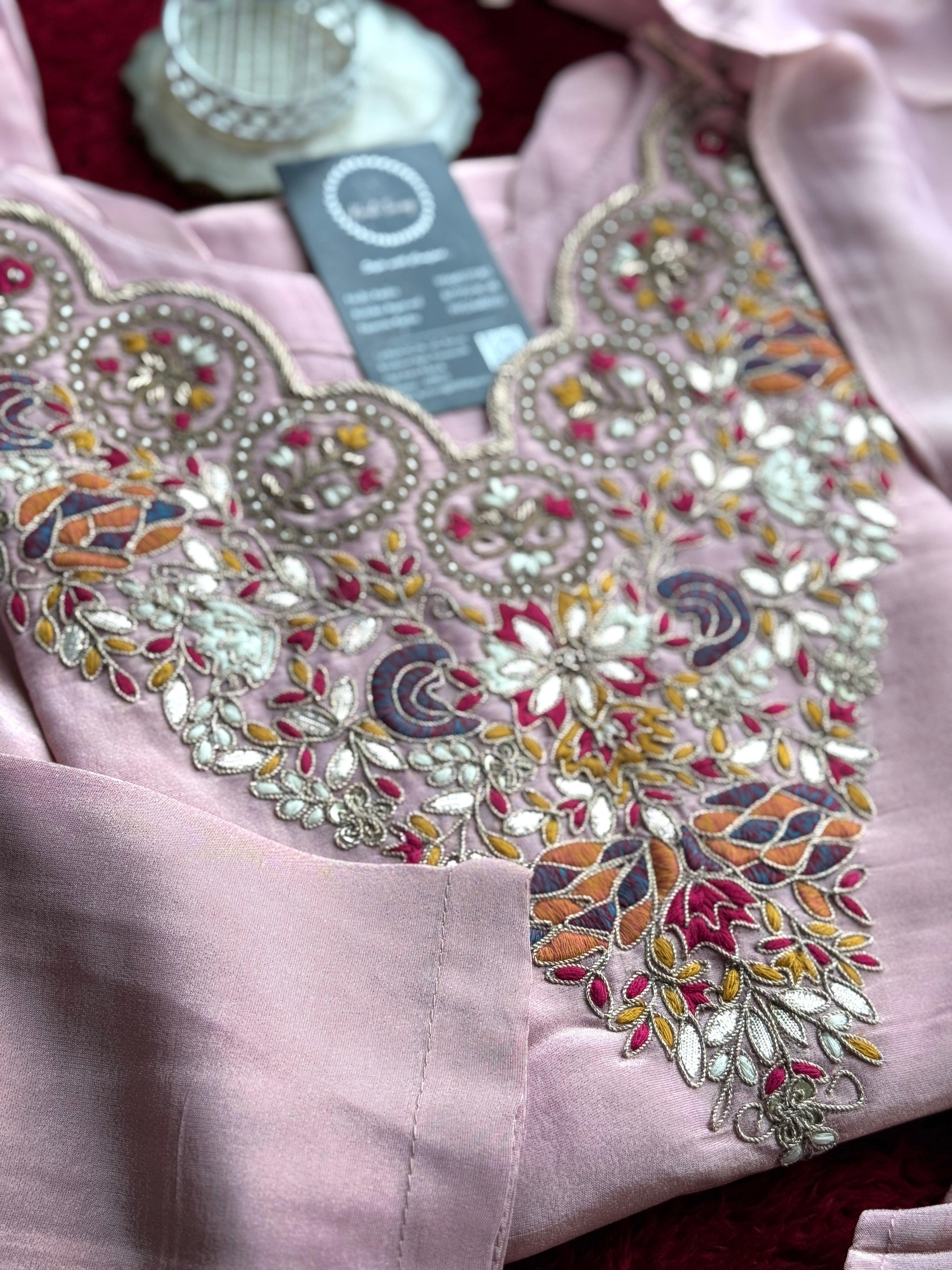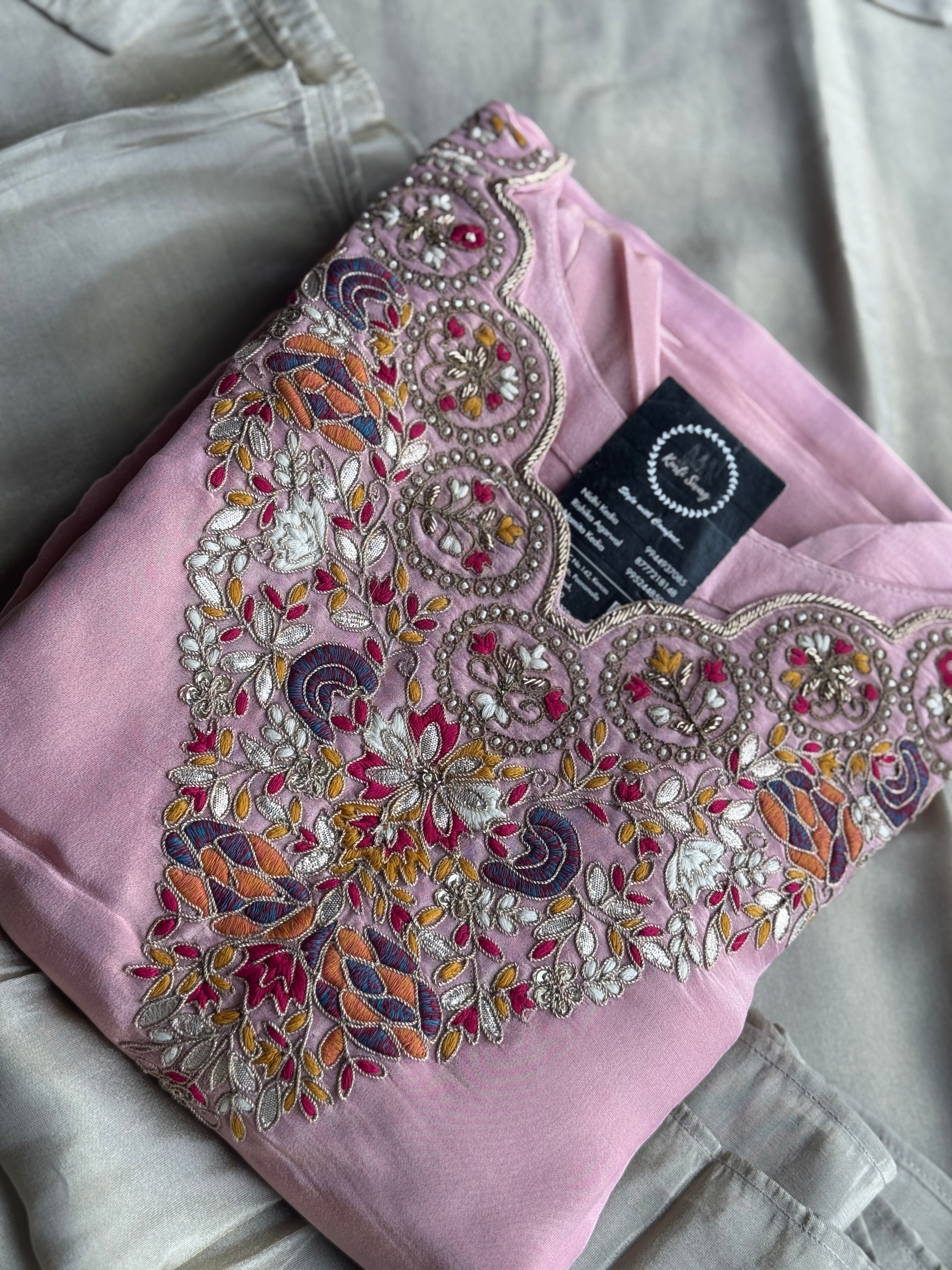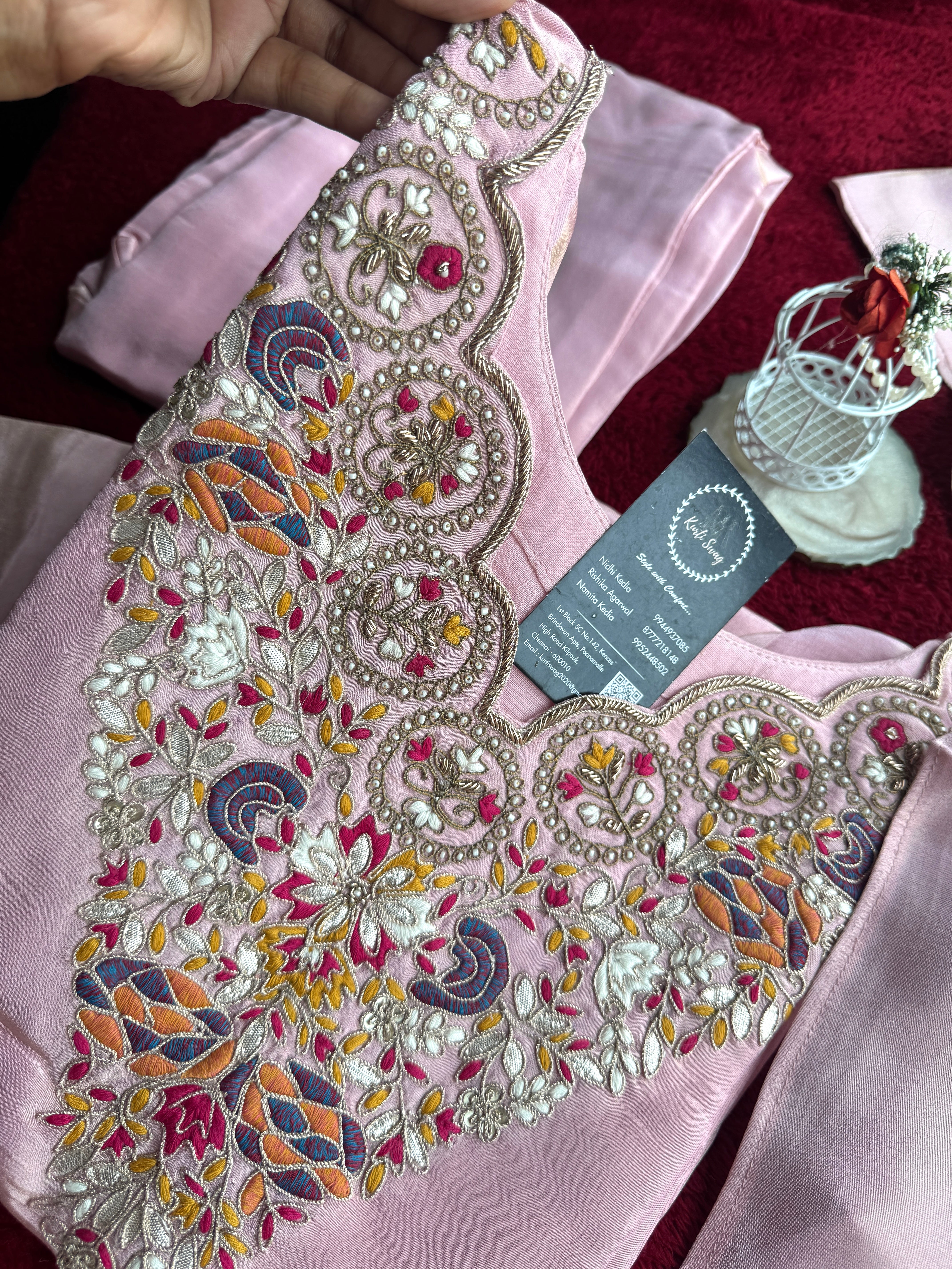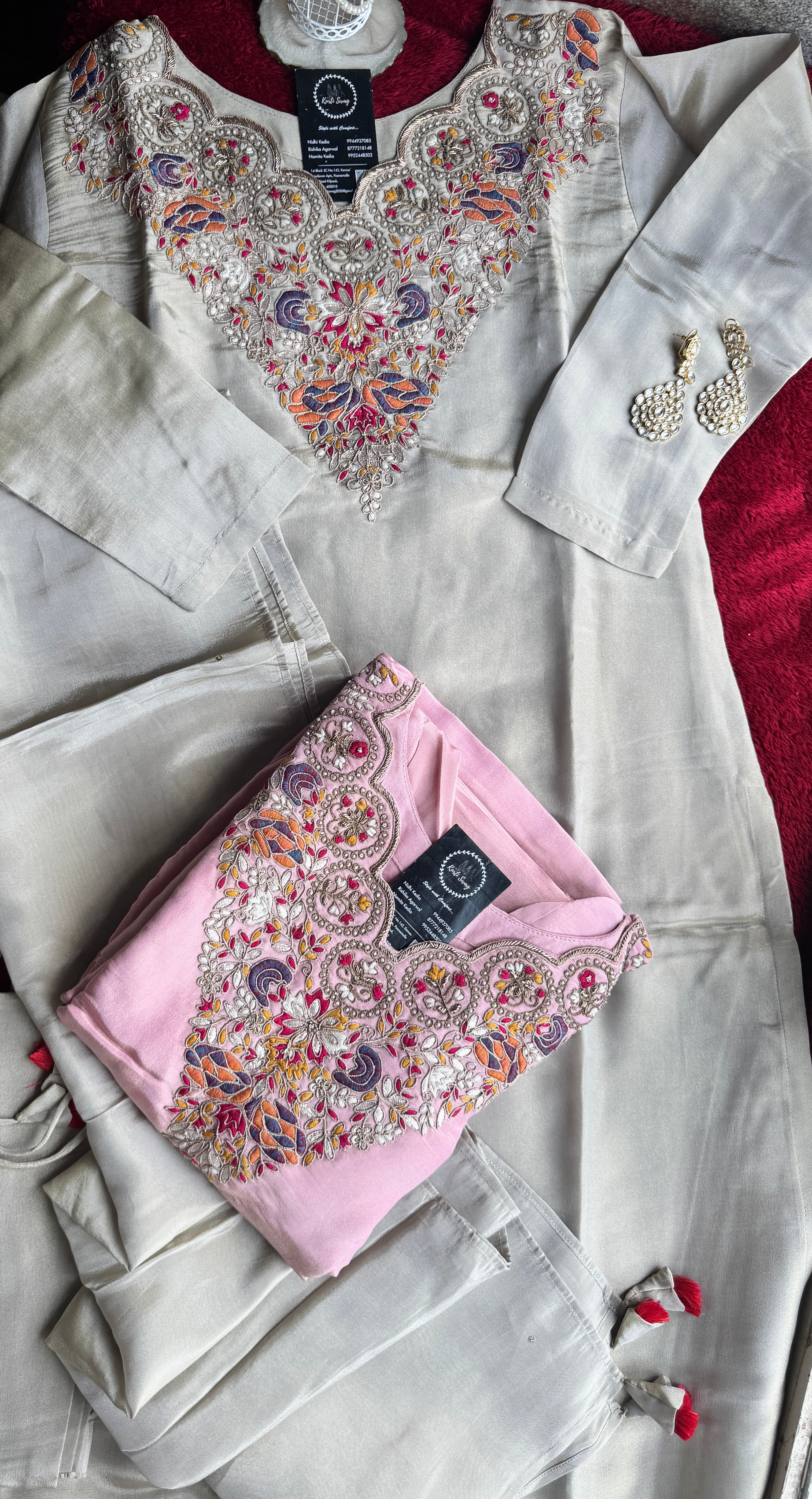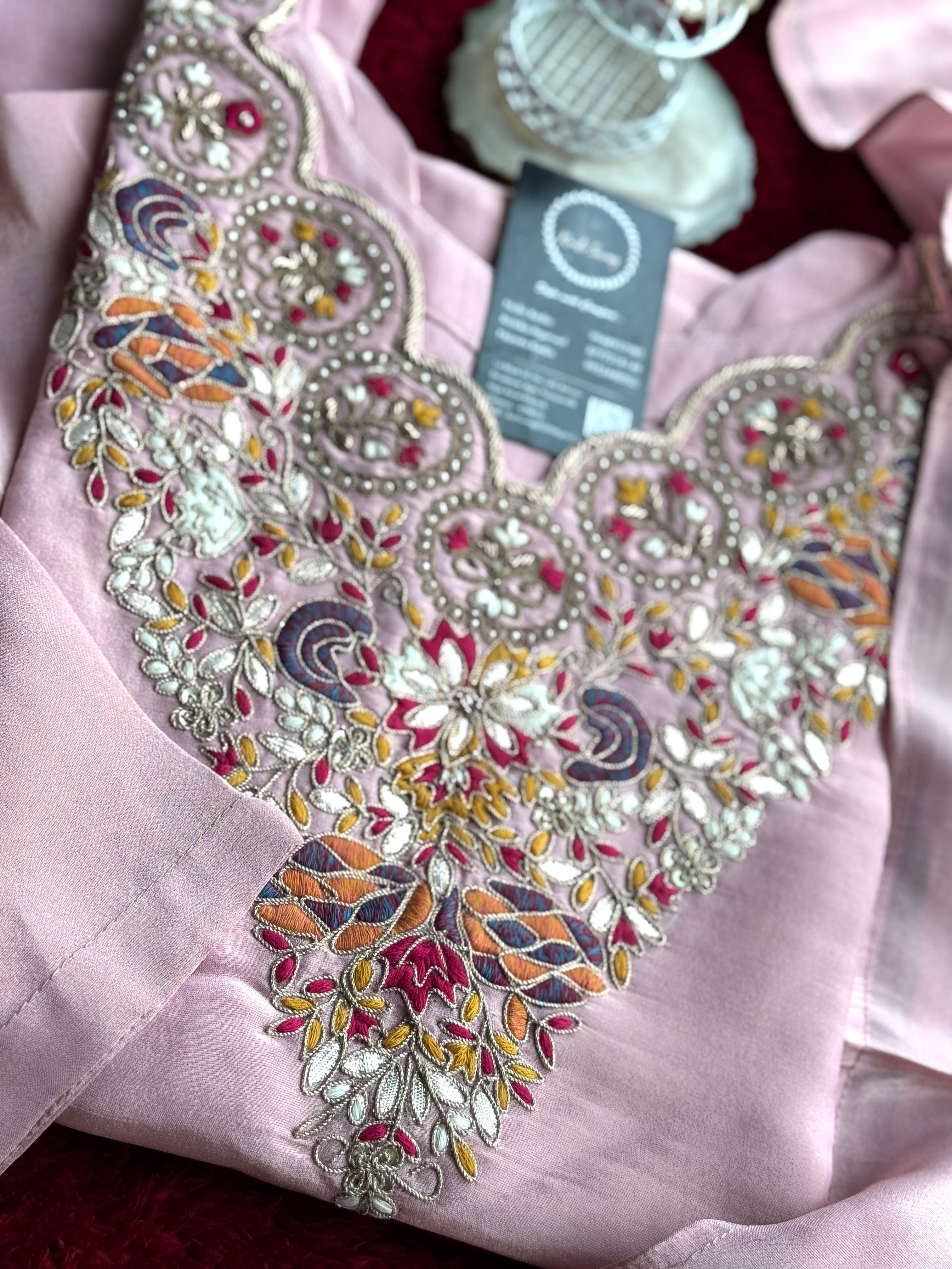 ✅ Premium Tissue Silk Kurti With Heavy , Sequins  And Dabka Hand Embroidery On The Neckline