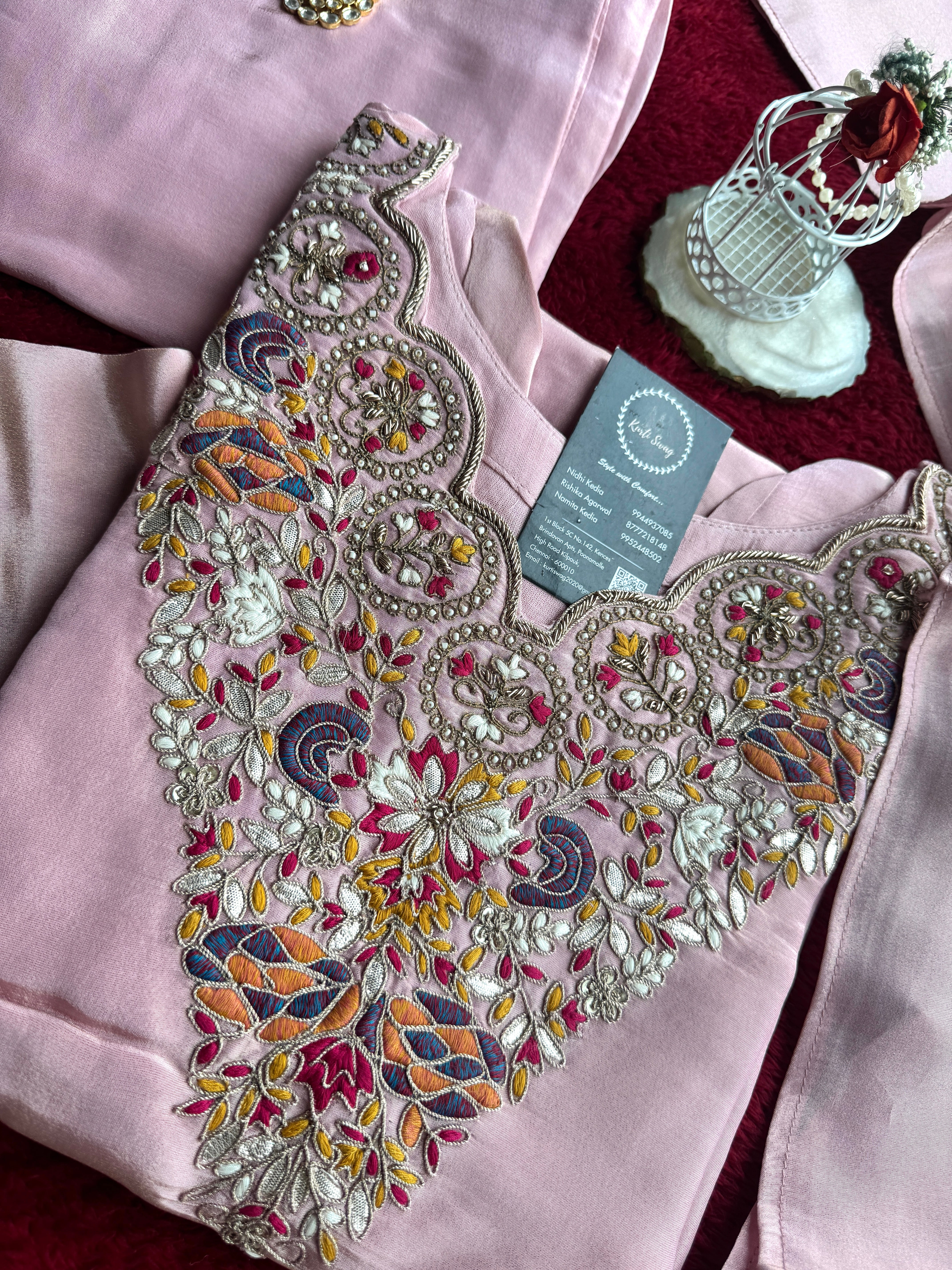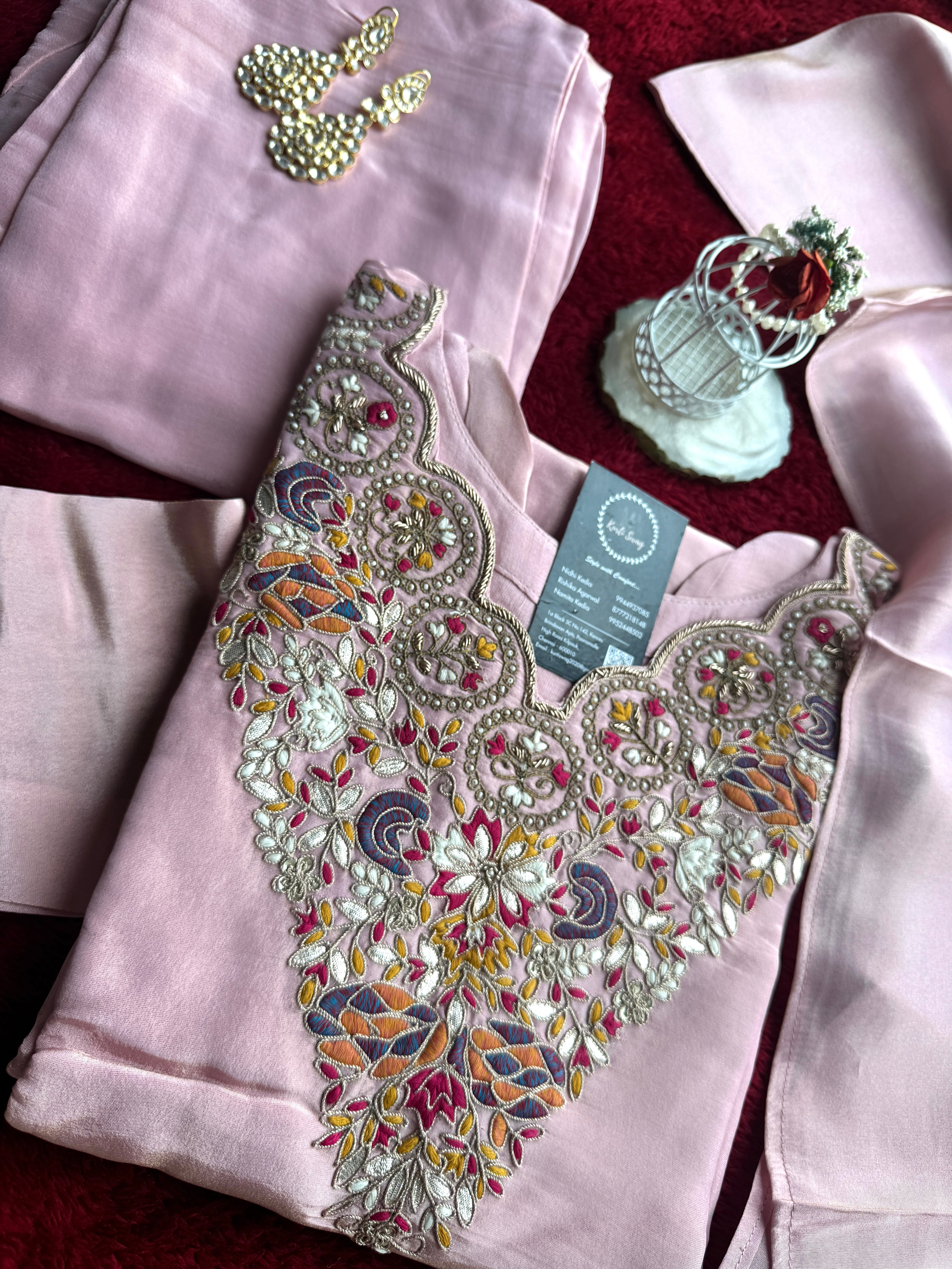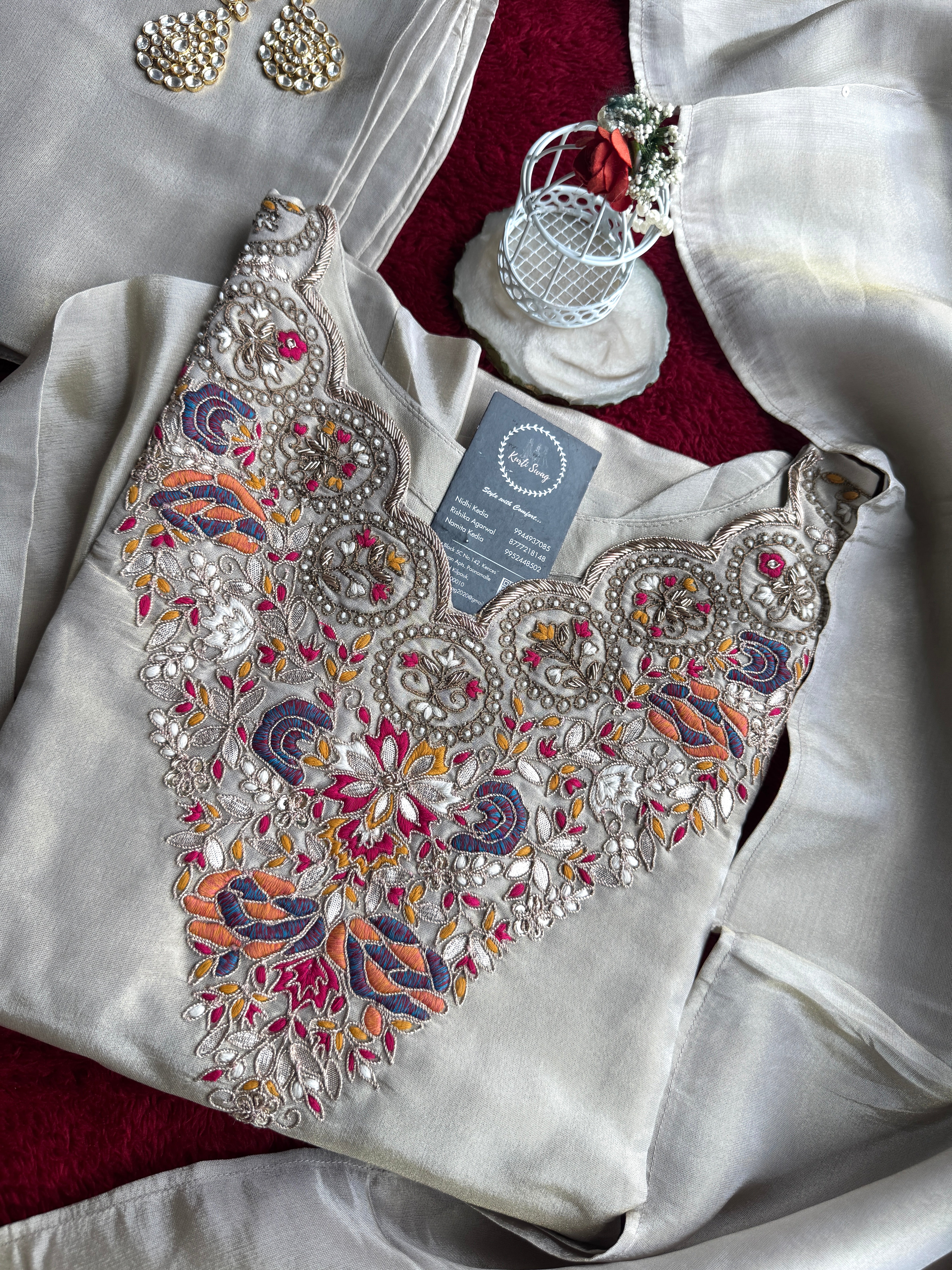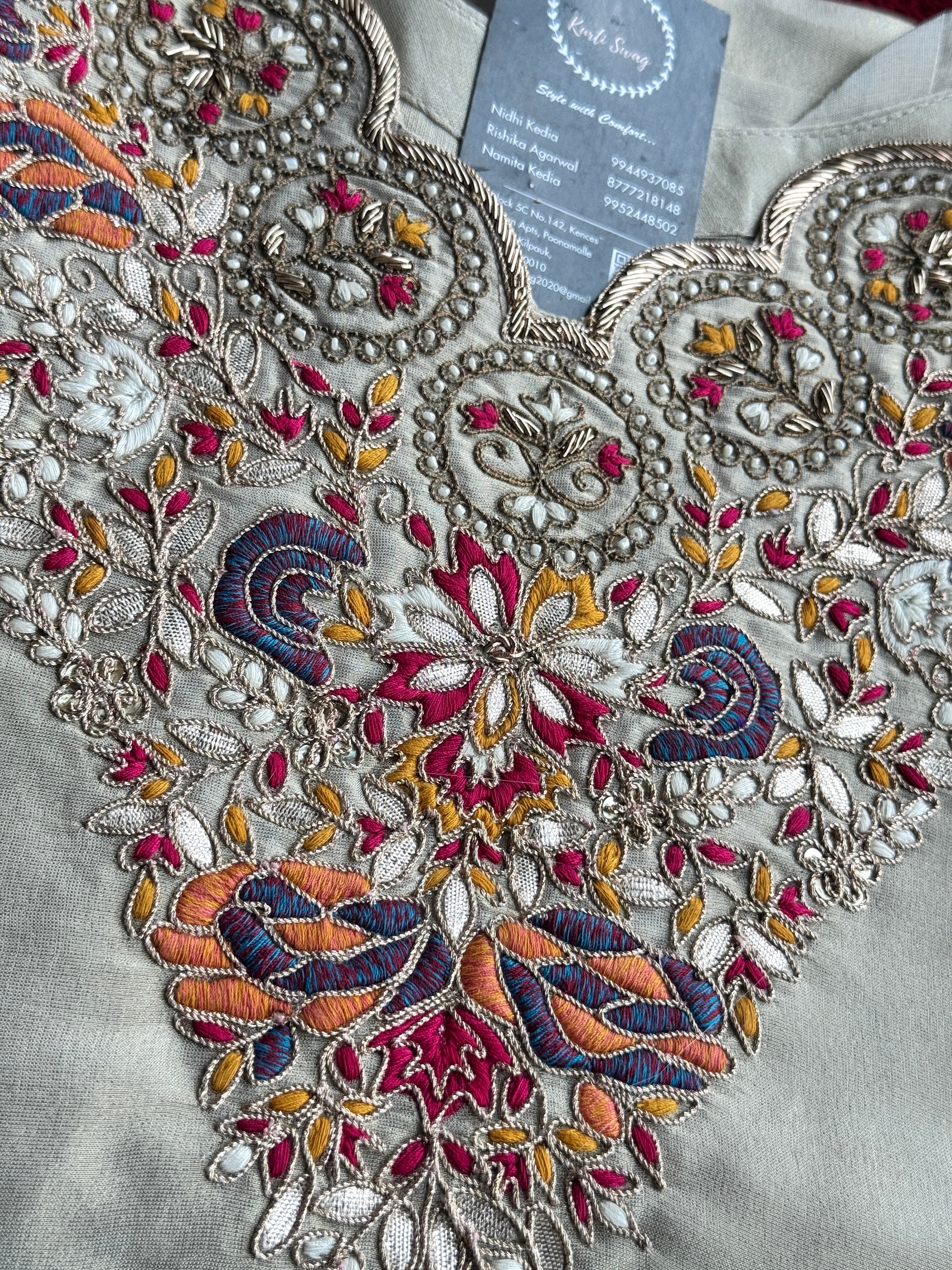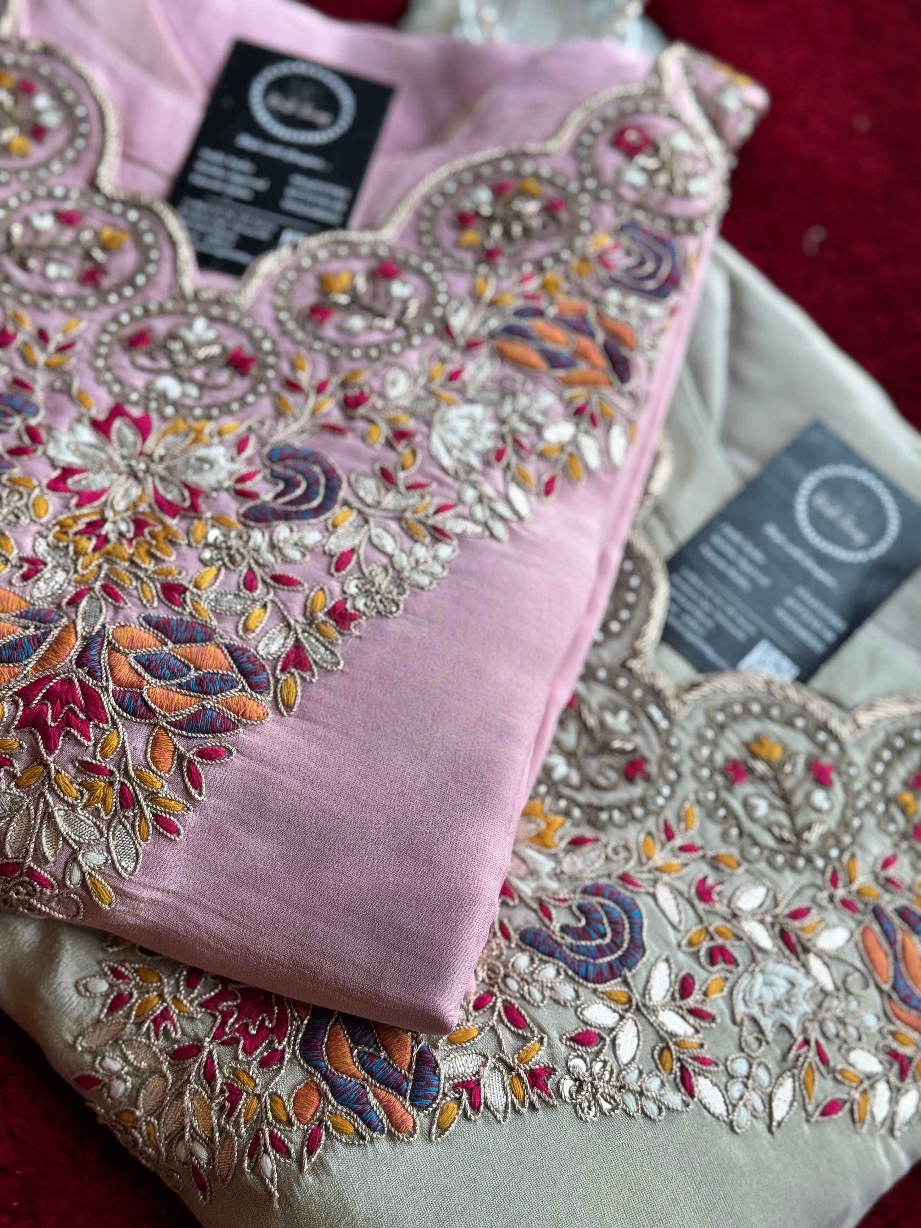 ✅ Premium Tissue Silk Kurti With Heavy , Sequins  And Dabka Hand Embroidery On The Neckline