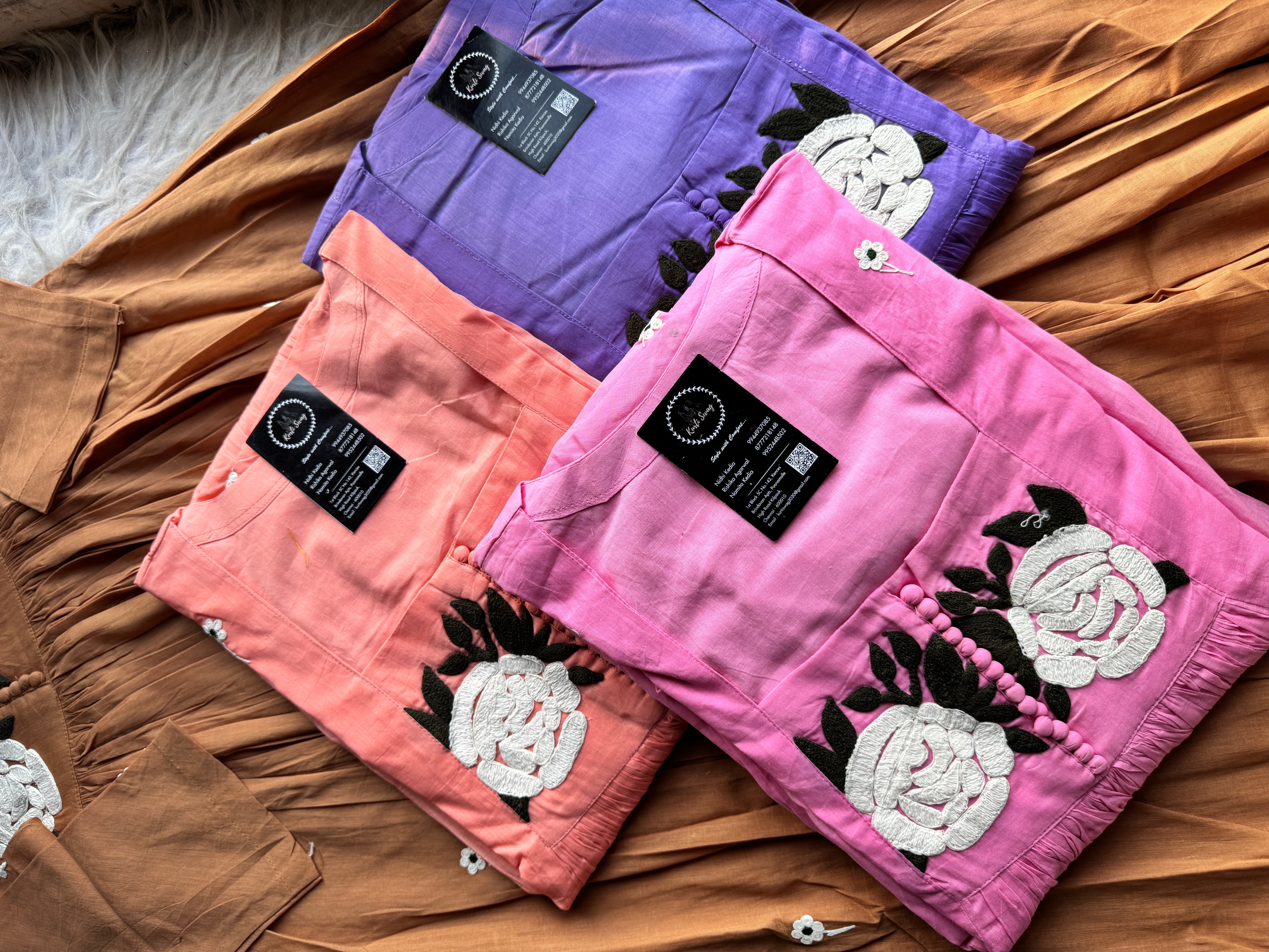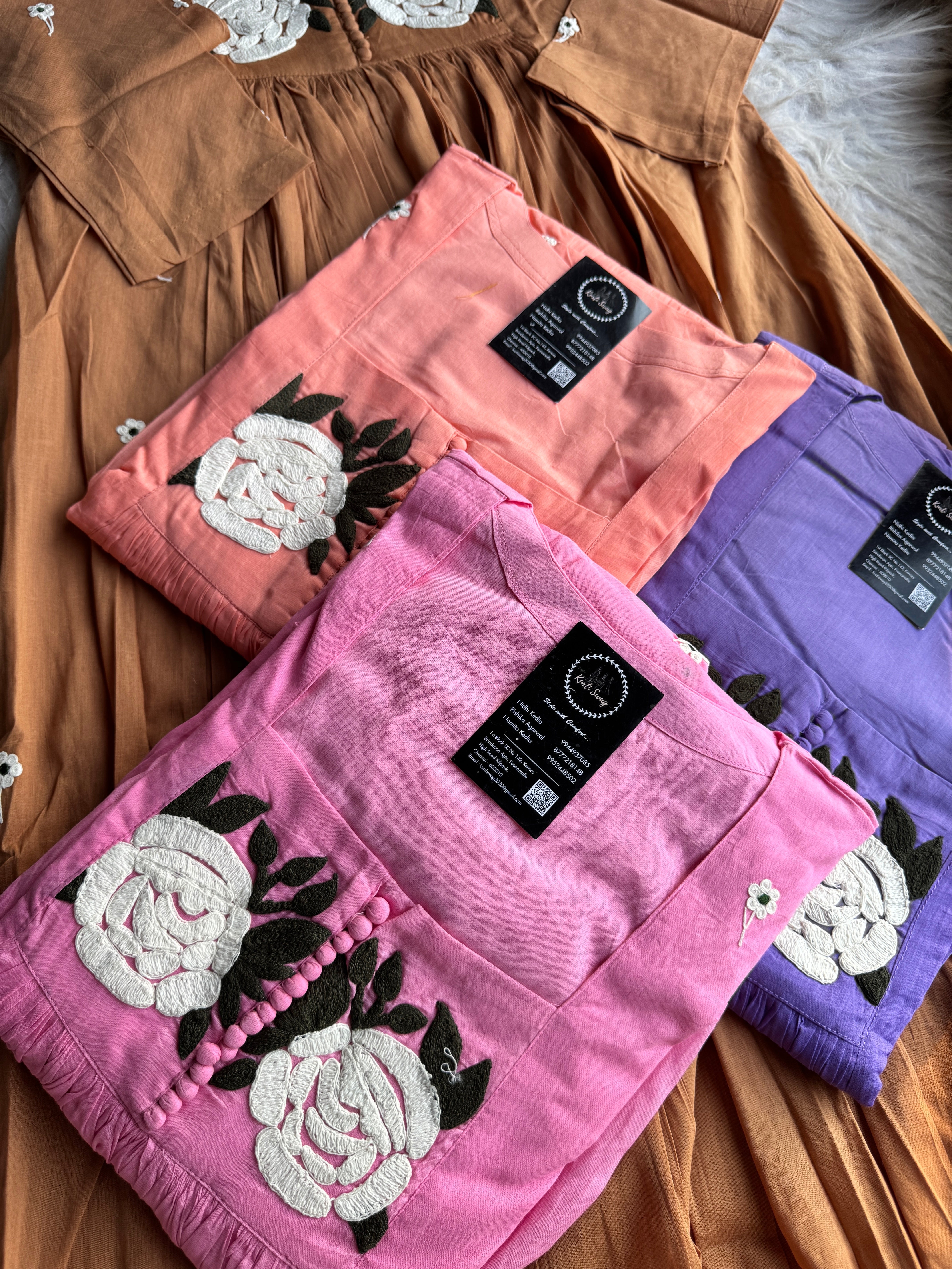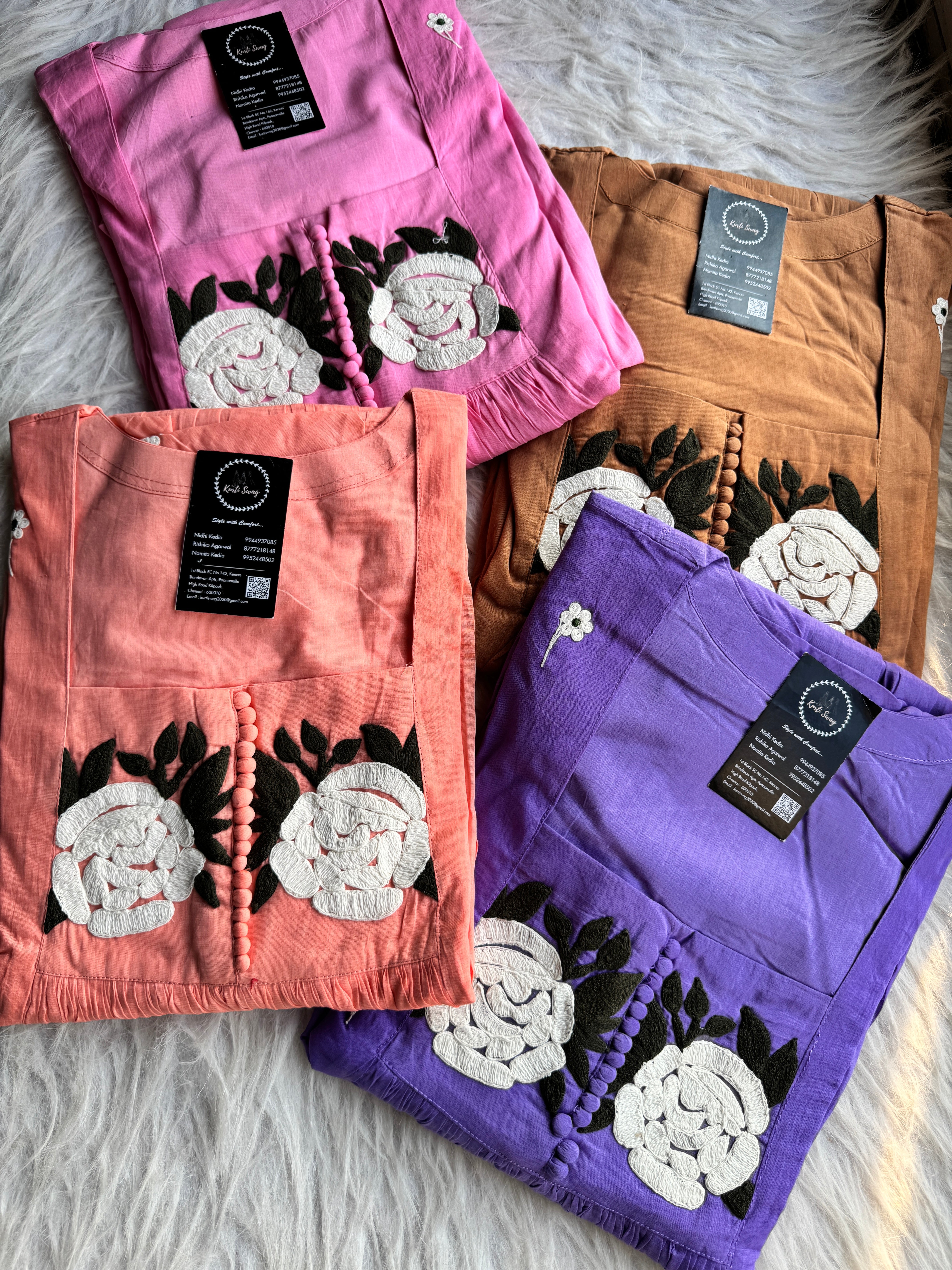 ✅  Premium Mul Cotton Dress In Beautiful Shades With Thread Hand Embroidery On It
