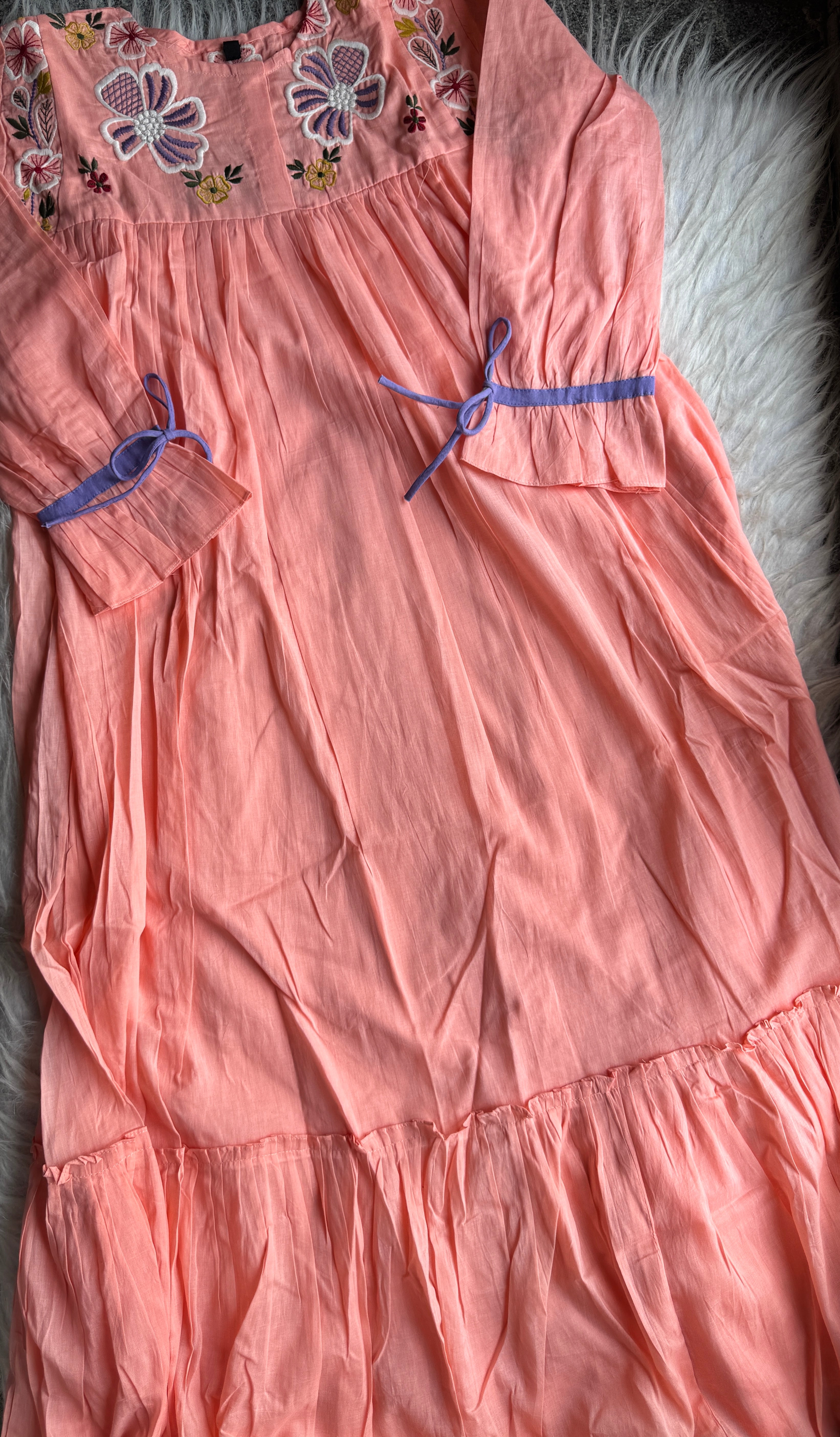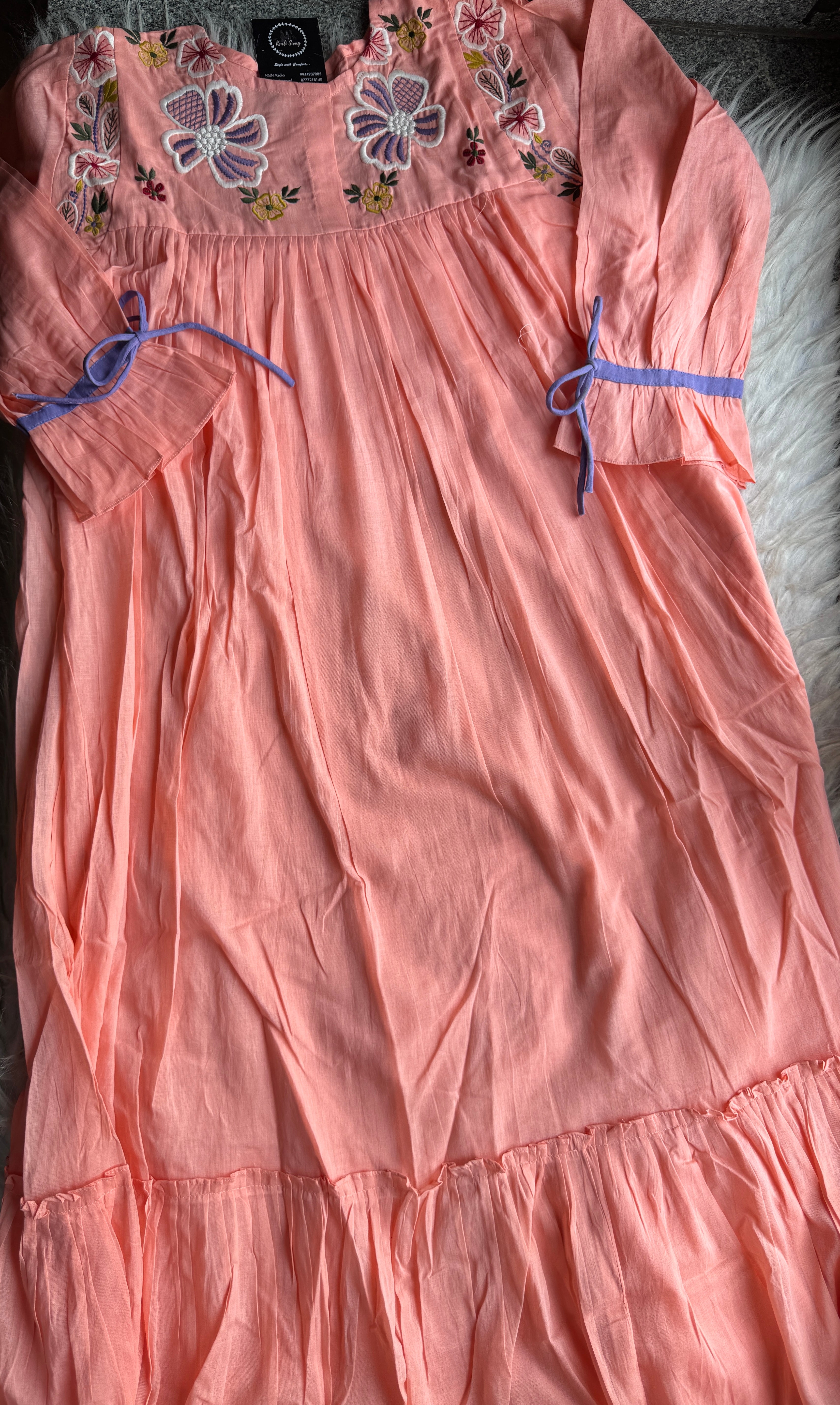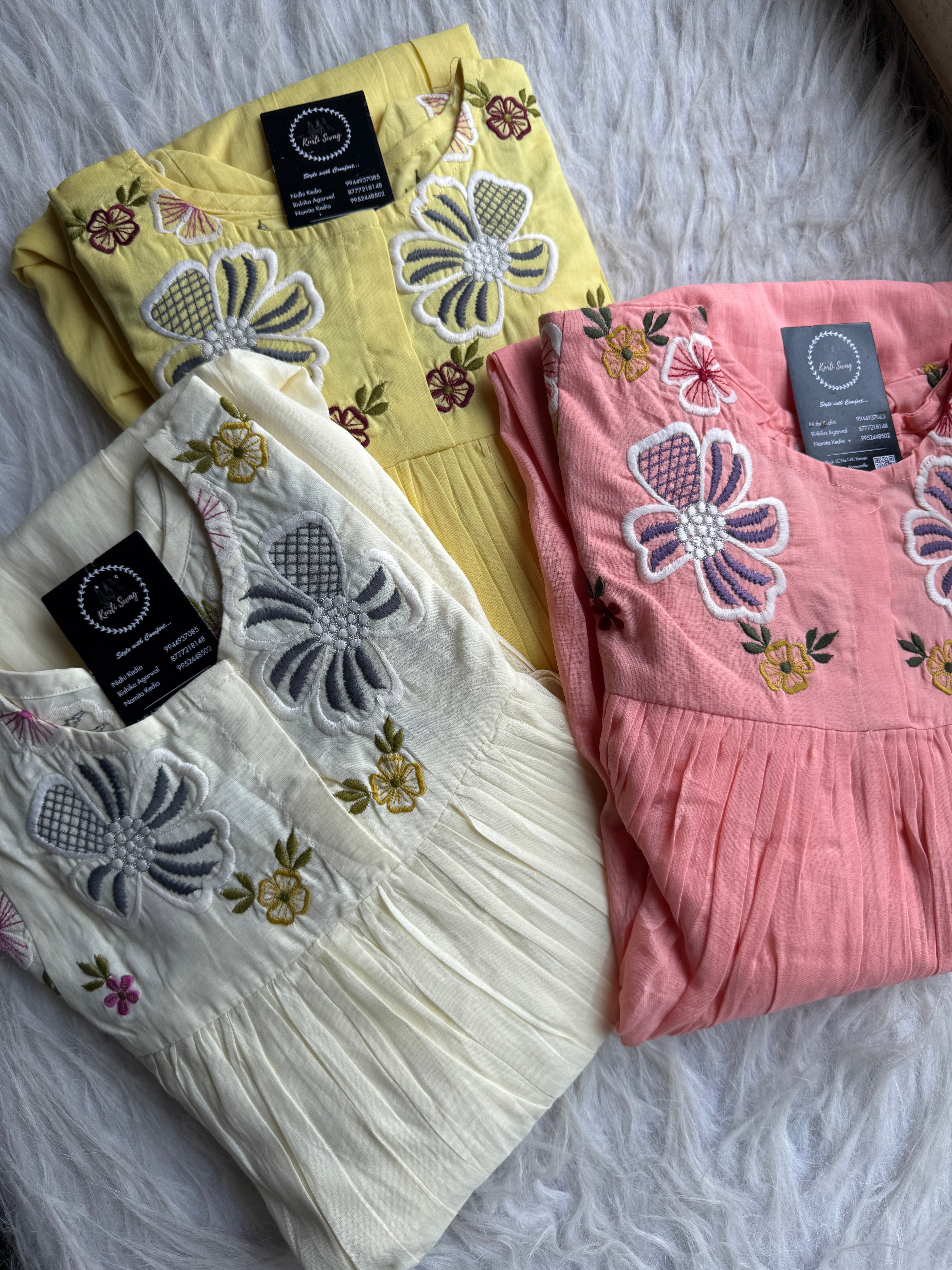 ✅  Premium Mul Cotton Dress In Beautiful Shades With Thread Hand Embroidery On It