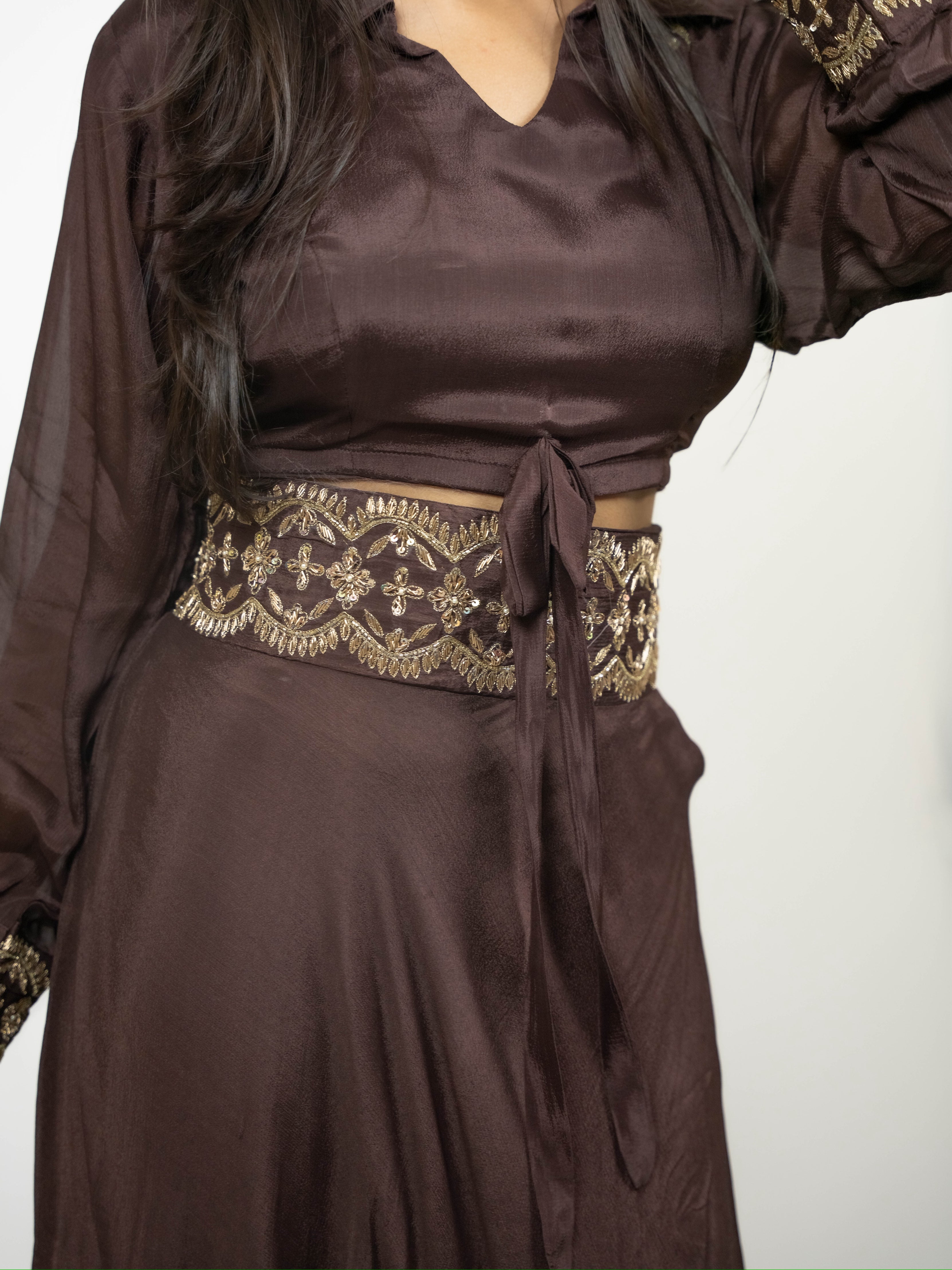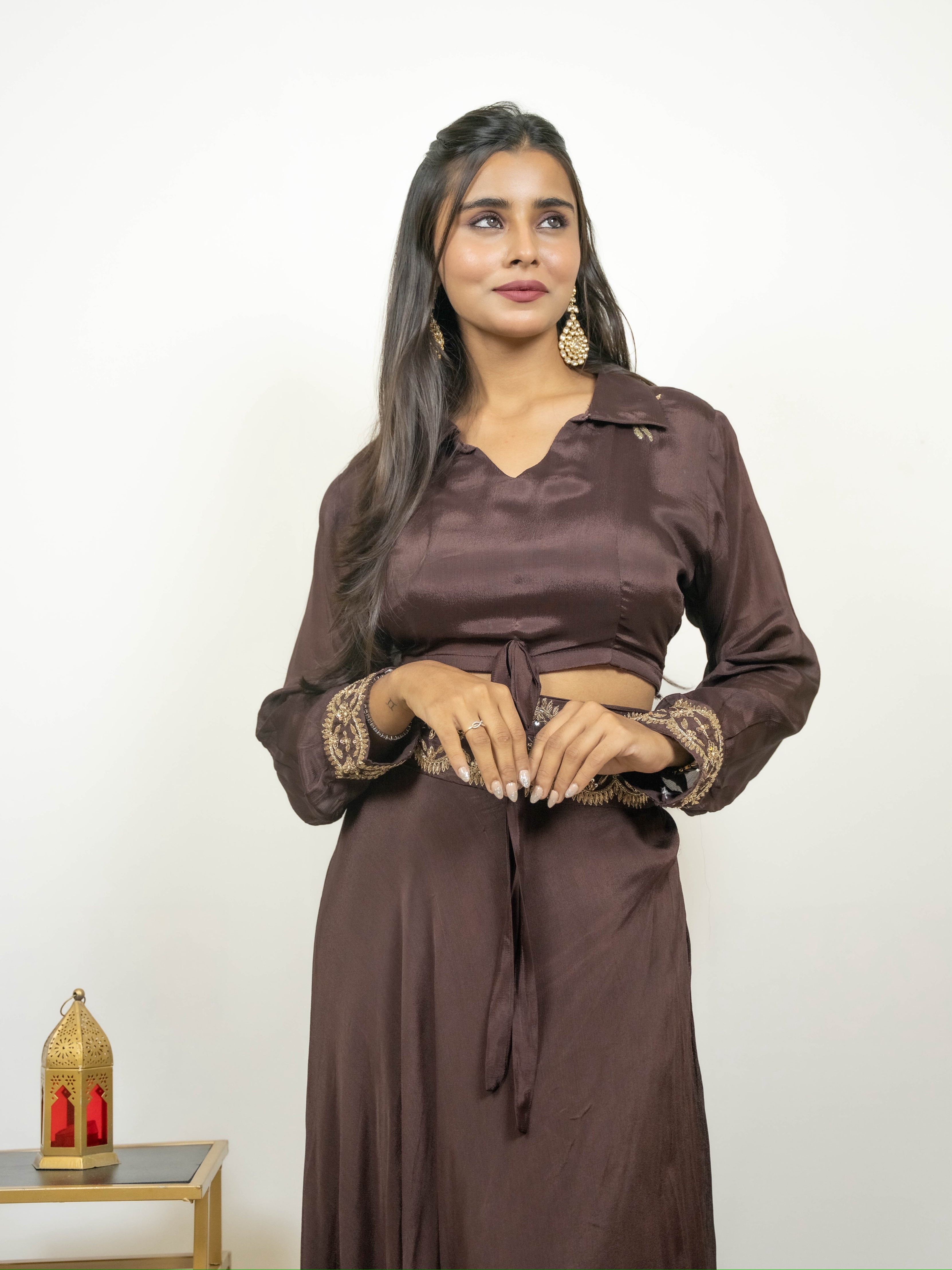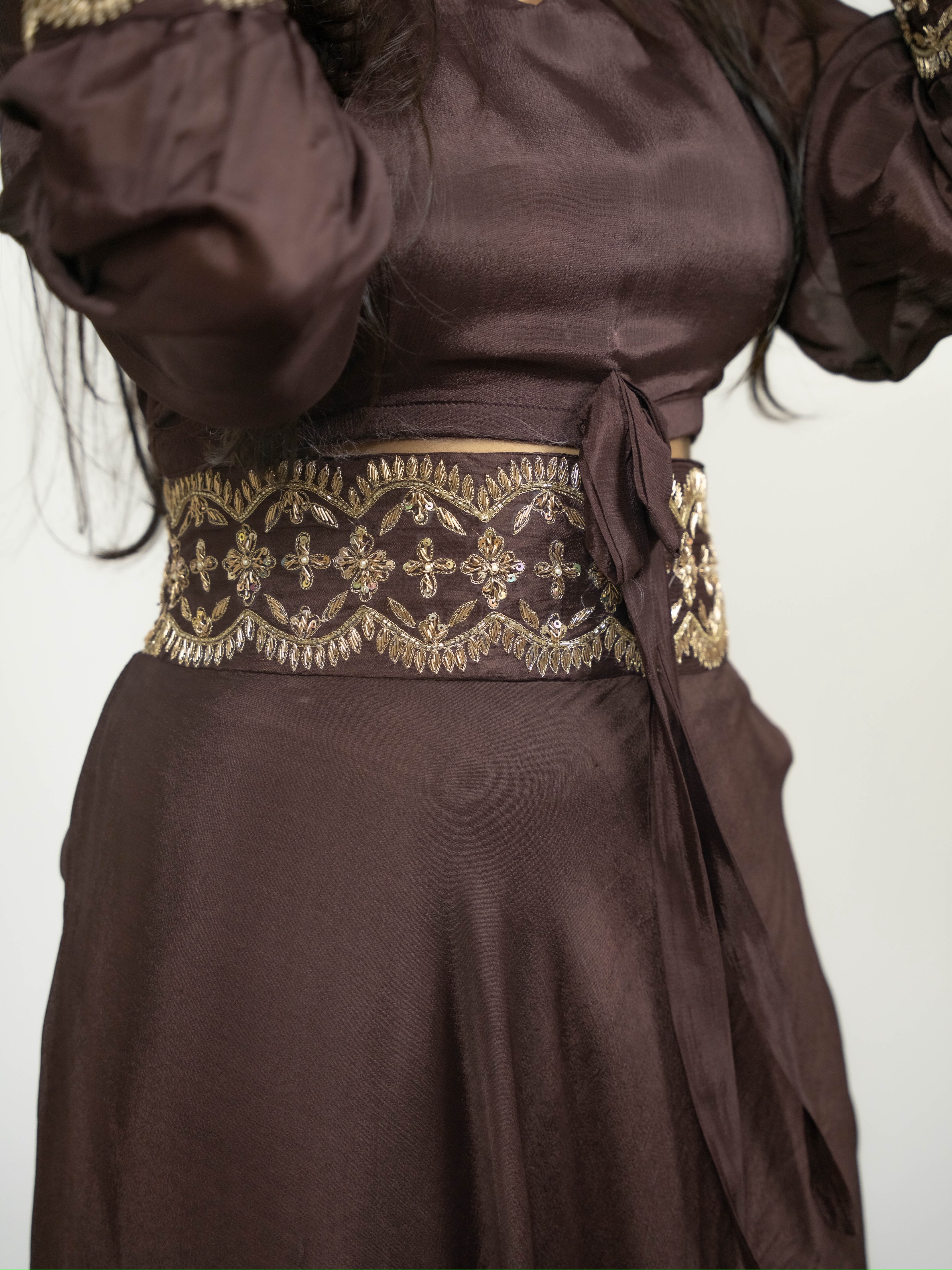 “SHAINA” Designer Top & Skirt Set In Chinnon ✨