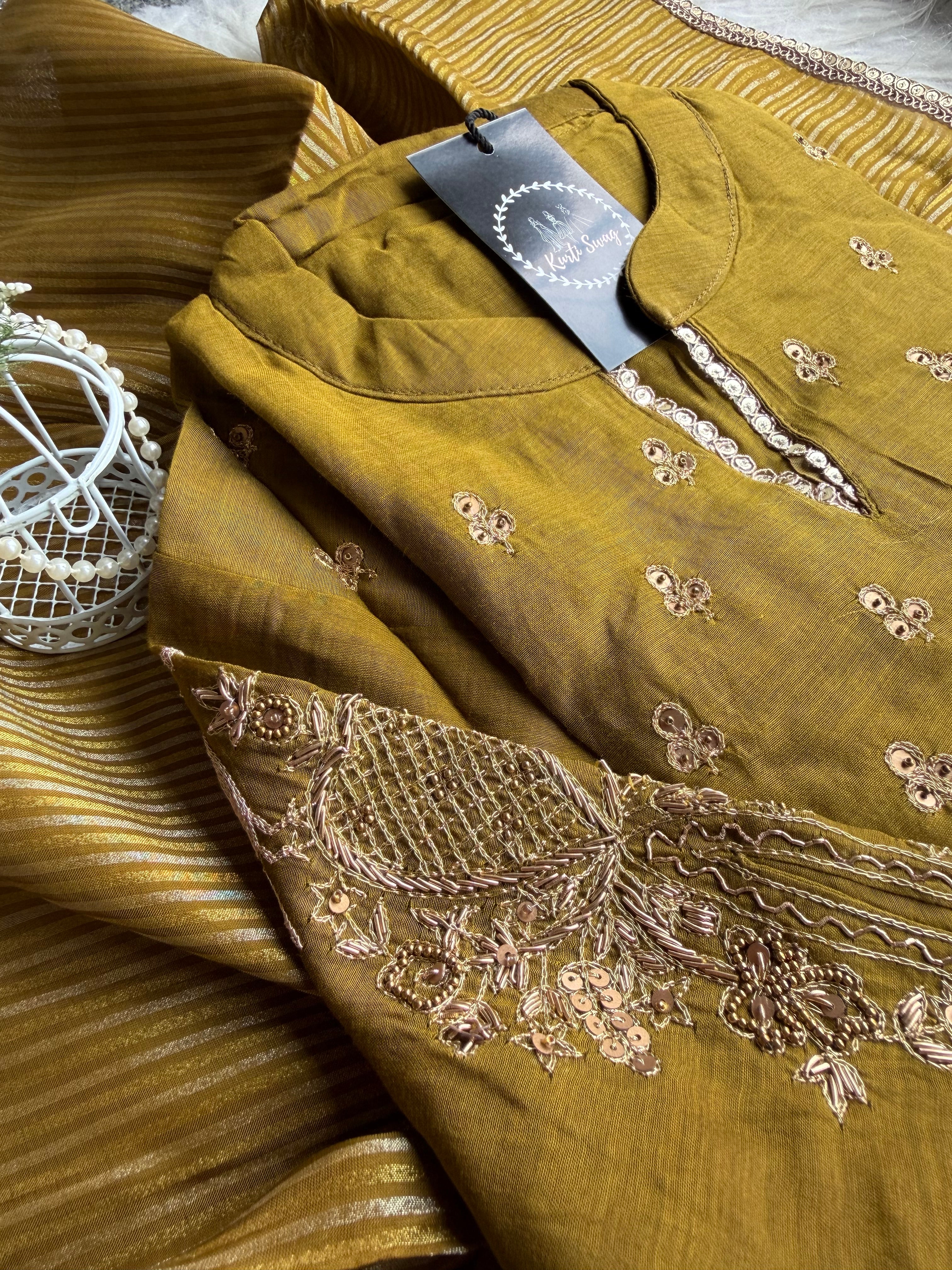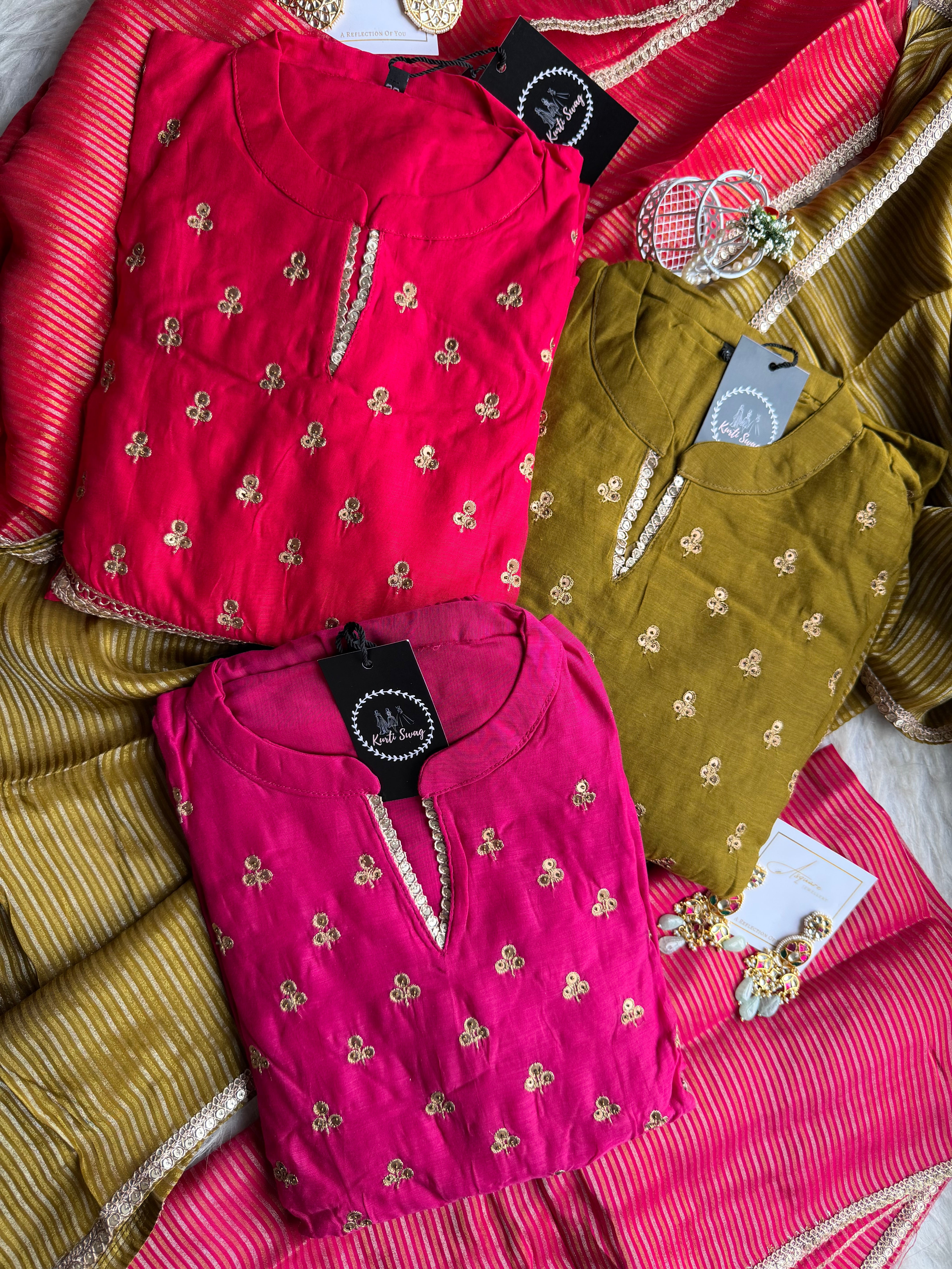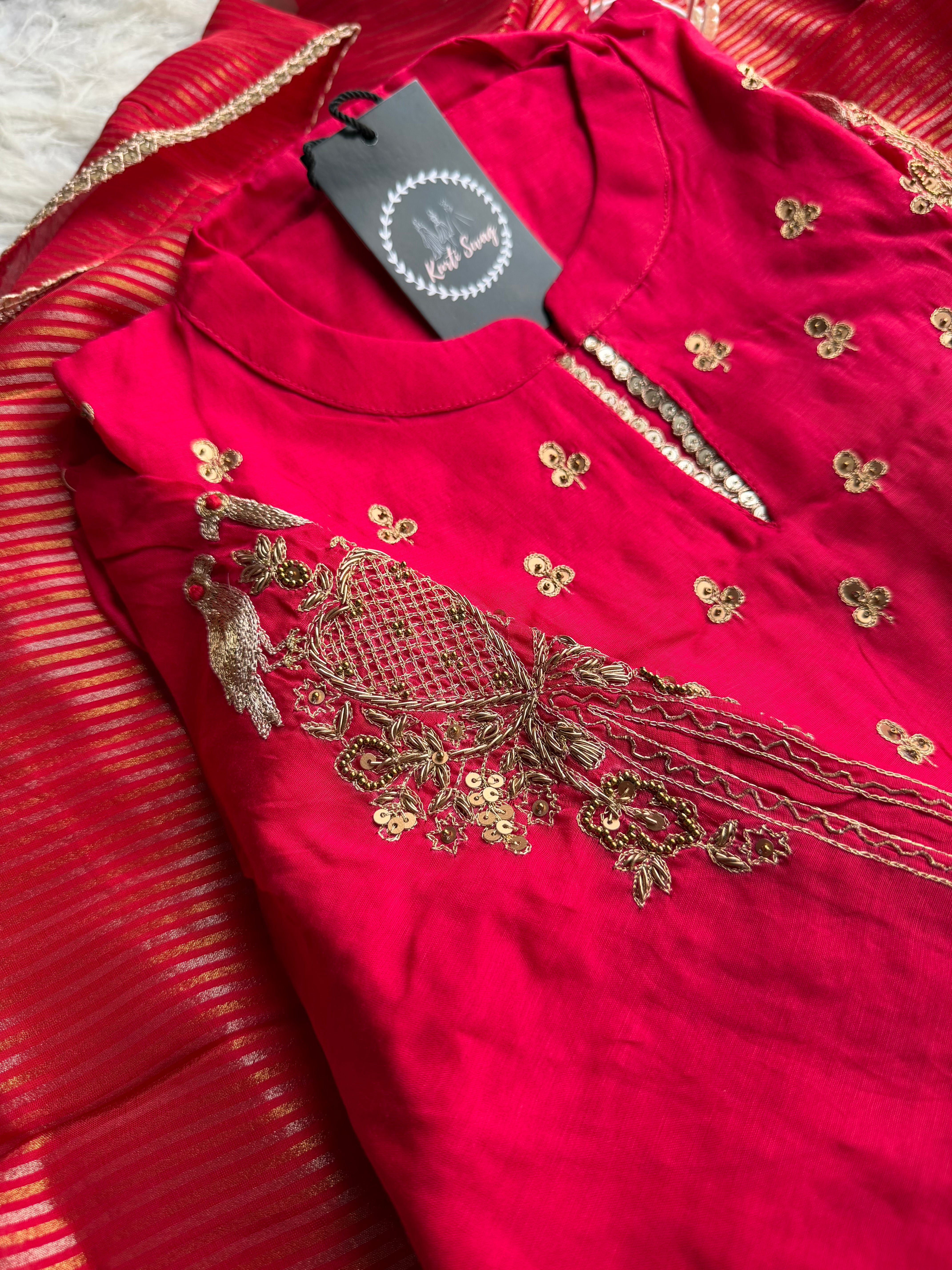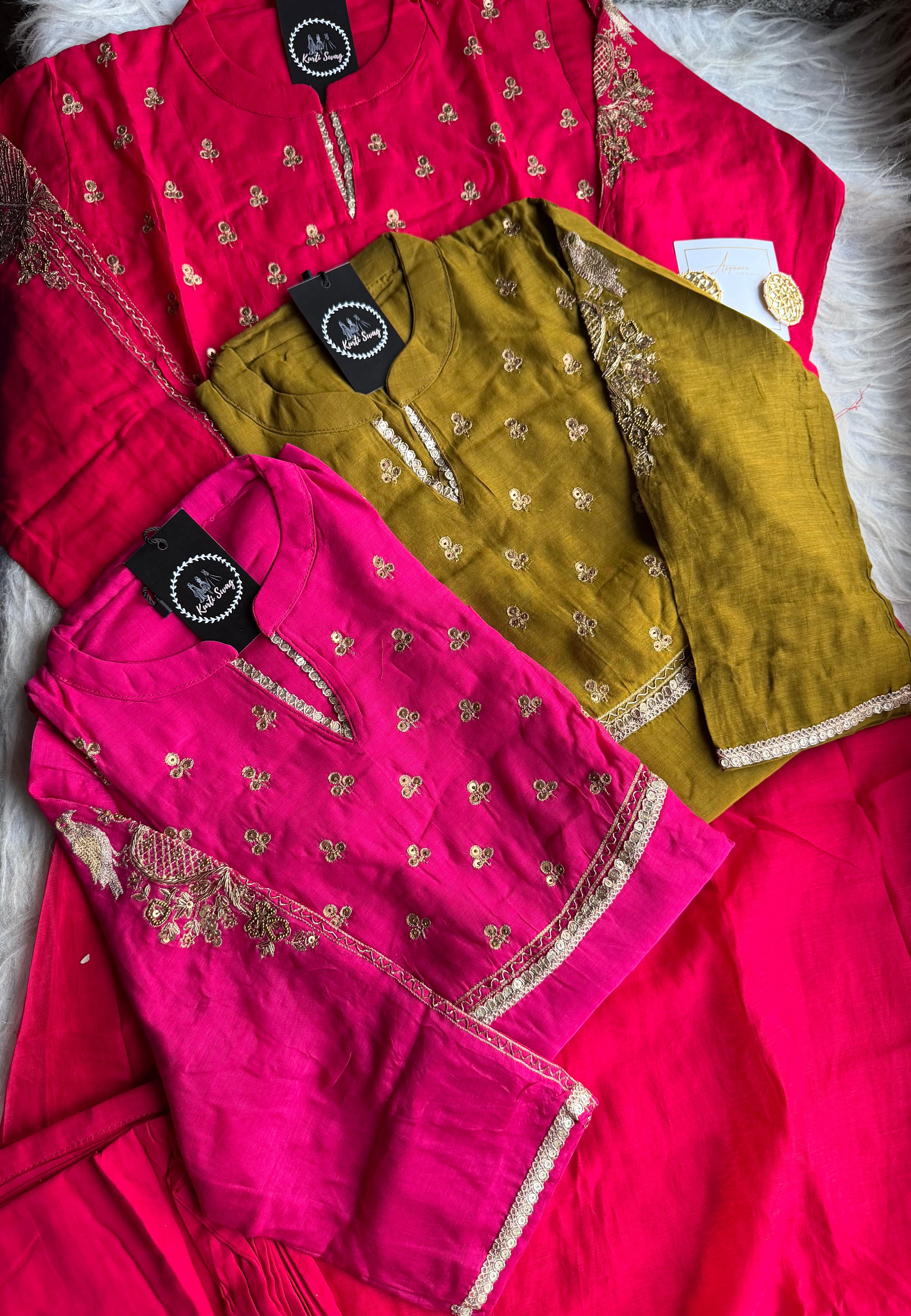 ✅ Premium Mul Chanderi Kurti With Tikki Handwork On The Of The Kurti .
