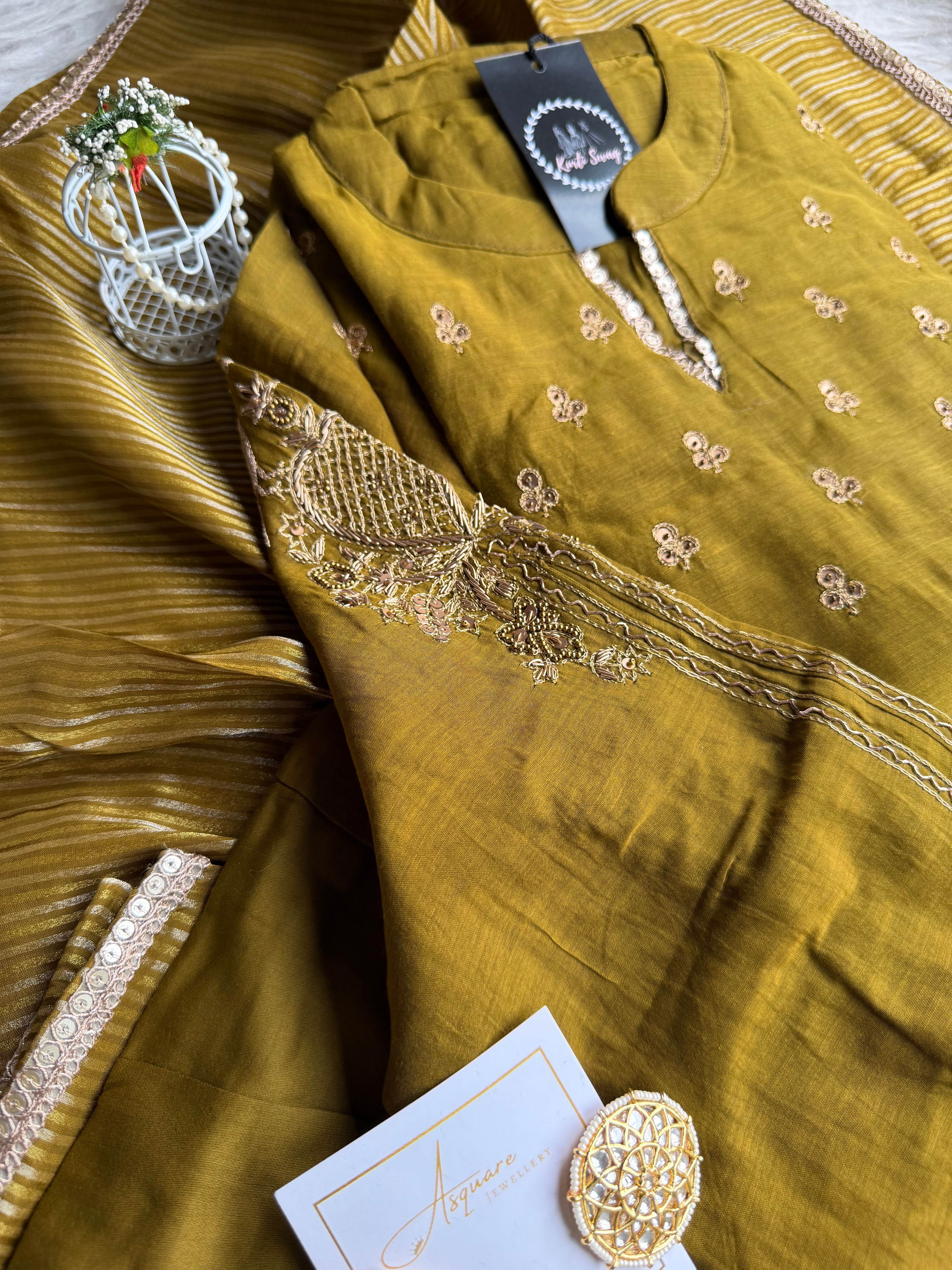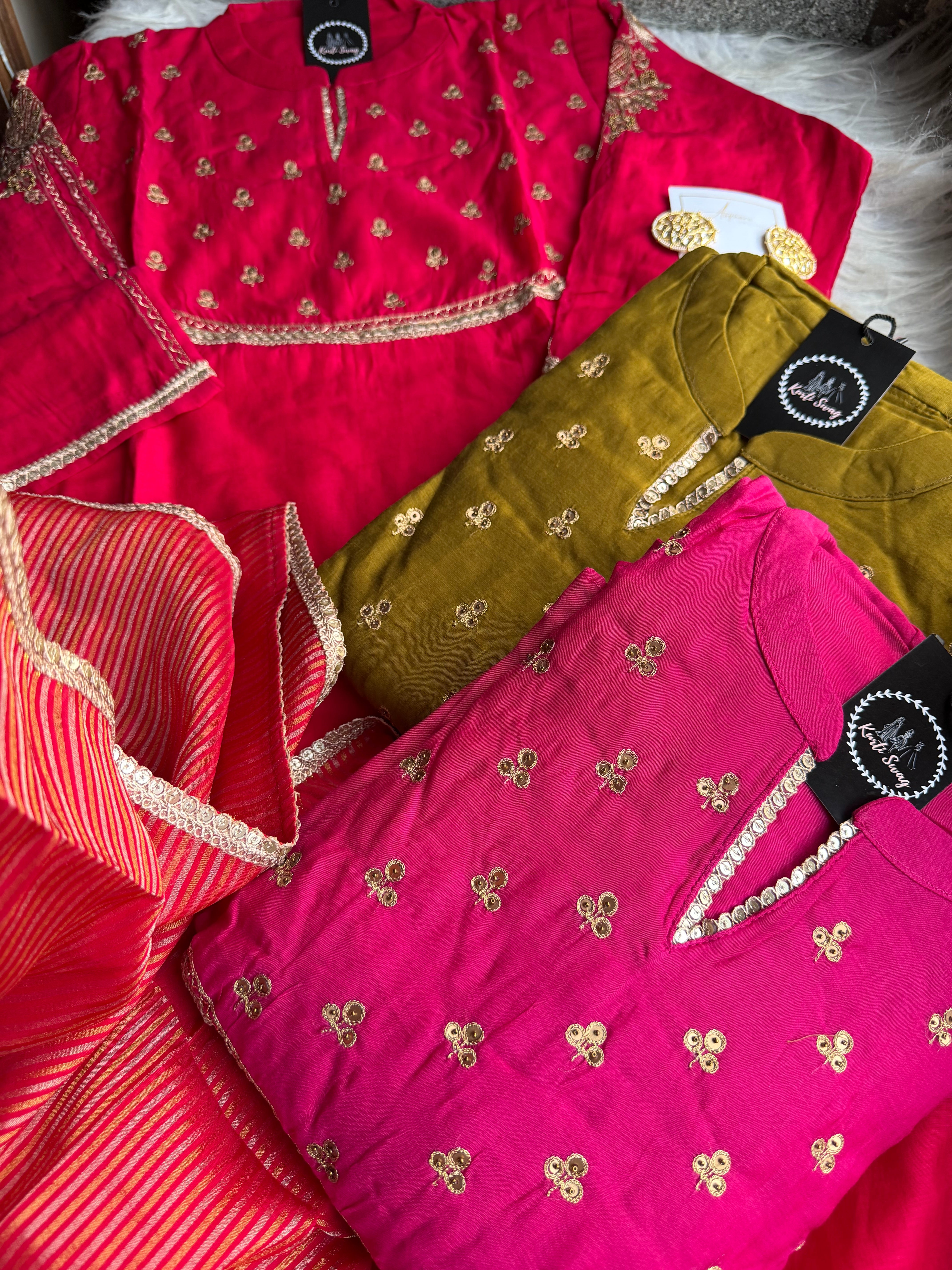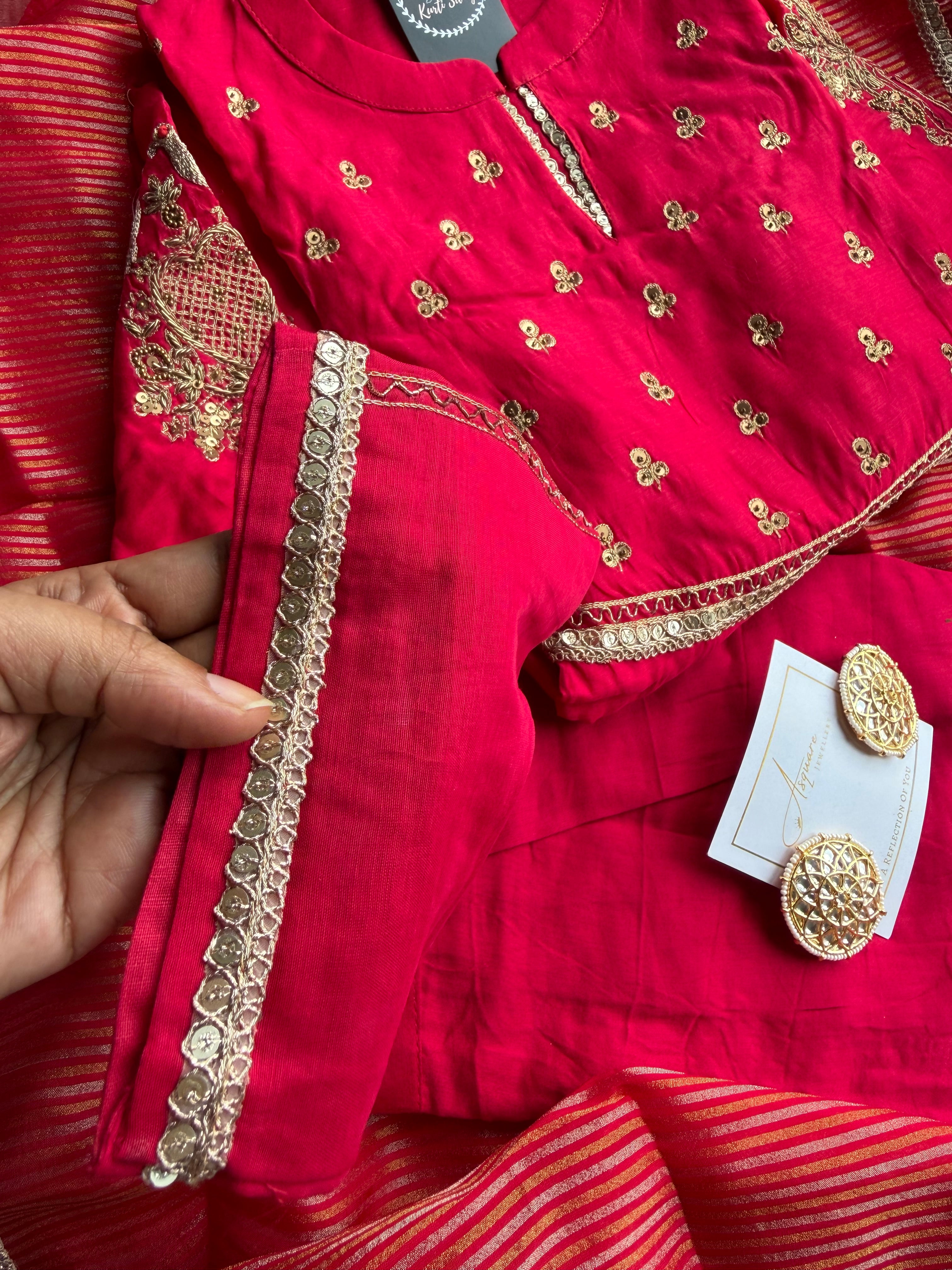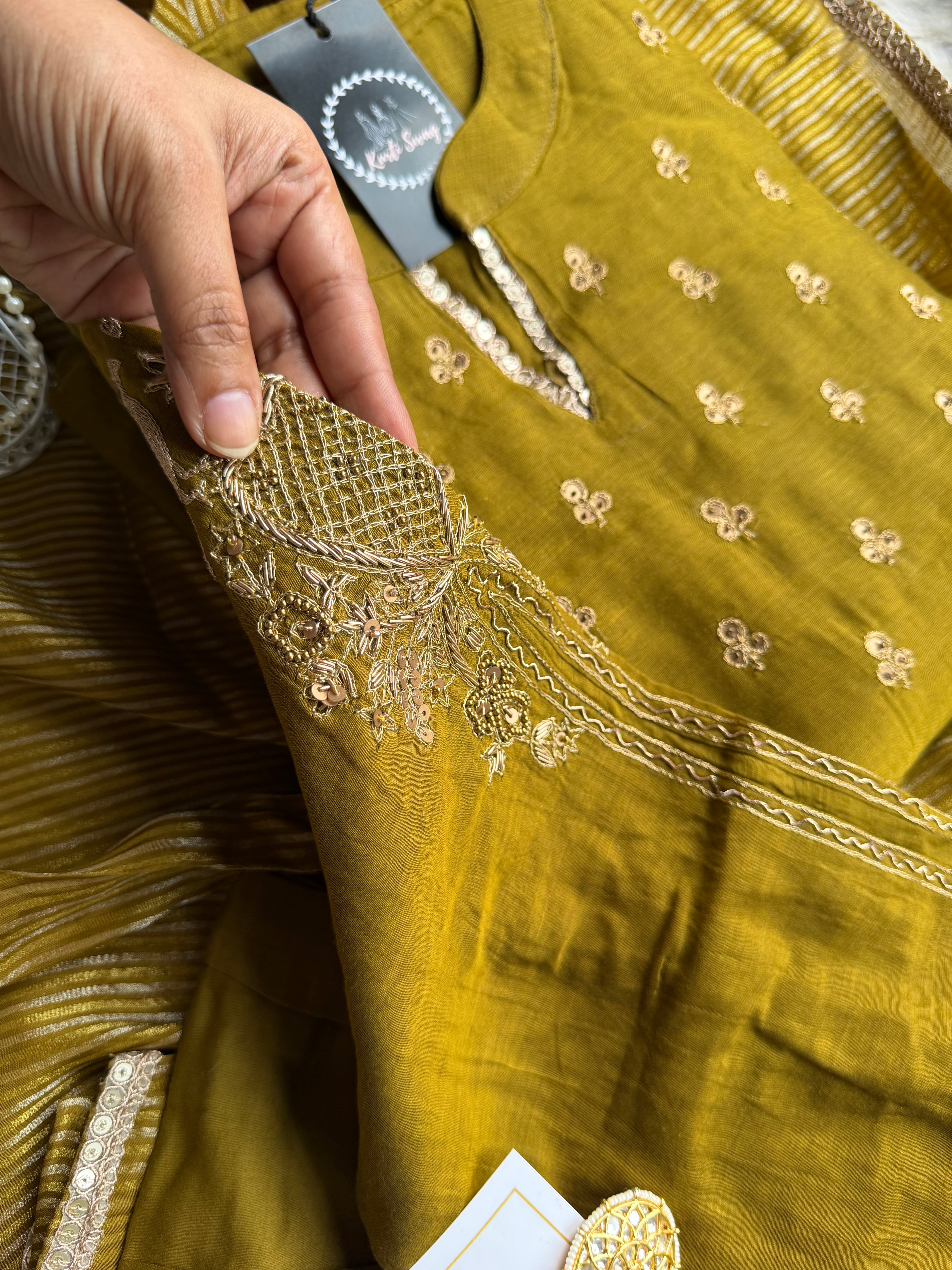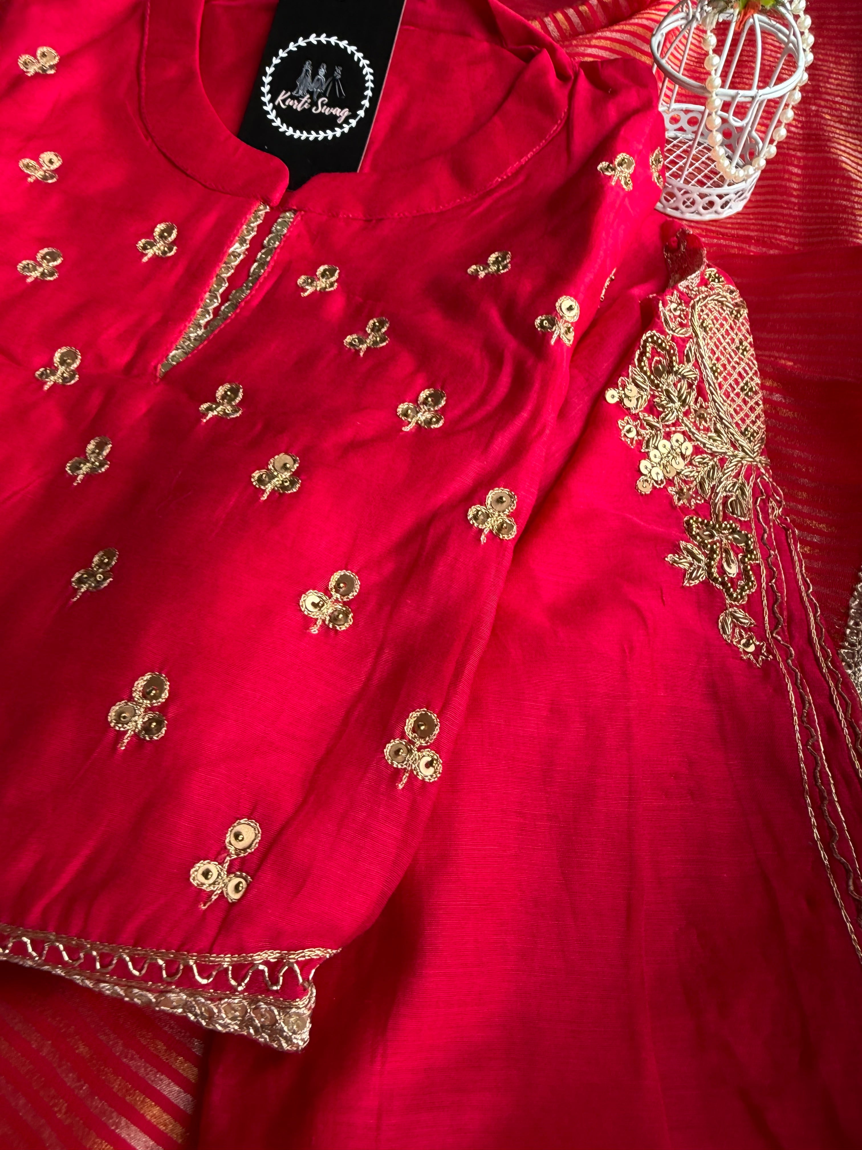✅ Premium Mul Chanderi Kurti With Tikki Handwork On The Of The Kurti .