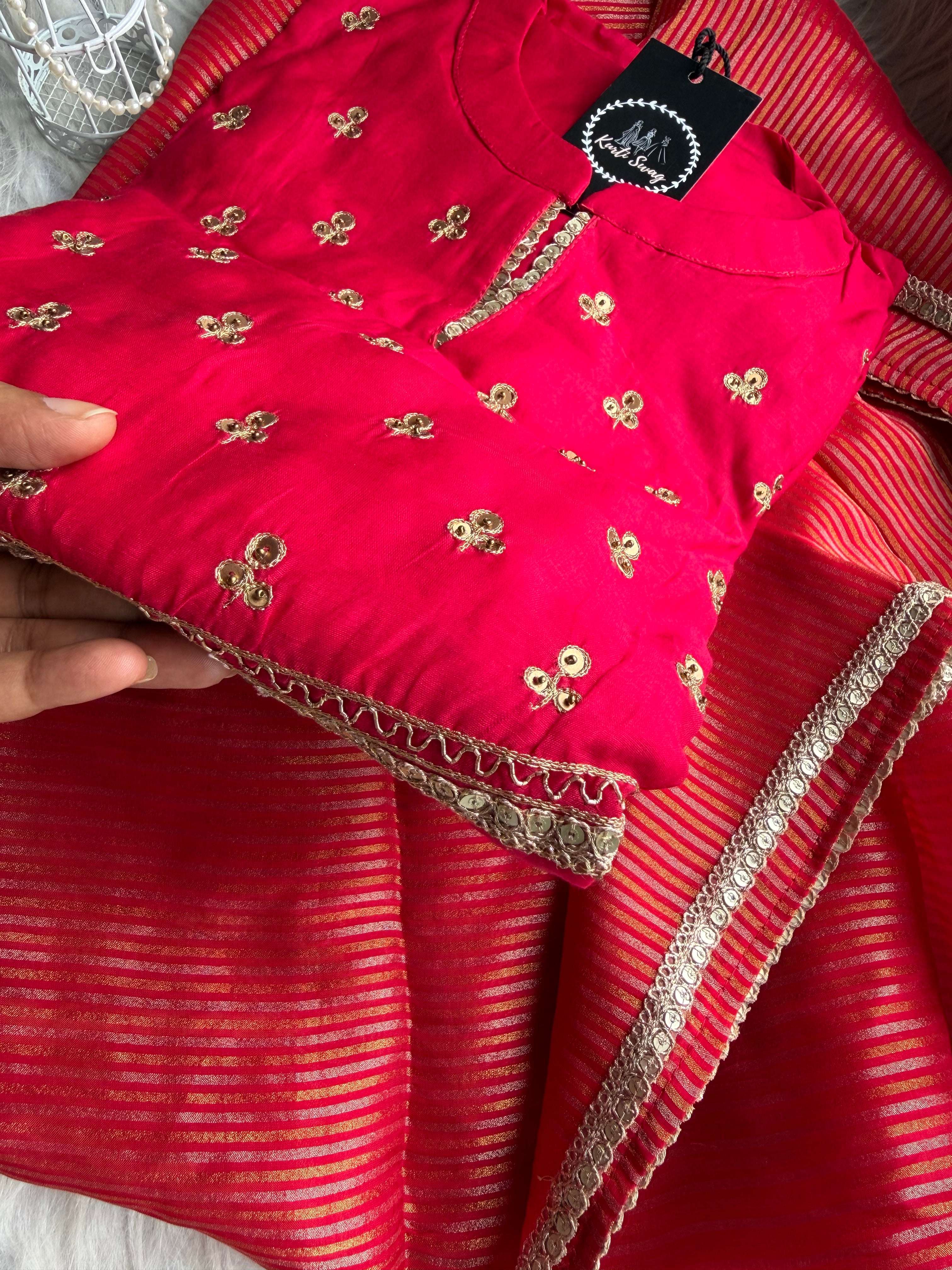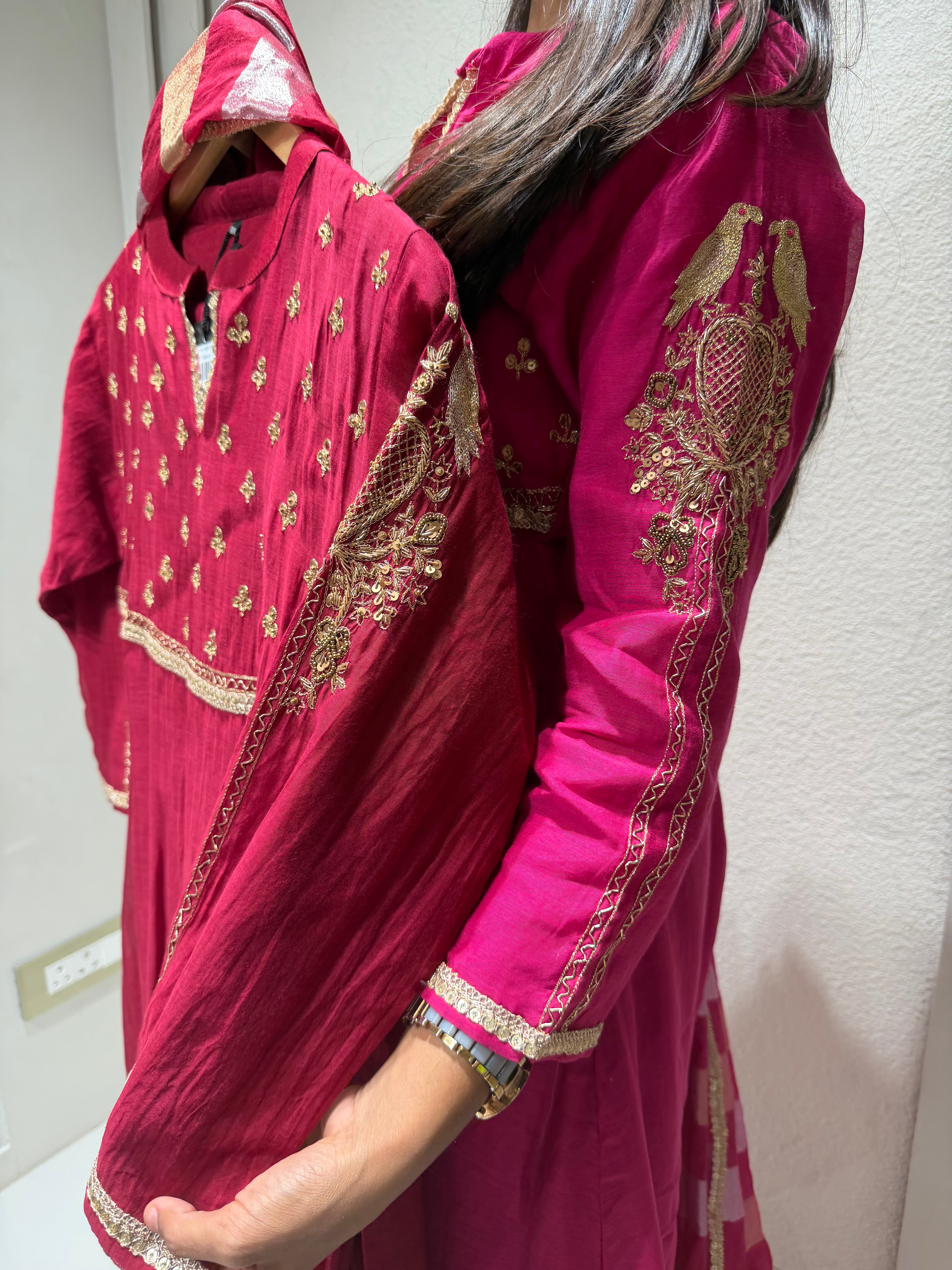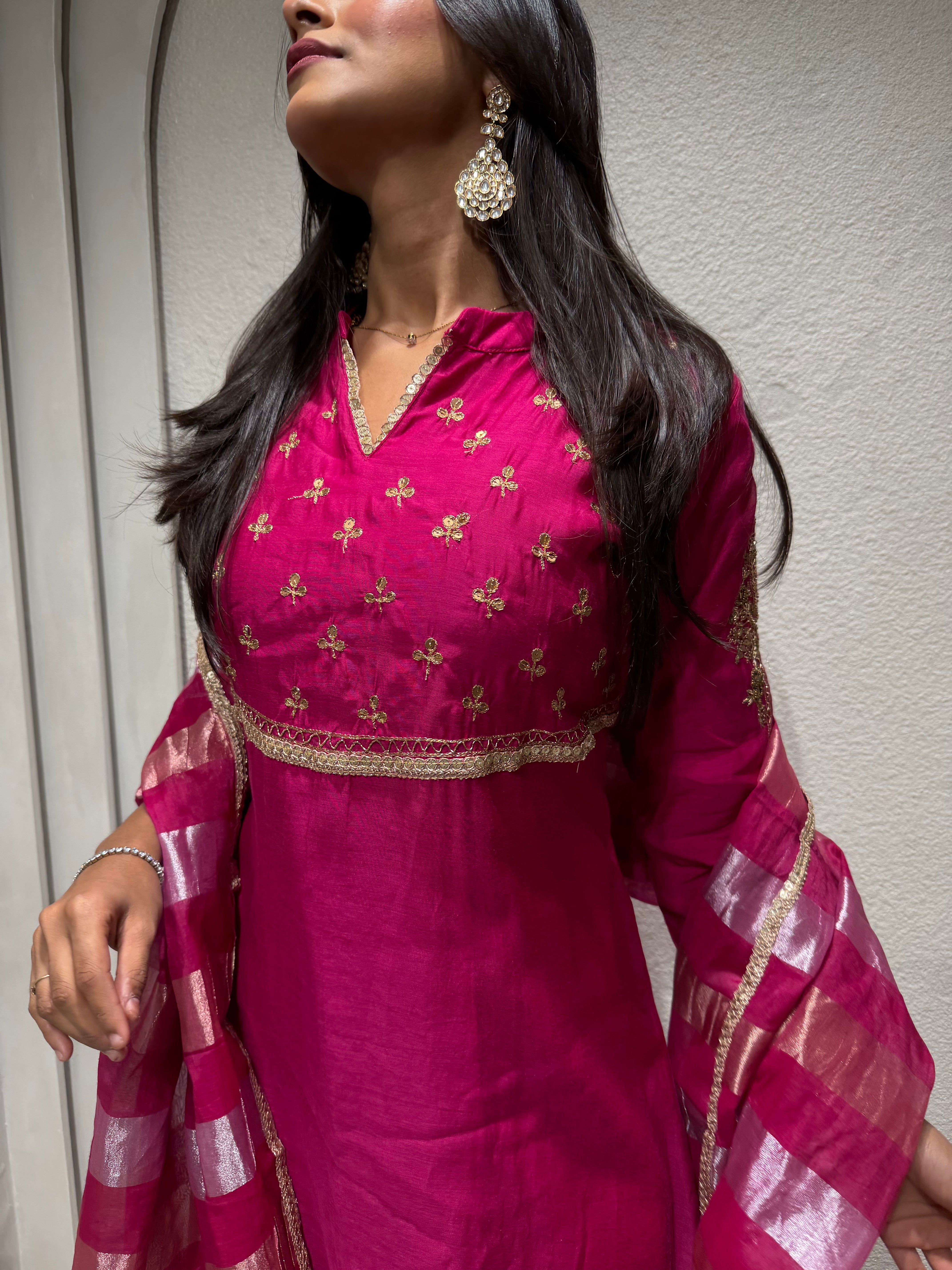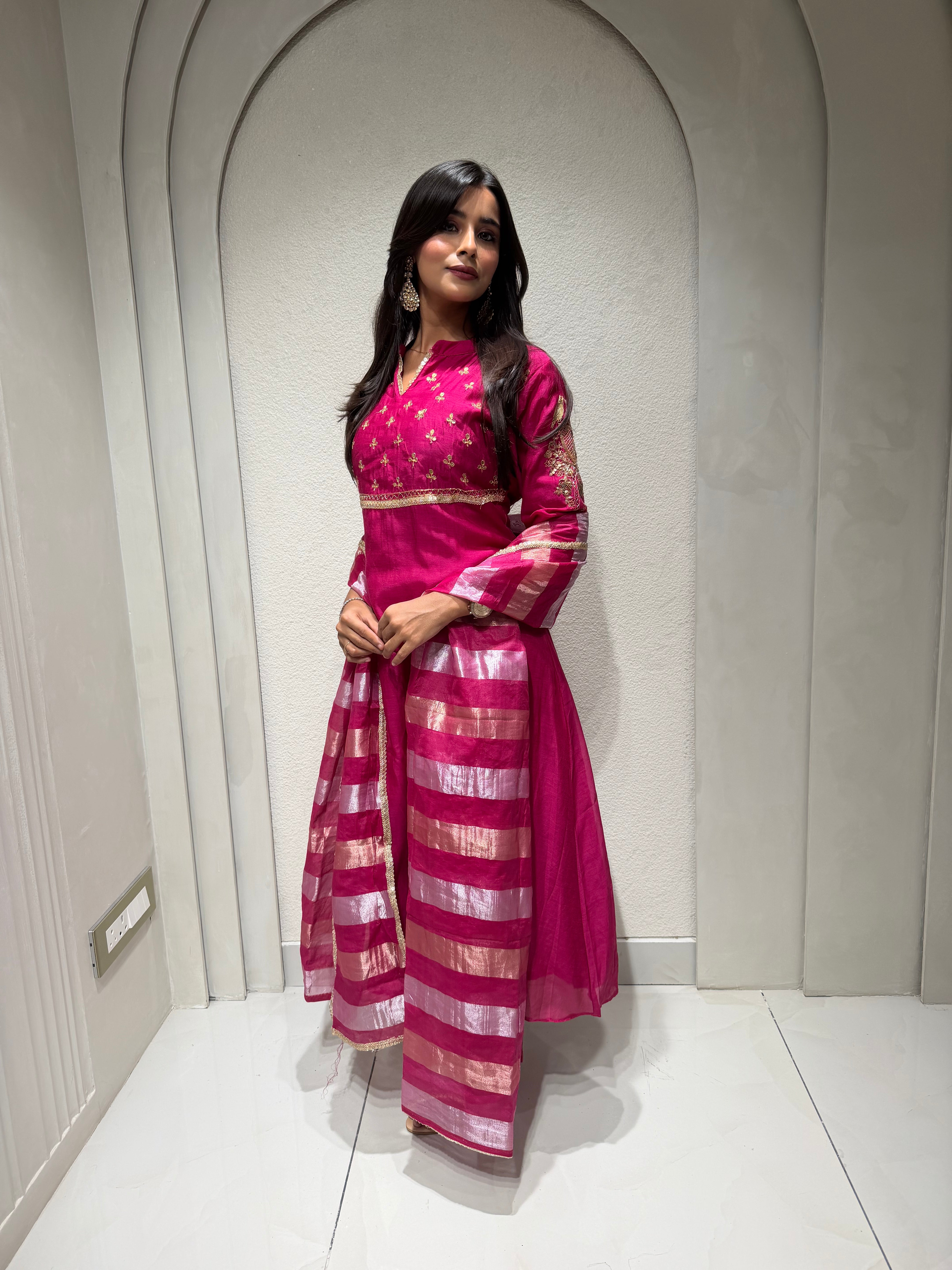 ✅ Premium Mul Chanderi Kurti With Tikki Handwork On The Of The Kurti .