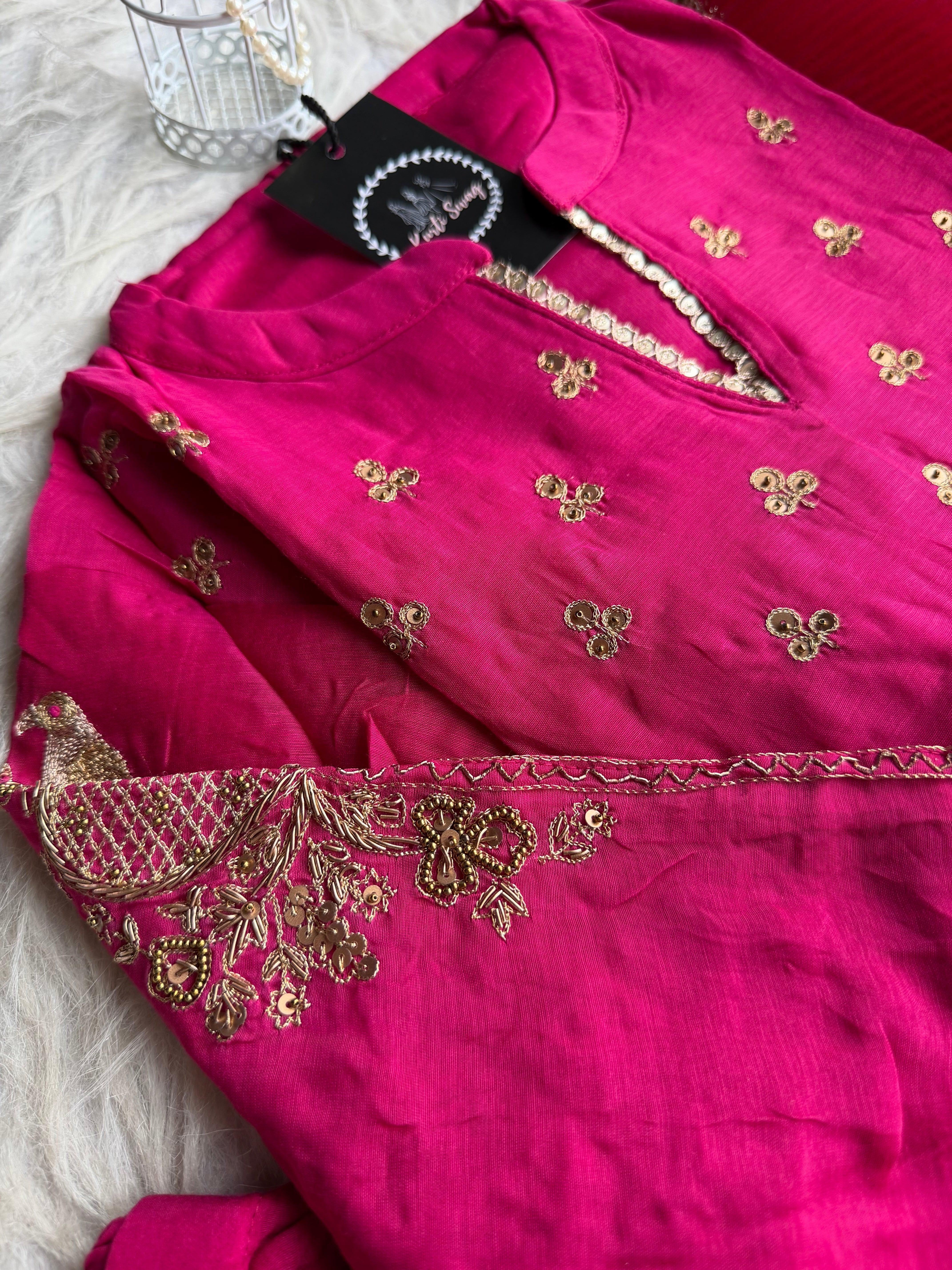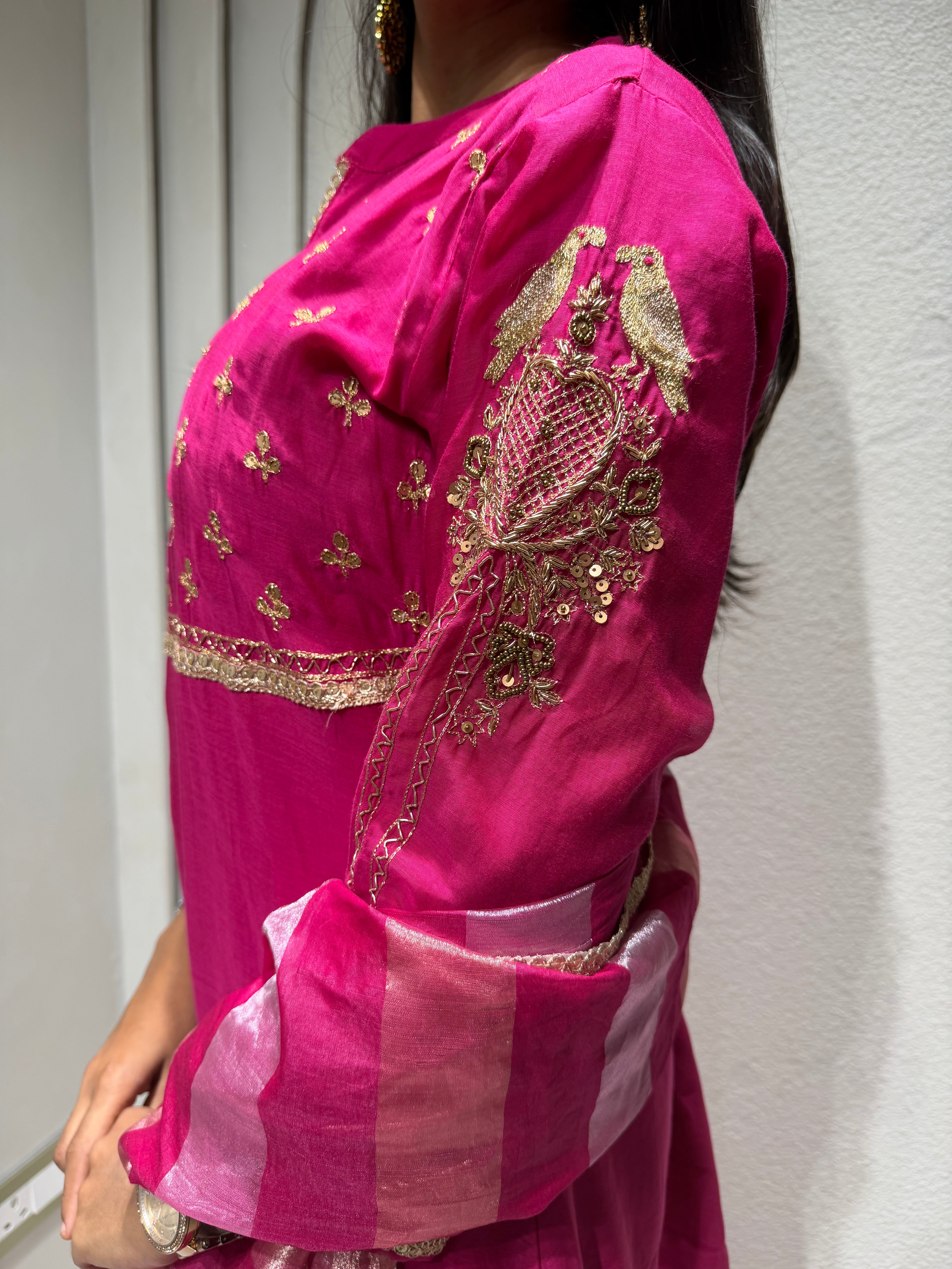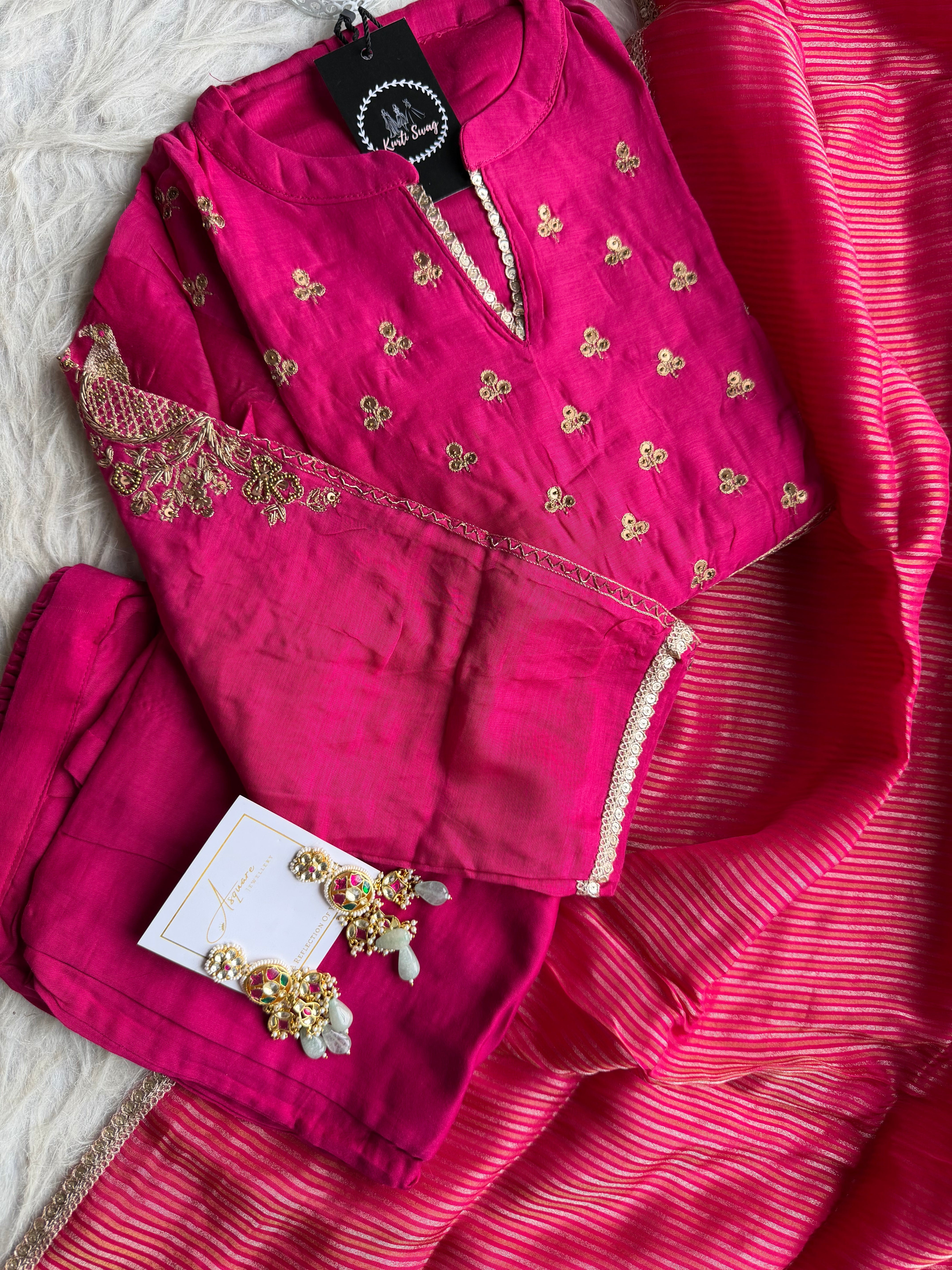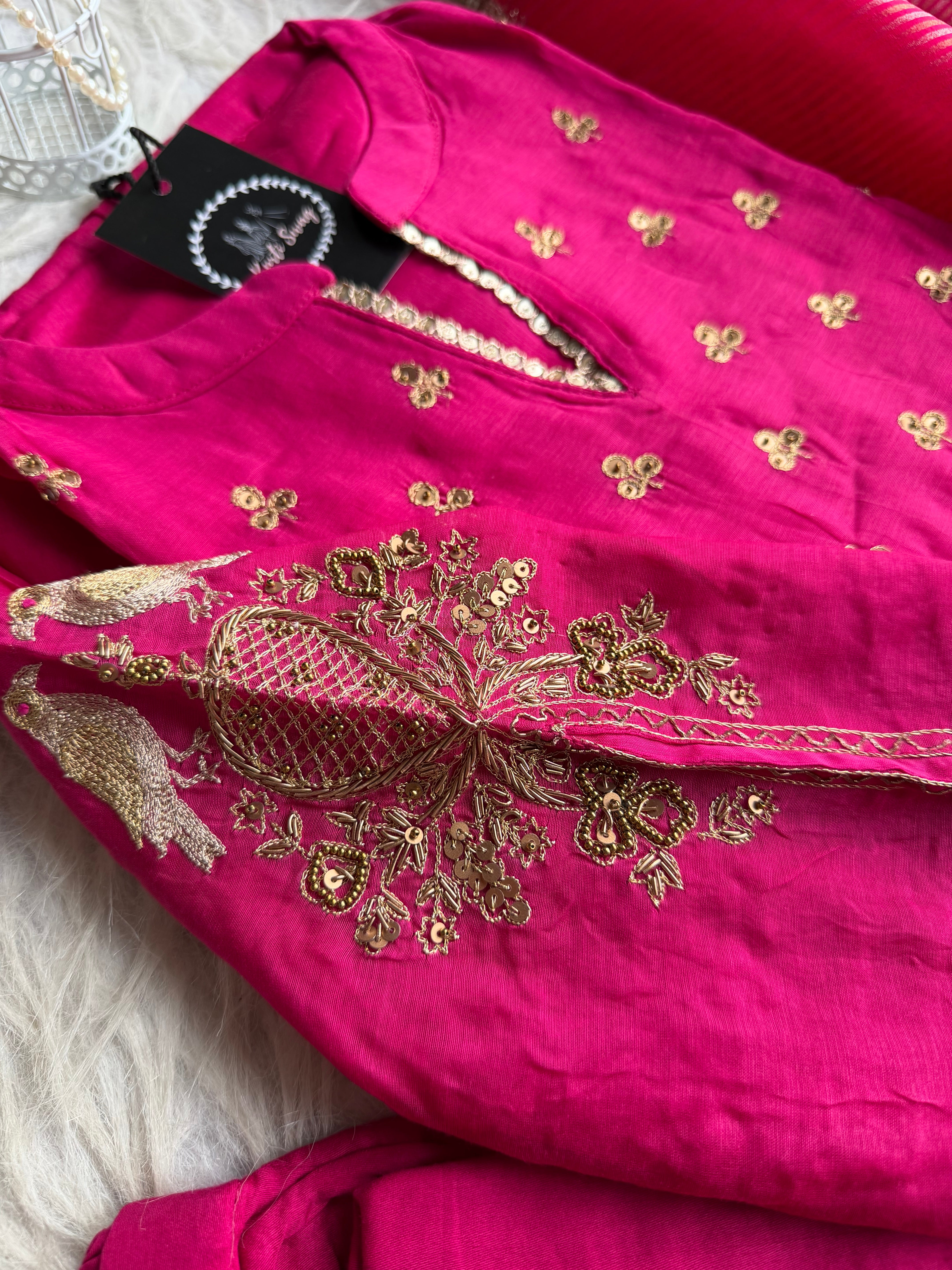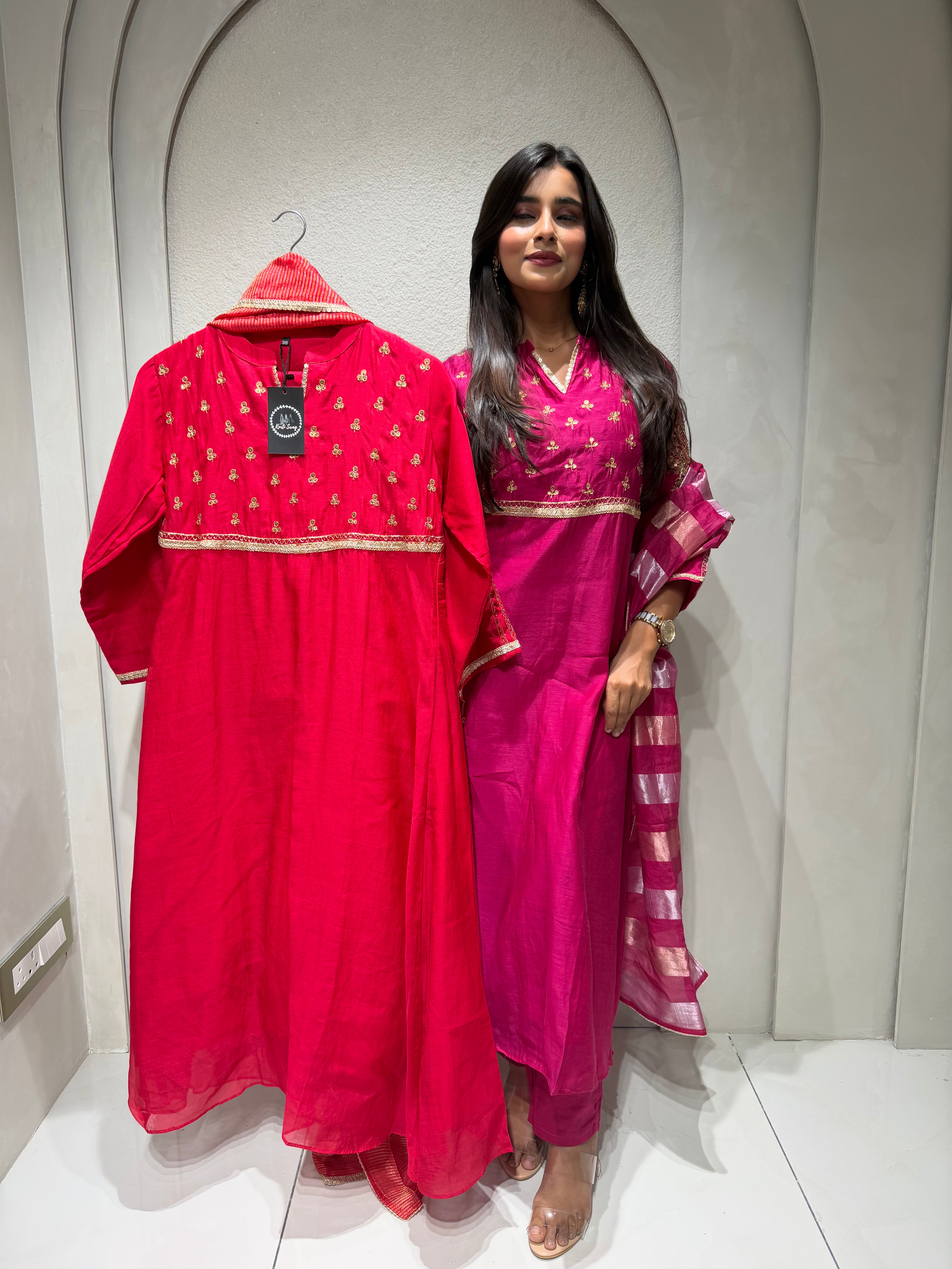 ✅ Premium Mul Chanderi Kurti With Tikki Handwork On The Of The Kurti .