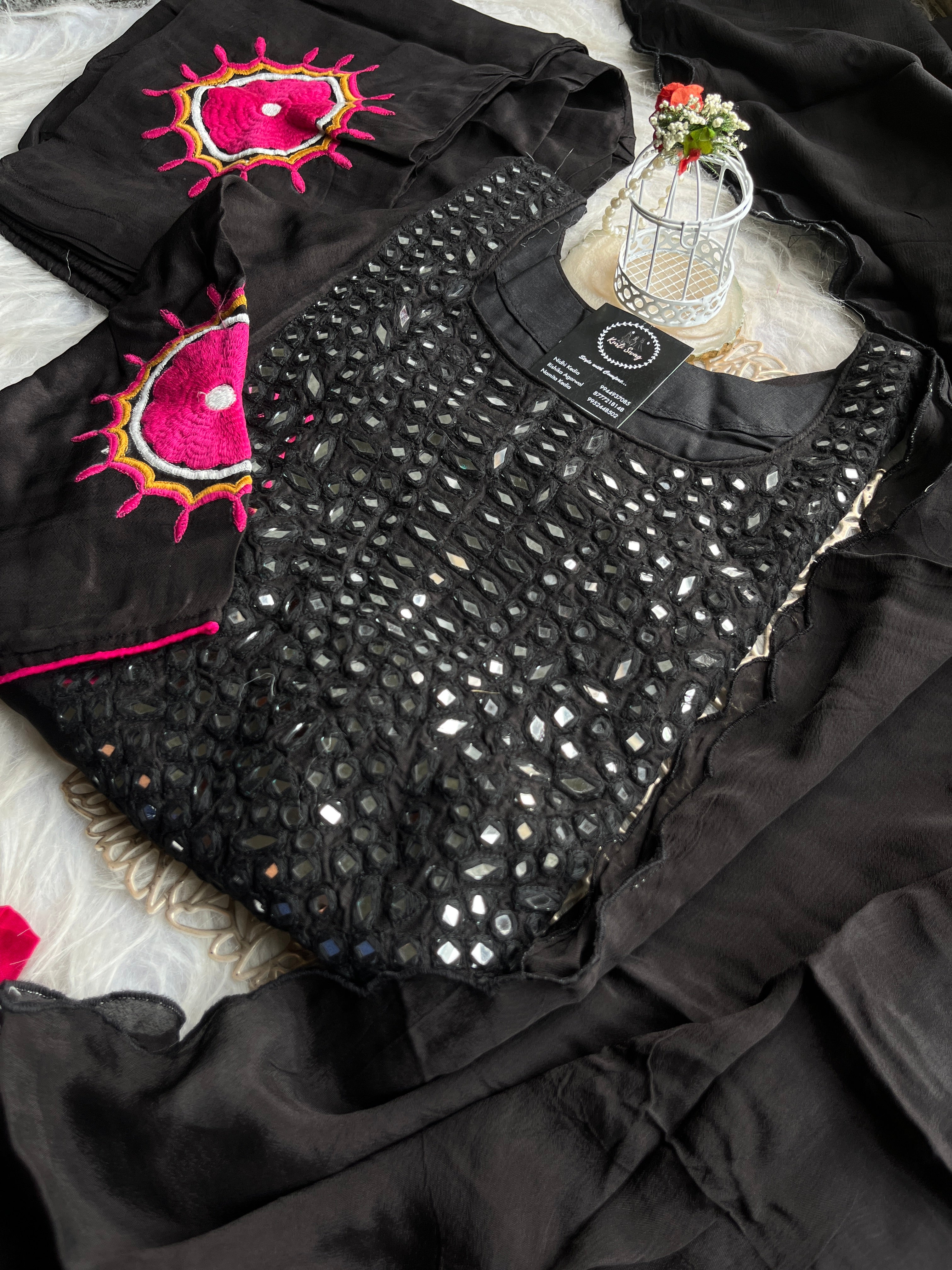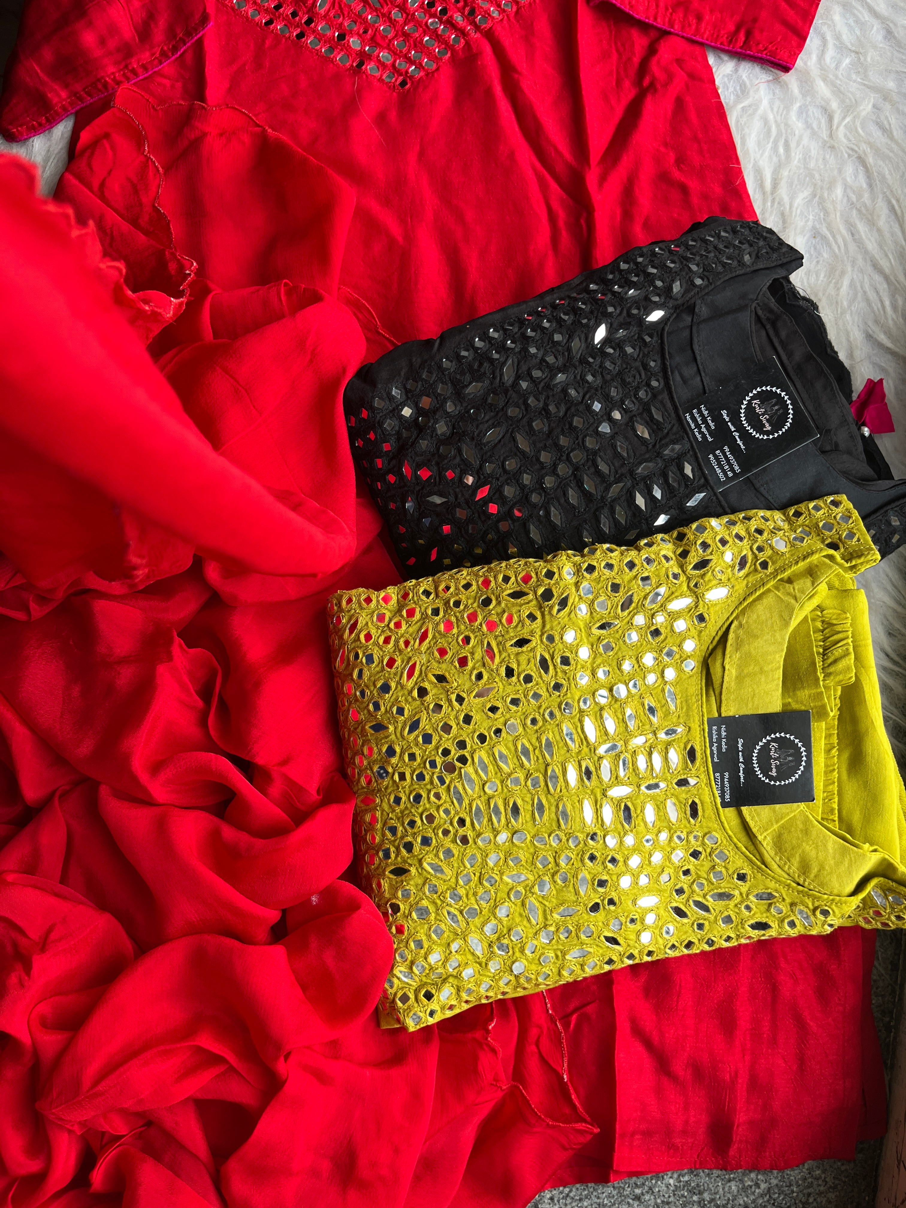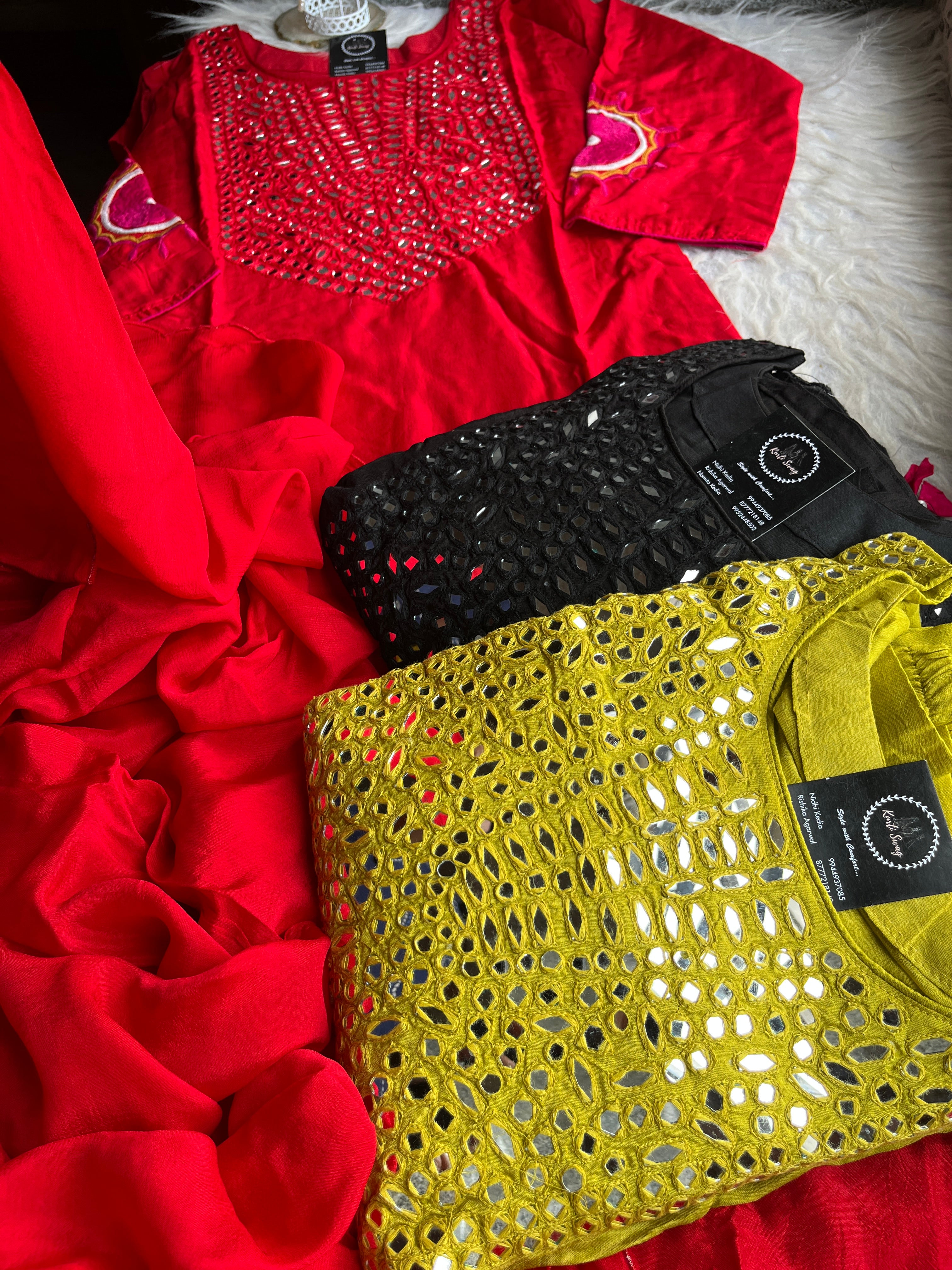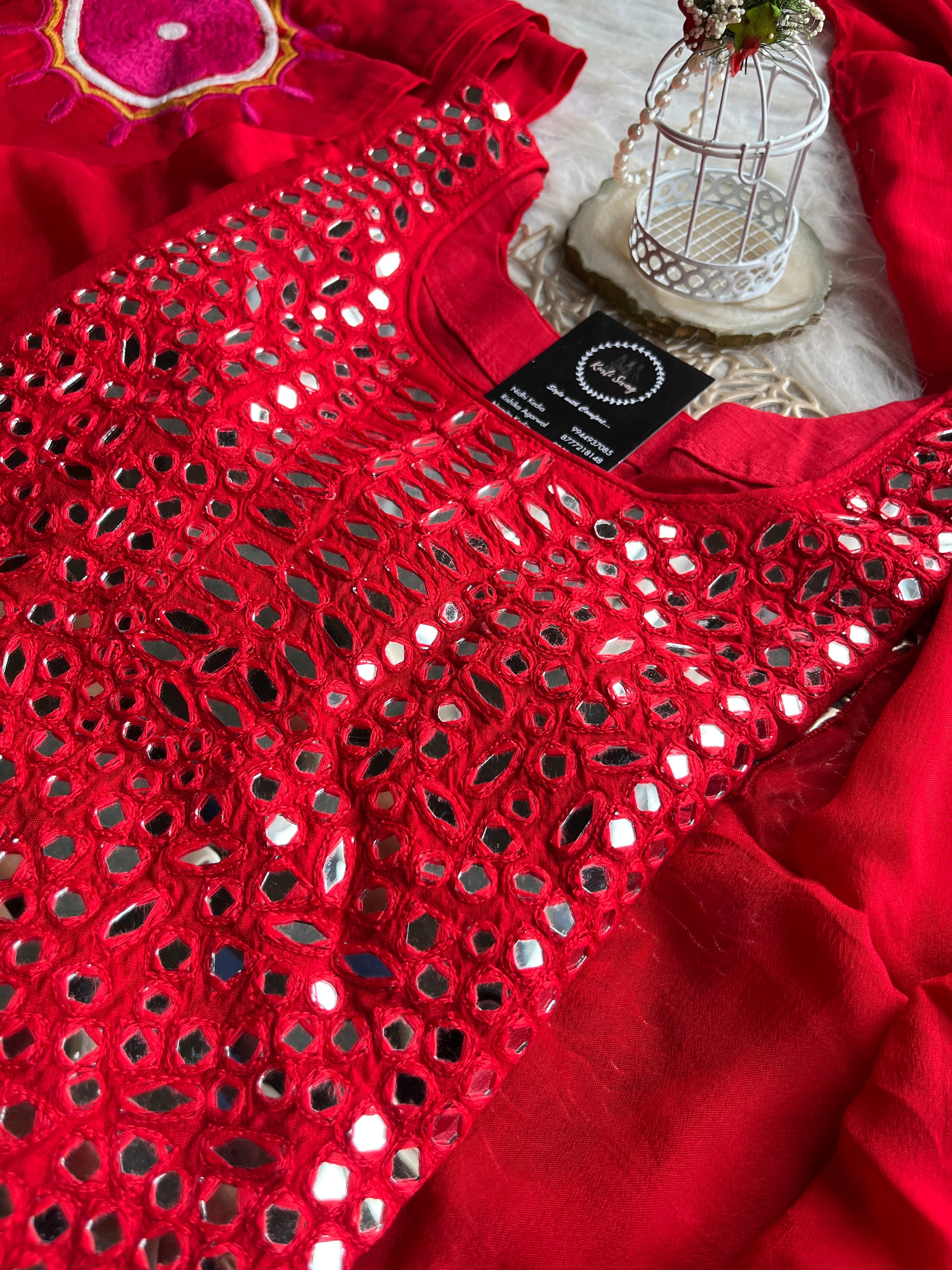✅ Dola Silk Kurti With Mirror Hand embroidery On The Neckline Of The Kurti