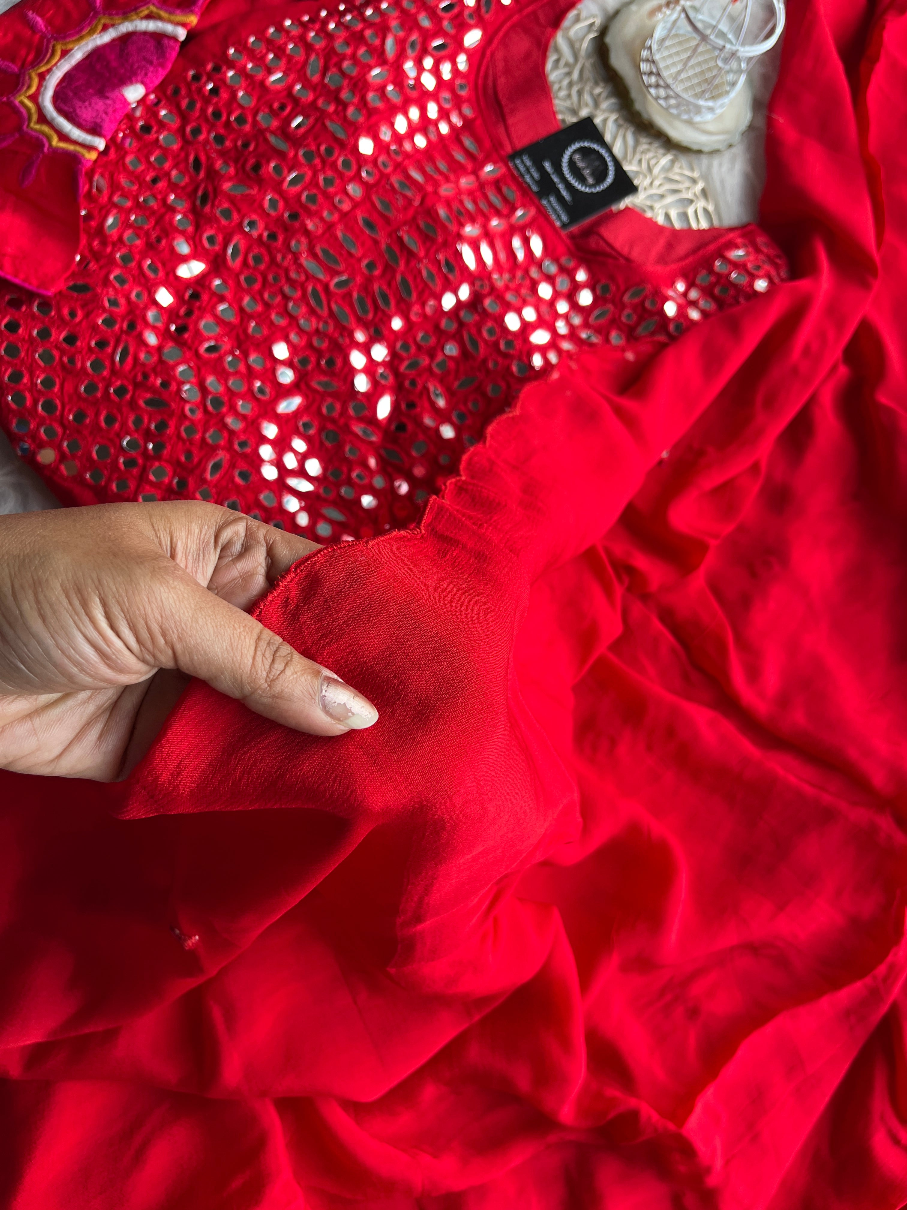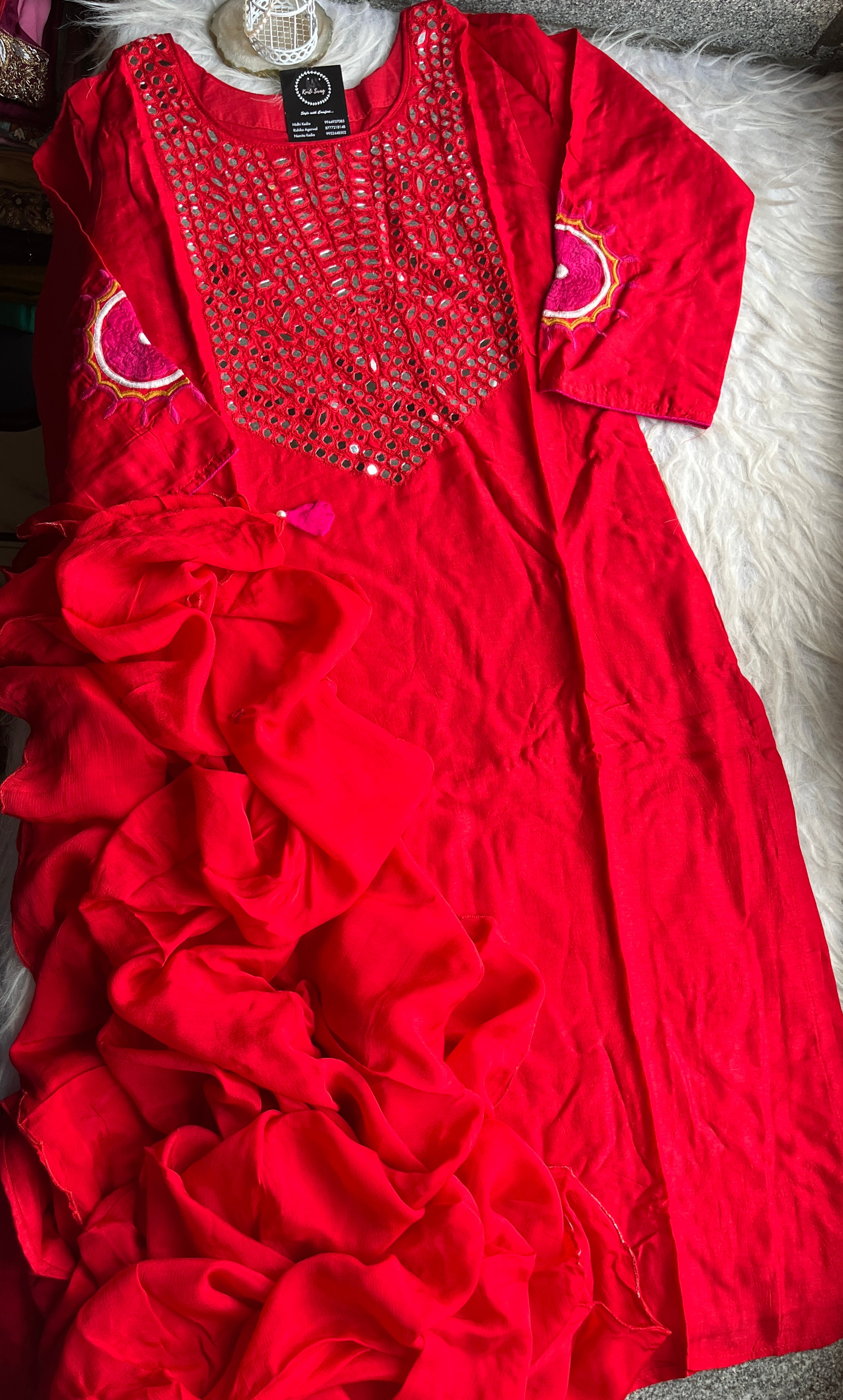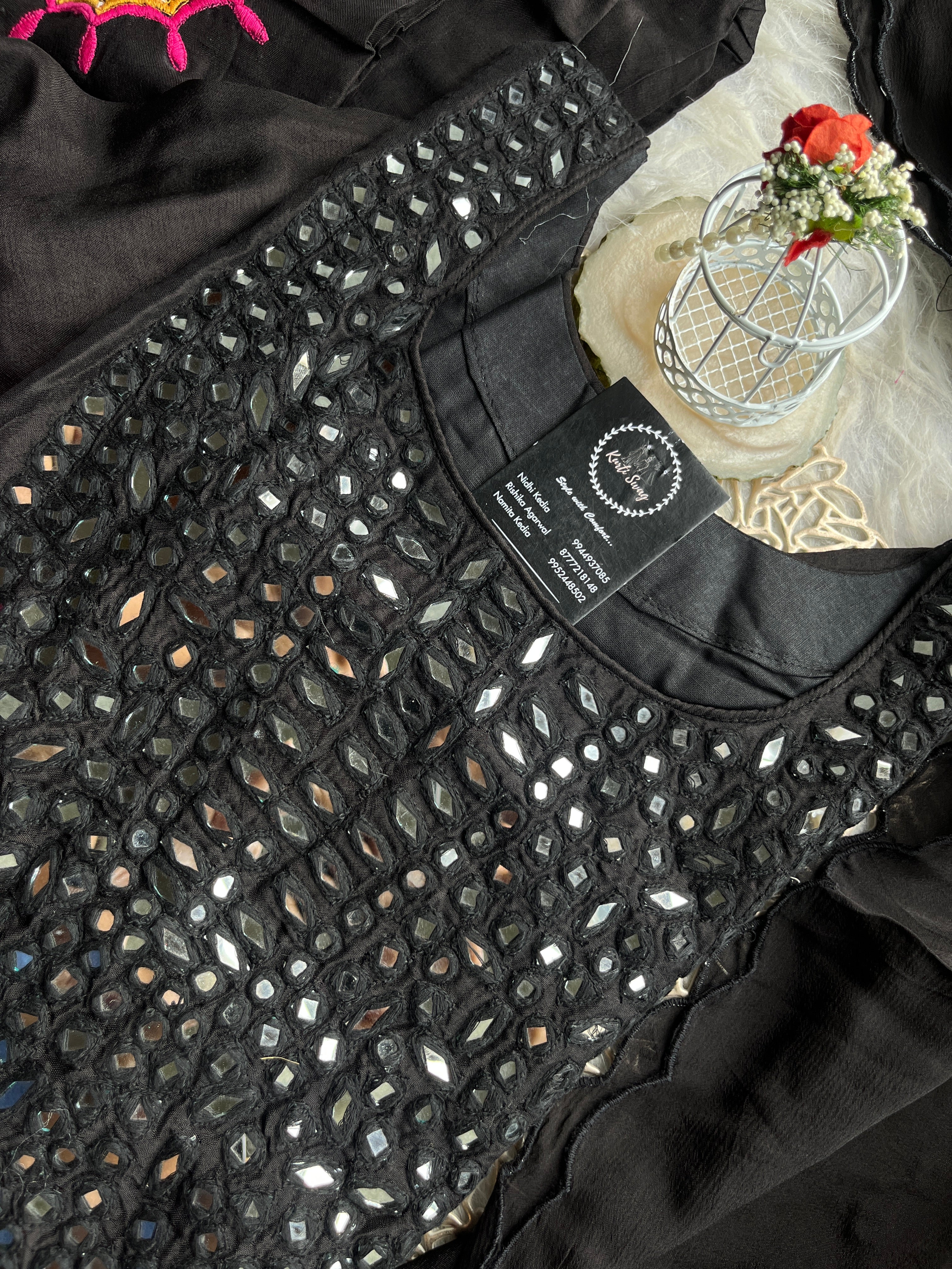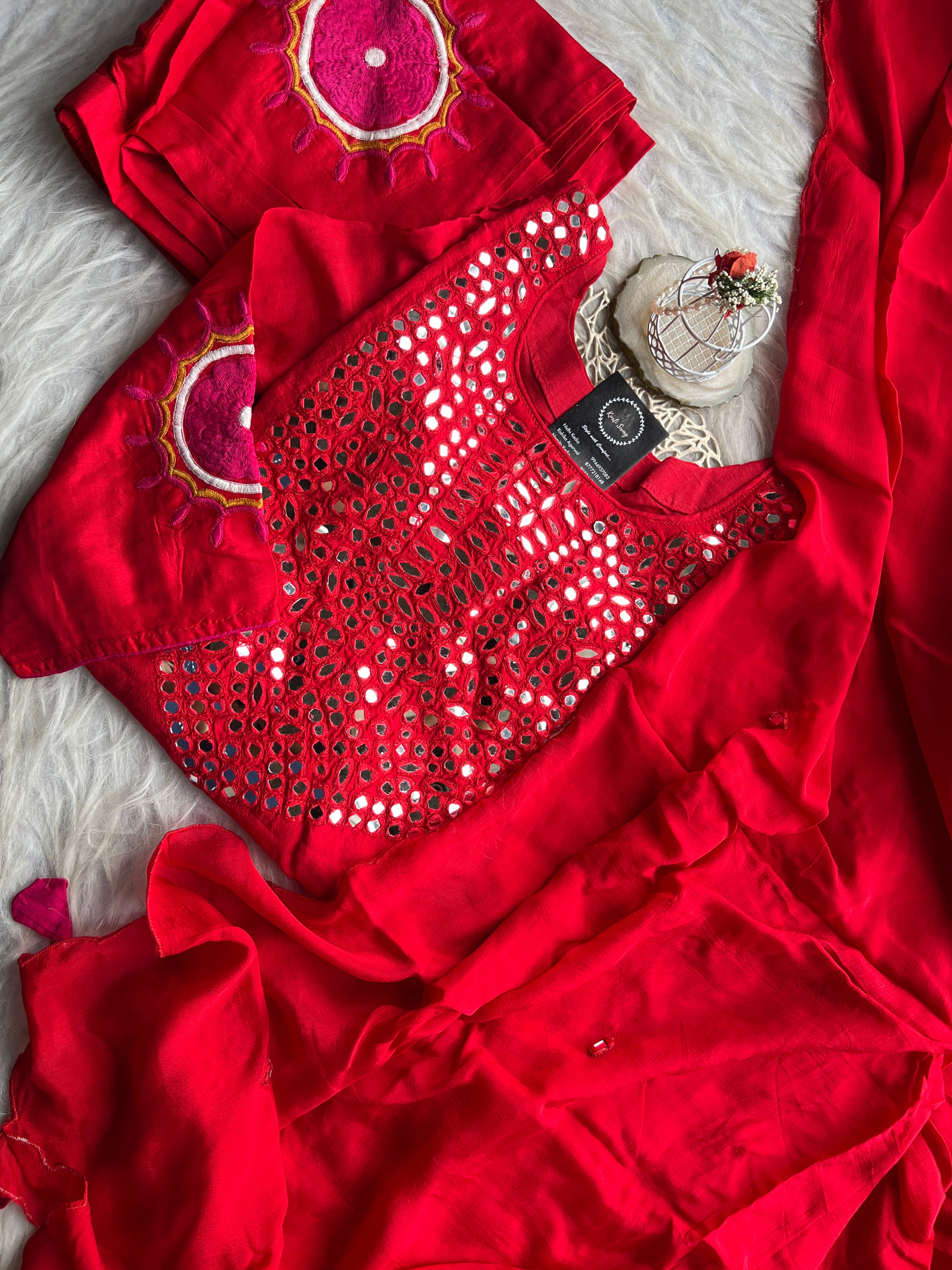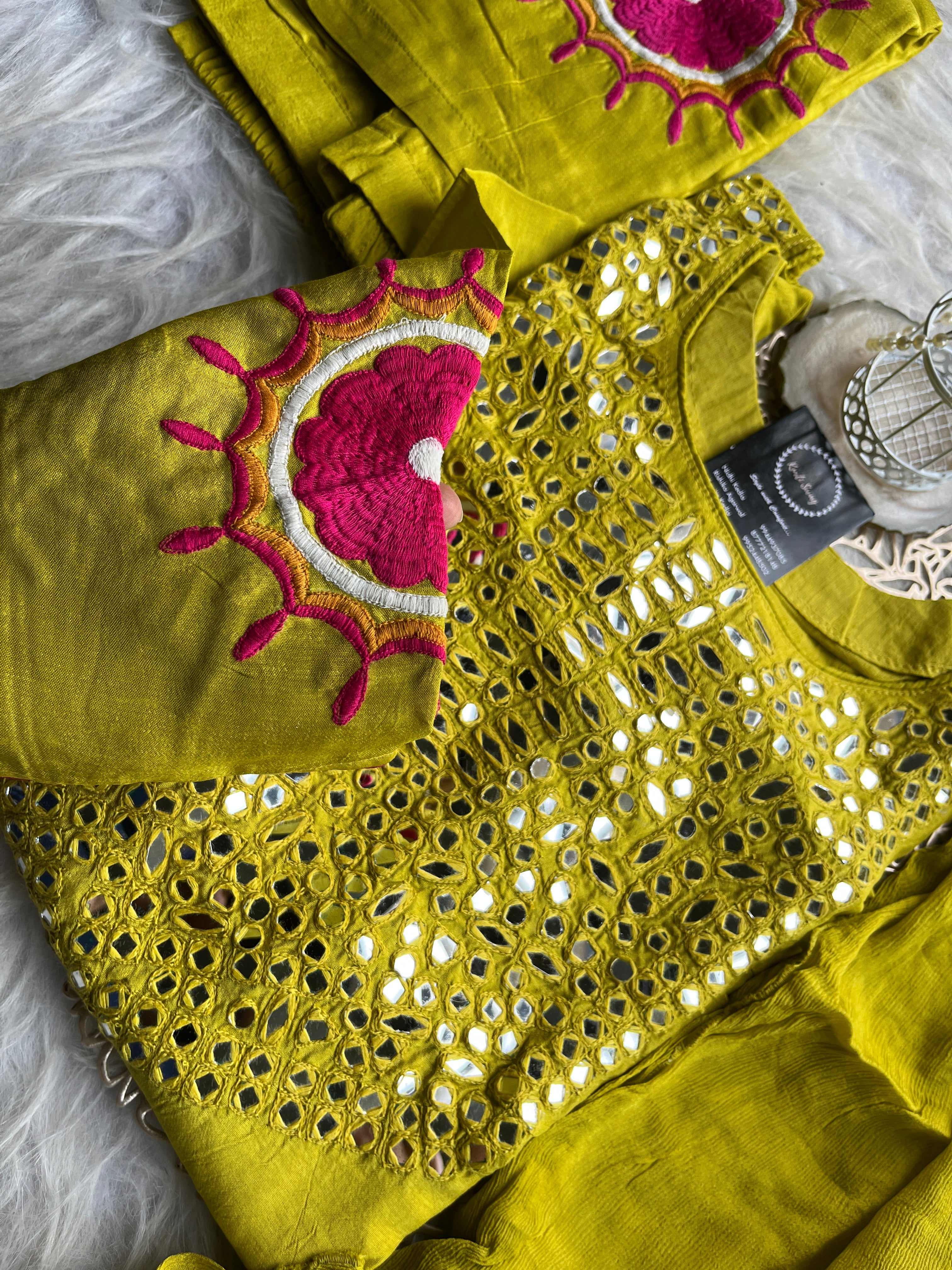 ✅ Dola Silk Kurti With Mirror Hand embroidery On The Neckline Of The Kurti