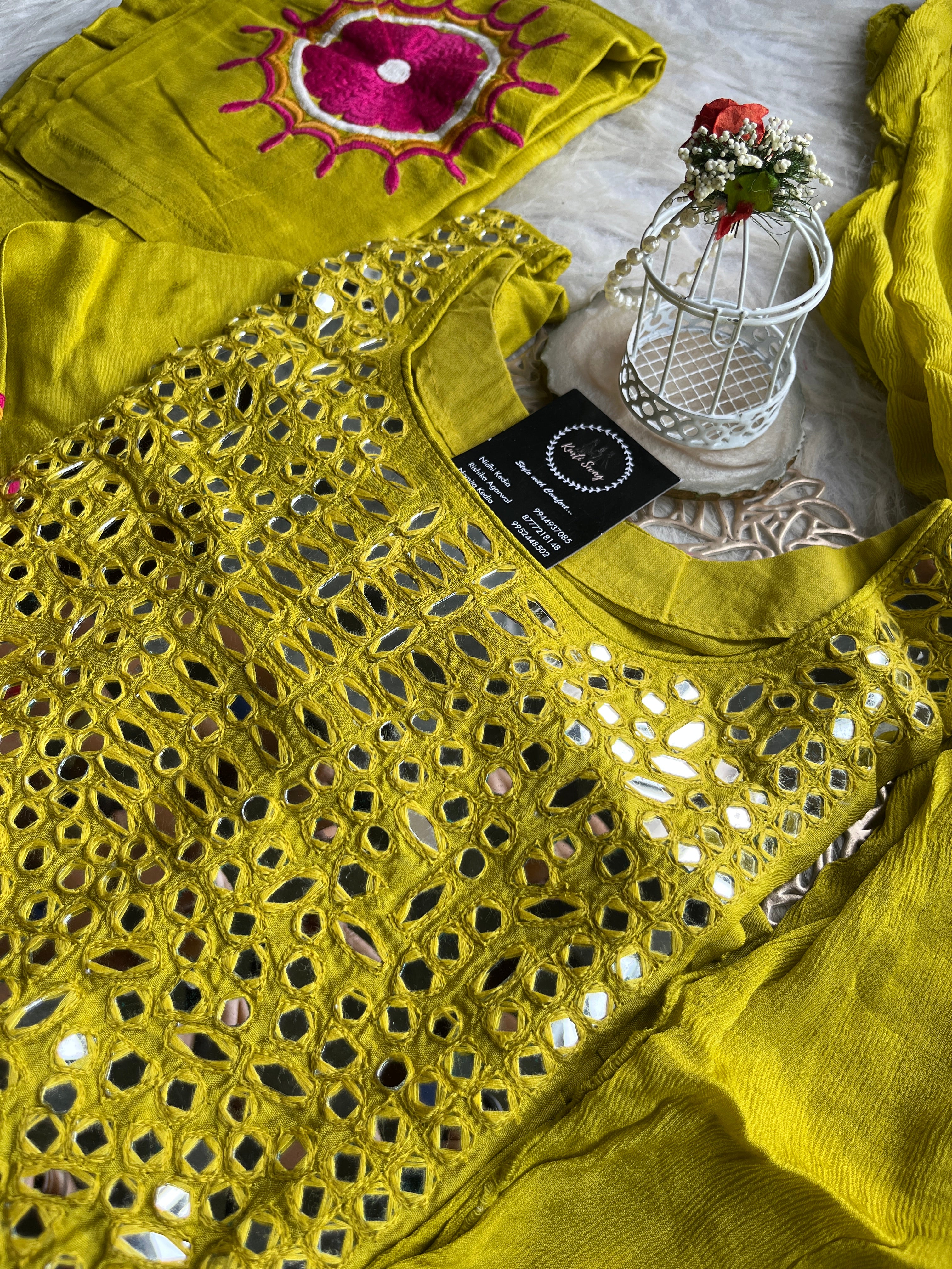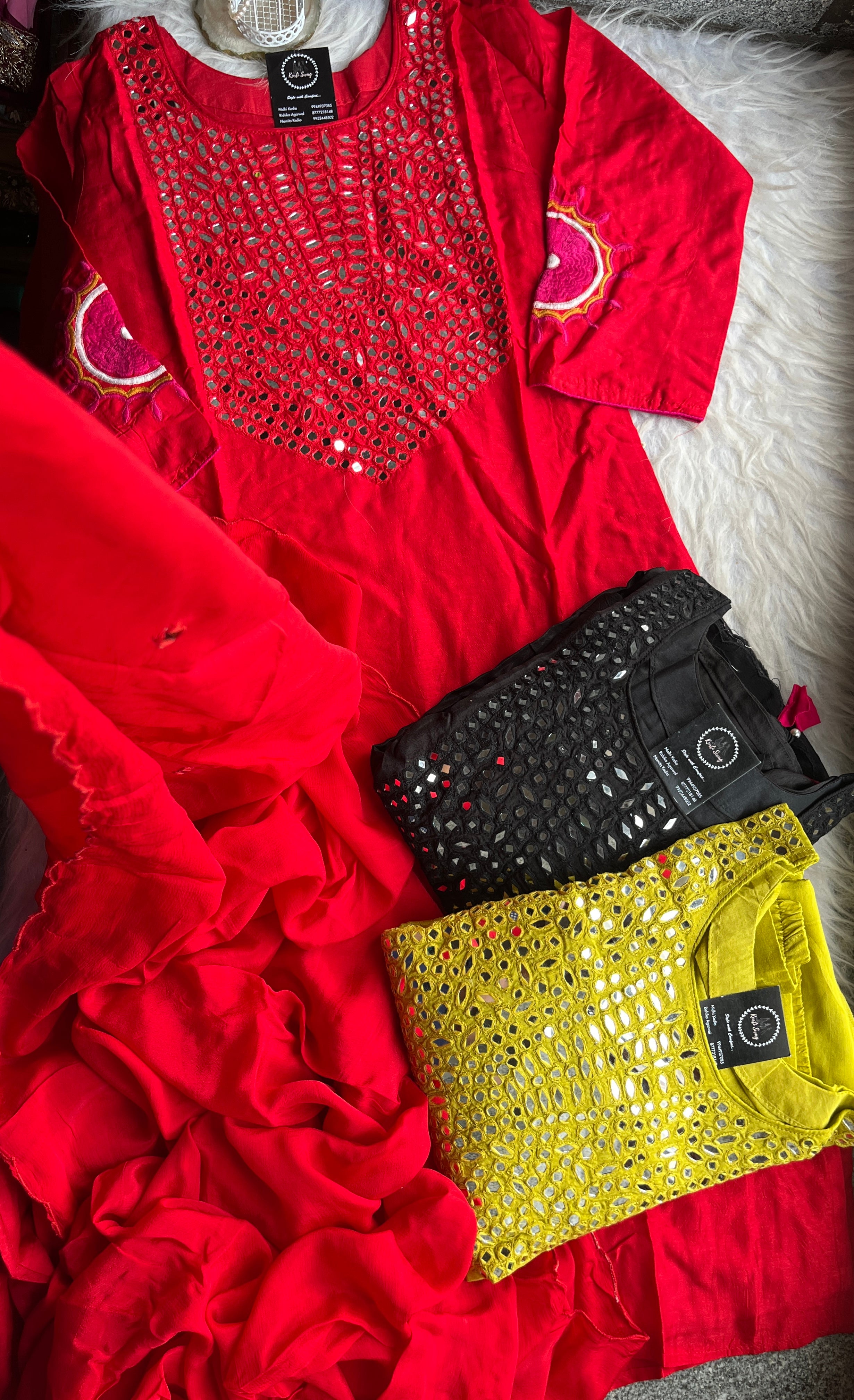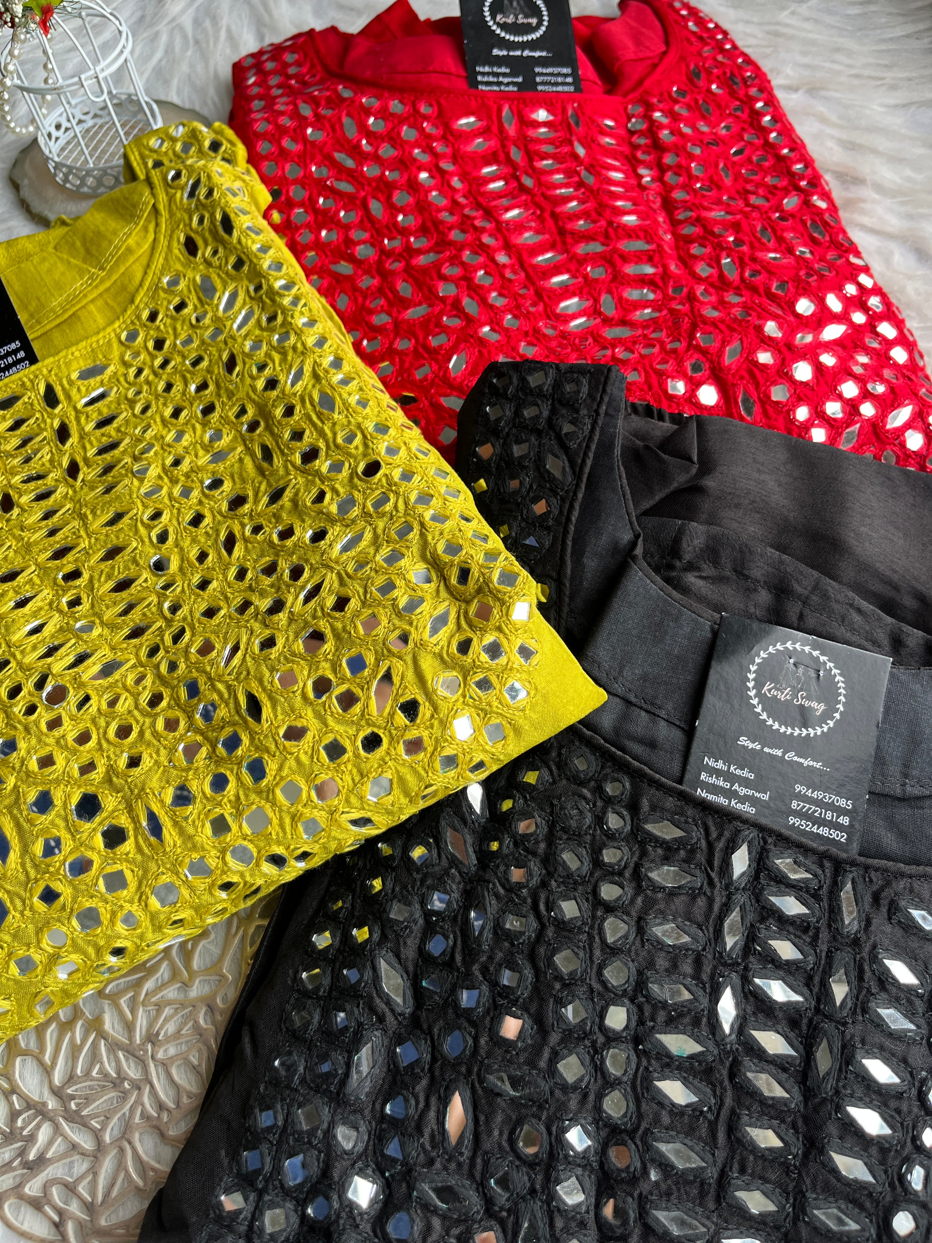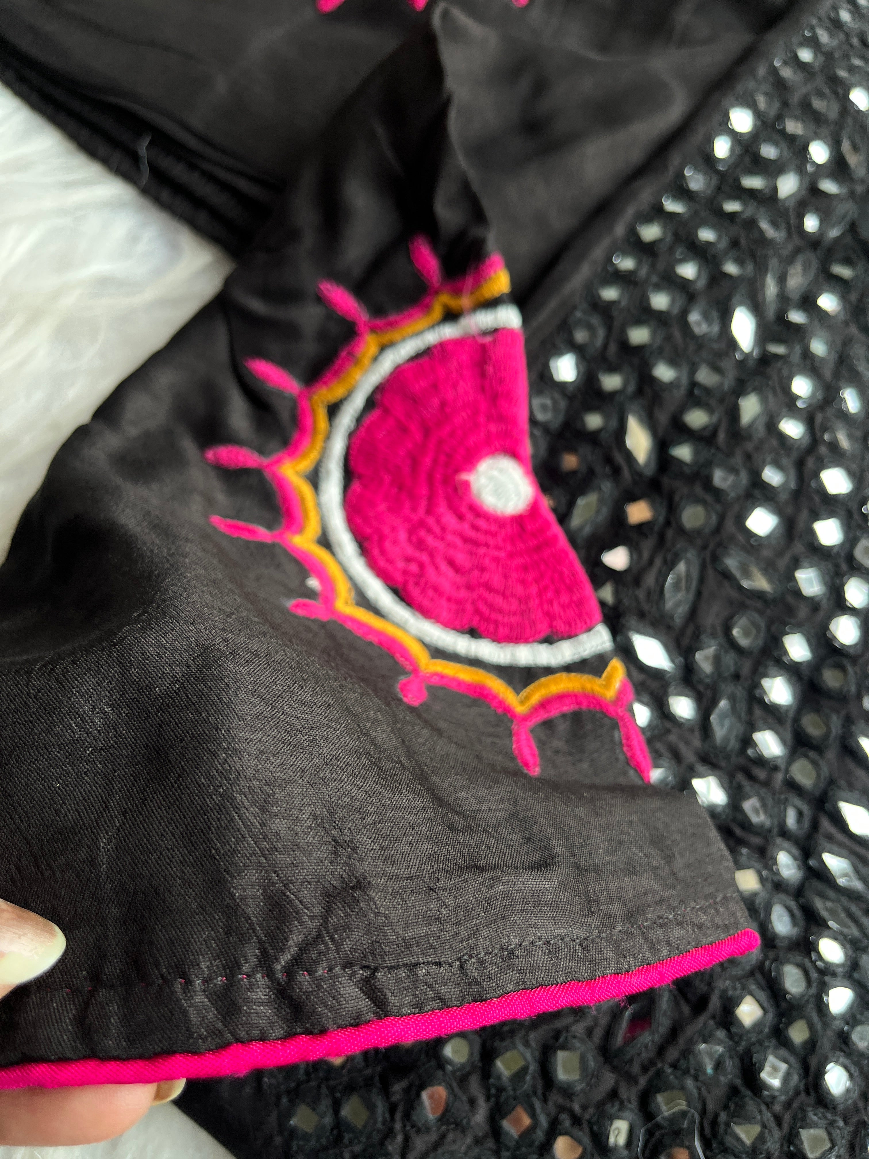 ✅ Dola Silk Kurti With Mirror Hand embroidery On The Neckline Of The Kurti