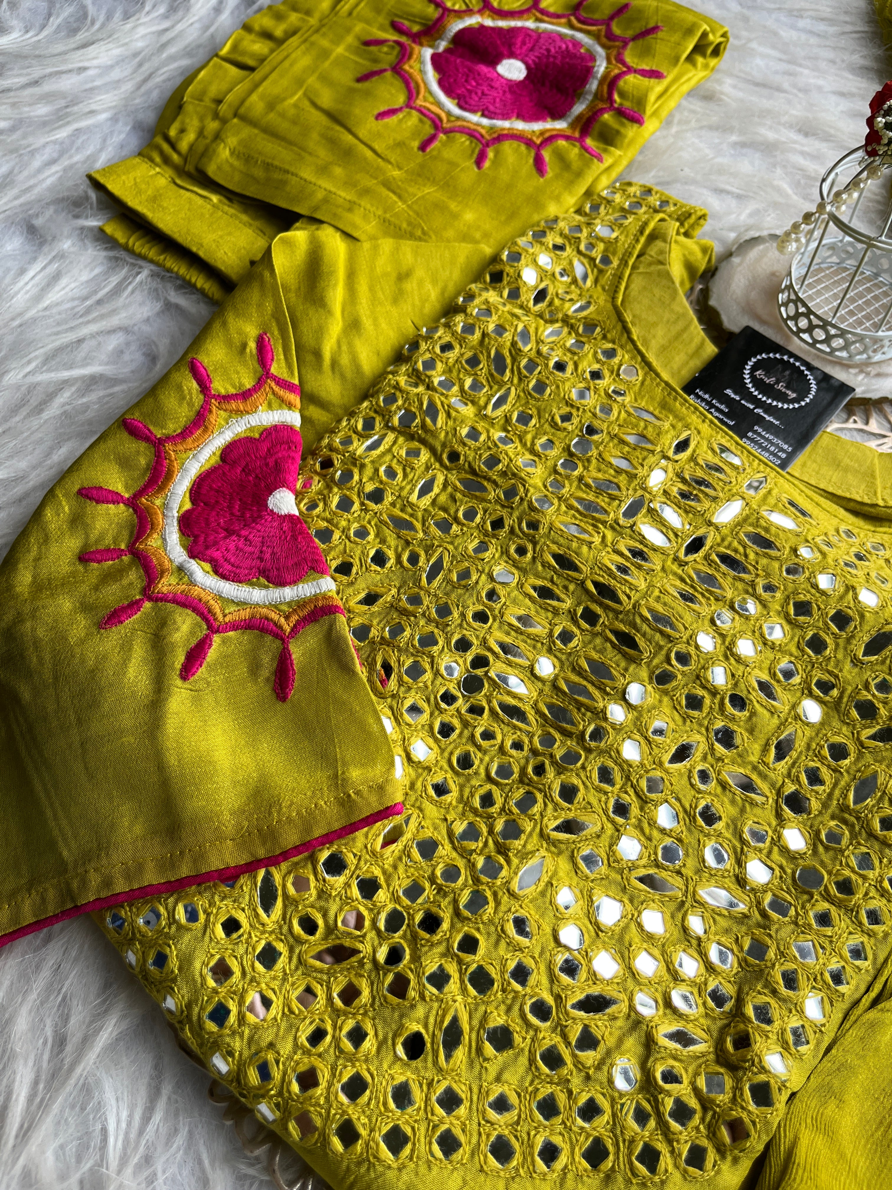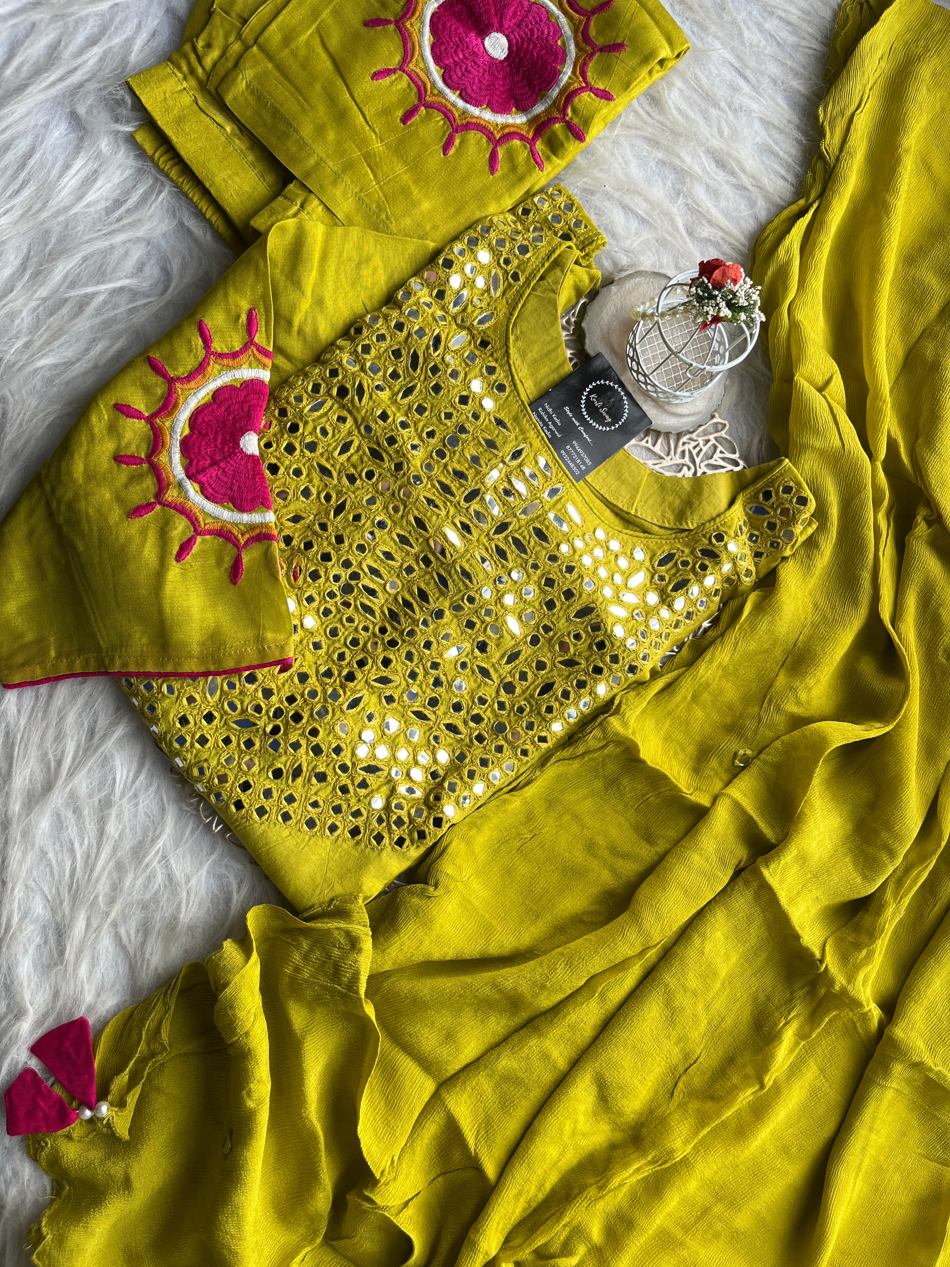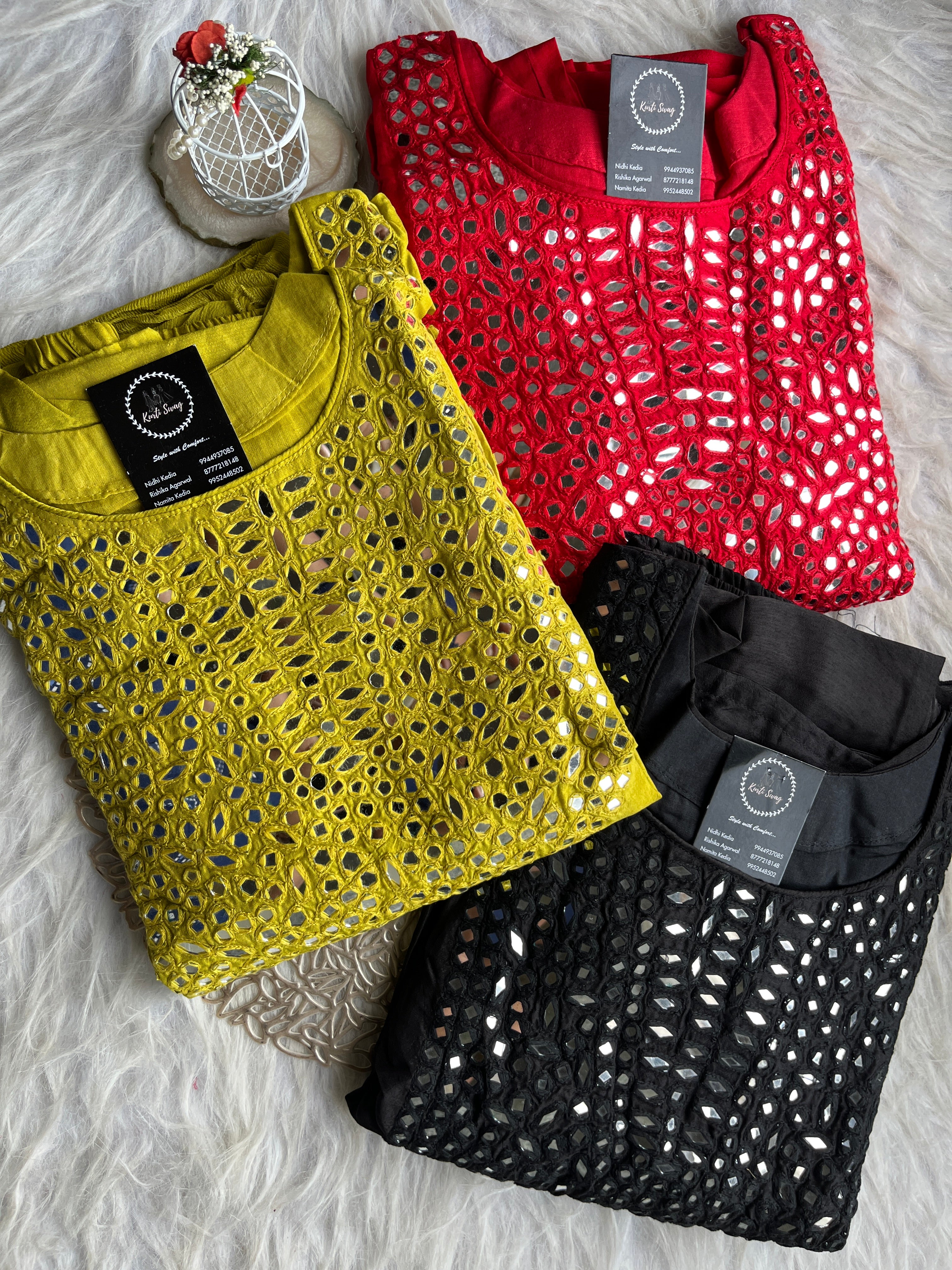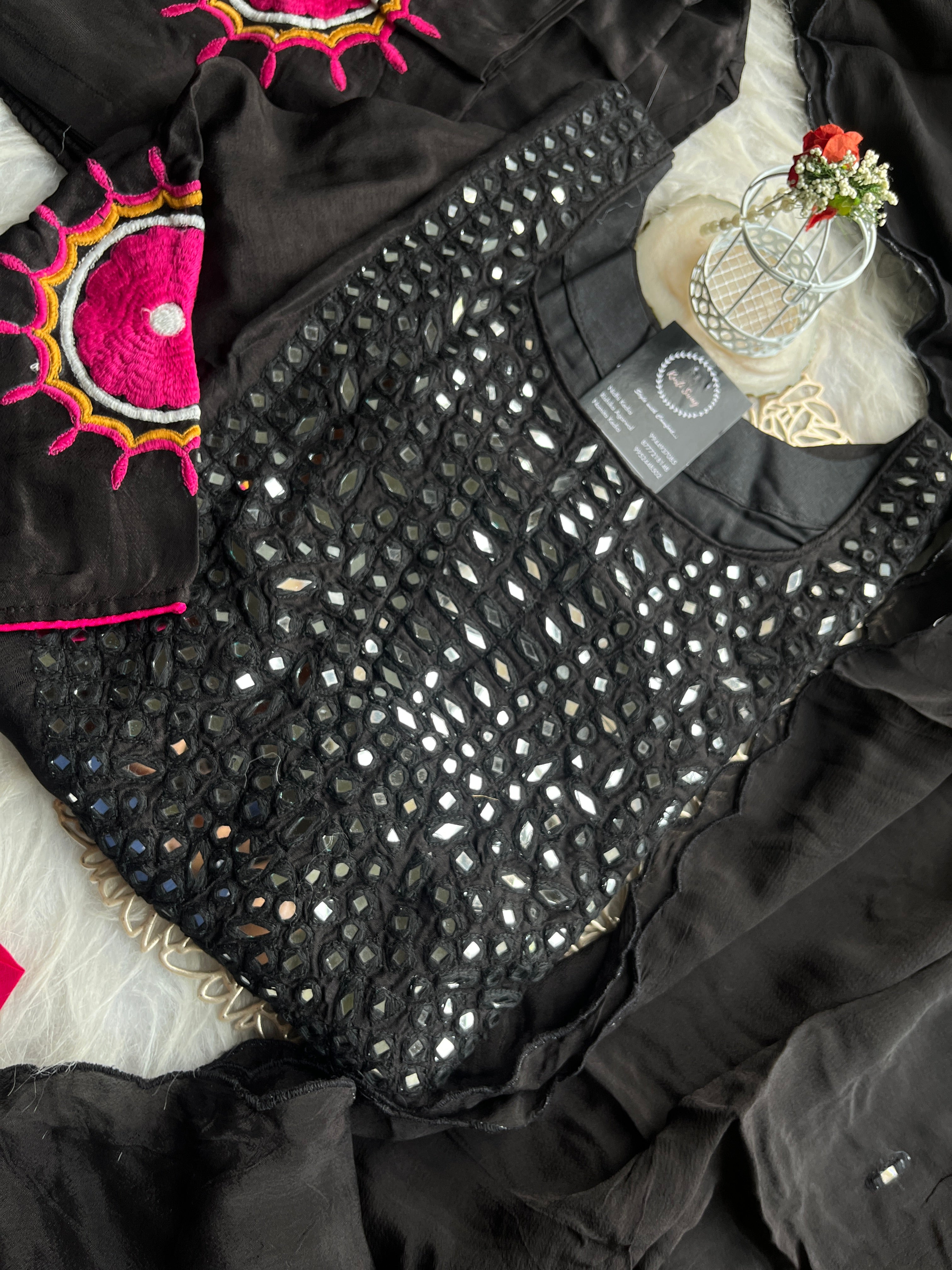 ✅ Dola Silk Kurti With Mirror Hand embroidery On The Neckline Of The Kurti
