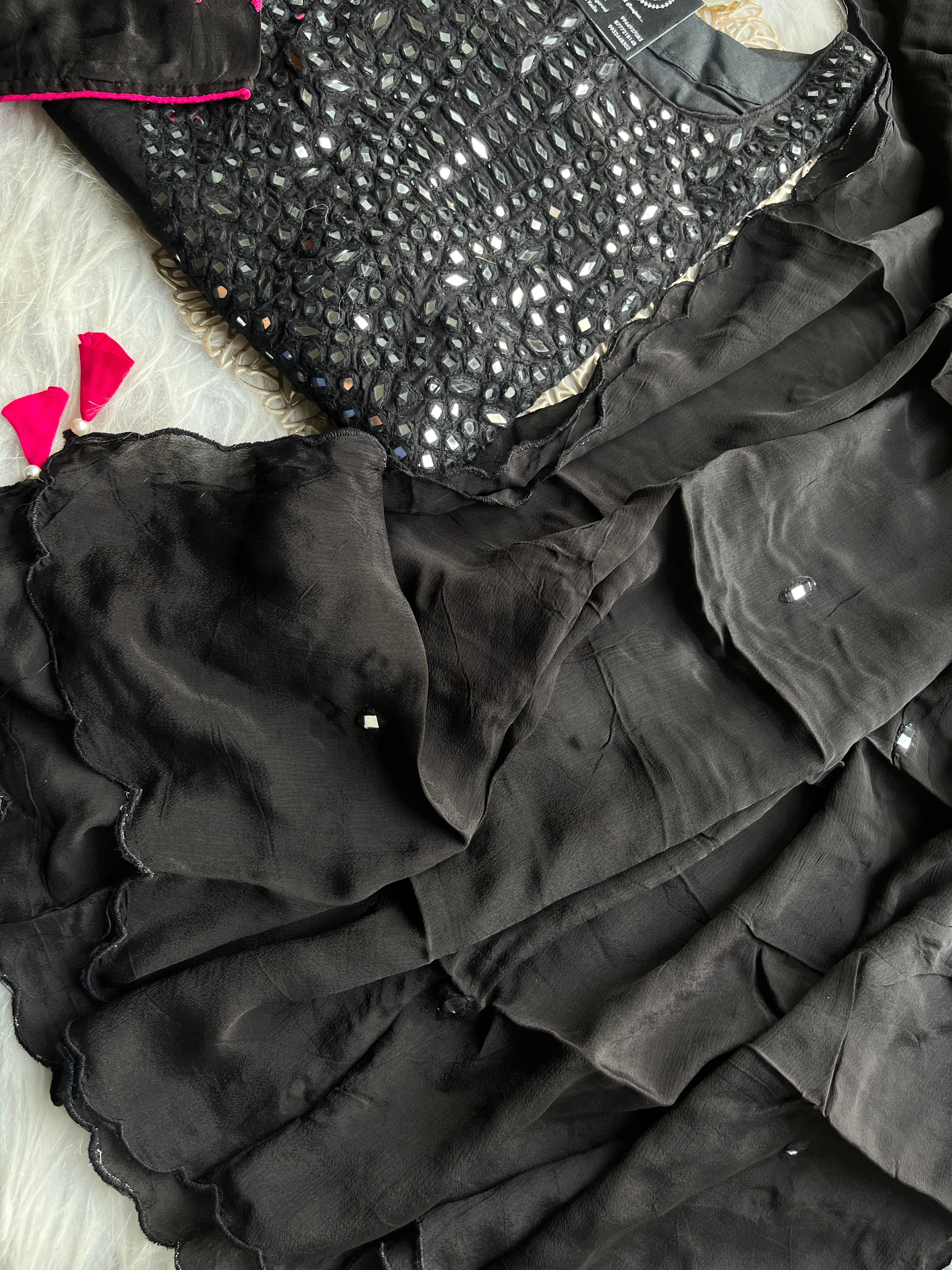 ✅Full Sized Chinnon Dupatta With Mirror Highlights And Fabric Latkans.