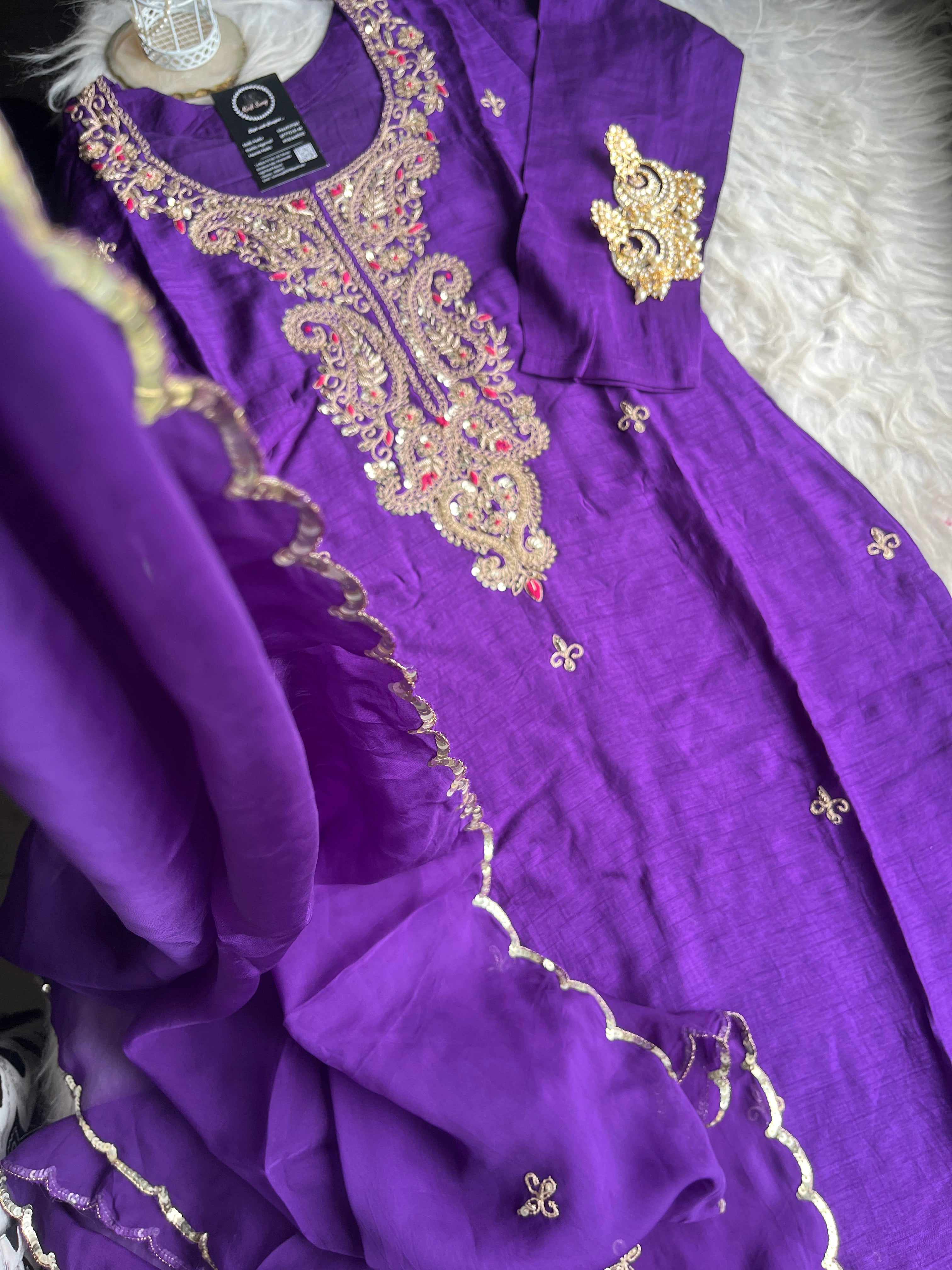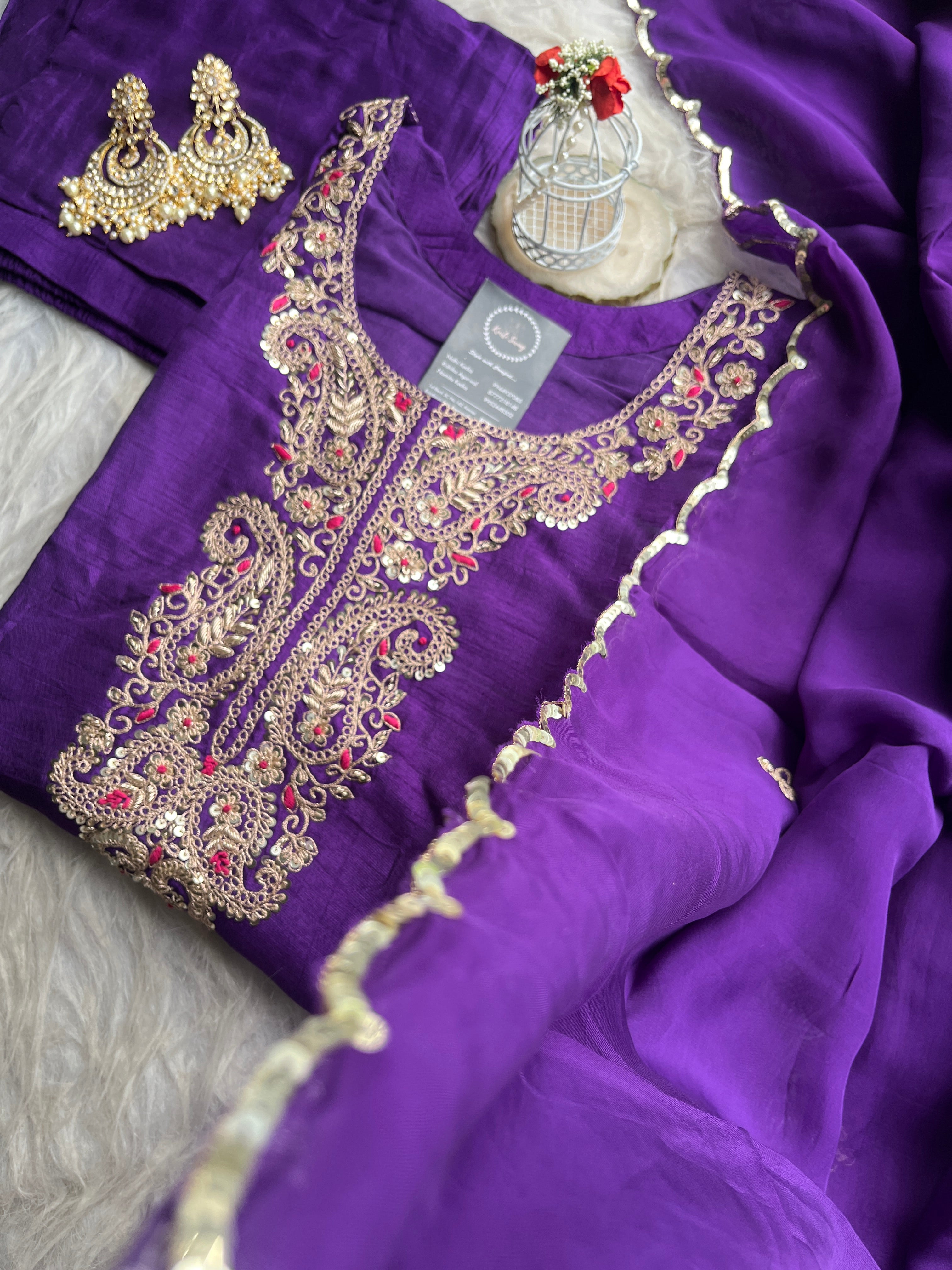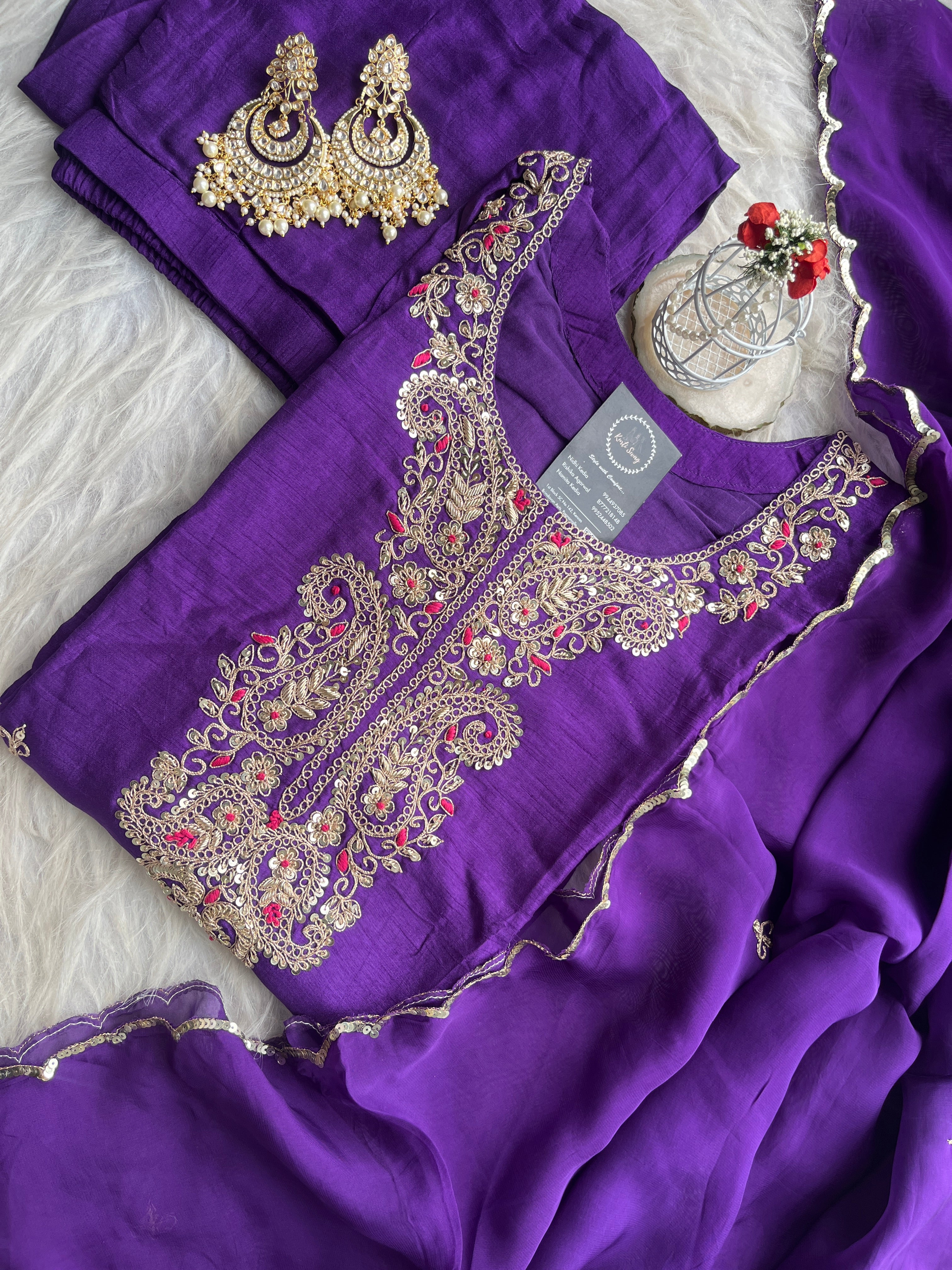 “SITAARA” Dola Silk Festive Suit Set In Purple 💜