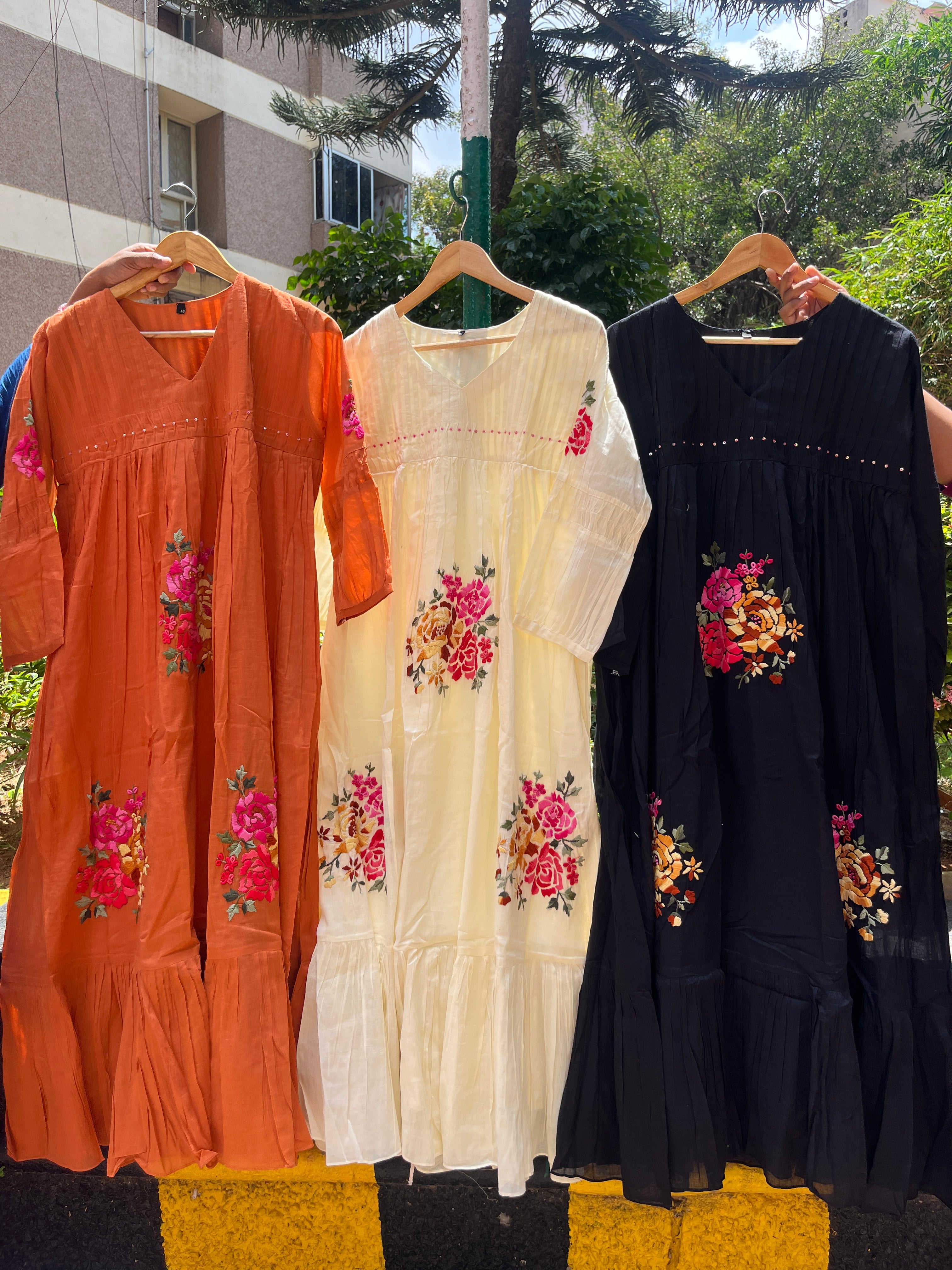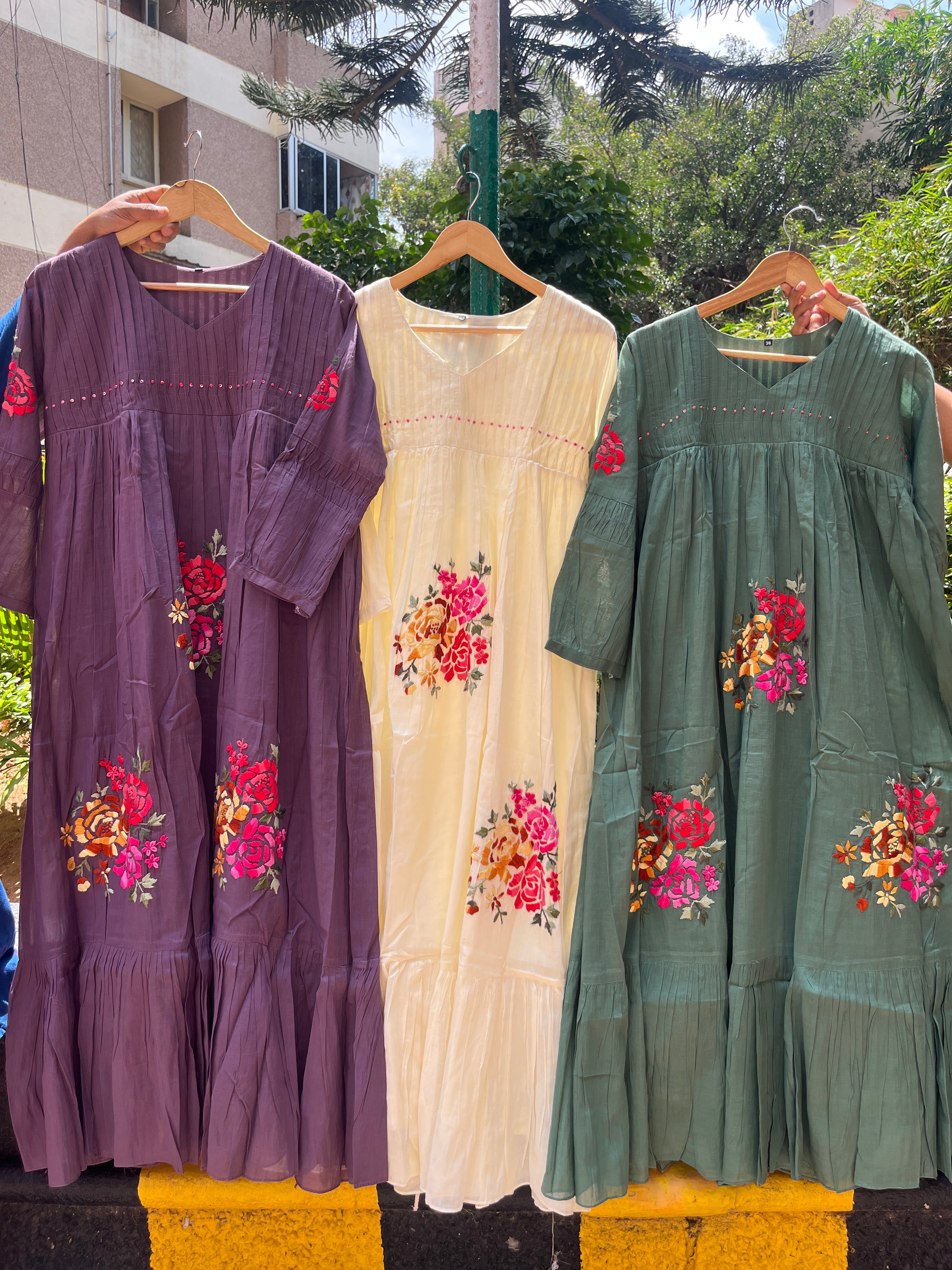 ✅ Premium Mul Cotton Dress In Beautiful Shades With Thread Embroidery