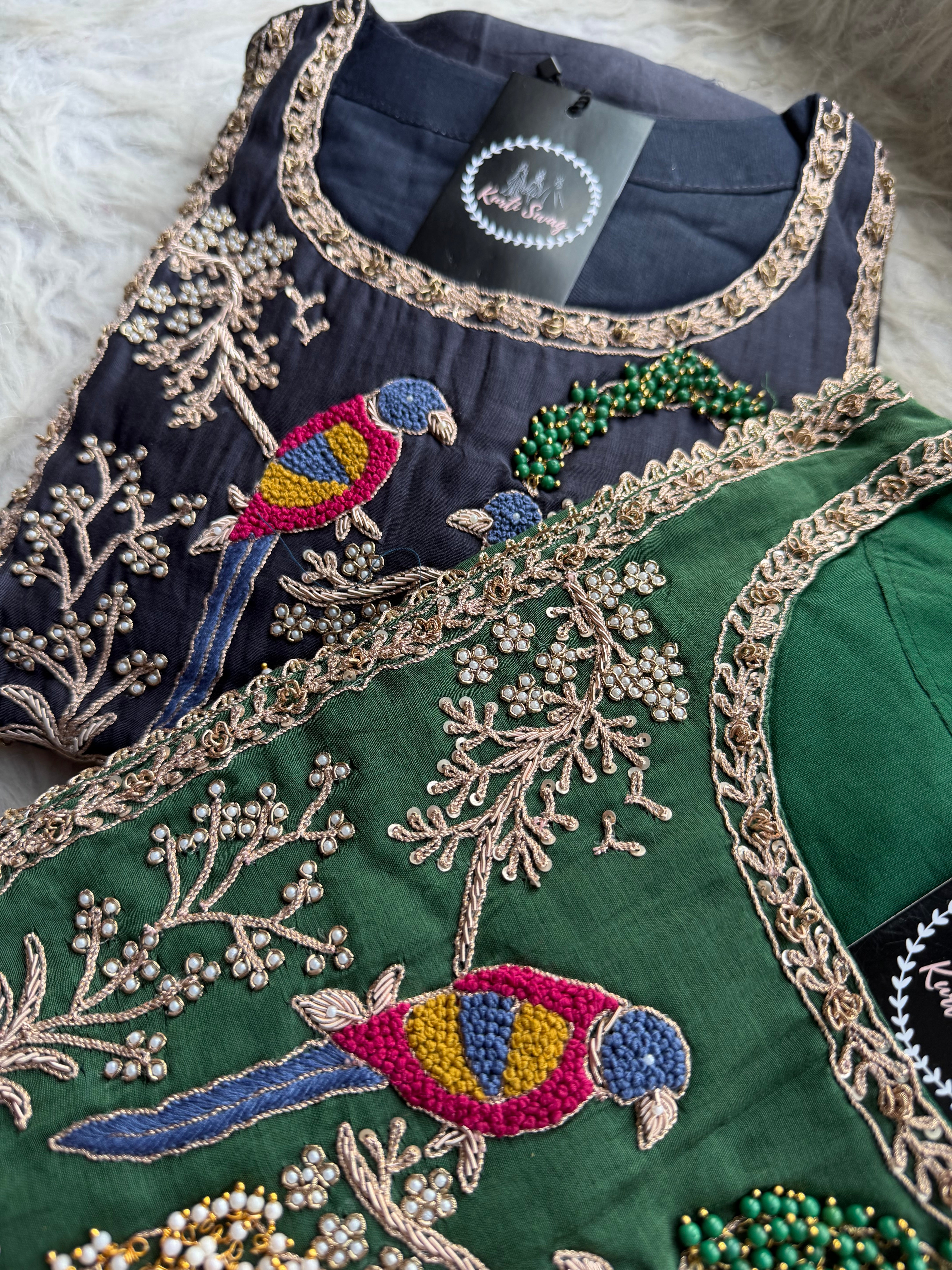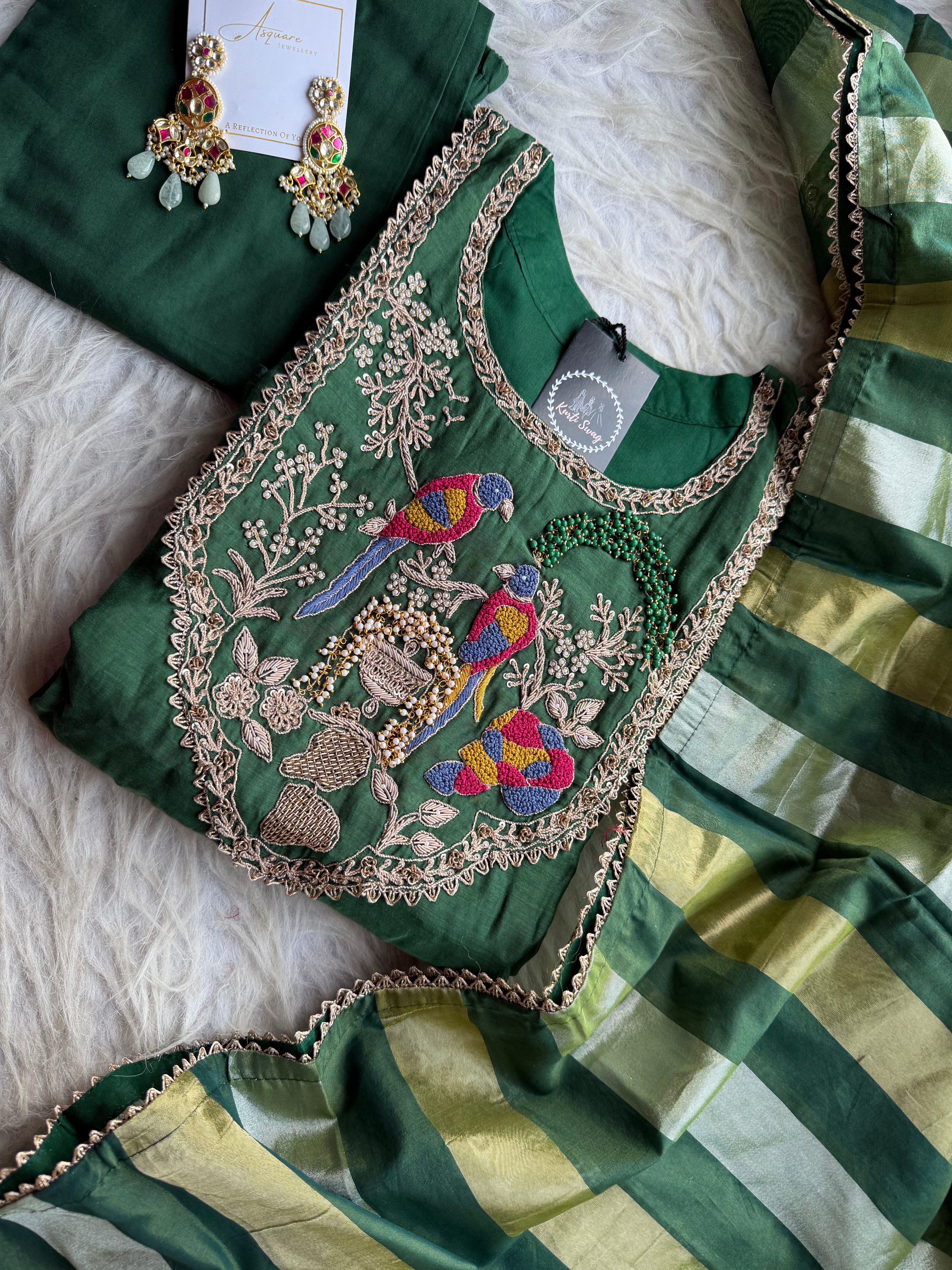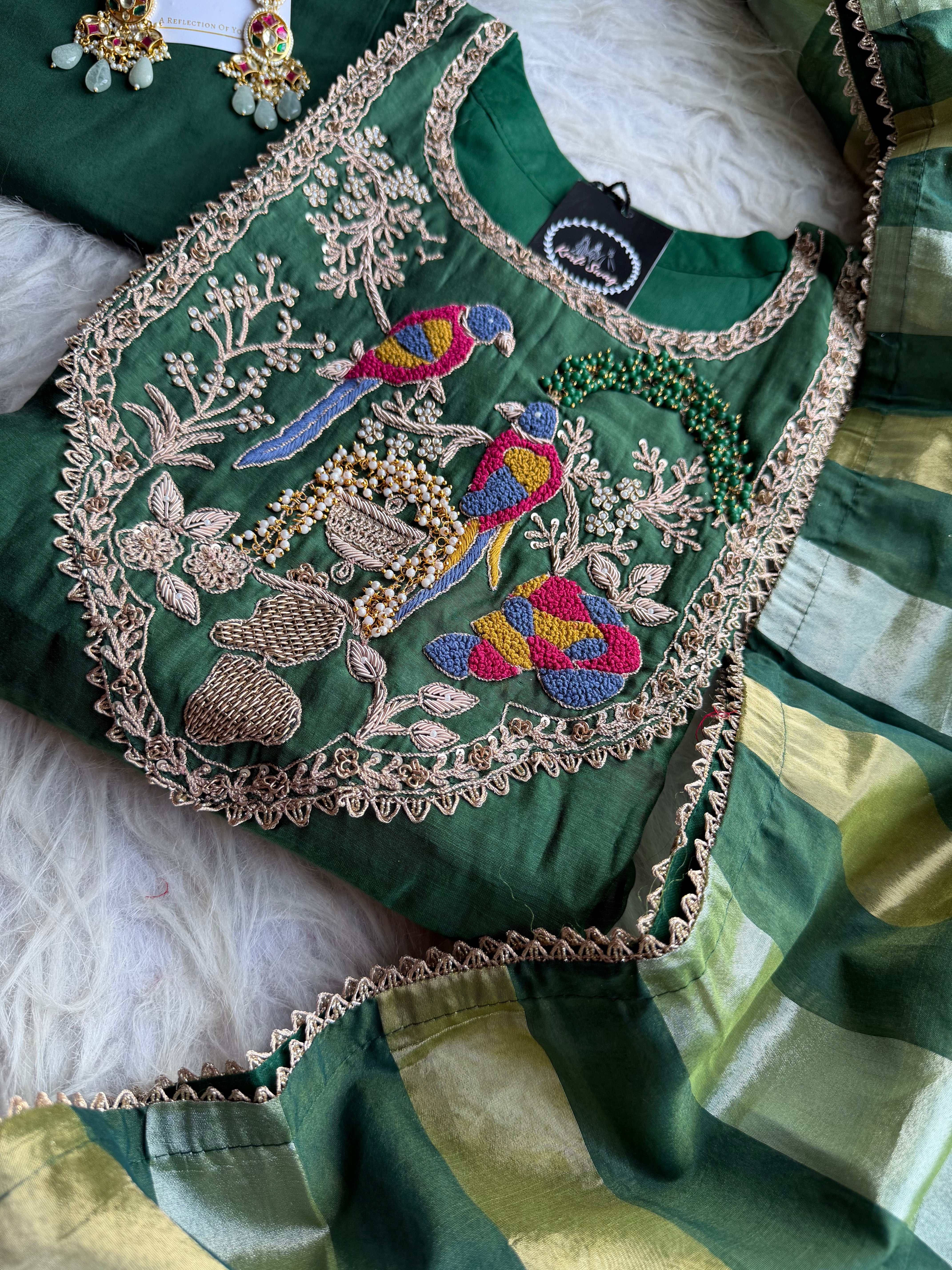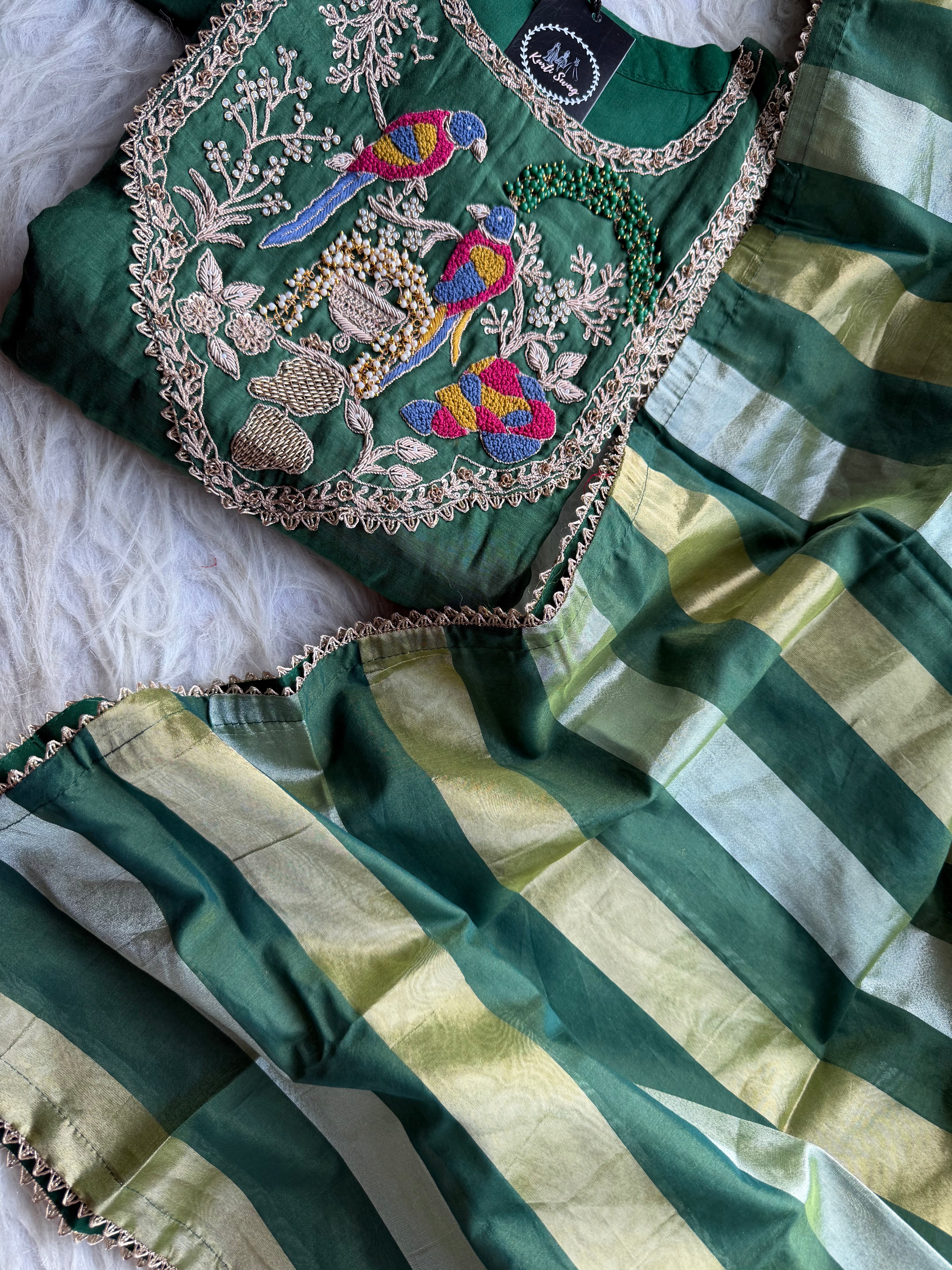 ✅ Premium Mul Chanderi Dress With Zardosi, Dabka Work On The Yoke Of The Kurta