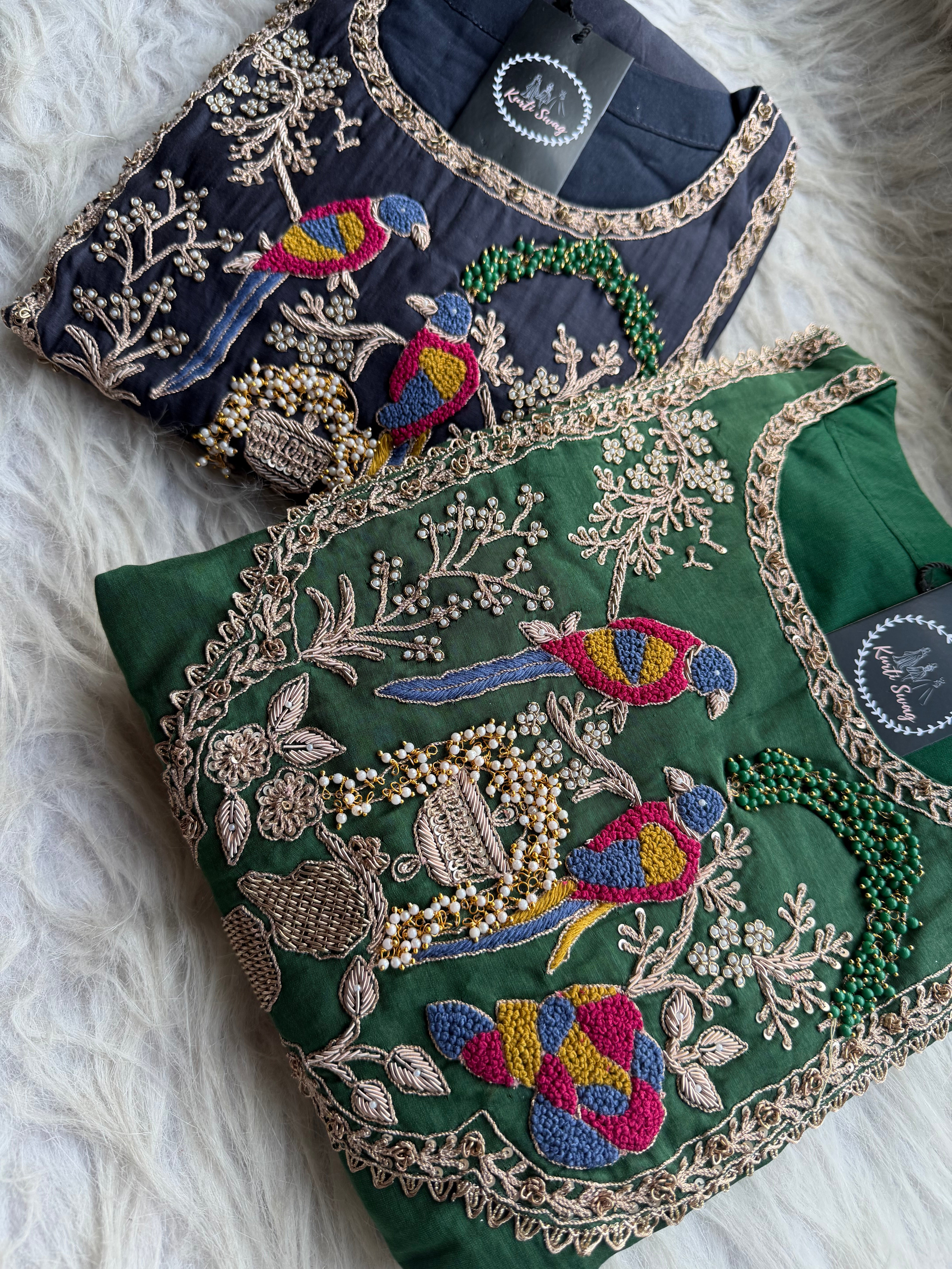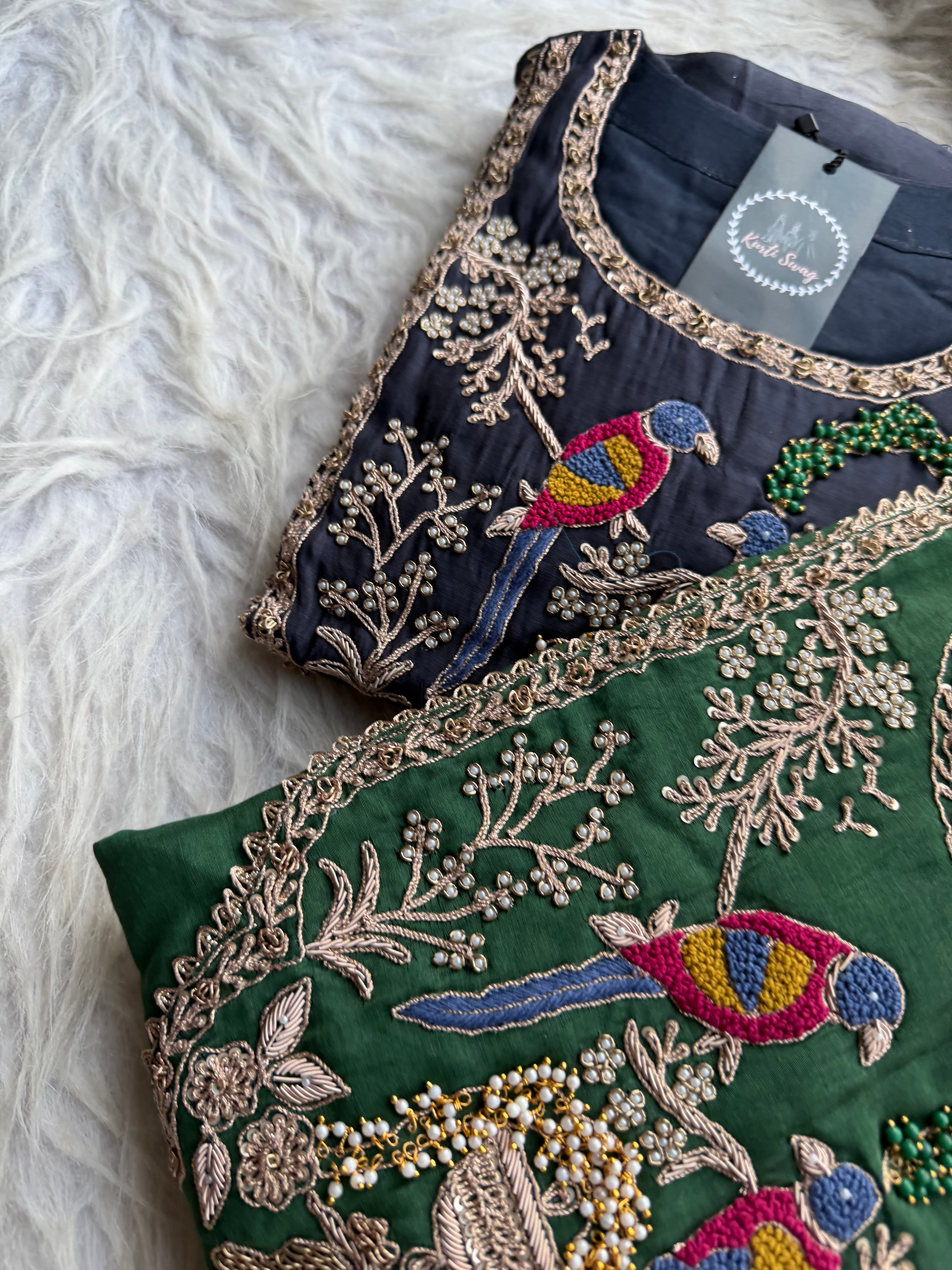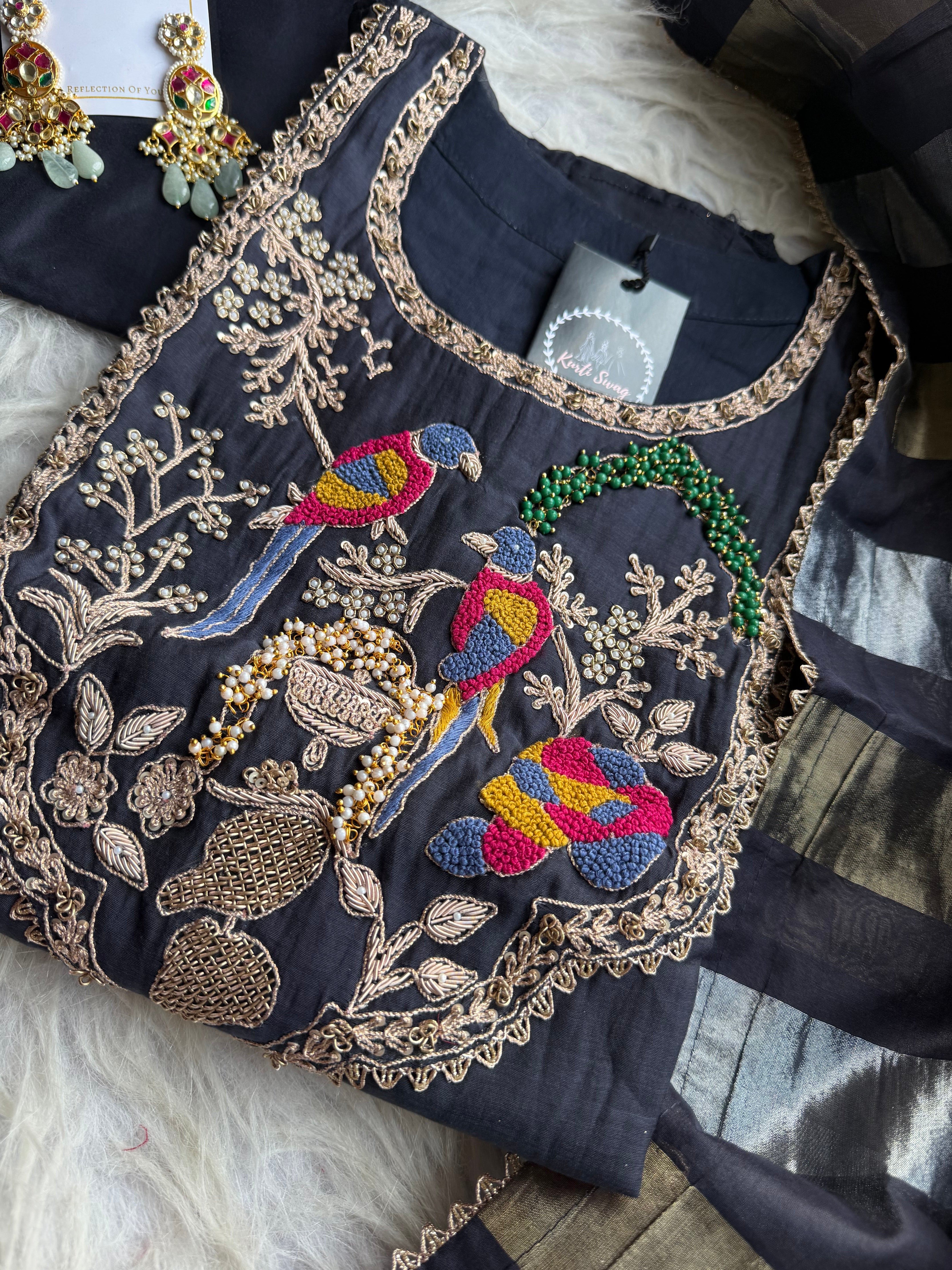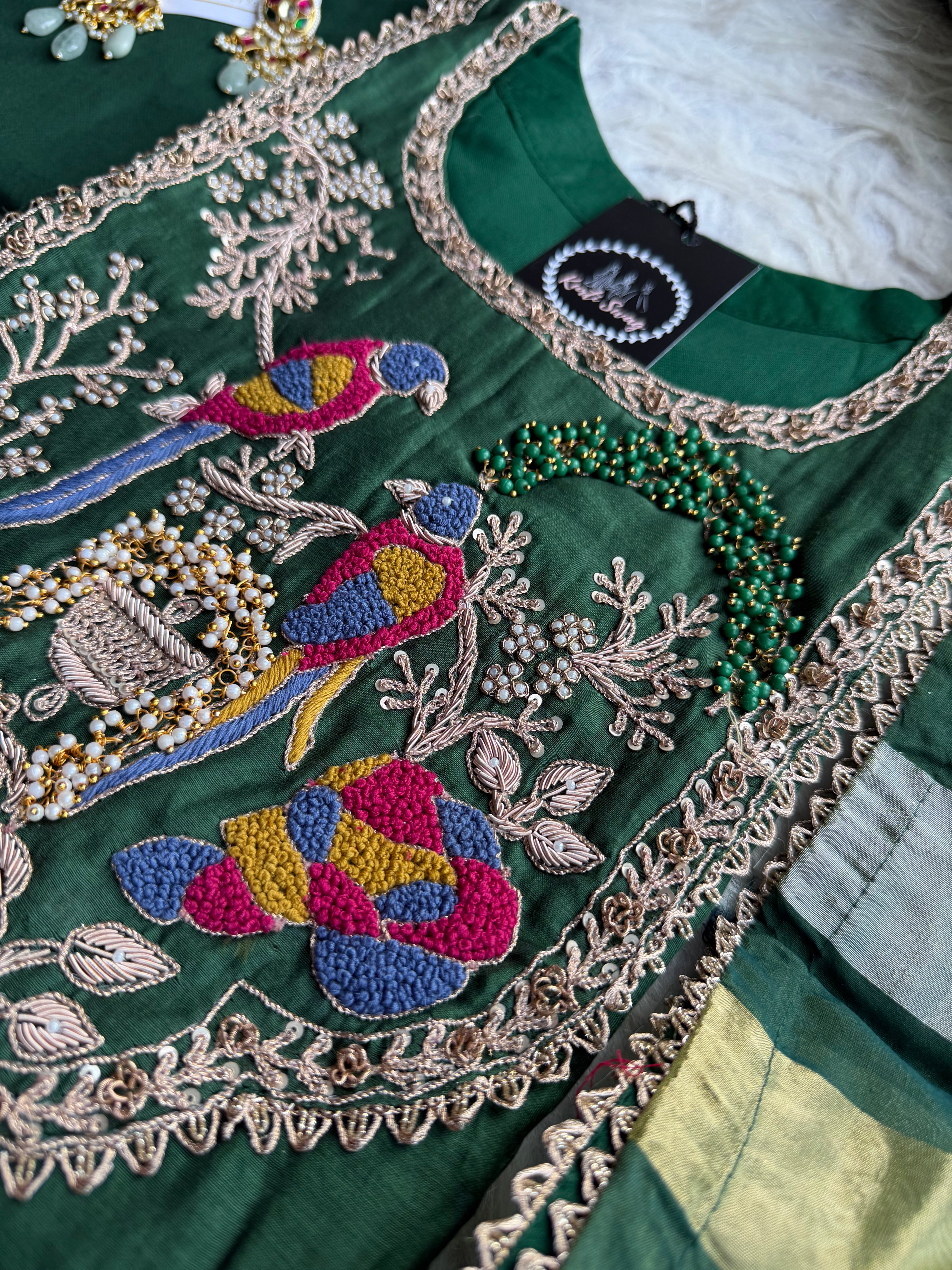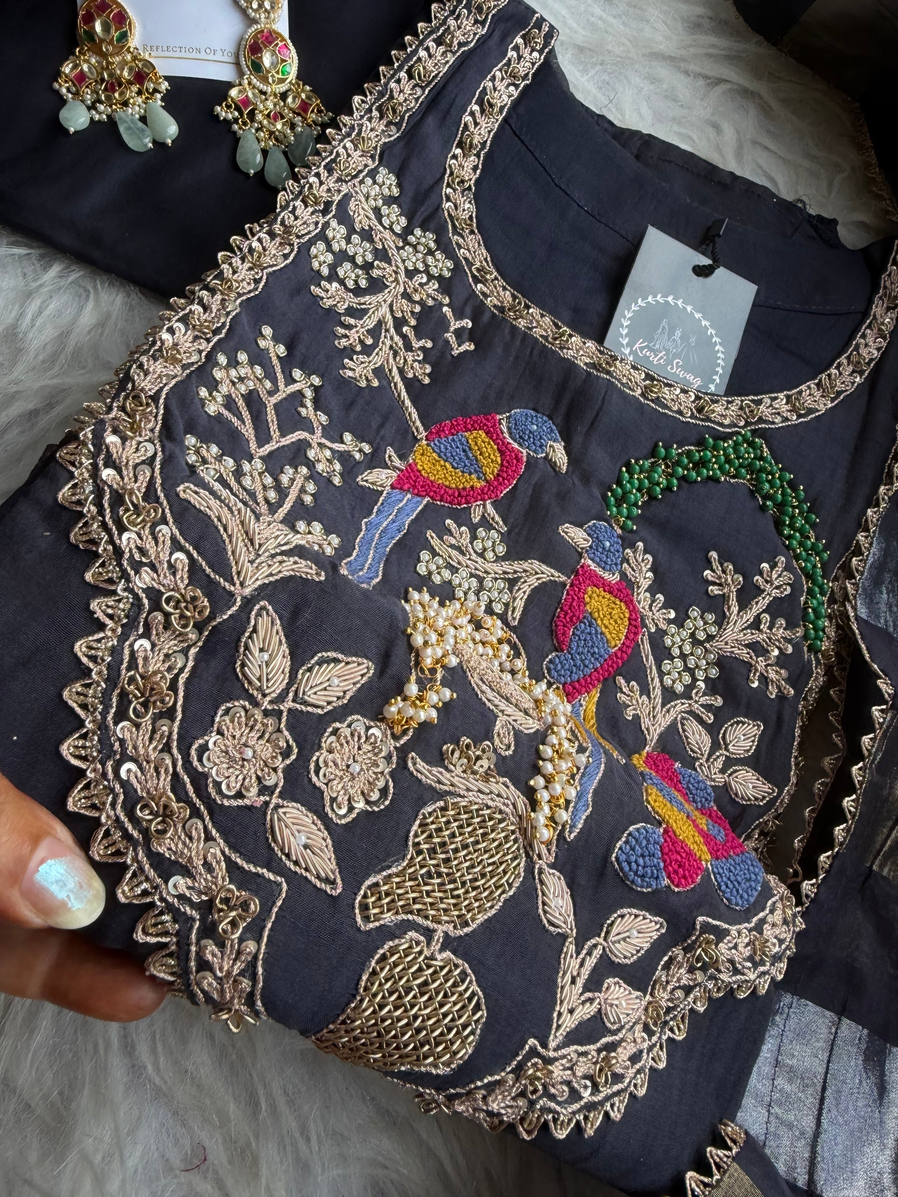 ✅ Premium Mul Chanderi Dress With Zardosi, Dabka Work On The Yoke Of The Kurta