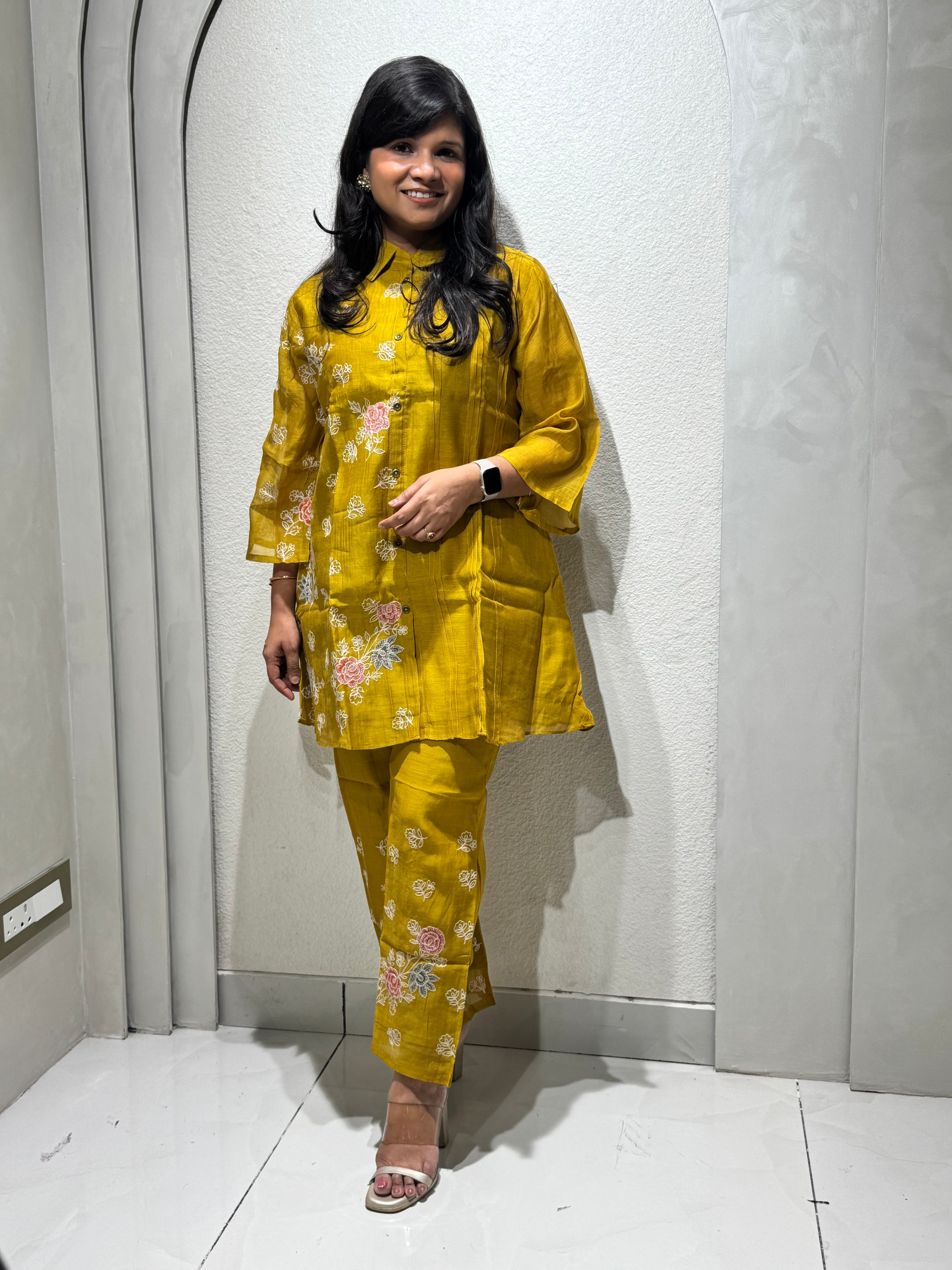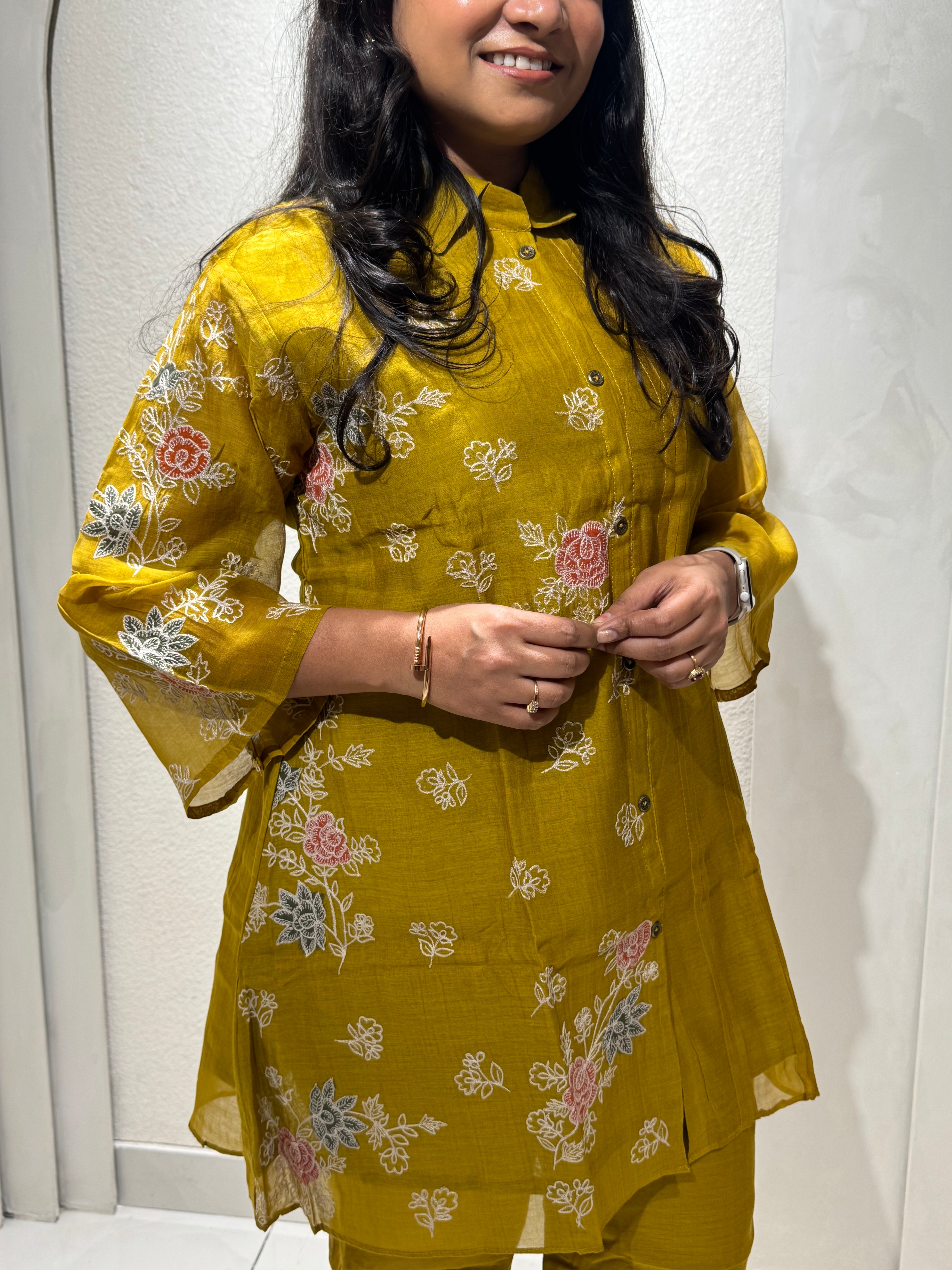 ✅ Mul Chanderi Coord Set with Thread Handwork On The Top .
