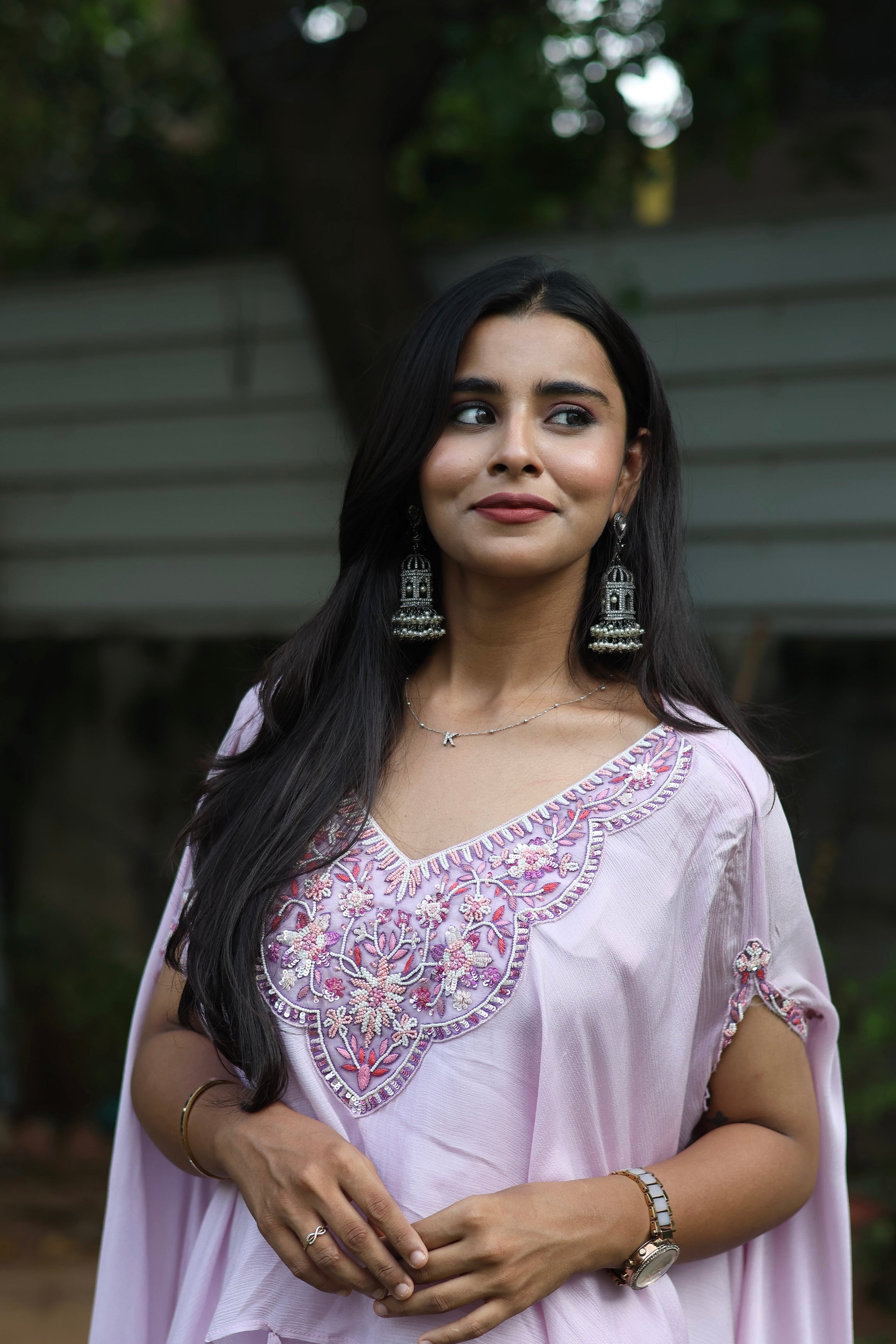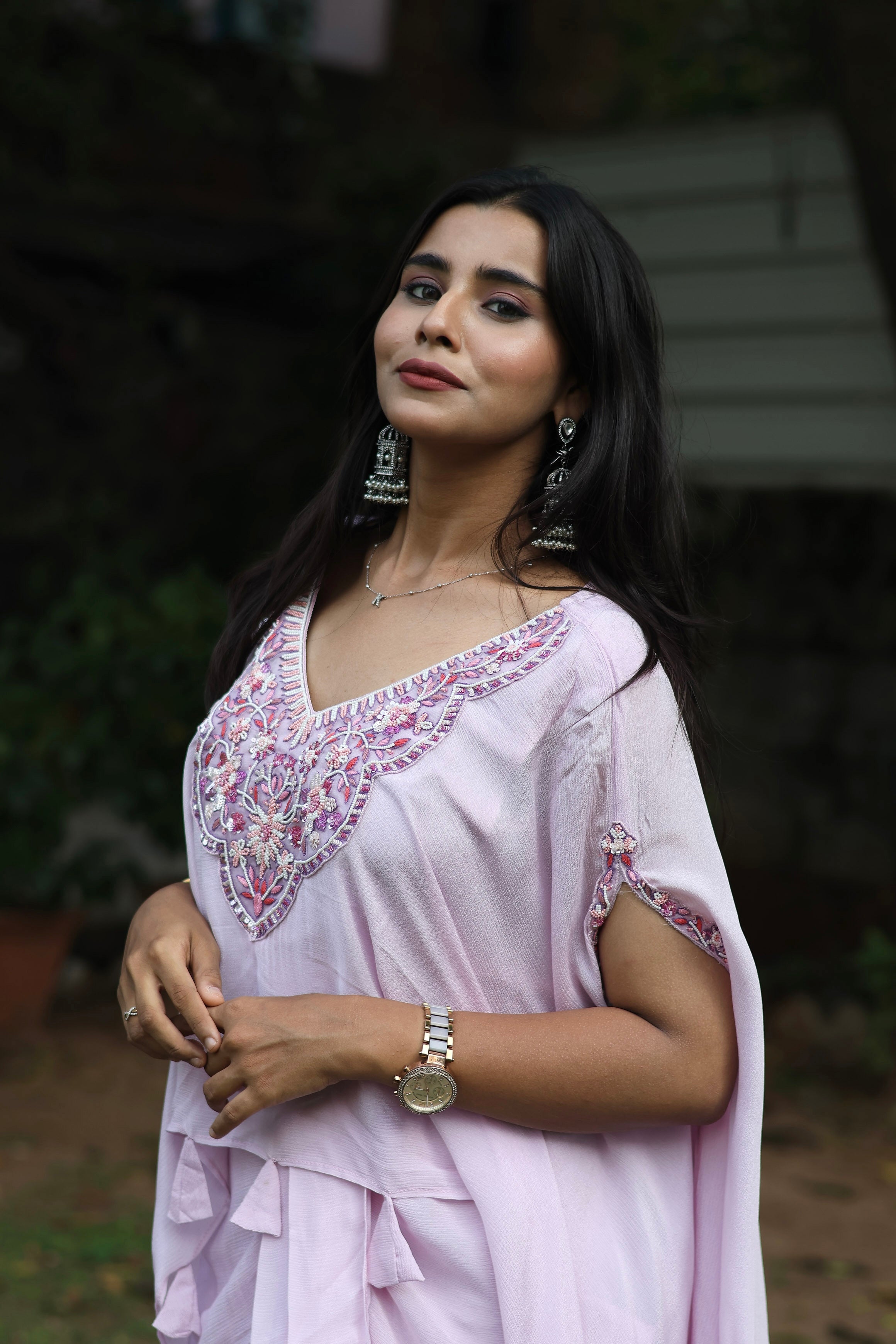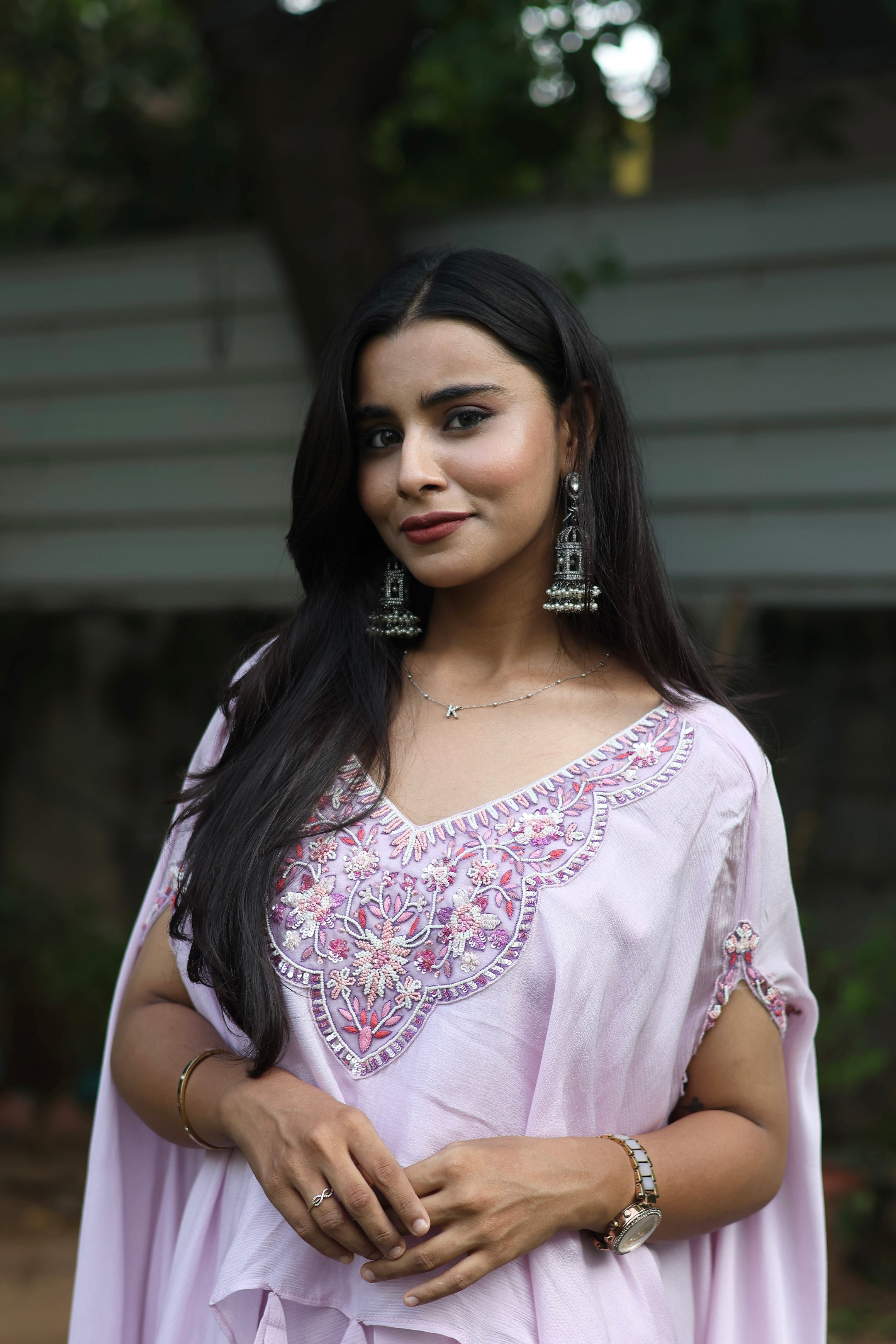 ✅ Chinnon Silk Top With Intricatate Beads, Thread & Sequence Handwork On The Yoke