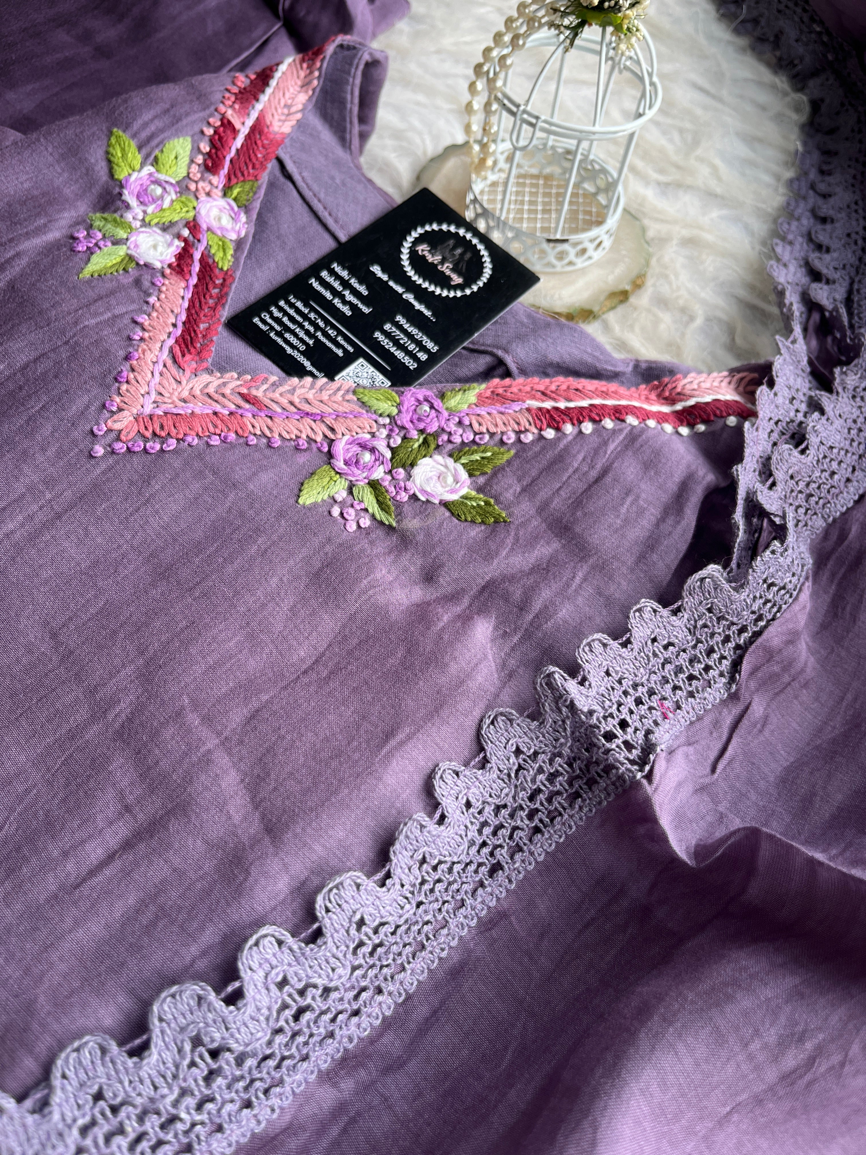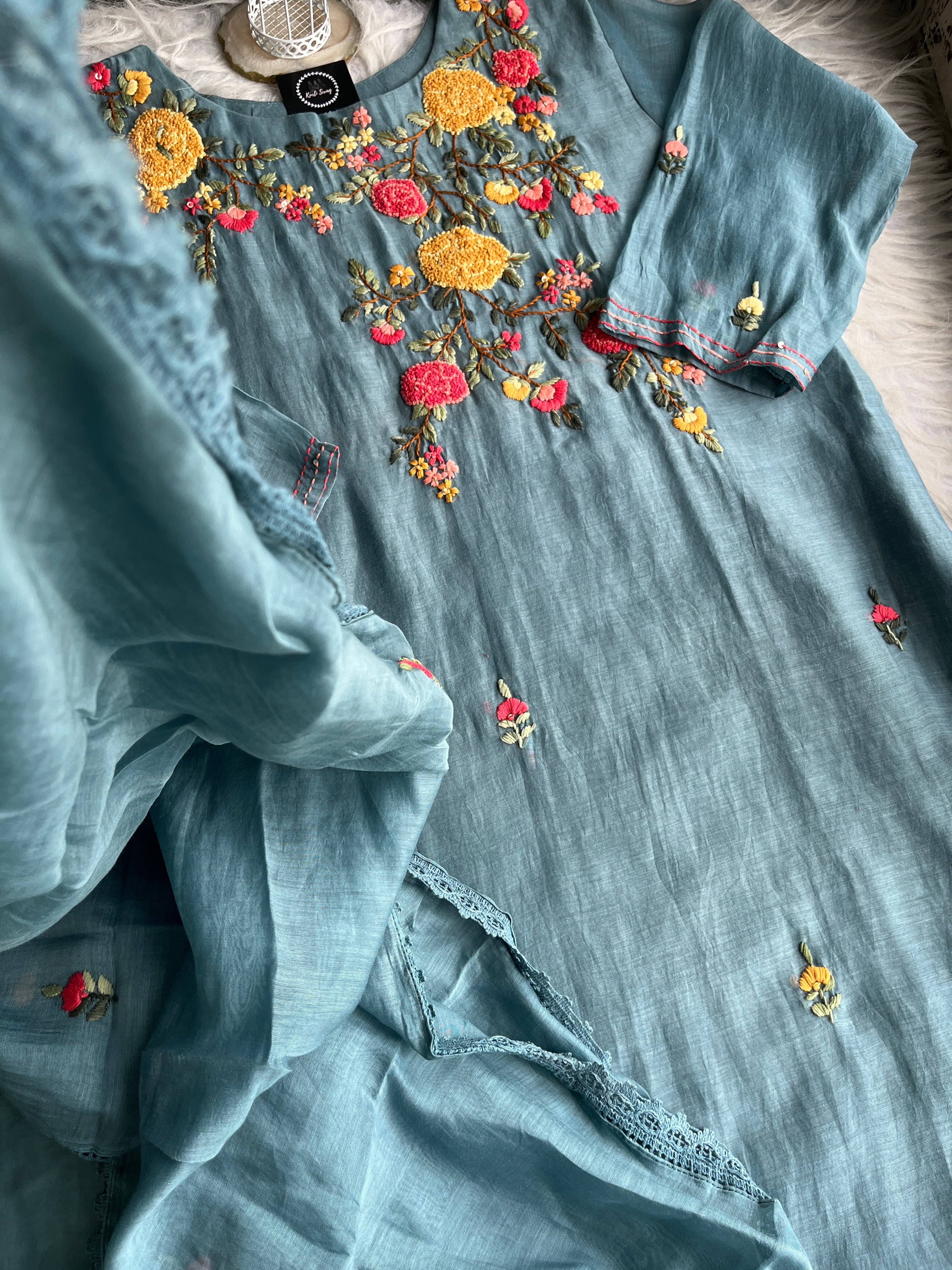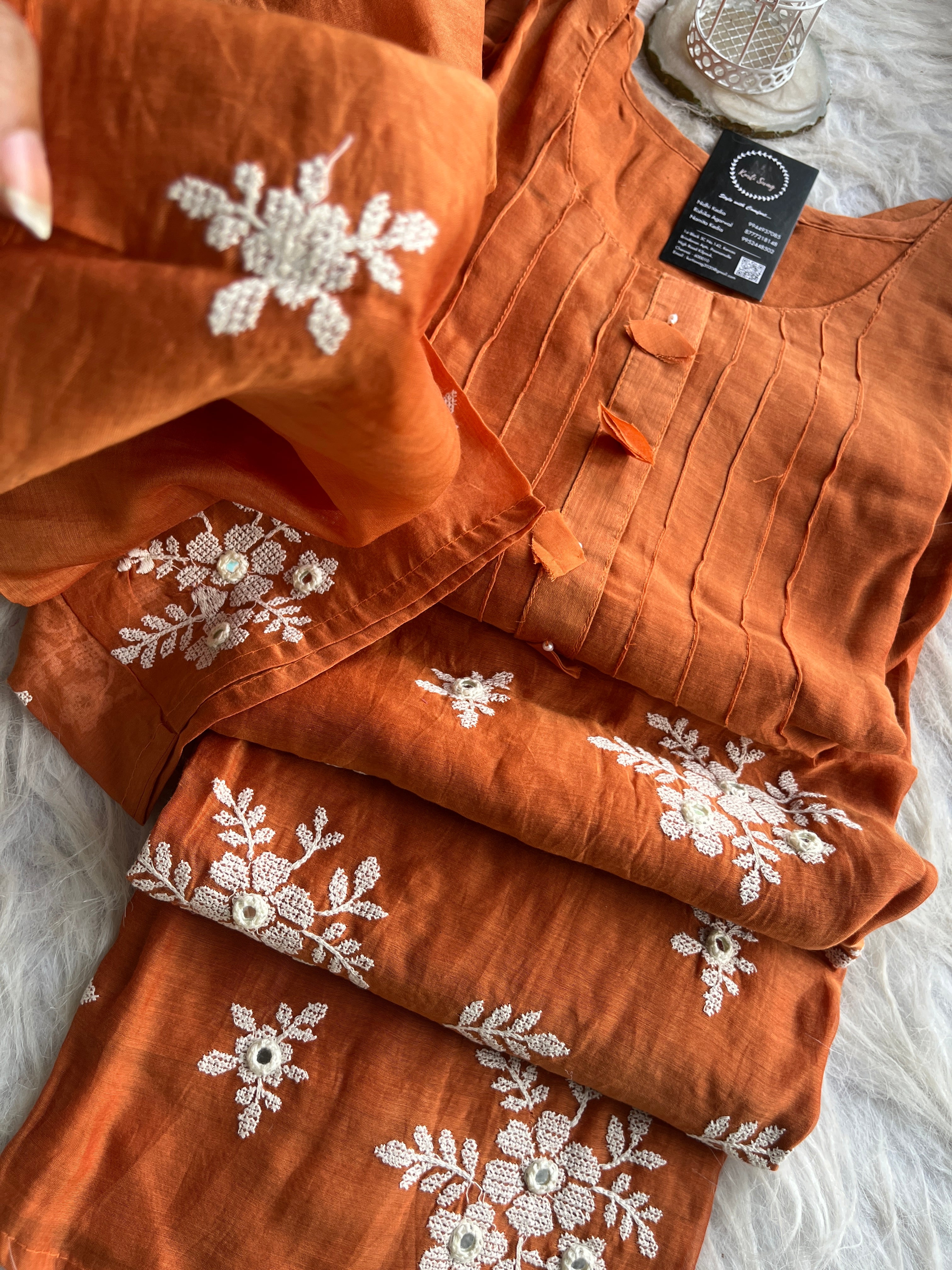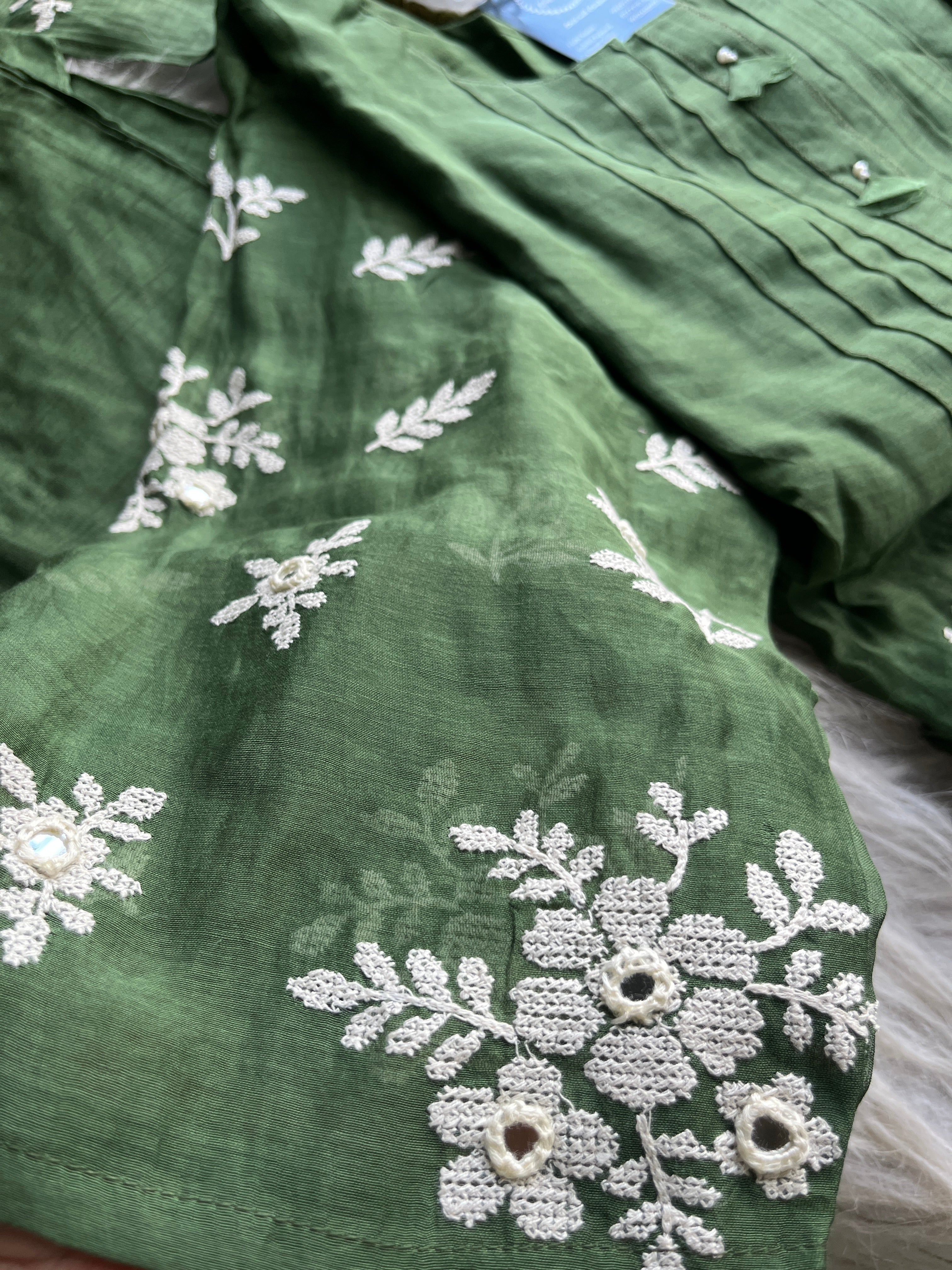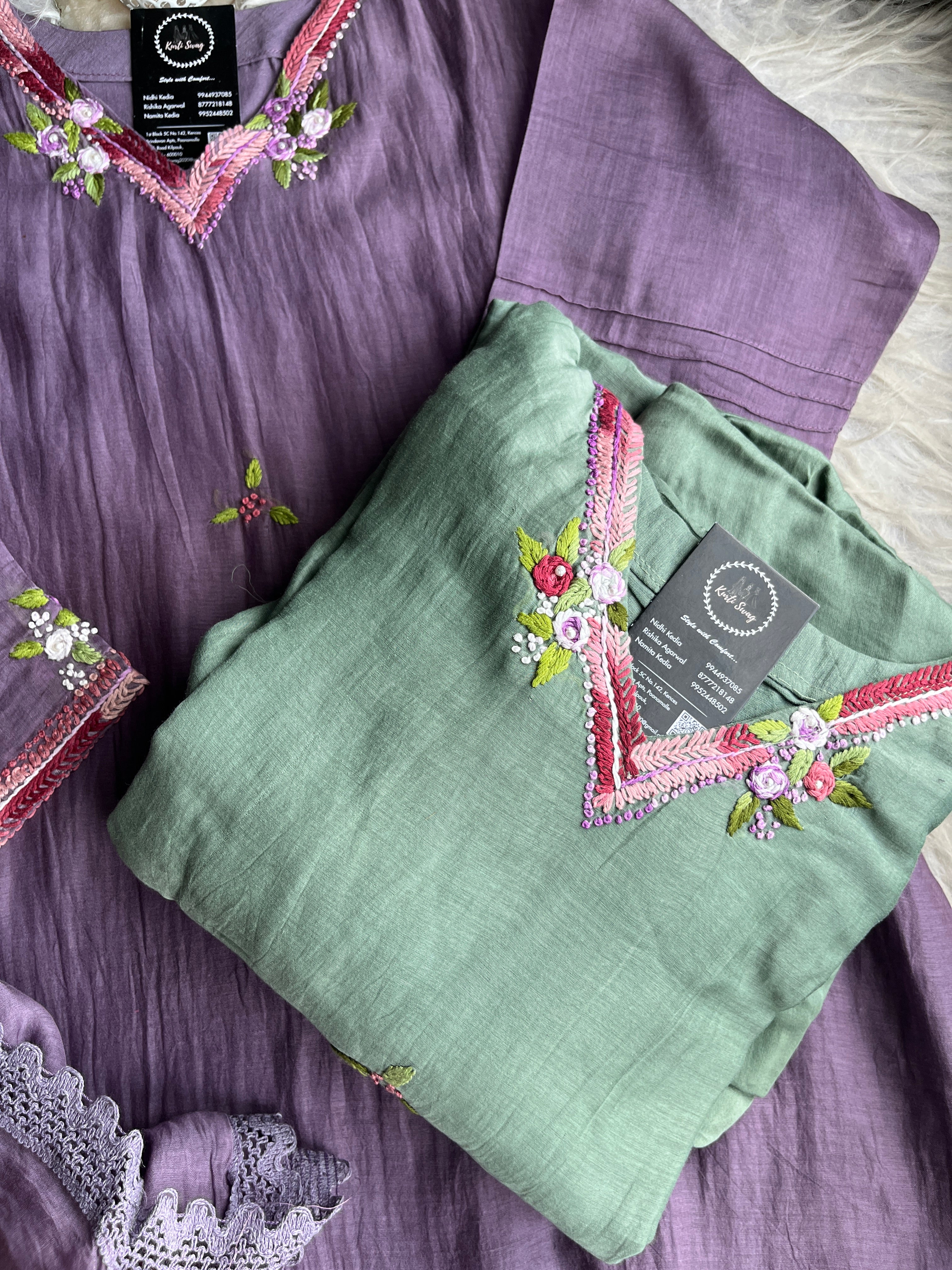 ✅ Premium Mul Chanderi Kurti With Handwork On The Yoke Of The Kurti
