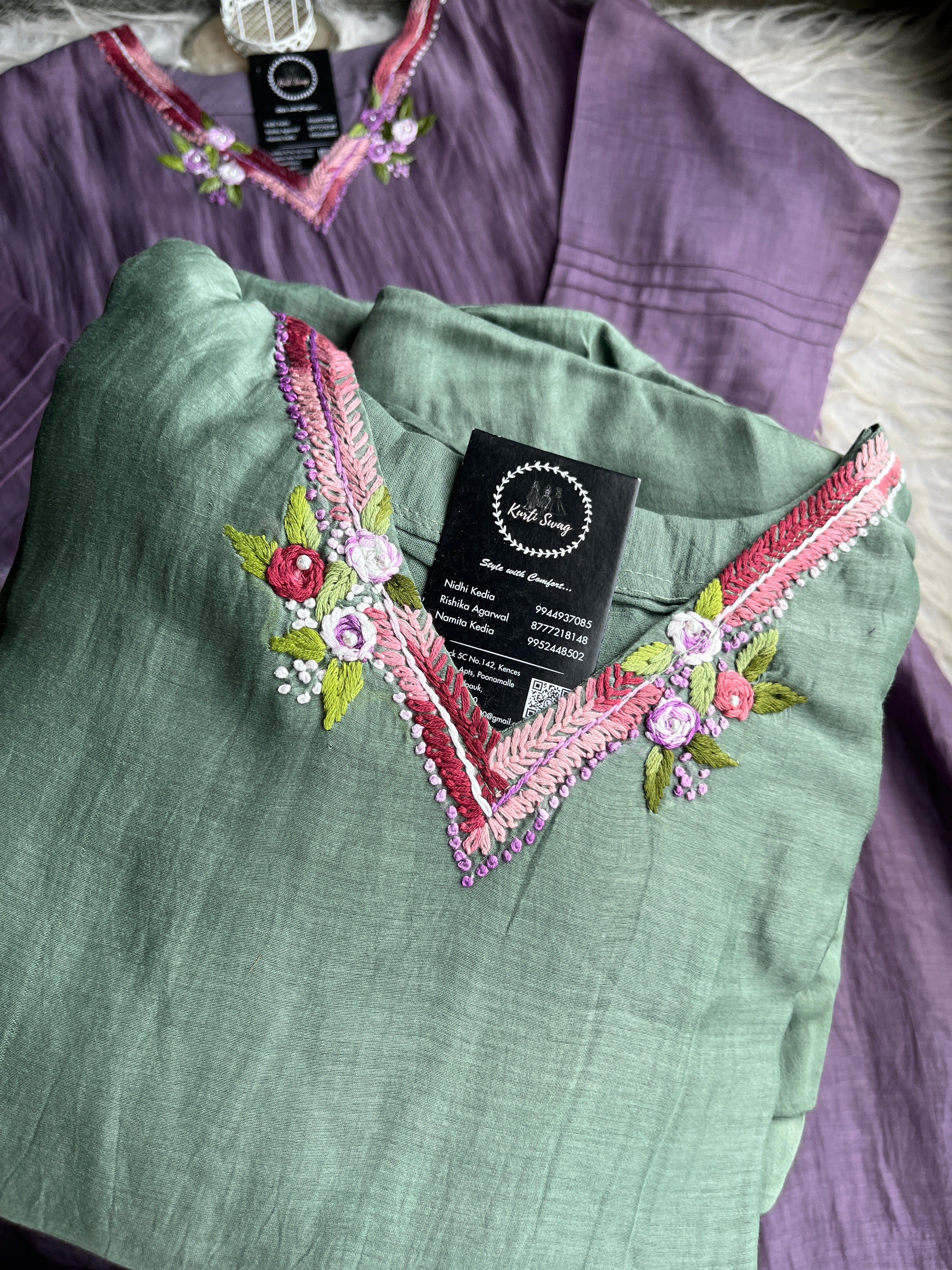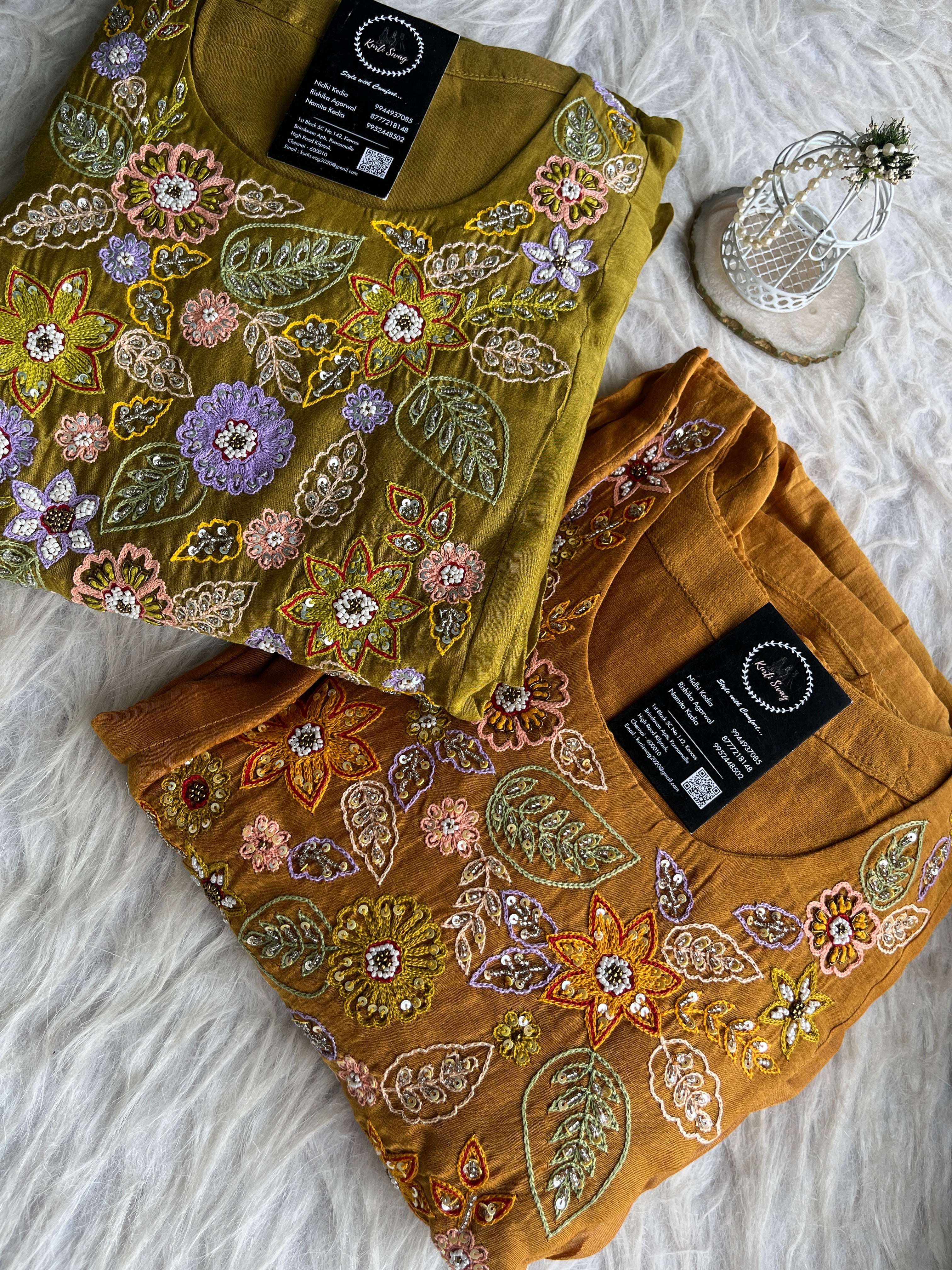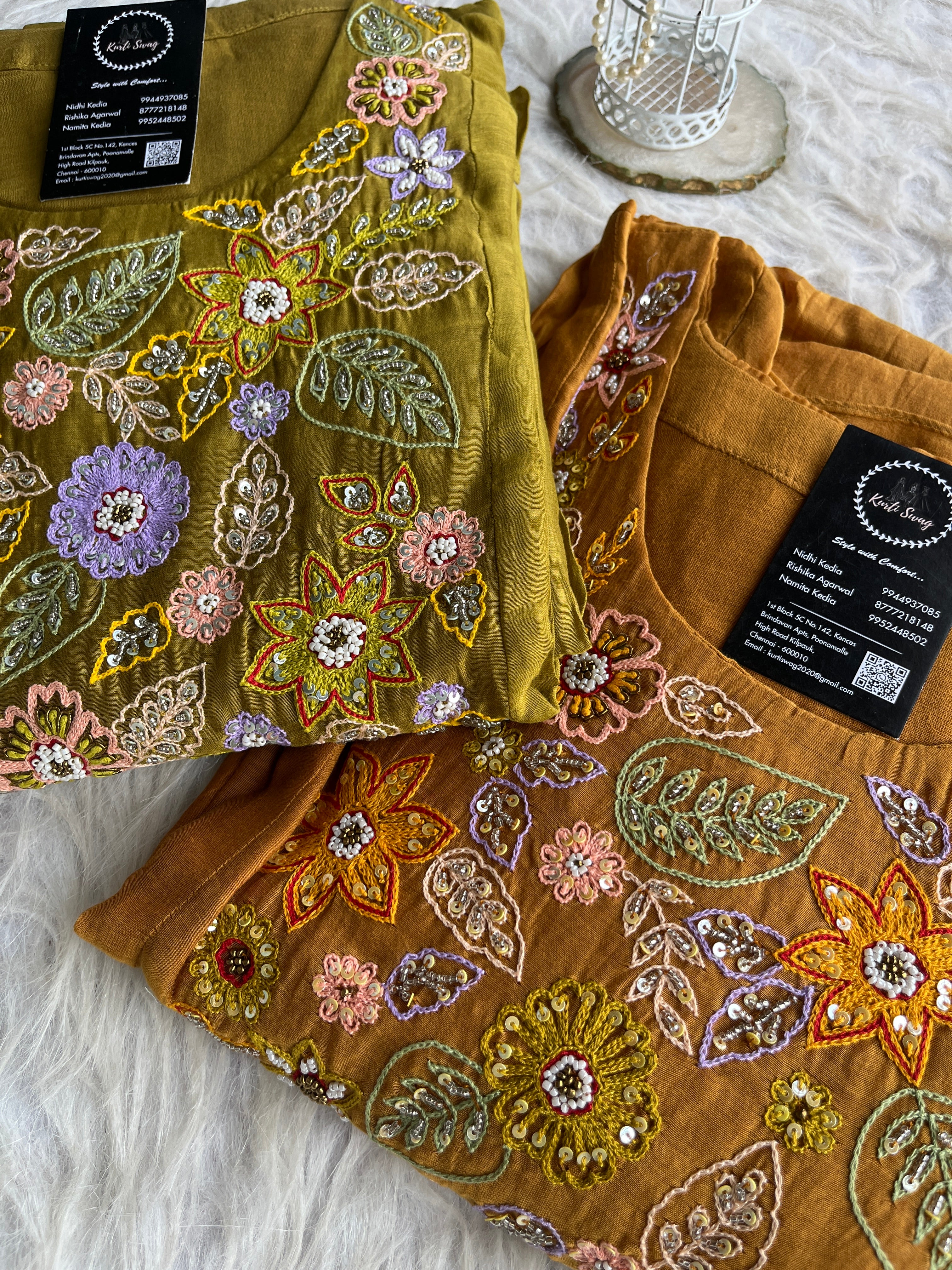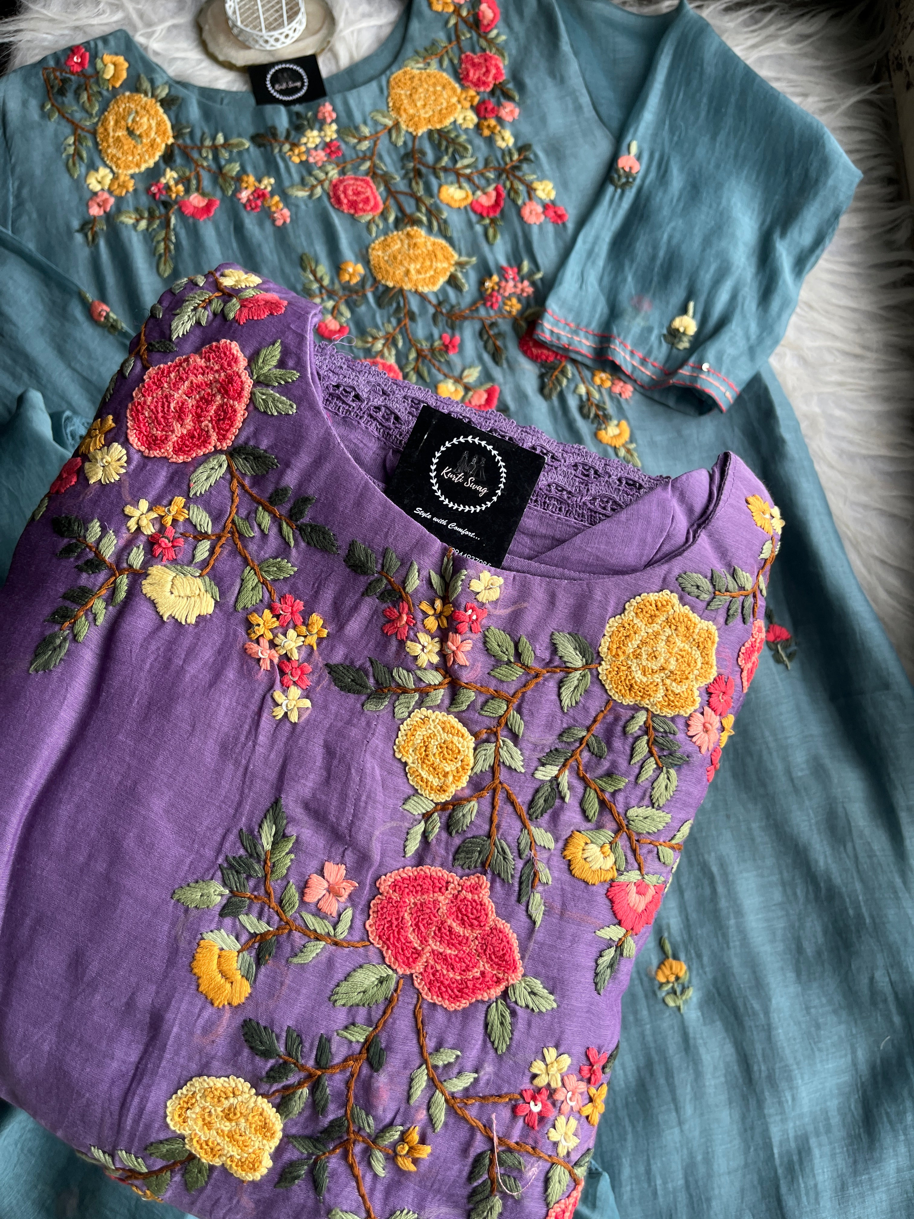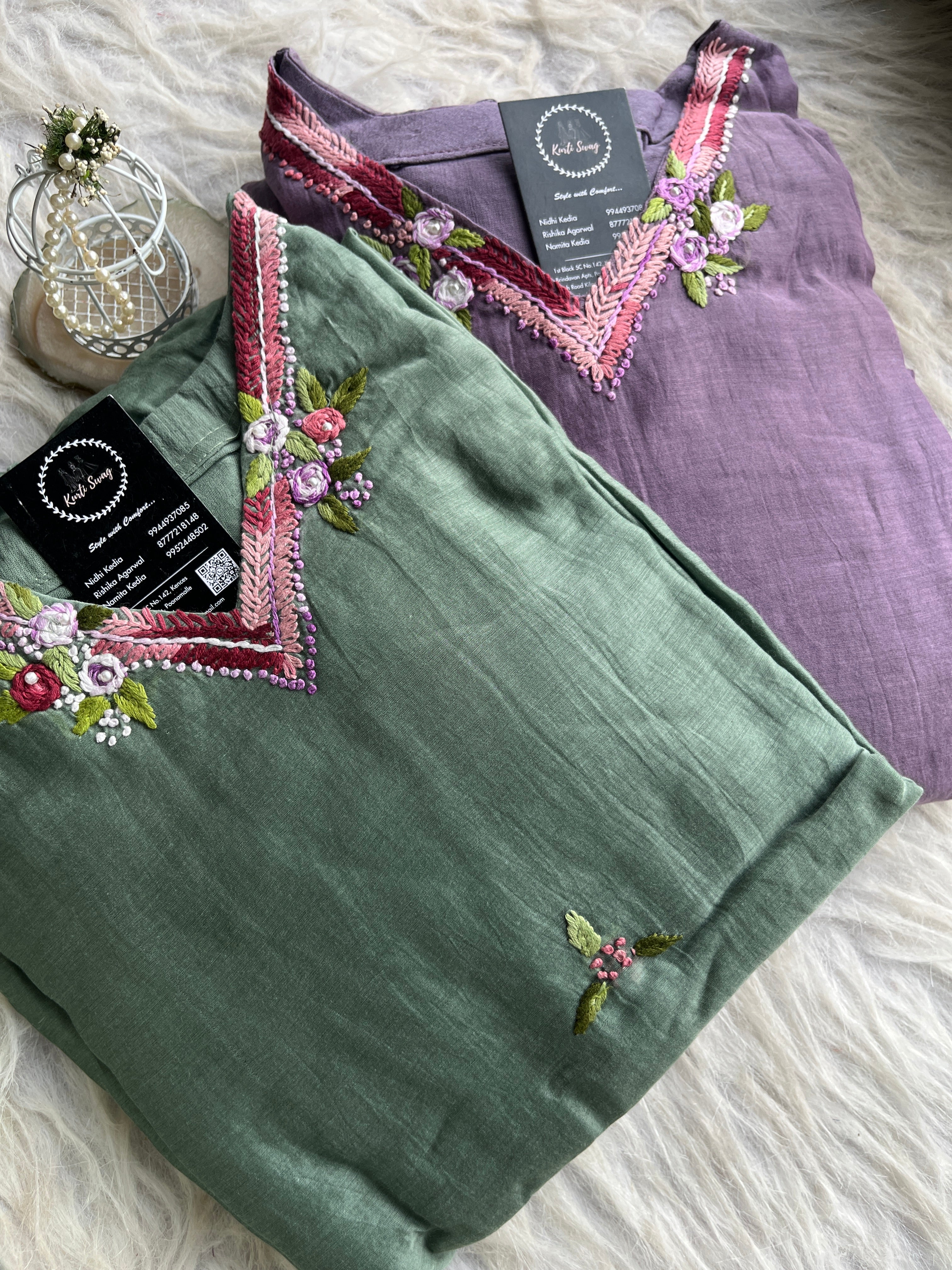 ✅ Premium Mul Chanderi Kurti With Handwork On The Yoke Of The Kurti