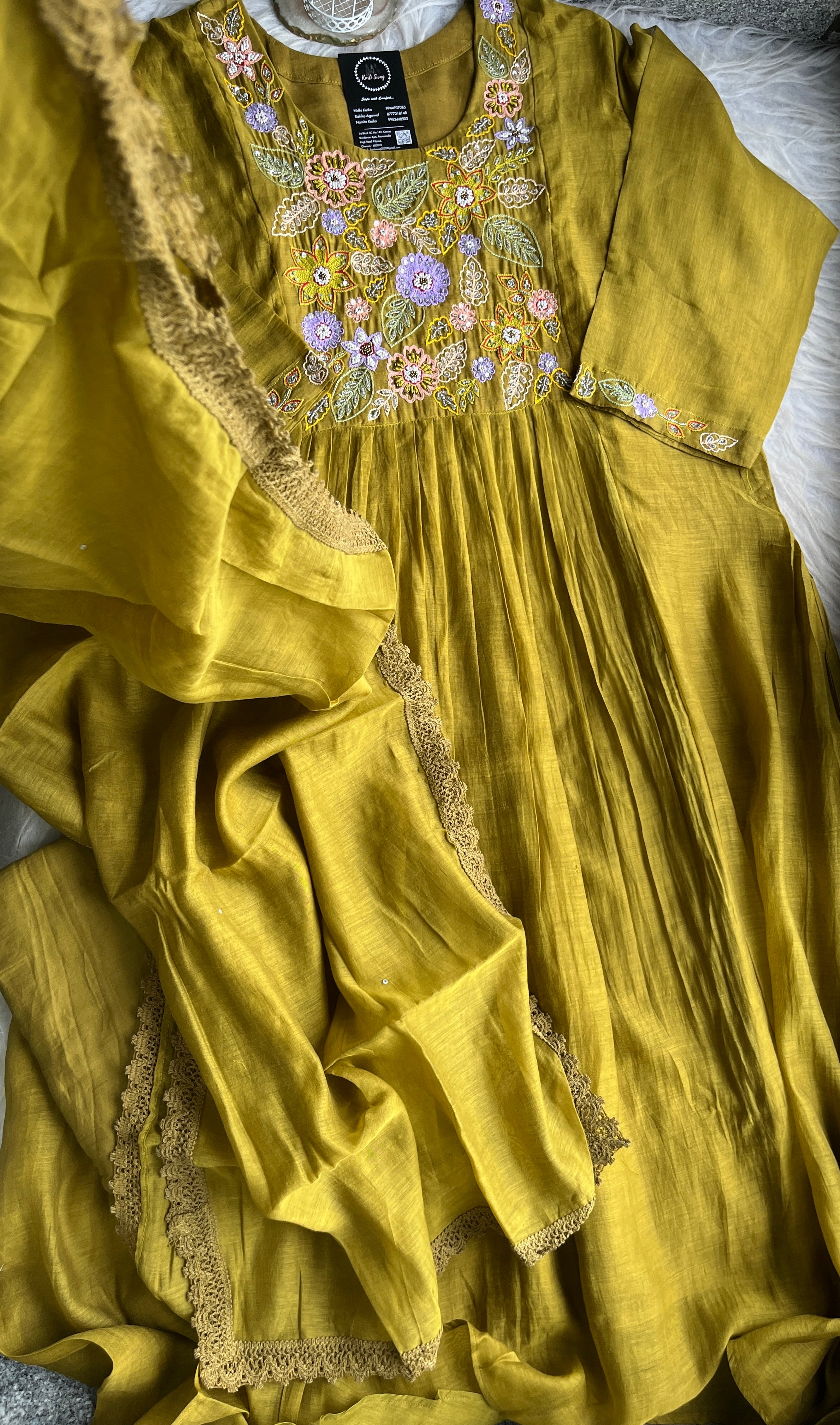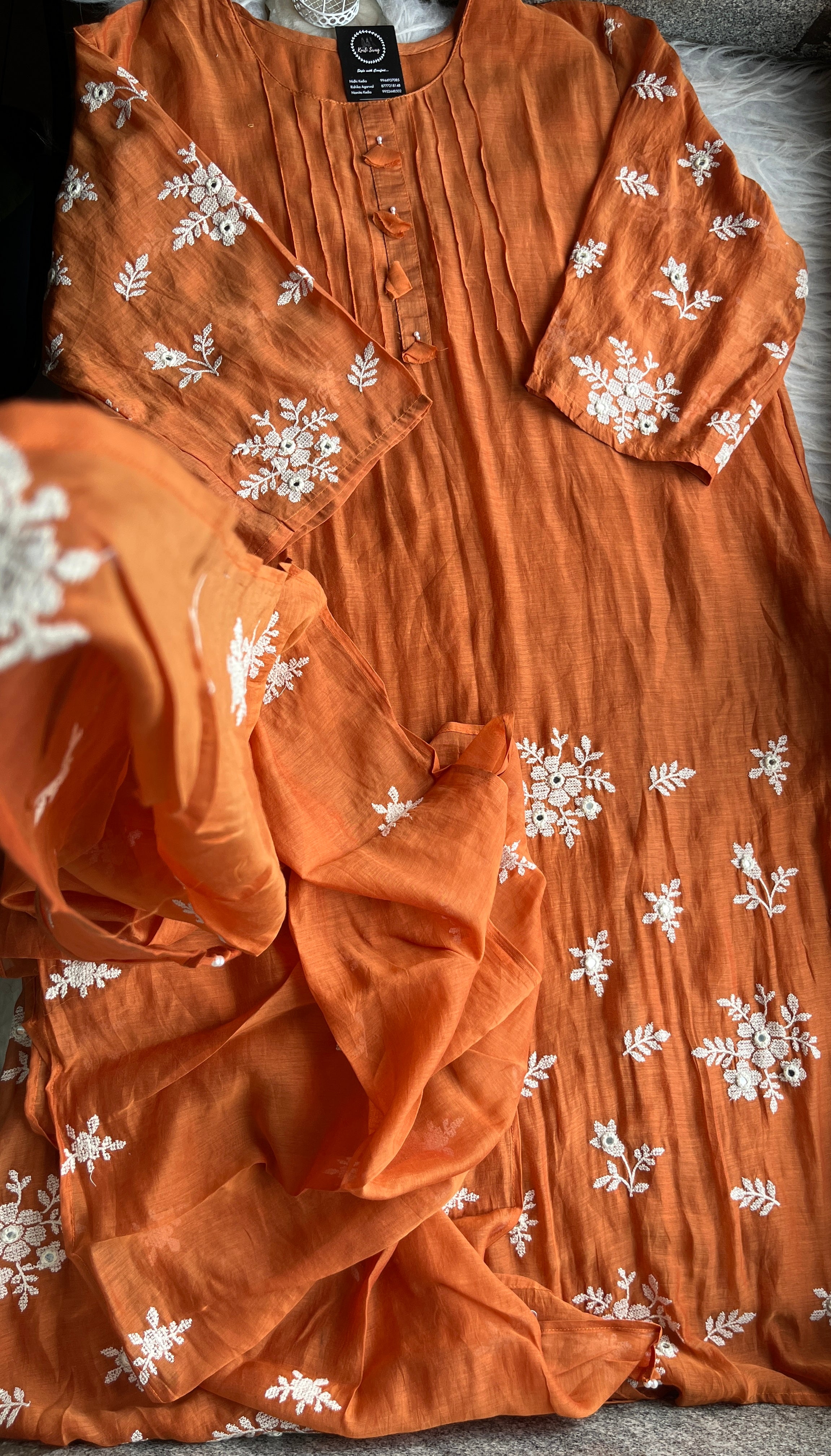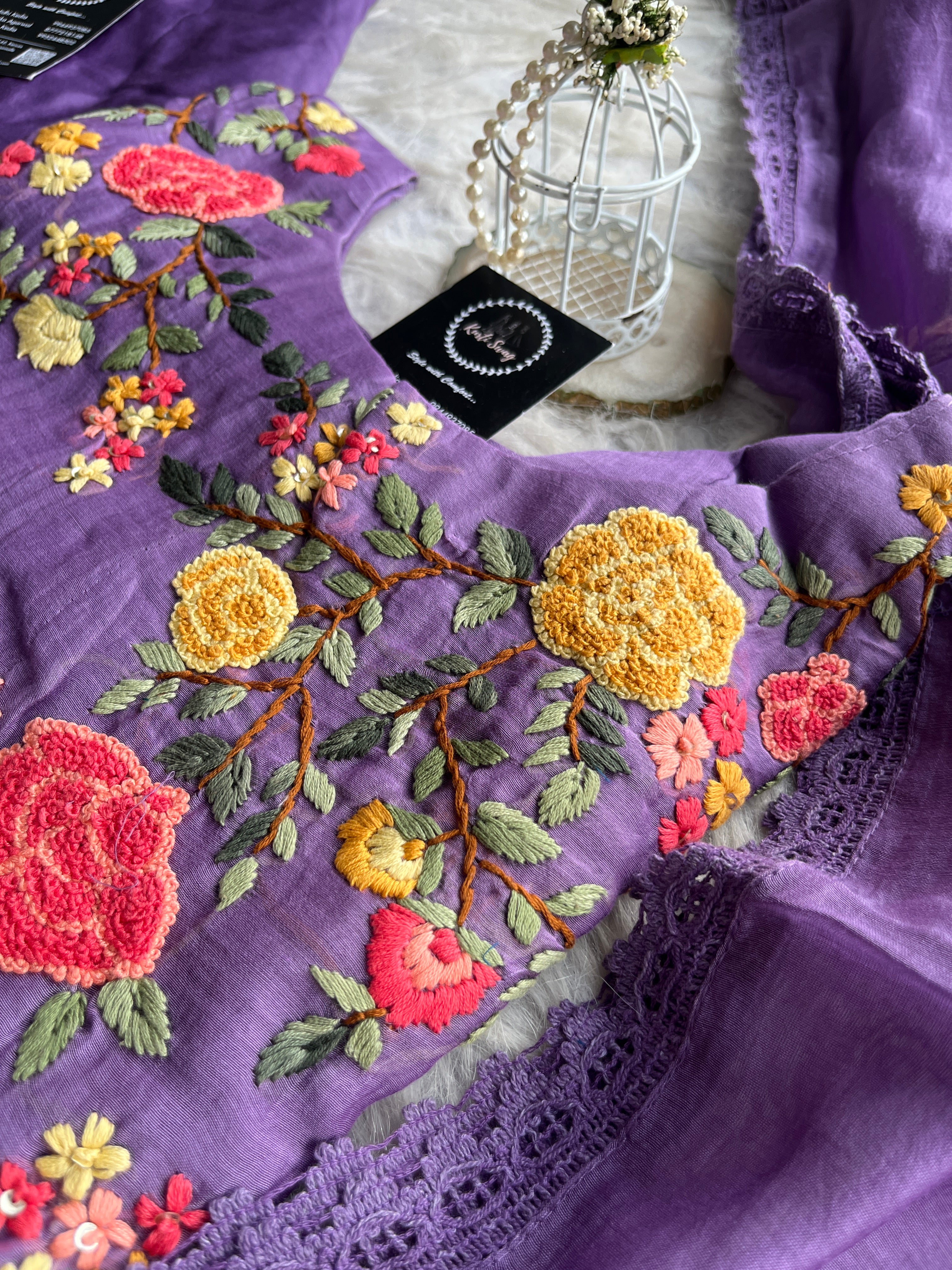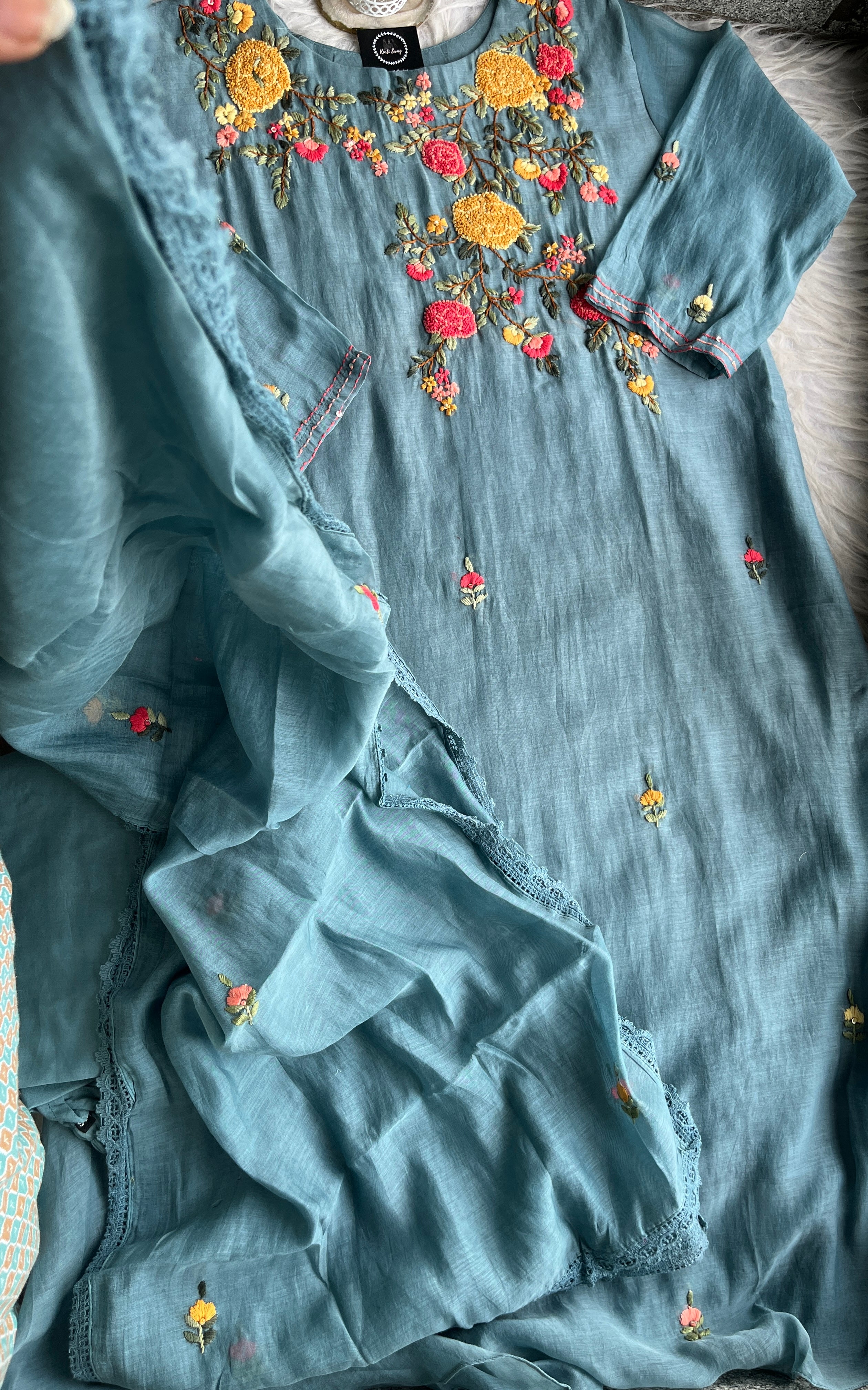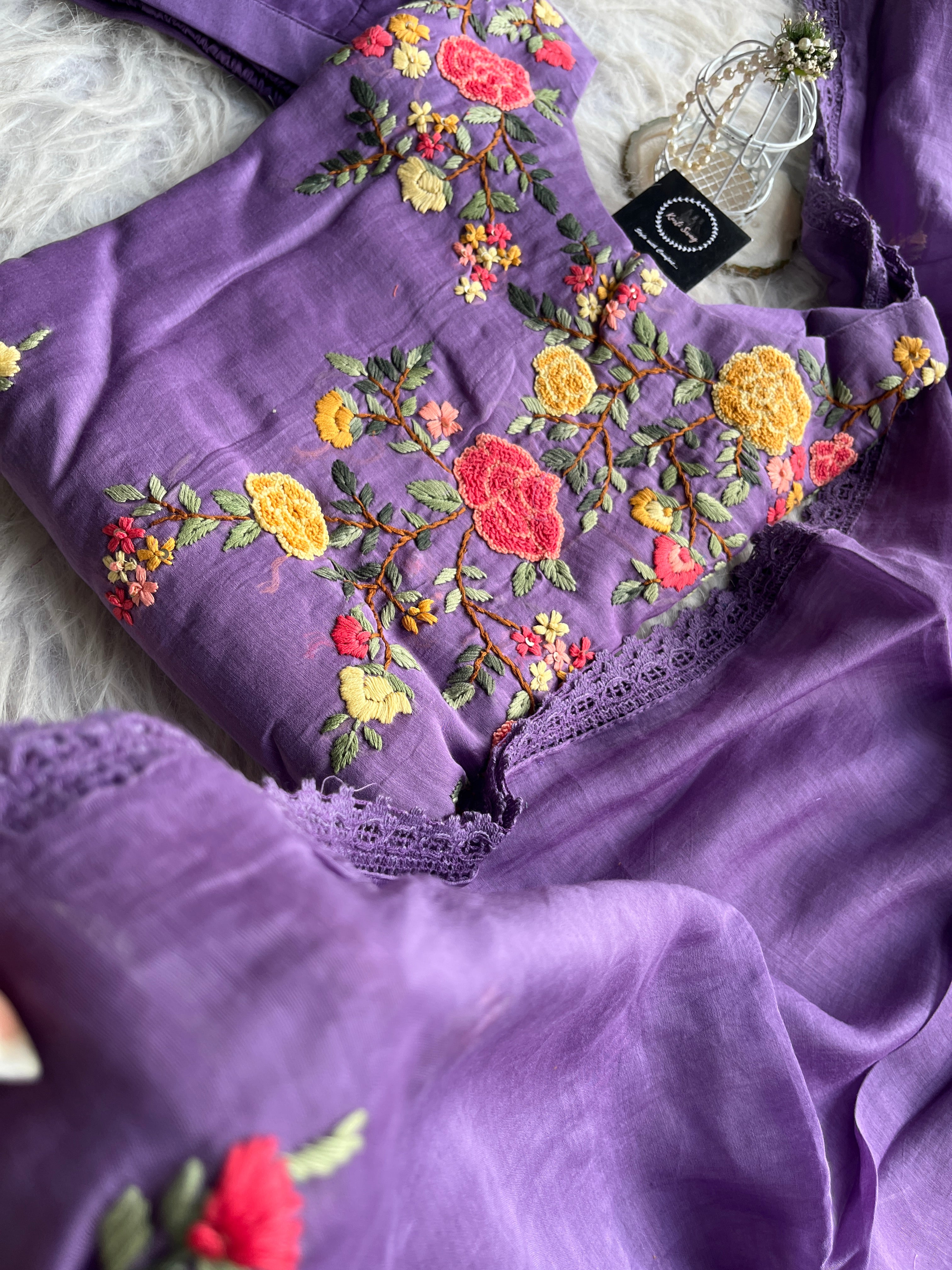 ✅ Premium Mul Chanderi Kurti With Handwork On The Yoke Of The Kurti